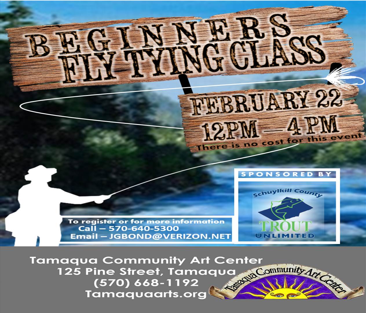 Schuylkill County Trout Unlimited is sponsoring a free Beginners Fly-Tying Class on Sunday, February 22, 2015 from 12 PM to 4 PM at the Tamaqua Community Arts Center.