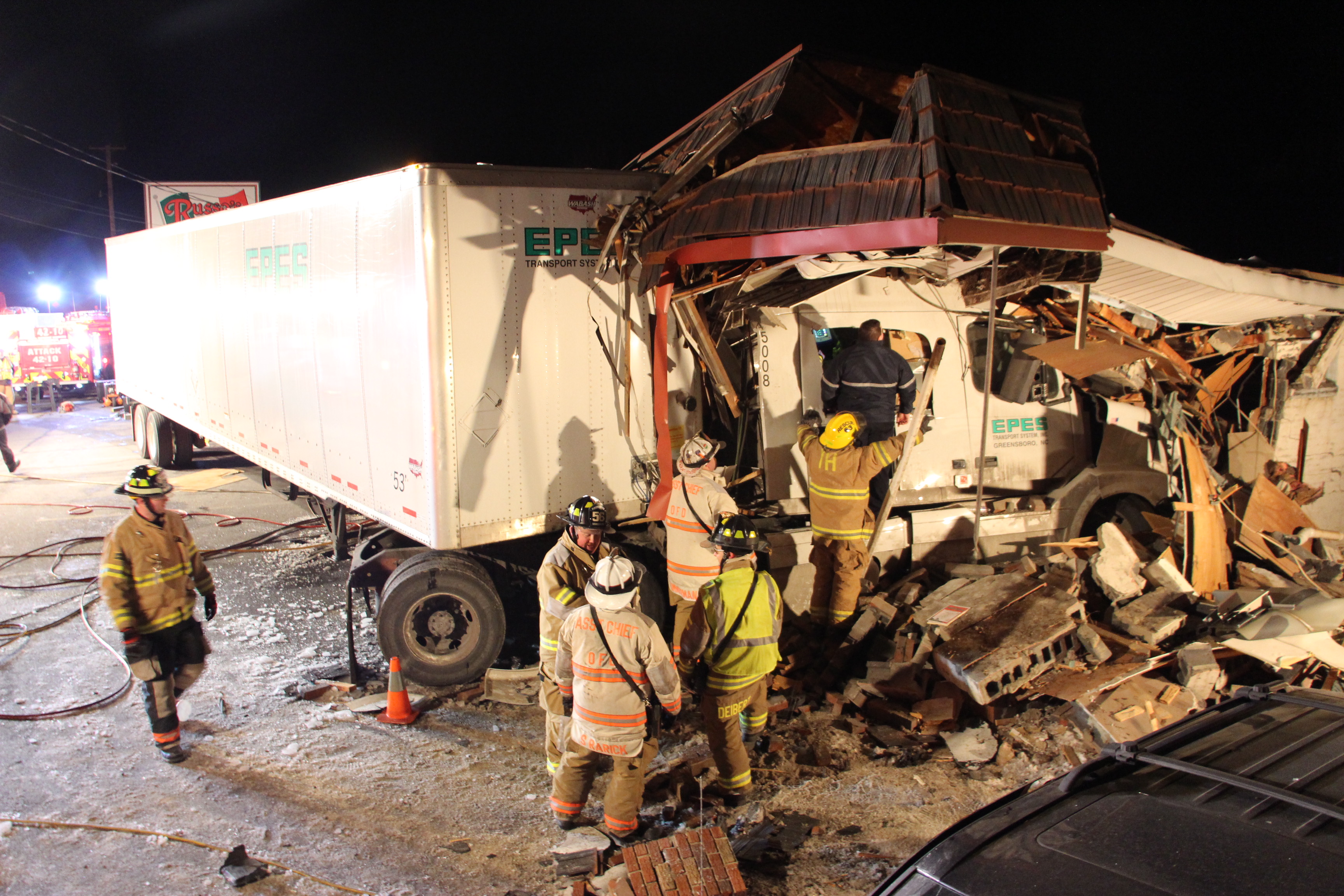 Emergency personnel were called to Russo’s Pizza Den, 1353 Centre Turnpike (SR61), around 2:45 AM for a report of a tractor-trailer into a building with entrapment.