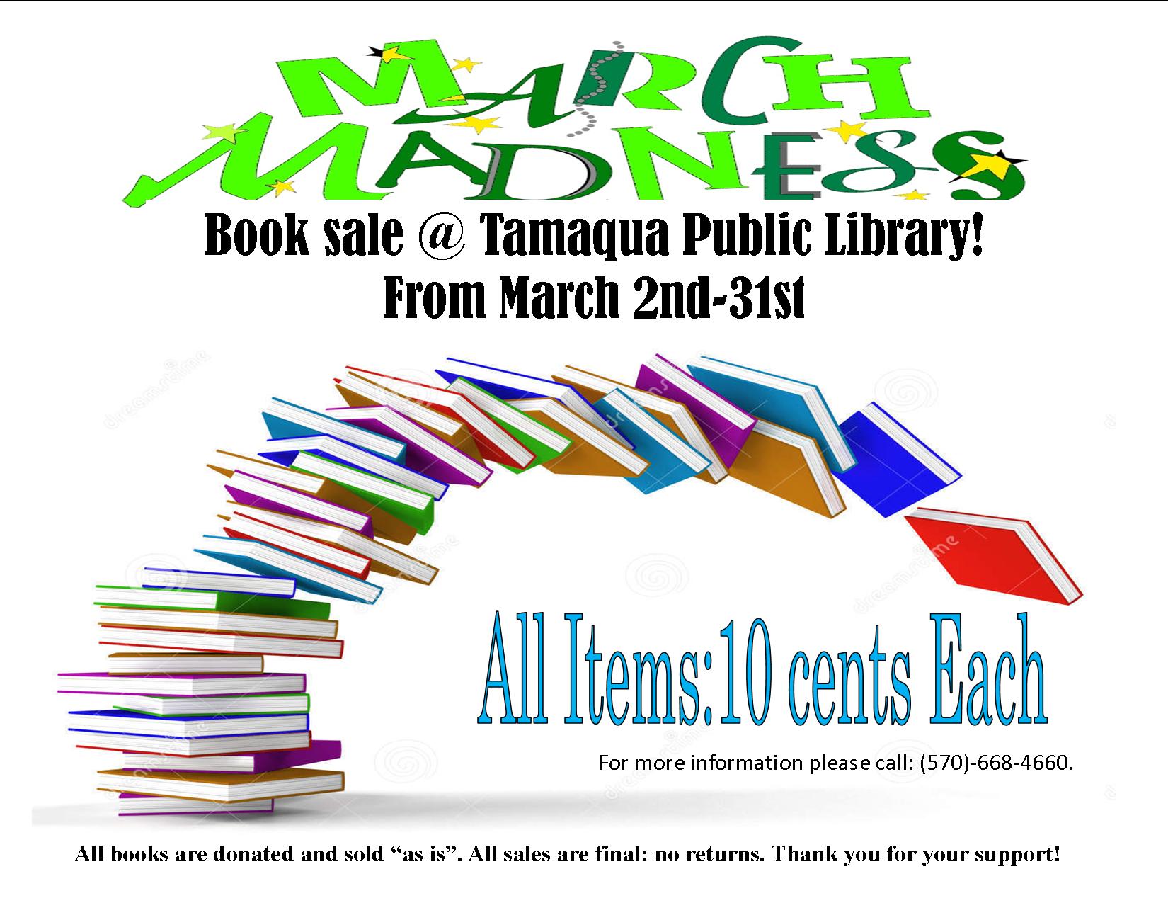 The Tamaqua Public Library is having a March Madness Book Sale from March 2 to March 31, 2015.