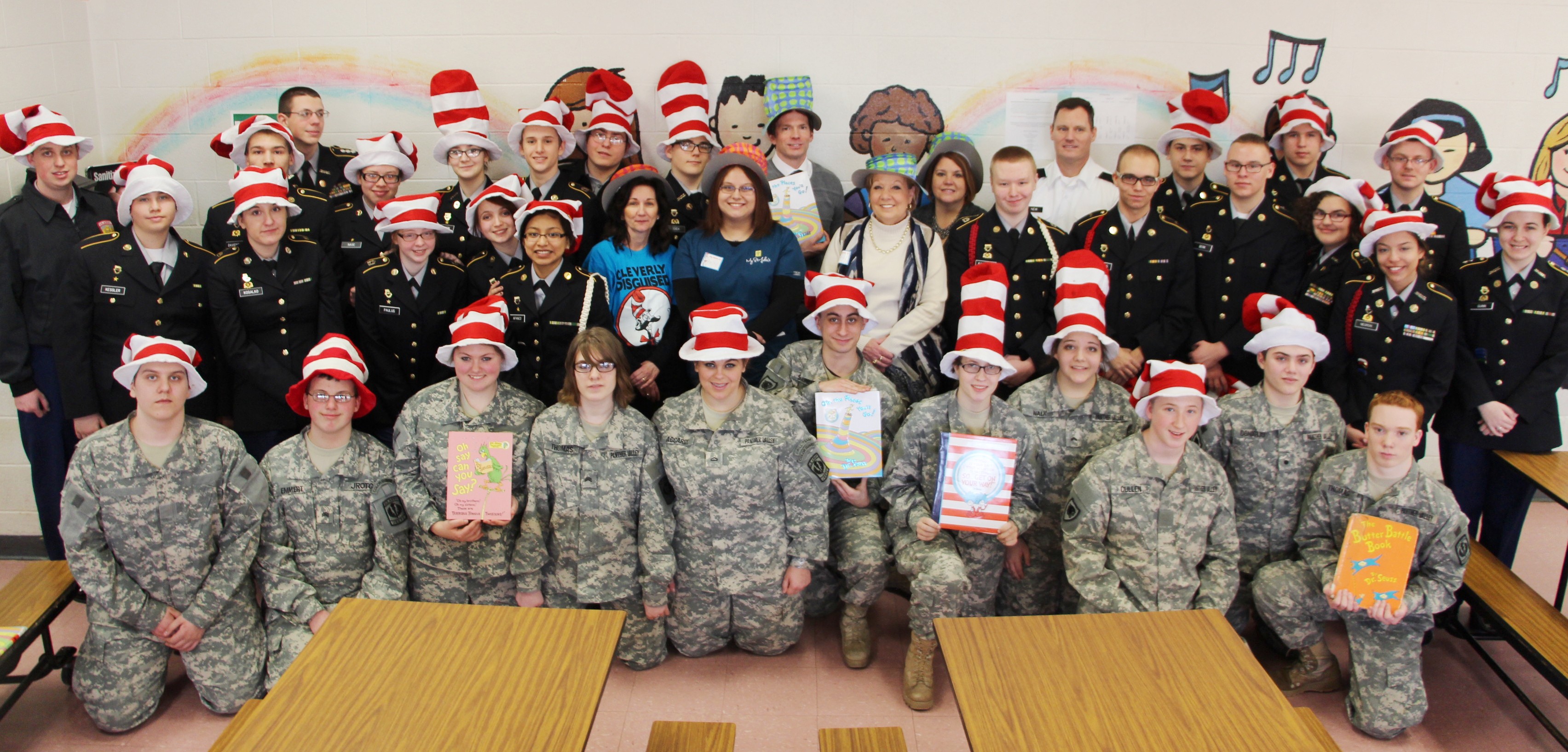 Members of the Panther Valley JROTC and staff from St. Luke’s Hospital & Health Network – Coaldale Campus spent time reading Dr. Seuss to students today (Friday, February 27, 2015) at the Panther Valley Elementary School in Nesquehoning.