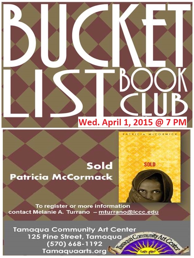 Like to read? Feel free to join the Bucket List Book Club on Wednesday, April 1, 2015 at the Tamaqua Community Arts Center at 7 PM. The meeting was moved from Tuesday, March 3 due to weather.