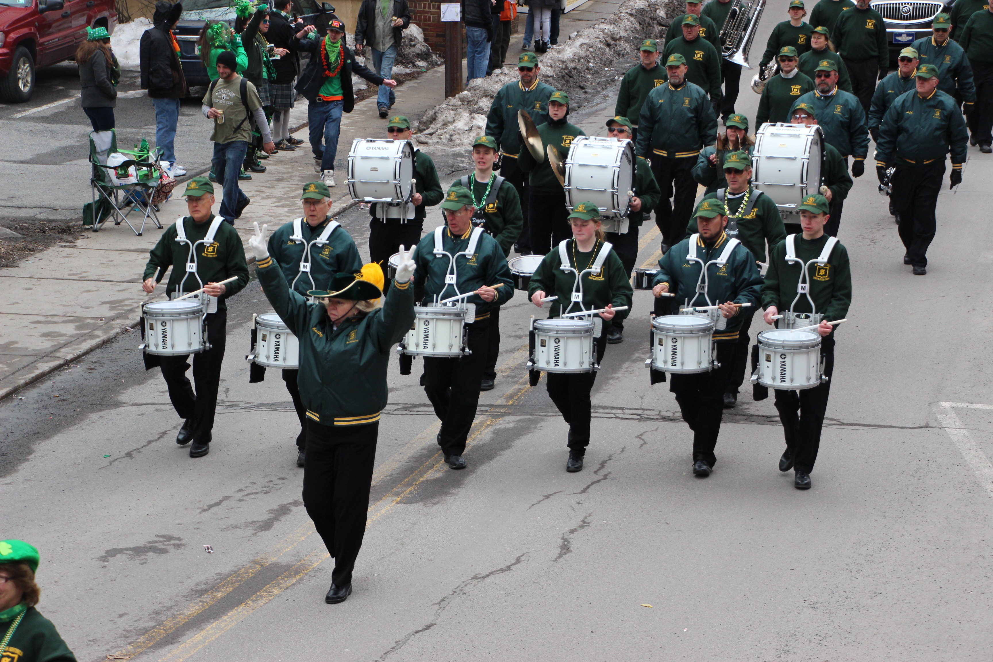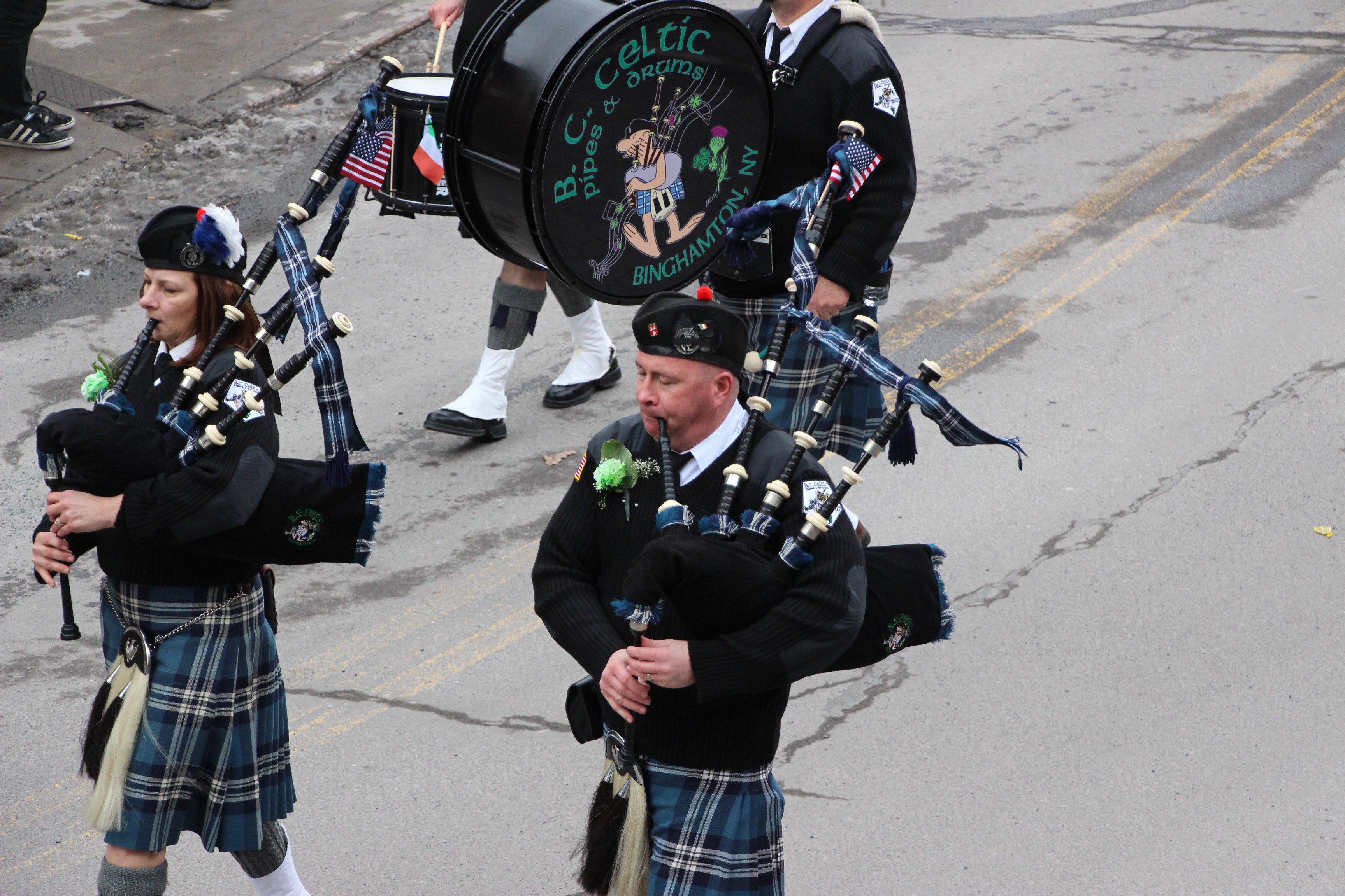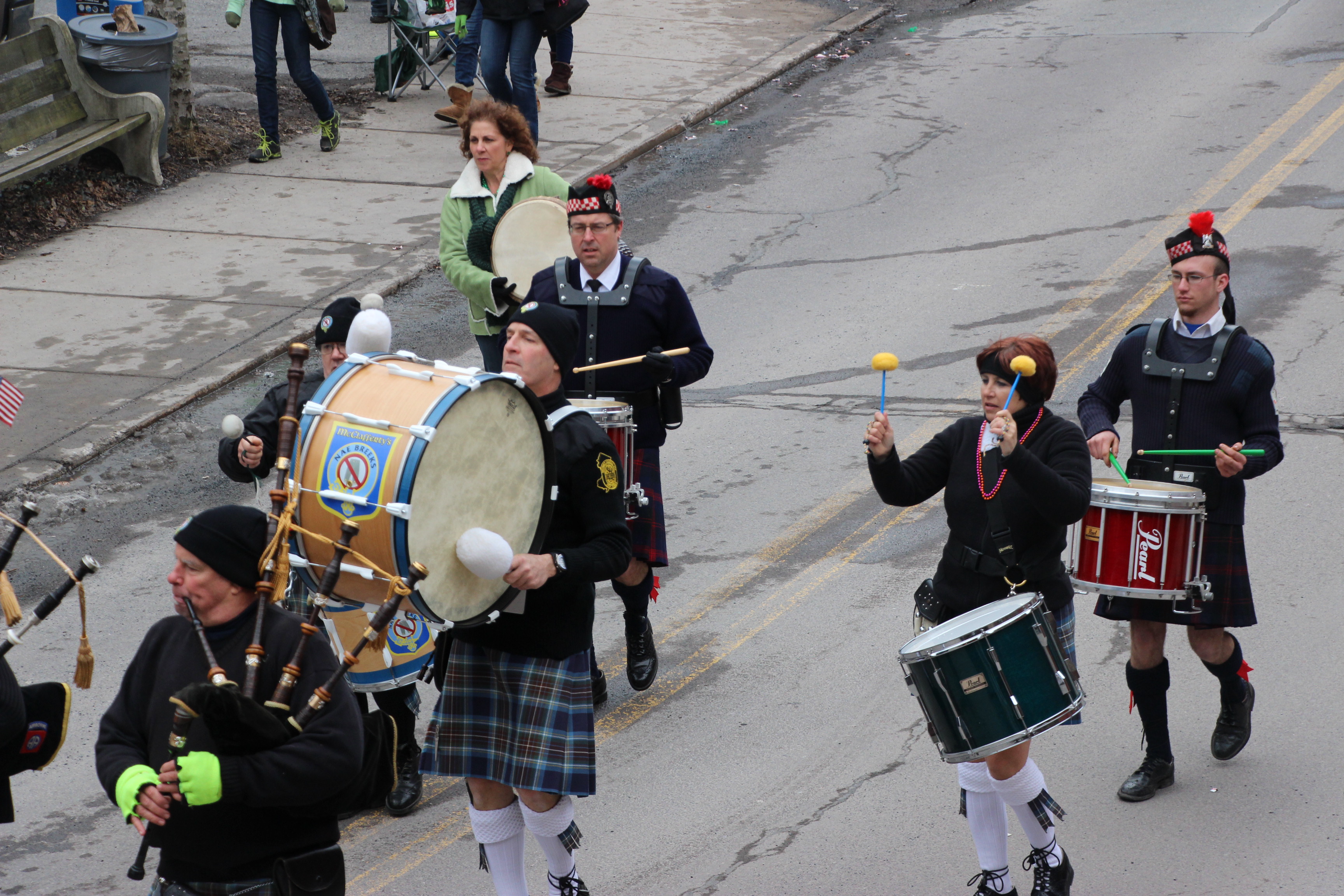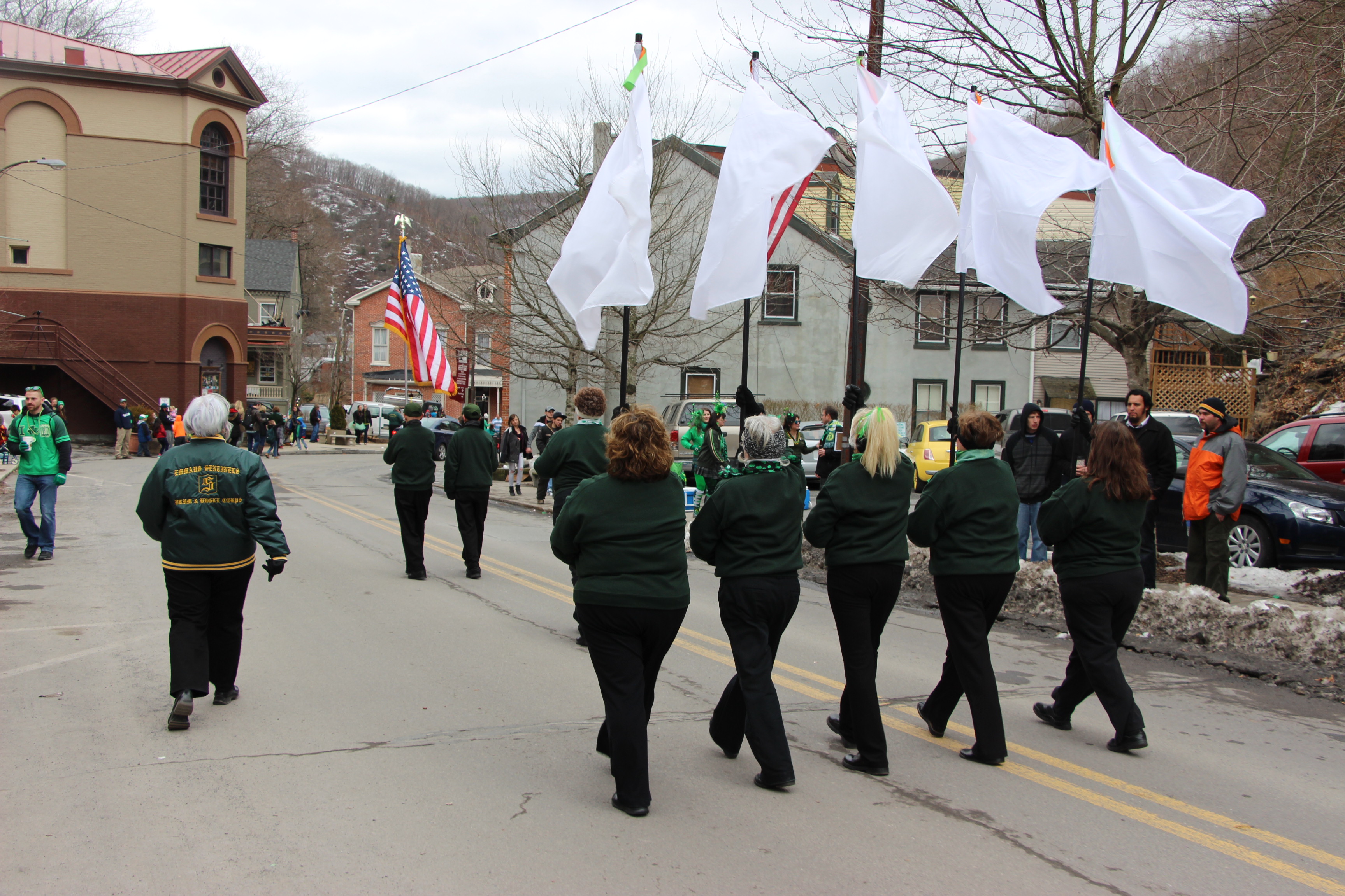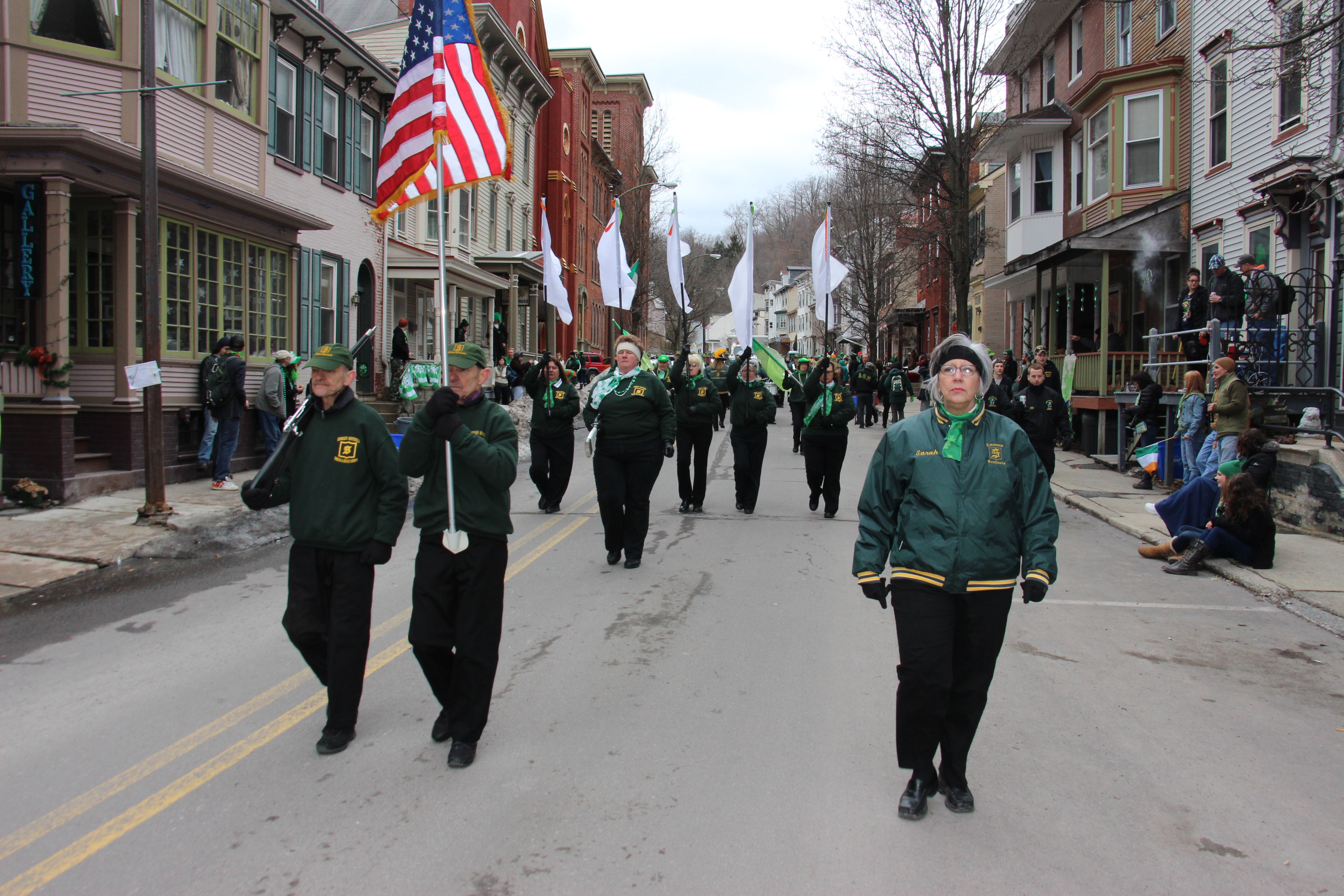 Jim Thorpe Police Department Cruiser and Mayor Michael Sofranko, Banner of St. Patrick, Grand Marshal Gary Dobias, Aides to the Grand Marshal, Lochiel Emerald Society Pipe and Drums, Ancient Order of Hibernians, Carbon County Chapter; Ladies Ancient Order of Hibernians, Carbon County Chapter; Chuck Thamarus Truck; California Raisins Volkswagon Beetle; Jim Thorpe Area High School Band; Congressman Matthew Cartwright; State Senator John Yudichak; State Representative Doyle Heffley; Carbon County Commissioners Thomas J. Gerhard, Wayne Nothstein and William O’Gurek; District Attorney Jean Engler; Carbon County Prothonotary Joann Behrens; Carbon County Director of Veterans’ Affairs Henry Desrosiers; Ceol Neamh; Lehigh County Ancient Order of Hibernians; Schuylkill-Carbon Marine Corps League Detachment 626; Quitapahilla Highlanders Pipe Band; U.S. Postal Service truck; Eclectic Circus; Bear Creek Golf Carts; and Sinister Rouge Pin Up and More.