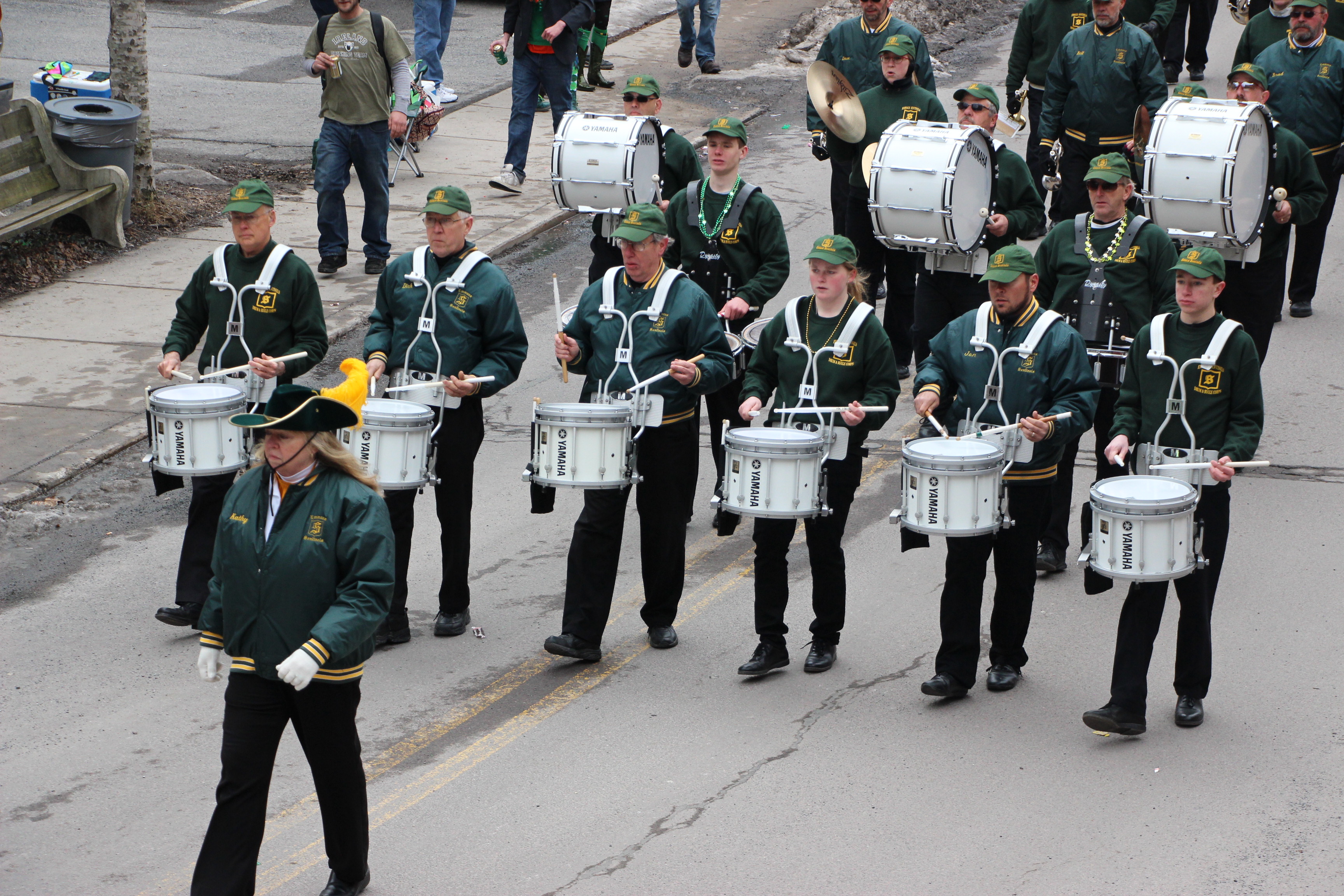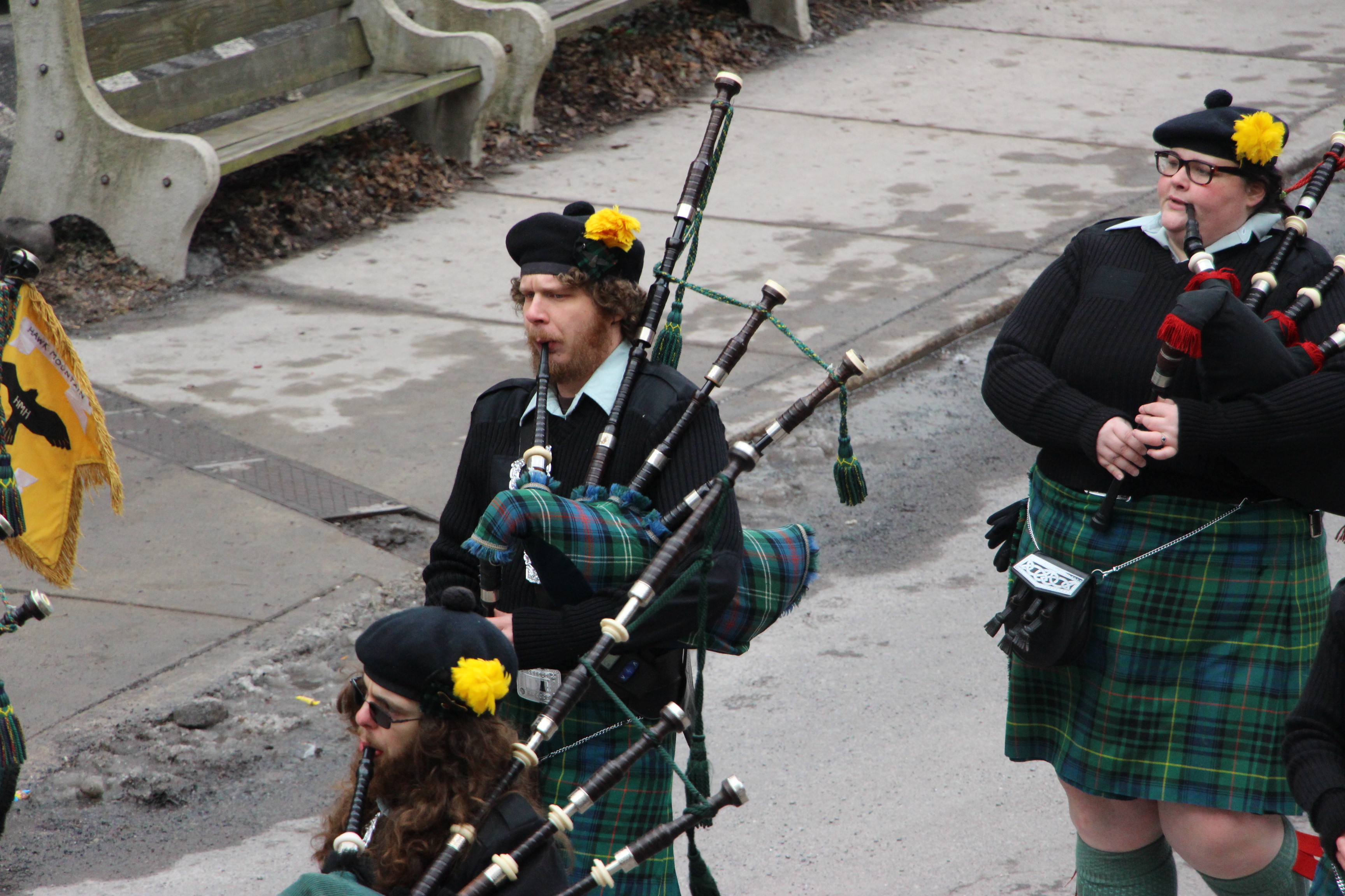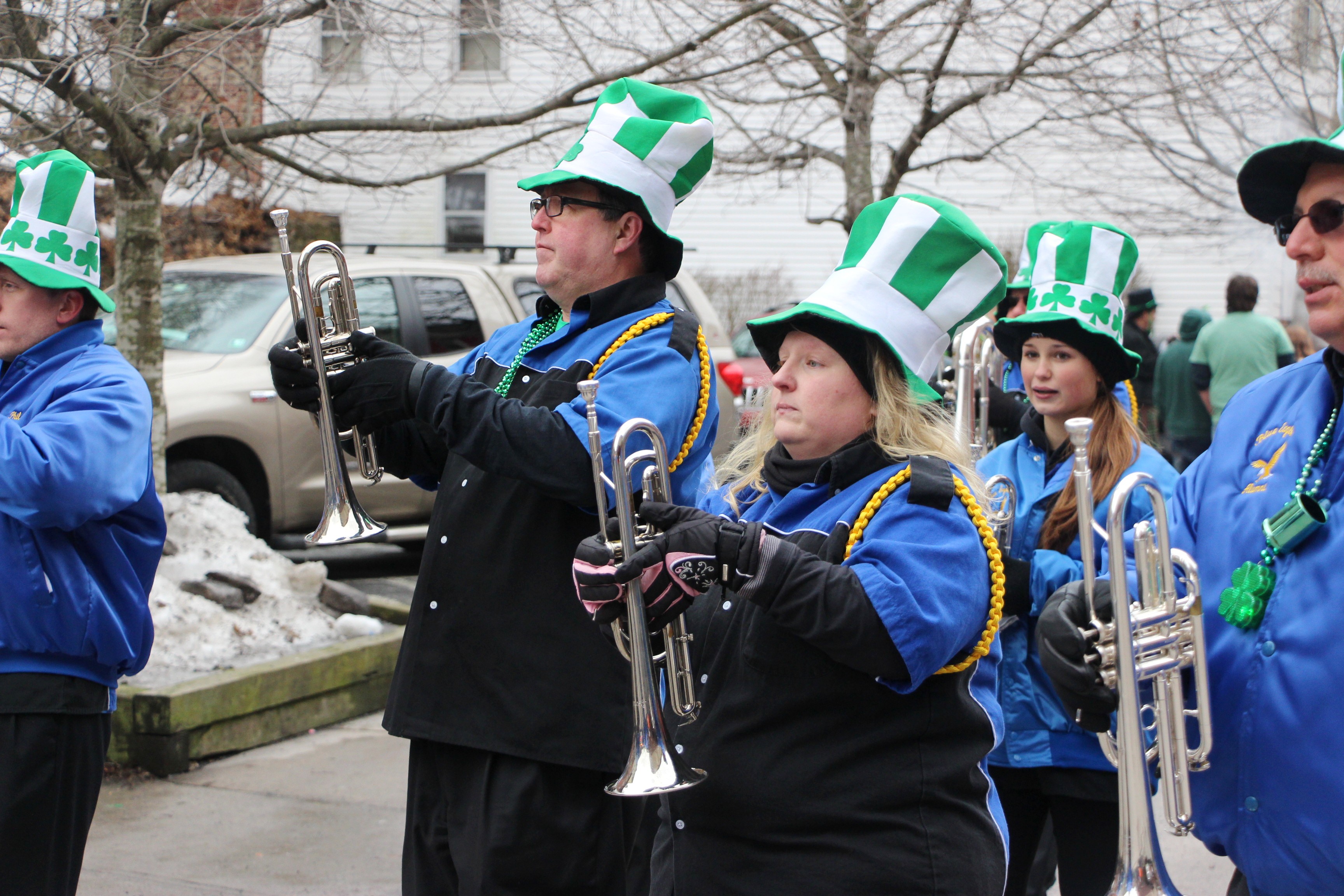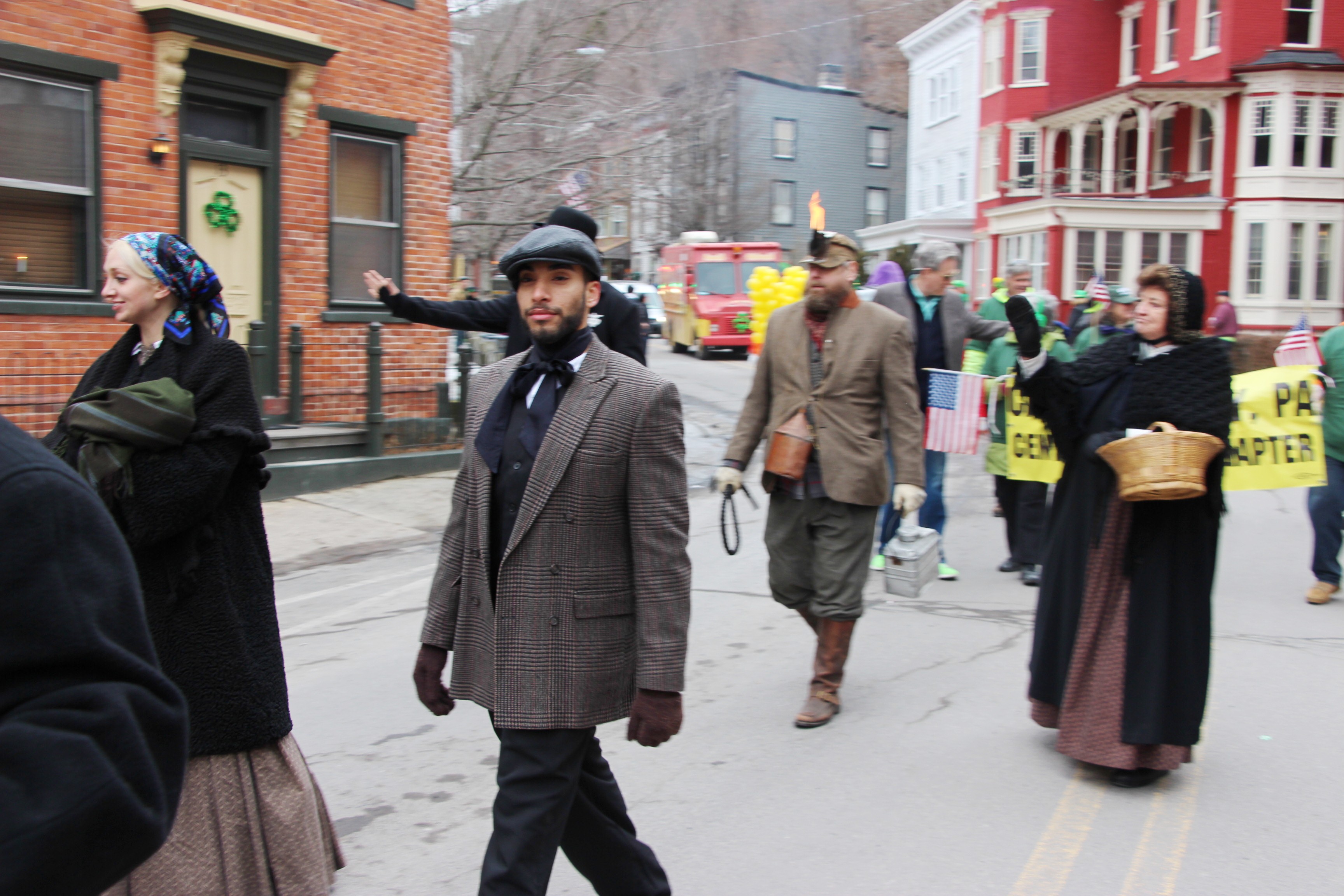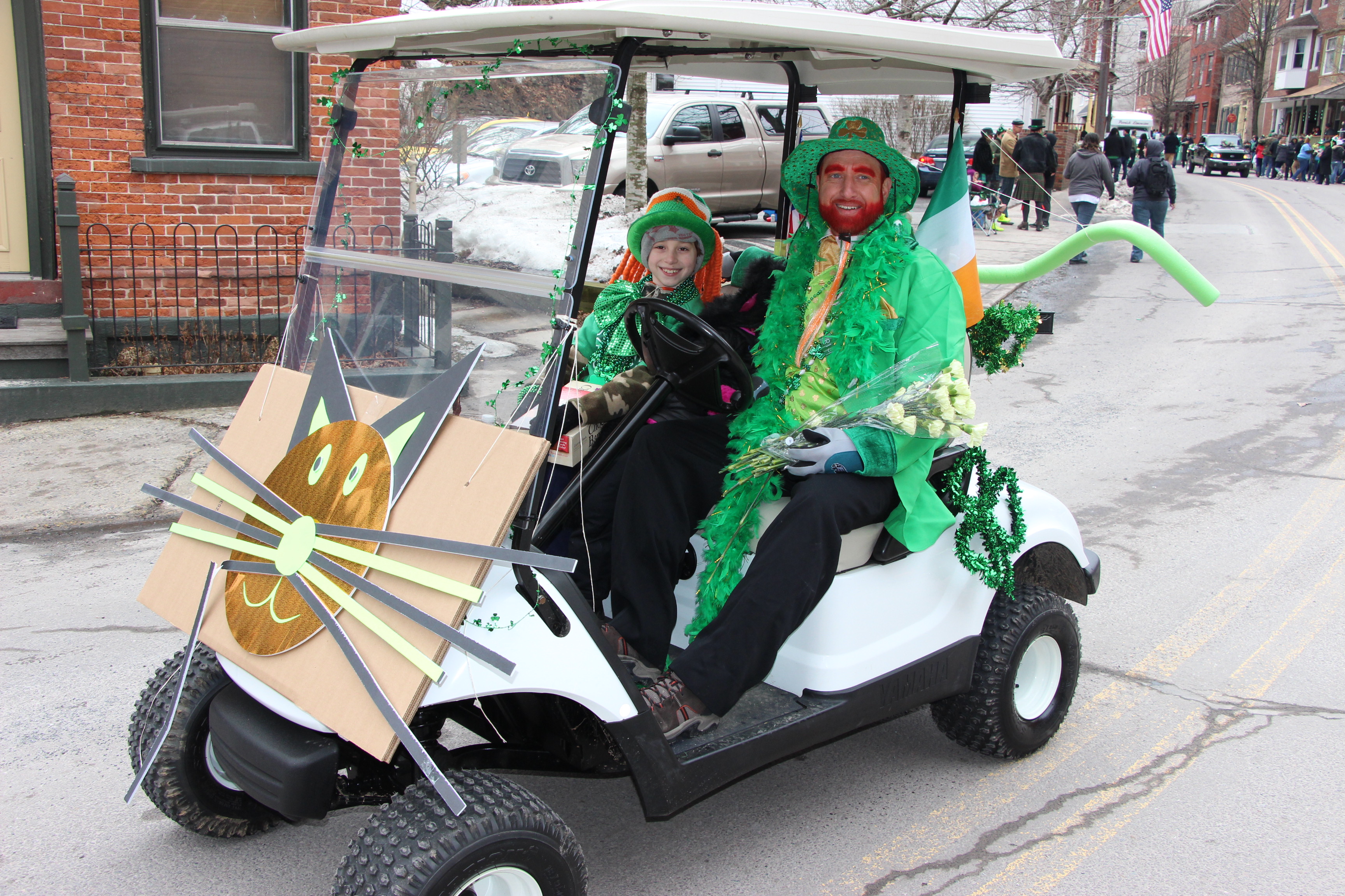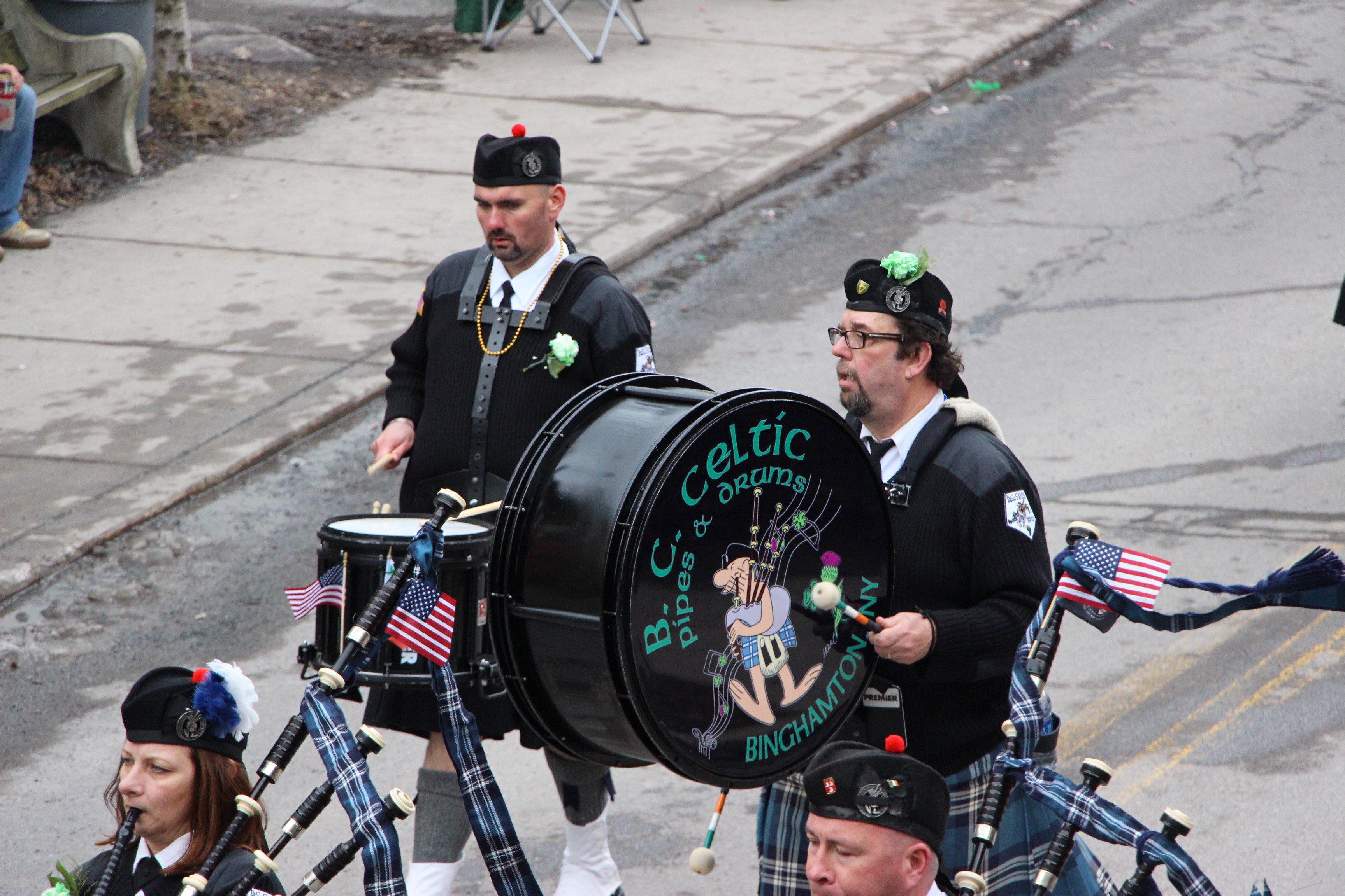 Jim Thorpe Police Department Cruiser and Mayor Michael Sofranko, Banner of St. Patrick, Grand Marshal Gary Dobias, Aides to the Grand Marshal, Lochiel Emerald Society Pipe and Drums, Ancient Order of Hibernians, Carbon County Chapter; Ladies Ancient Order of Hibernians, Carbon County Chapter; Chuck Thamarus Truck; California Raisins Volkswagon Beetle; Jim Thorpe Area High School Band; Congressman Matthew Cartwright; State Senator John Yudichak; State Representative Doyle Heffley; Carbon County Commissioners Thomas J. Gerhard, Wayne Nothstein and William O’Gurek; District Attorney Jean Engler; Carbon County Prothonotary Joann Behrens; Carbon County Director of Veterans’ Affairs Henry Desrosiers; Ceol Neamh; Lehigh County Ancient Order of Hibernians; Schuylkill-Carbon Marine Corps League Detachment 626; Quitapahilla Highlanders Pipe Band; U.S. Postal Service truck; Eclectic Circus; Bear Creek Golf Carts; and Sinister Rouge Pin Up and More.