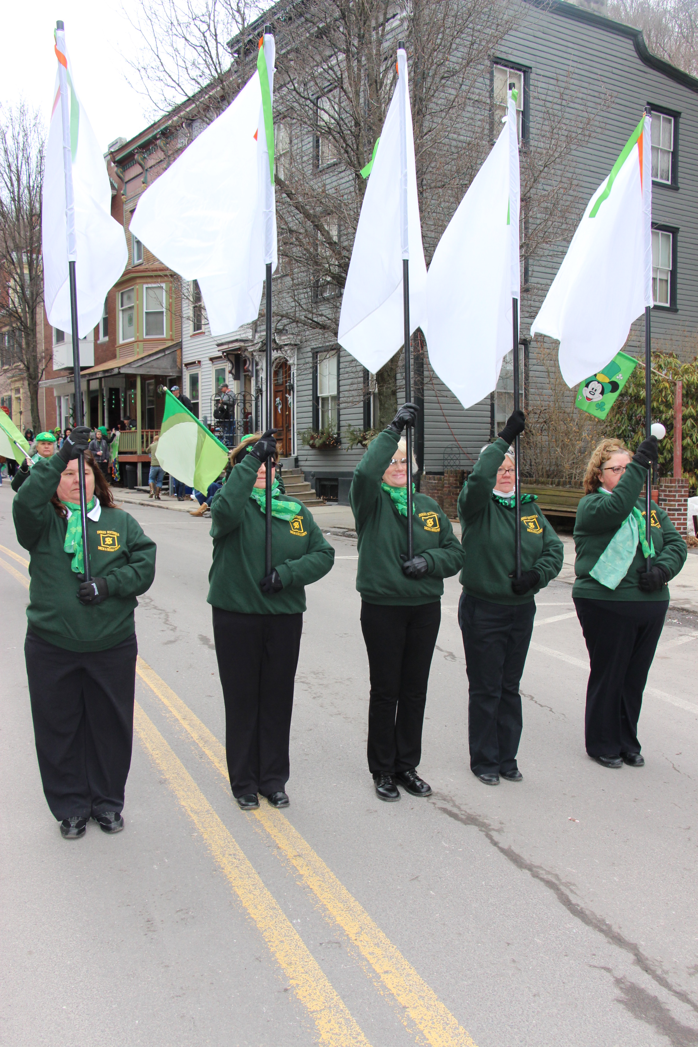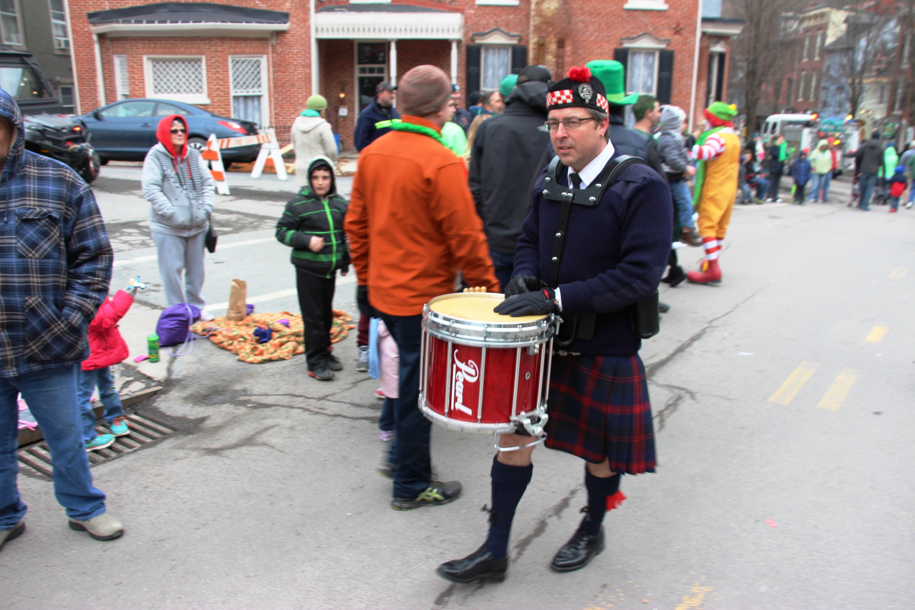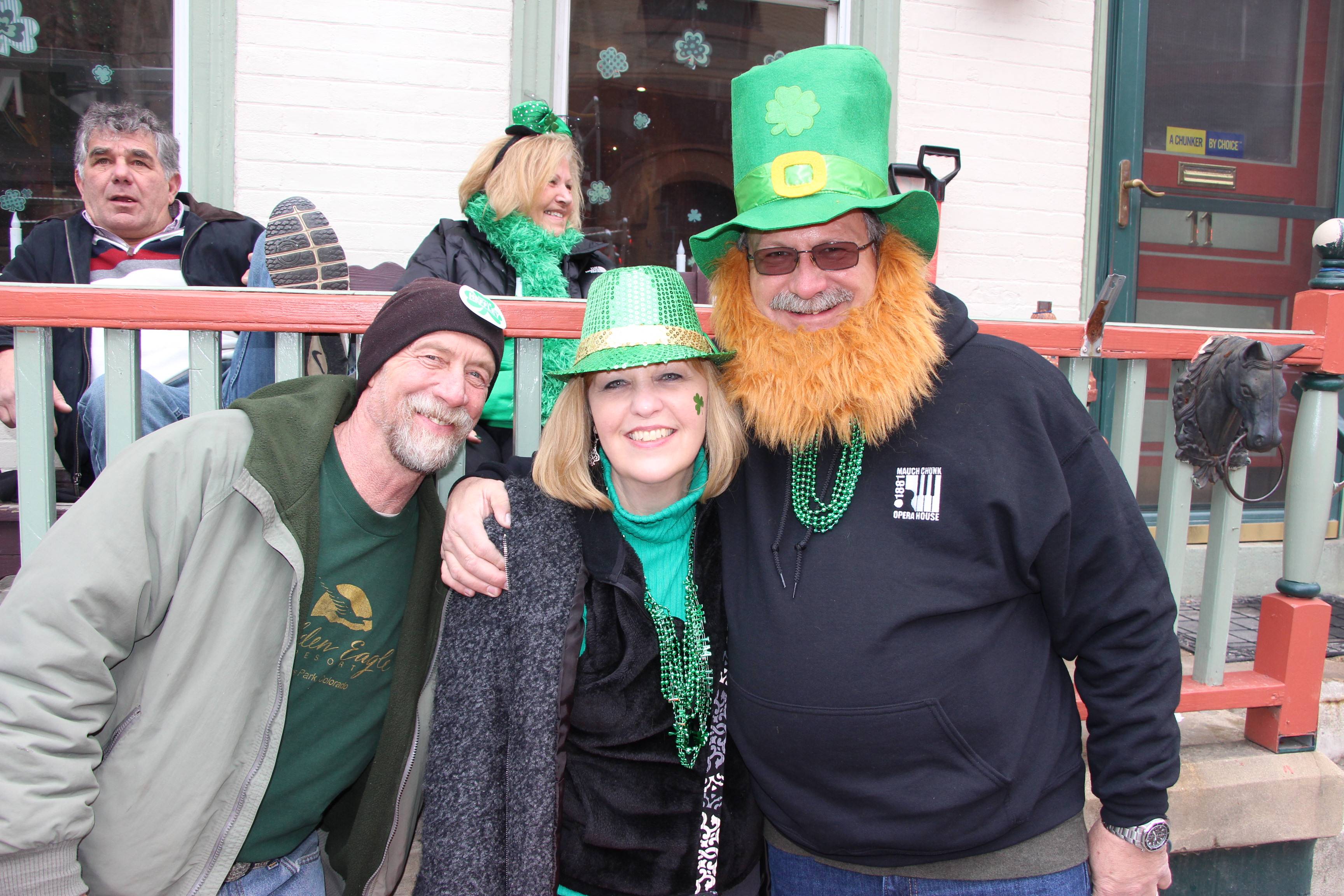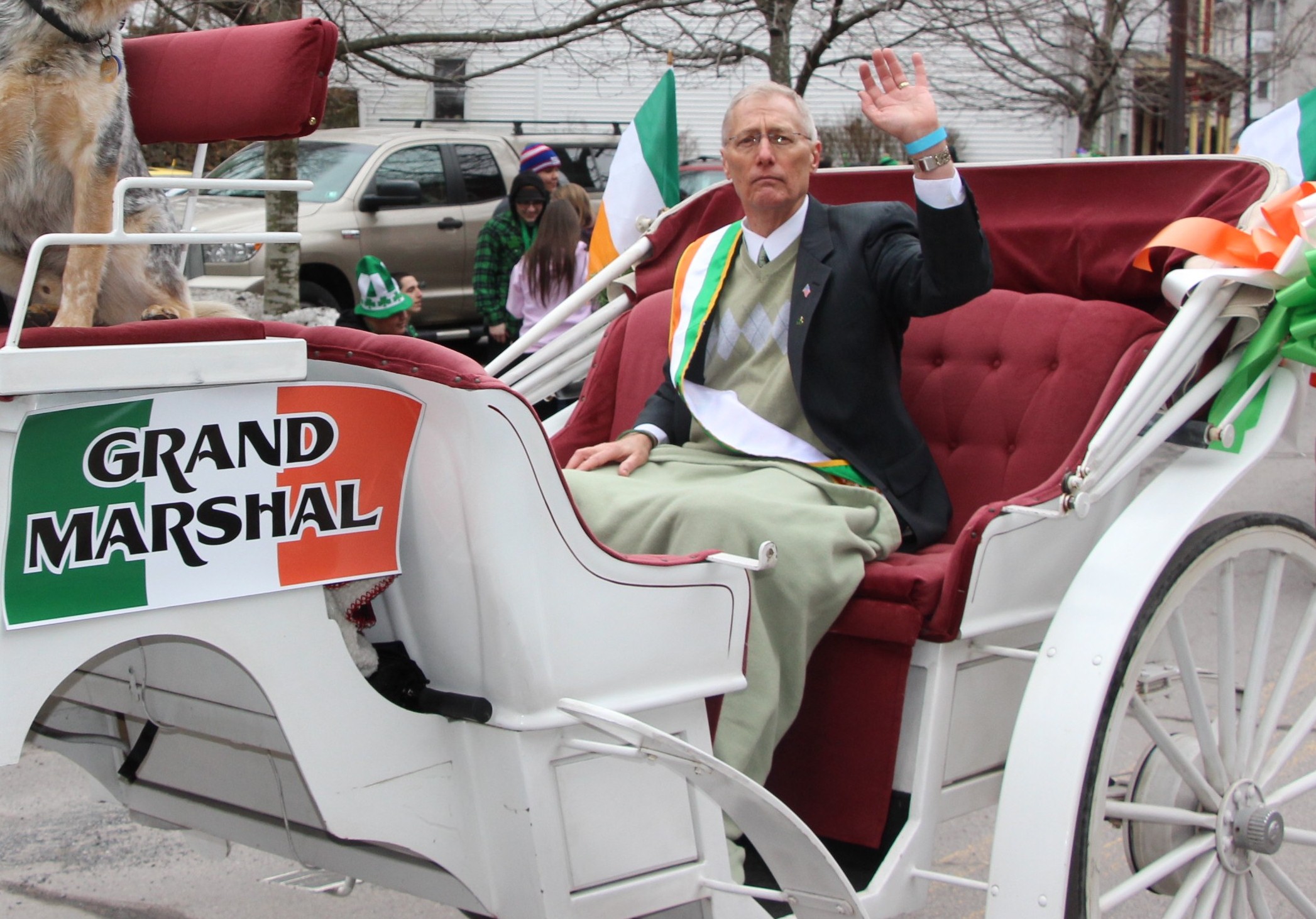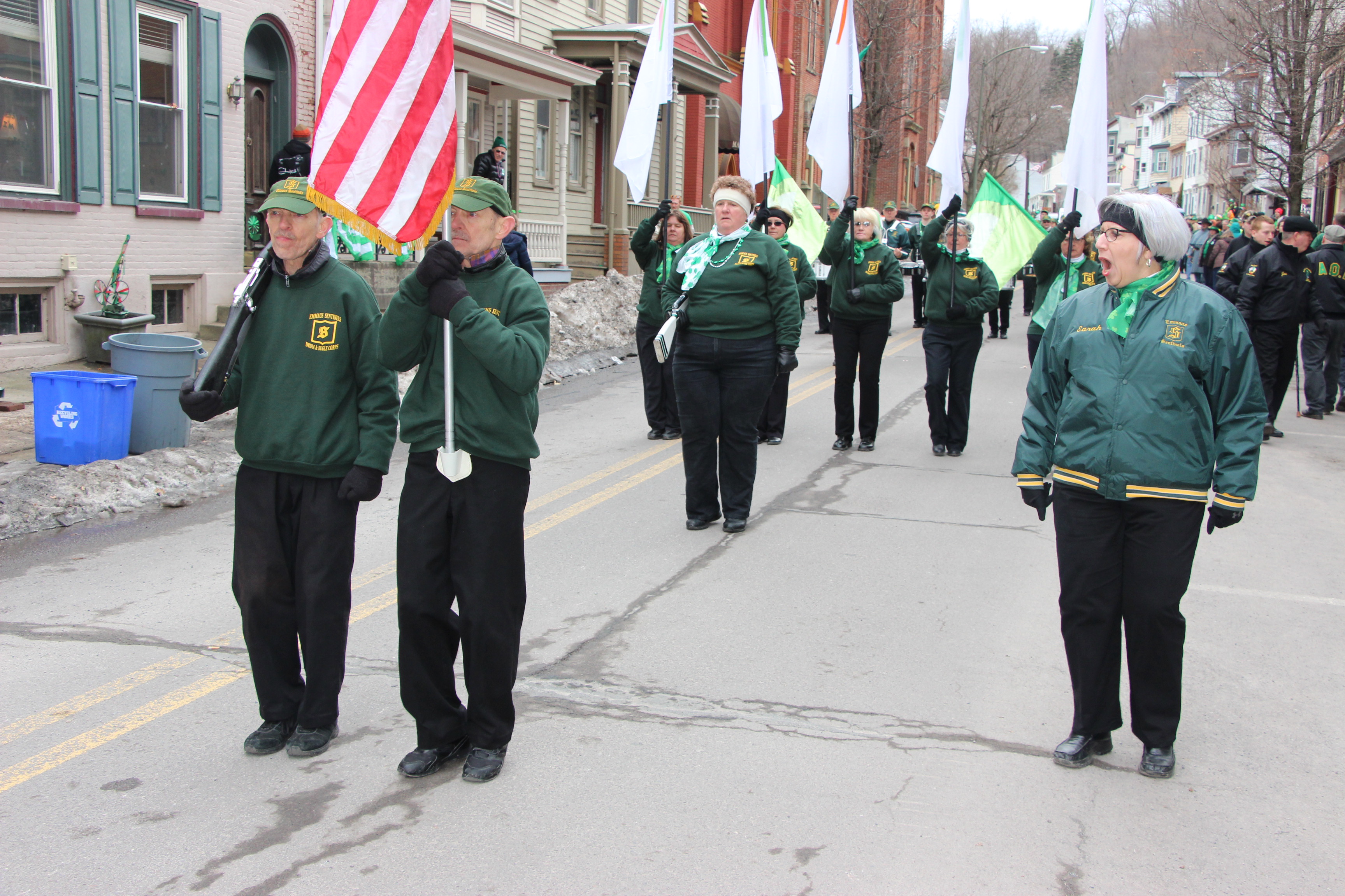 Jim Thorpe Police Department Cruiser and Mayor Michael Sofranko, Banner of St. Patrick, Grand Marshal Gary Dobias, Aides to the Grand Marshal, Lochiel Emerald Society Pipe and Drums, Ancient Order of Hibernians, Carbon County Chapter; Ladies Ancient Order of Hibernians, Carbon County Chapter; Chuck Thamarus Truck; California Raisins Volkswagon Beetle; Jim Thorpe Area High School Band; Congressman Matthew Cartwright; State Senator John Yudichak; State Representative Doyle Heffley; Carbon County Commissioners Thomas J. Gerhard, Wayne Nothstein and William O’Gurek; District Attorney Jean Engler; Carbon County Prothonotary Joann Behrens; Carbon County Director of Veterans’ Affairs Henry Desrosiers; Ceol Neamh; Lehigh County Ancient Order of Hibernians; Schuylkill-Carbon Marine Corps League Detachment 626; Quitapahilla Highlanders Pipe Band; U.S. Postal Service truck; Eclectic Circus; Bear Creek Golf Carts; and Sinister Rouge Pin Up and More.