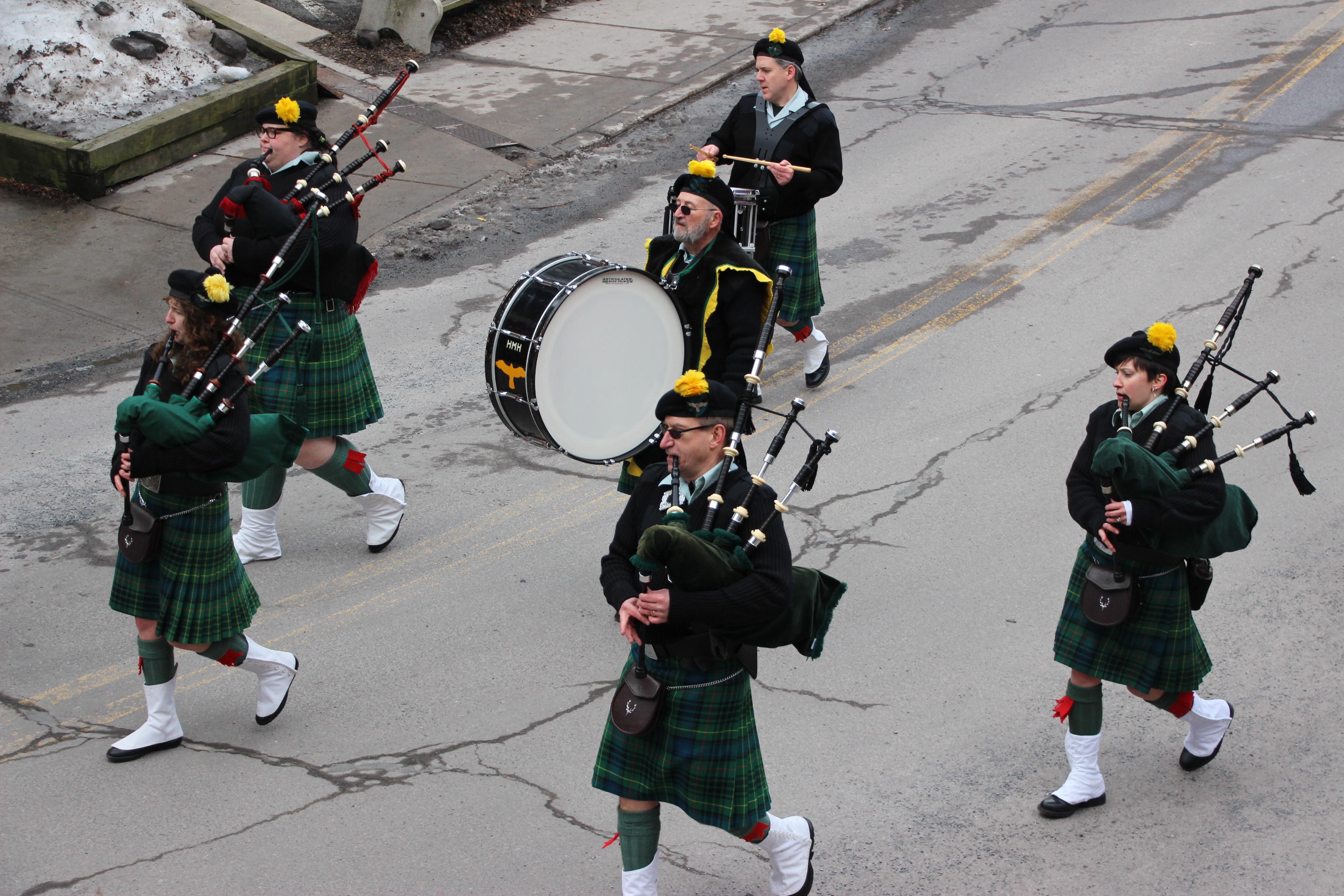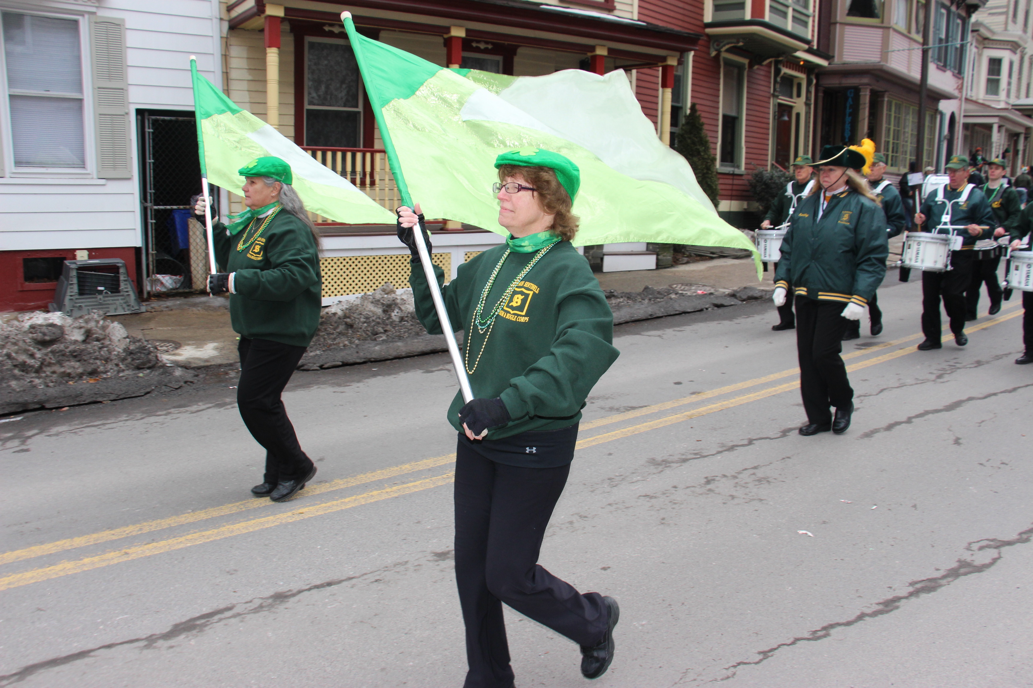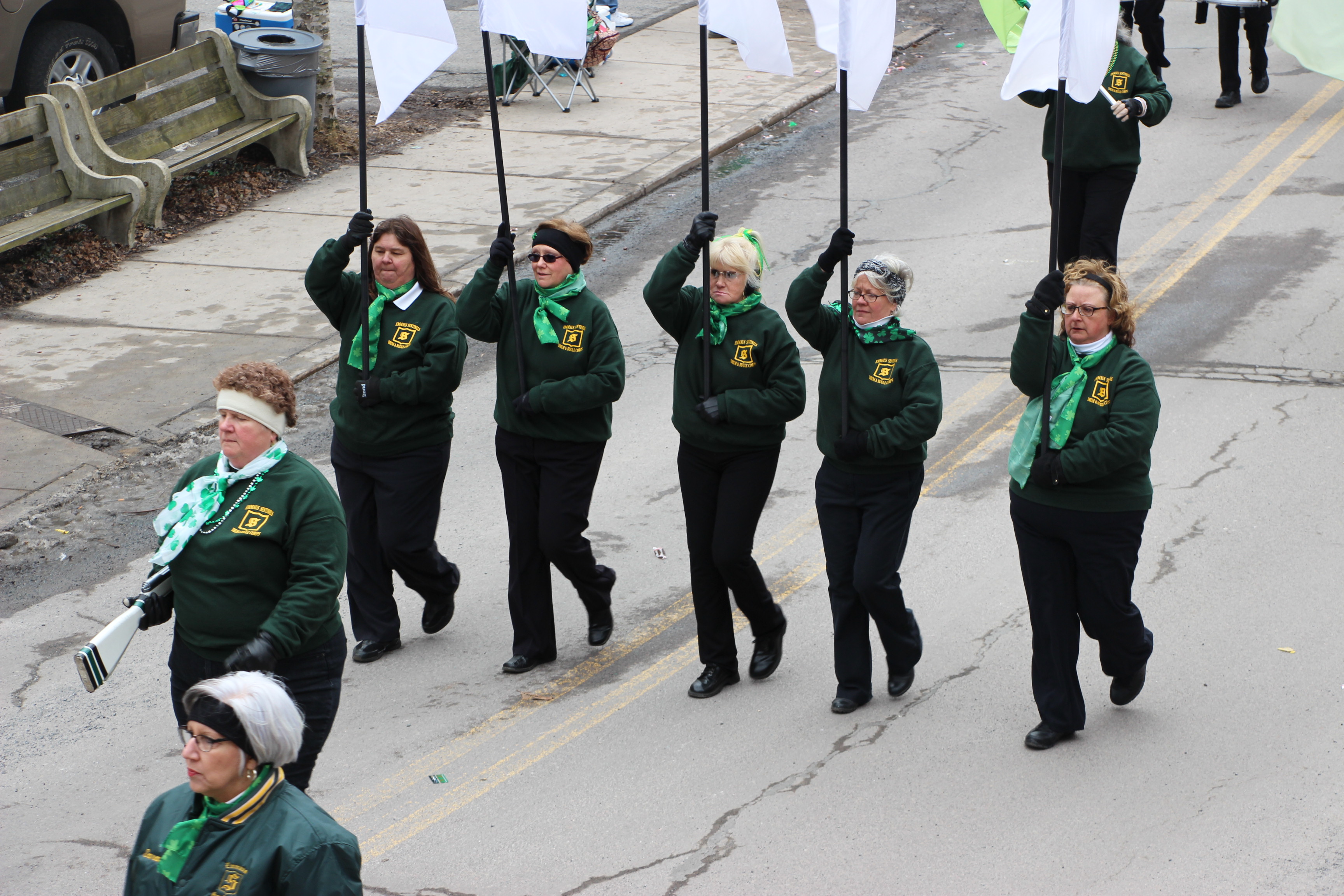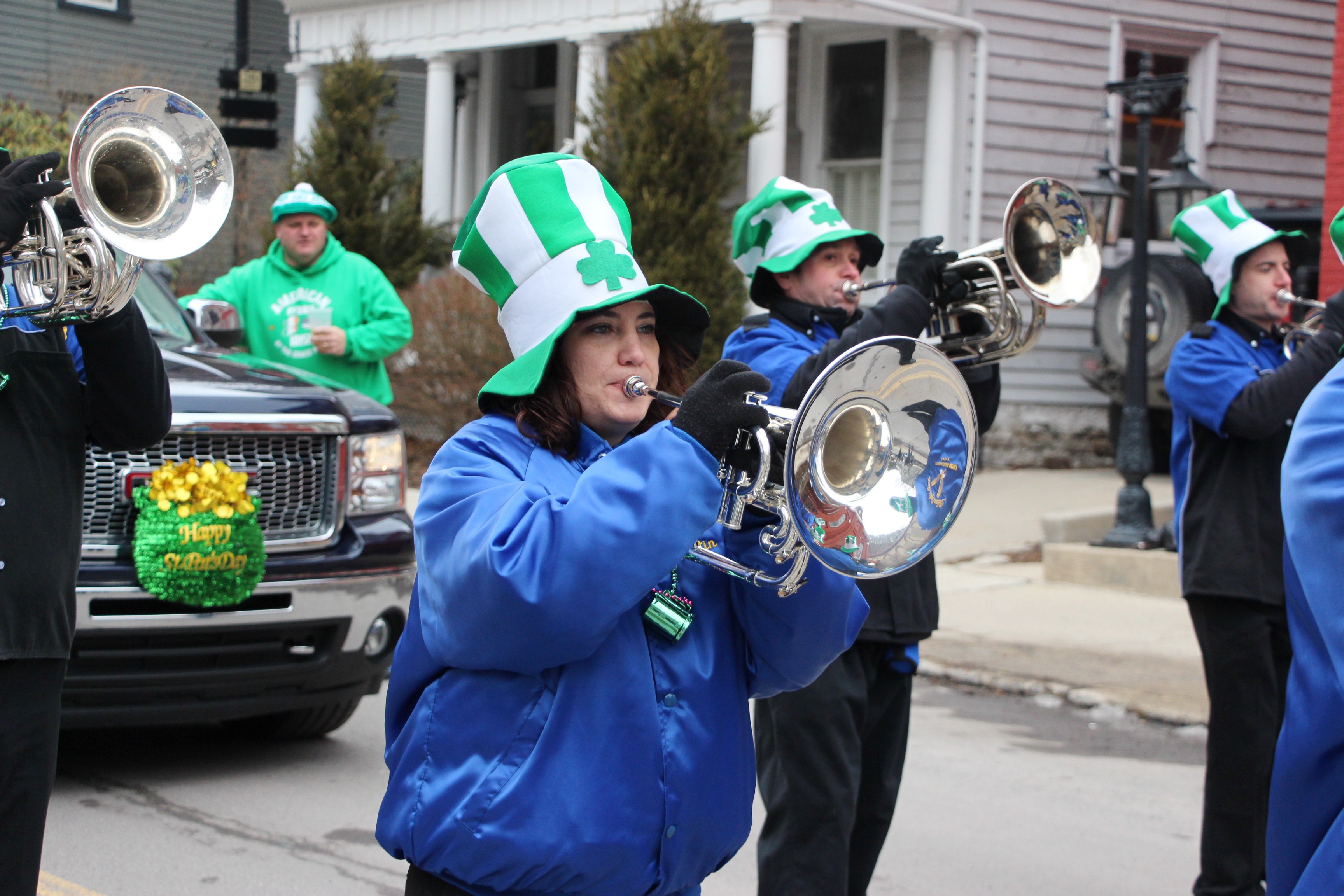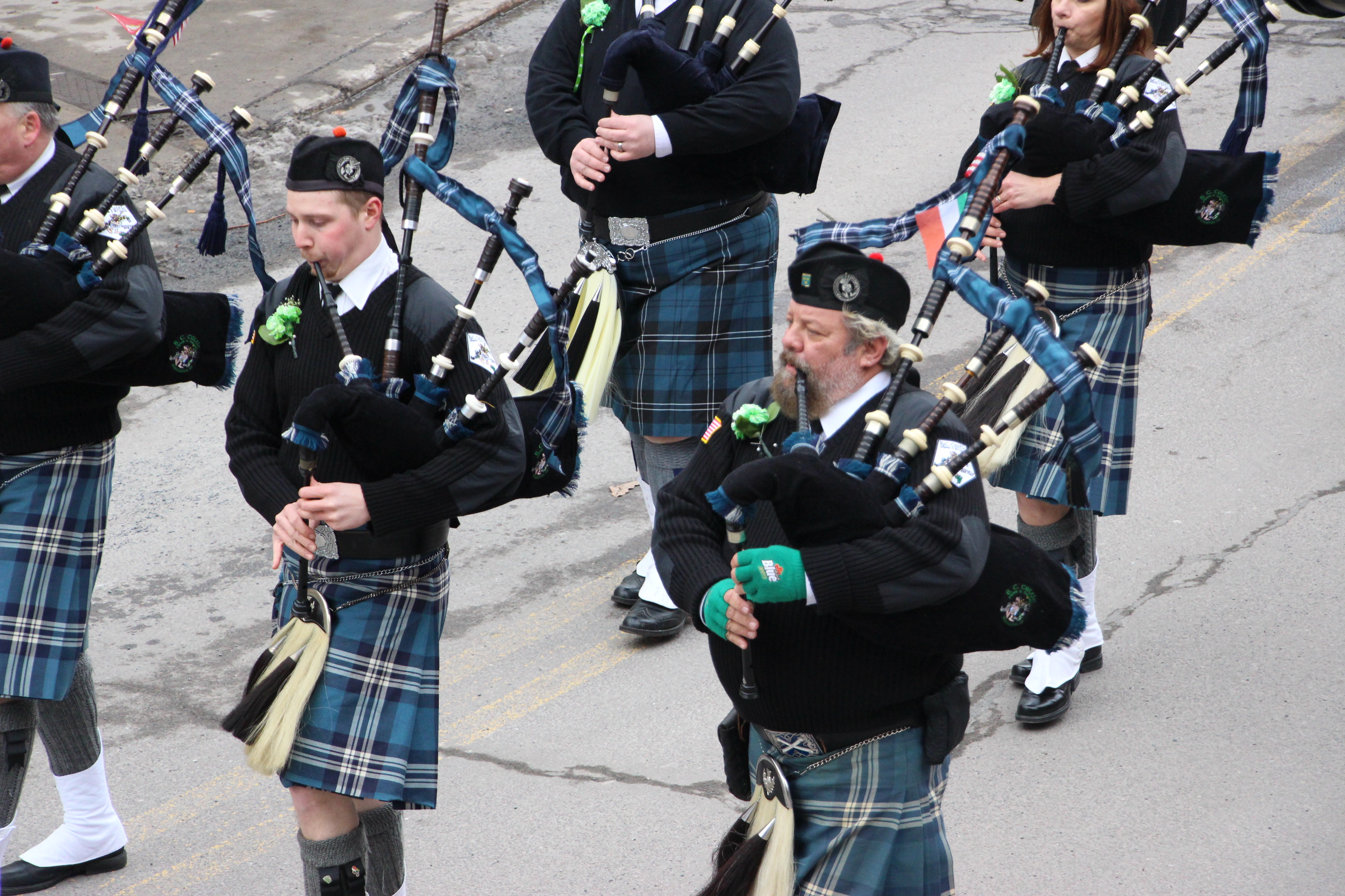 Jim Thorpe Police Department Cruiser and Mayor Michael Sofranko, Banner of St. Patrick, Grand Marshal Gary Dobias, Aides to the Grand Marshal, Lochiel Emerald Society Pipe and Drums, Ancient Order of Hibernians, Carbon County Chapter; Ladies Ancient Order of Hibernians, Carbon County Chapter; Chuck Thamarus Truck; California Raisins Volkswagon Beetle; Jim Thorpe Area High School Band; Congressman Matthew Cartwright; State Senator John Yudichak; State Representative Doyle Heffley; Carbon County Commissioners Thomas J. Gerhard, Wayne Nothstein and William O’Gurek; District Attorney Jean Engler; Carbon County Prothonotary Joann Behrens; Carbon County Director of Veterans’ Affairs Henry Desrosiers; Ceol Neamh; Lehigh County Ancient Order of Hibernians; Schuylkill-Carbon Marine Corps League Detachment 626; Quitapahilla Highlanders Pipe Band; U.S. Postal Service truck; Eclectic Circus; Bear Creek Golf Carts; and Sinister Rouge Pin Up and More.
