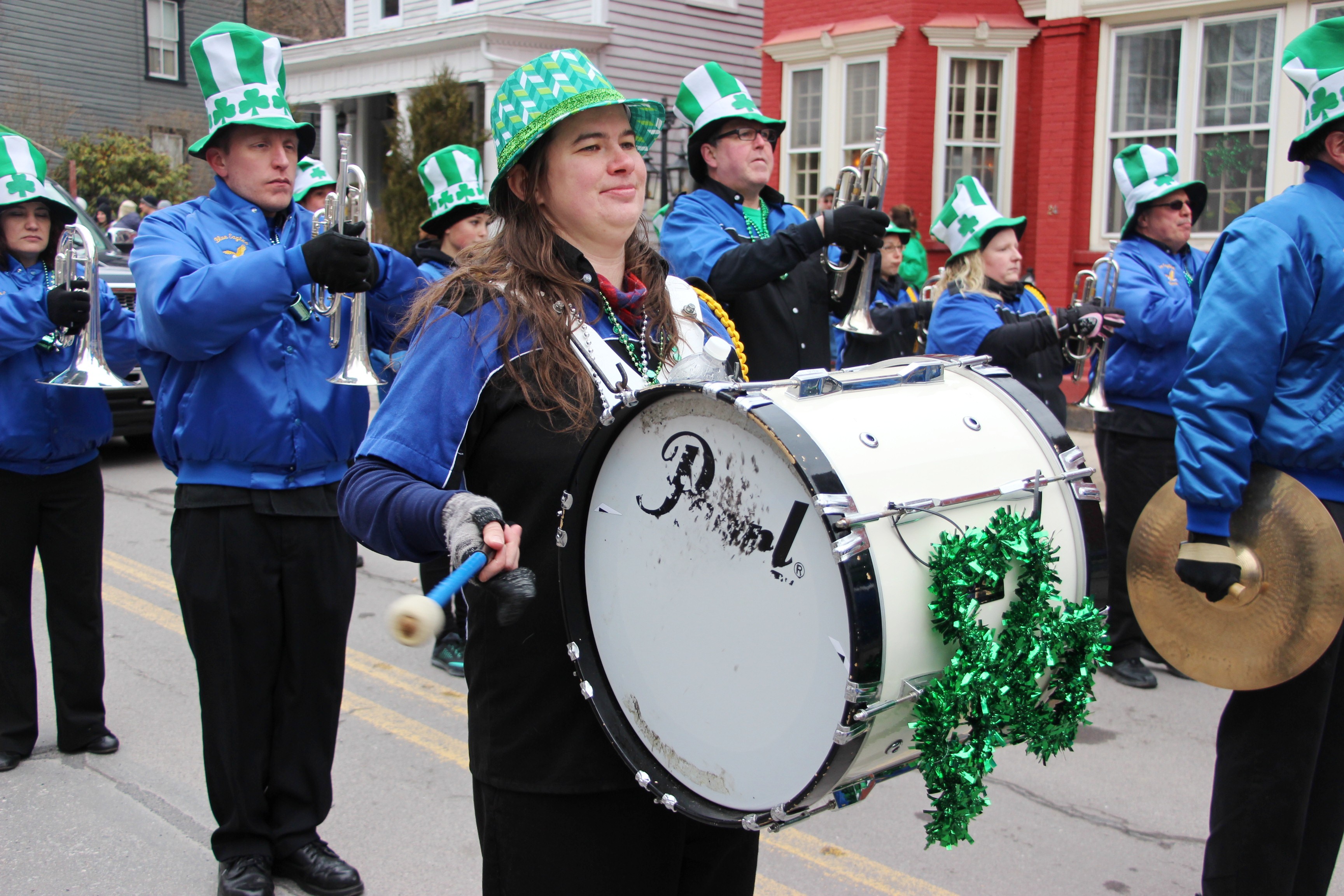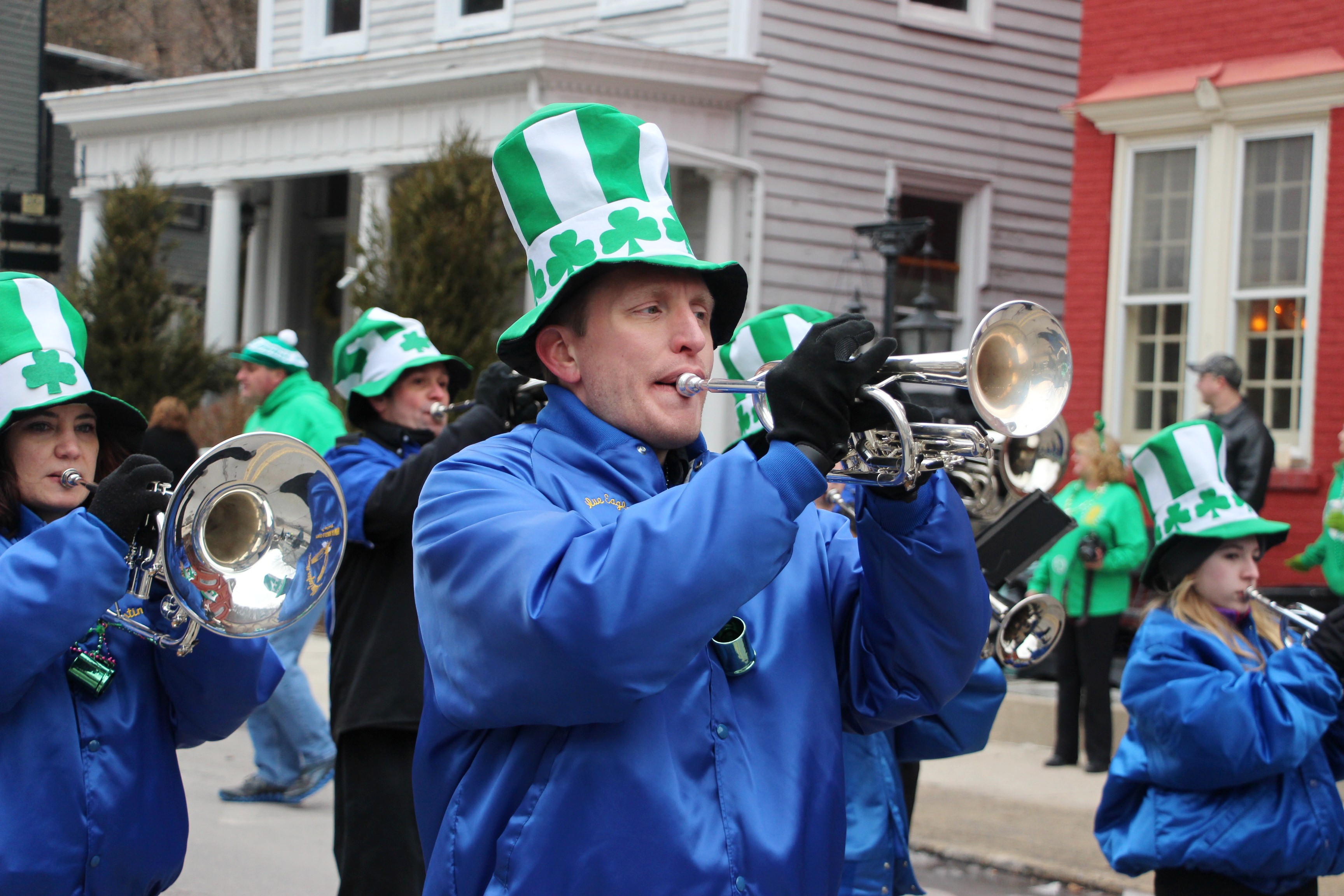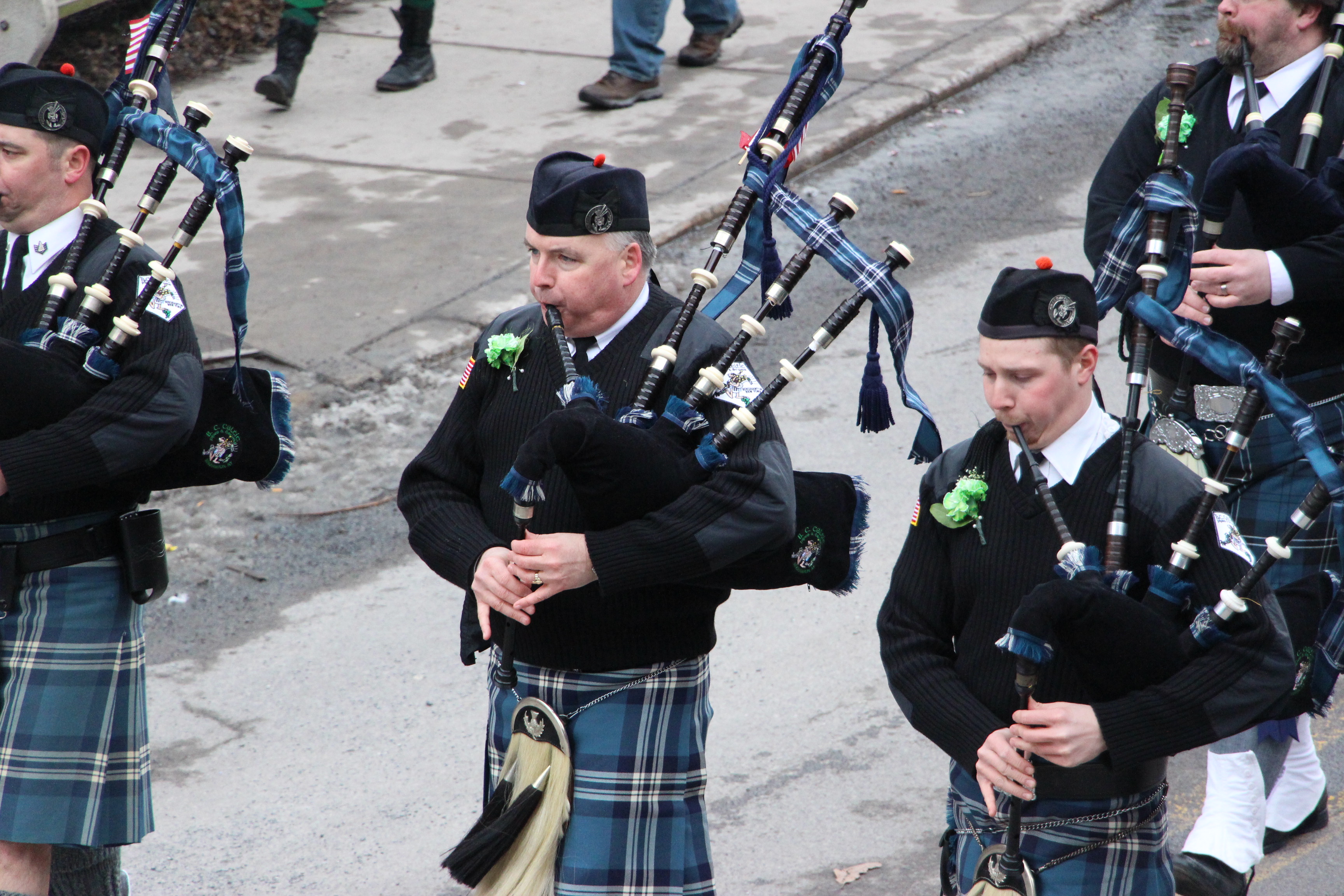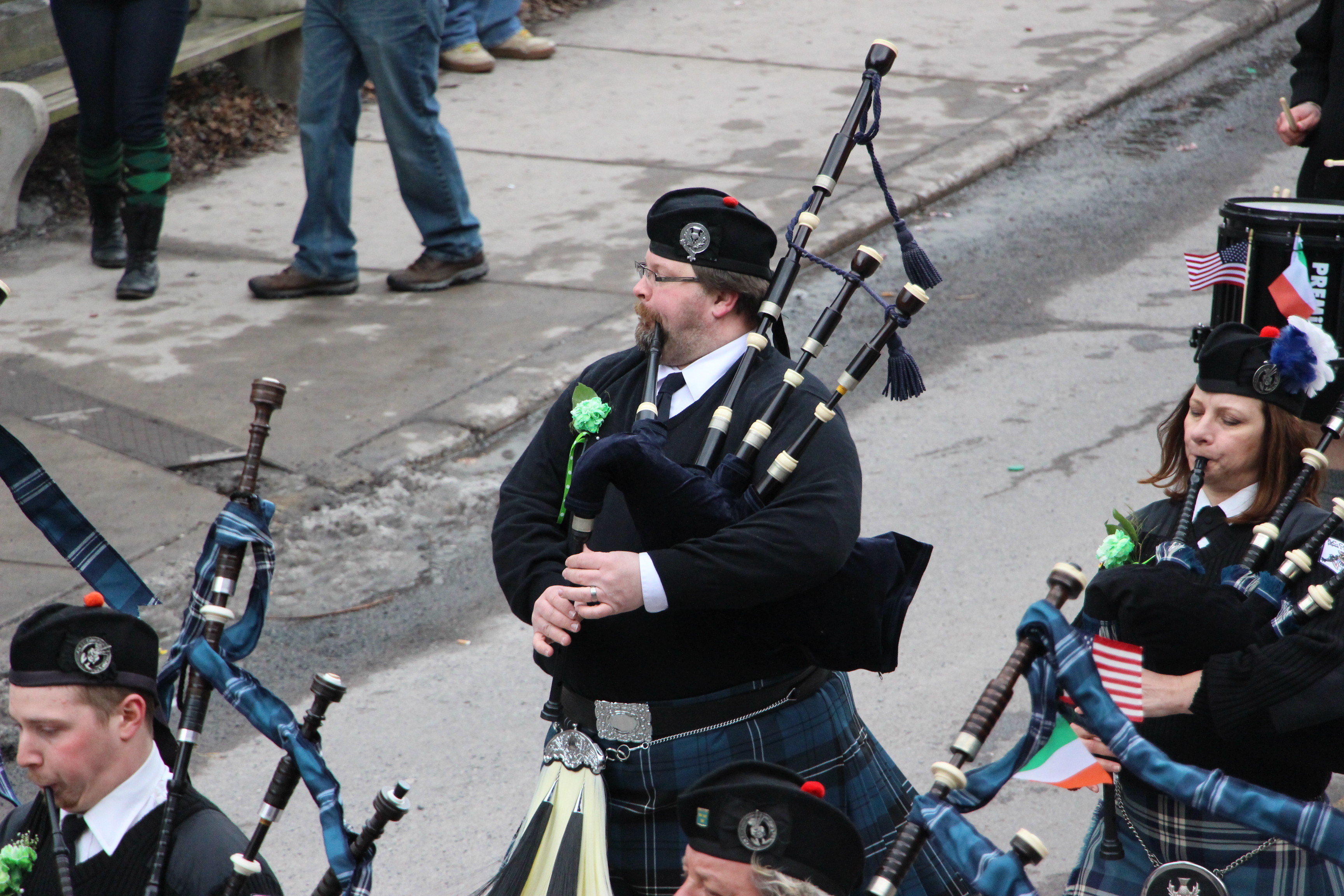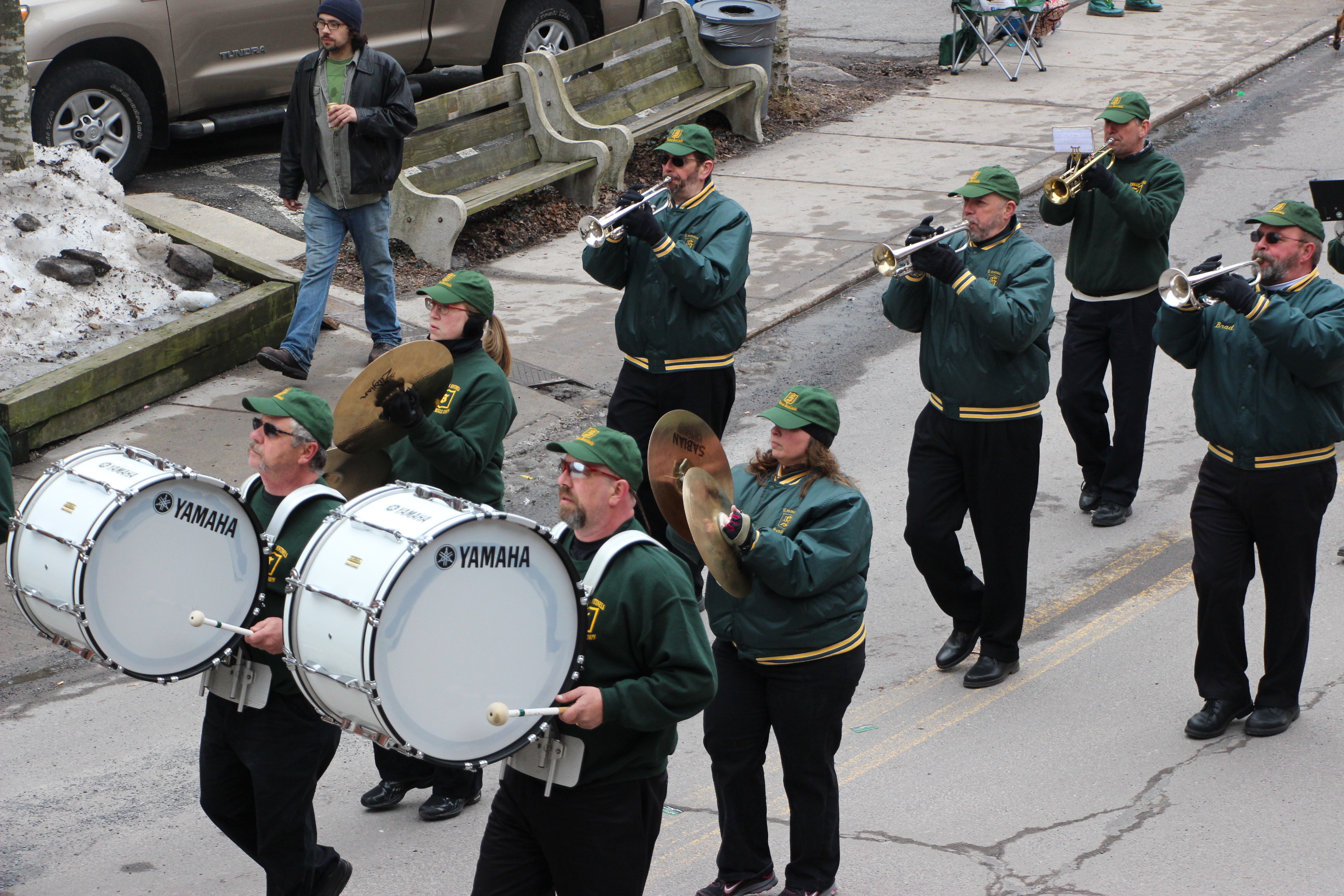 Jim Thorpe Police Department Cruiser and Mayor Michael Sofranko, Banner of St. Patrick, Grand Marshal Gary Dobias, Aides to the Grand Marshal, Lochiel Emerald Society Pipe and Drums, Ancient Order of Hibernians, Carbon County Chapter; Ladies Ancient Order of Hibernians, Carbon County Chapter; Chuck Thamarus Truck; California Raisins Volkswagon Beetle; Jim Thorpe Area High School Band; Congressman Matthew Cartwright; State Senator John Yudichak; State Representative Doyle Heffley; Carbon County Commissioners Thomas J. Gerhard, Wayne Nothstein and William O’Gurek; District Attorney Jean Engler; Carbon County Prothonotary Joann Behrens; Carbon County Director of Veterans’ Affairs Henry Desrosiers; Ceol Neamh; Lehigh County Ancient Order of Hibernians; Schuylkill-Carbon Marine Corps League Detachment 626; Quitapahilla Highlanders Pipe Band; U.S. Postal Service truck; Eclectic Circus; Bear Creek Golf Carts; and Sinister Rouge Pin Up and More.