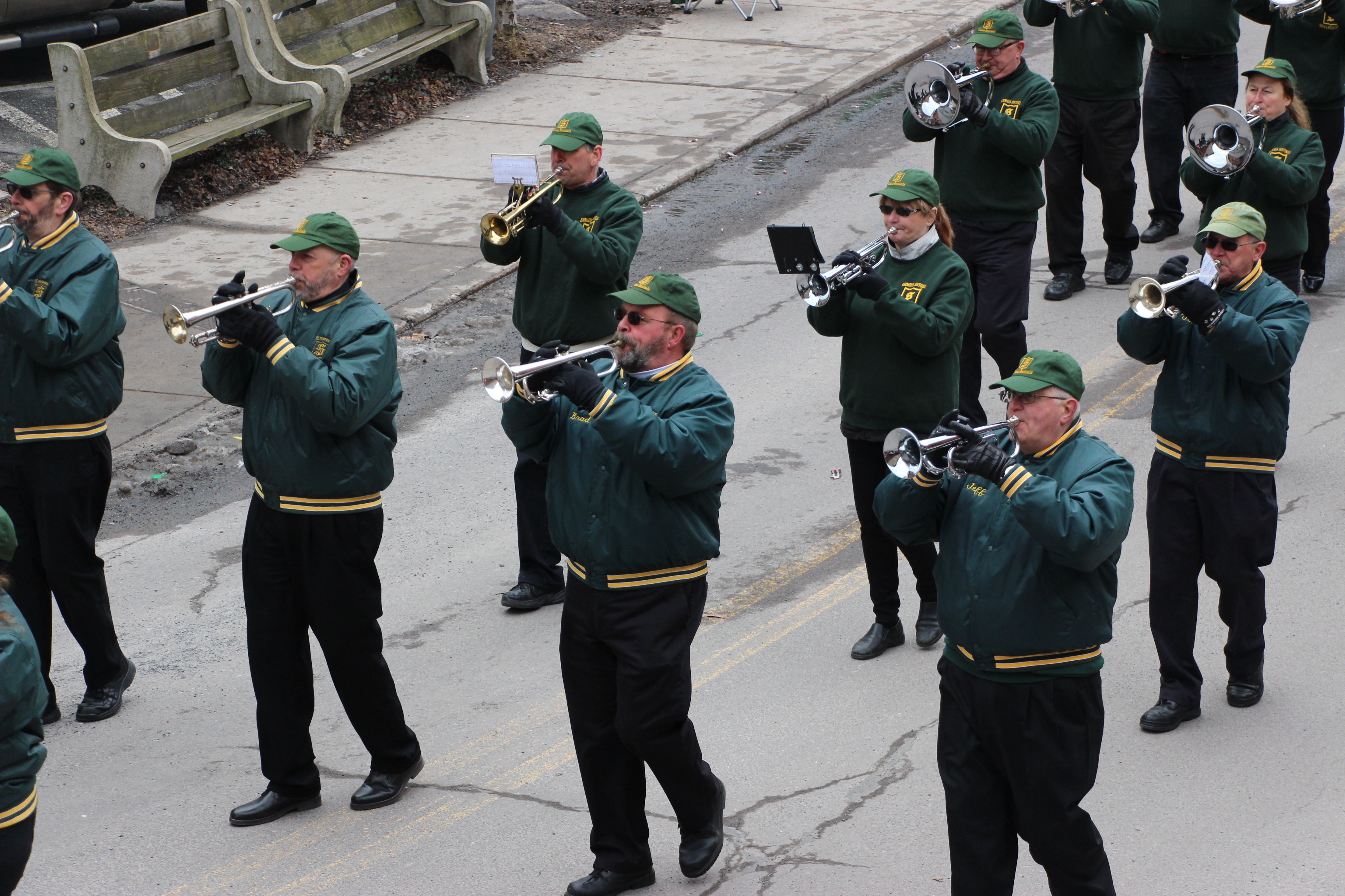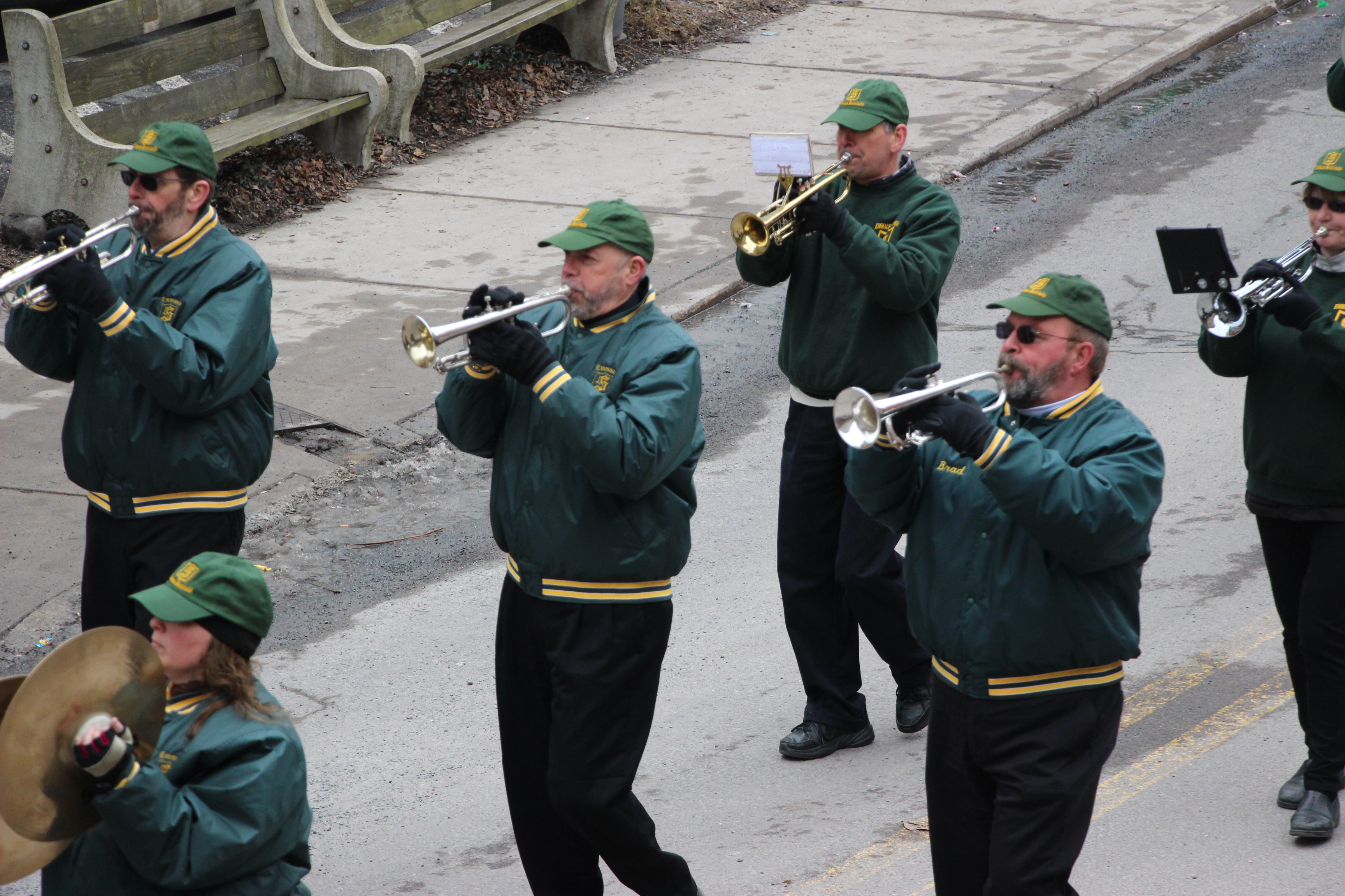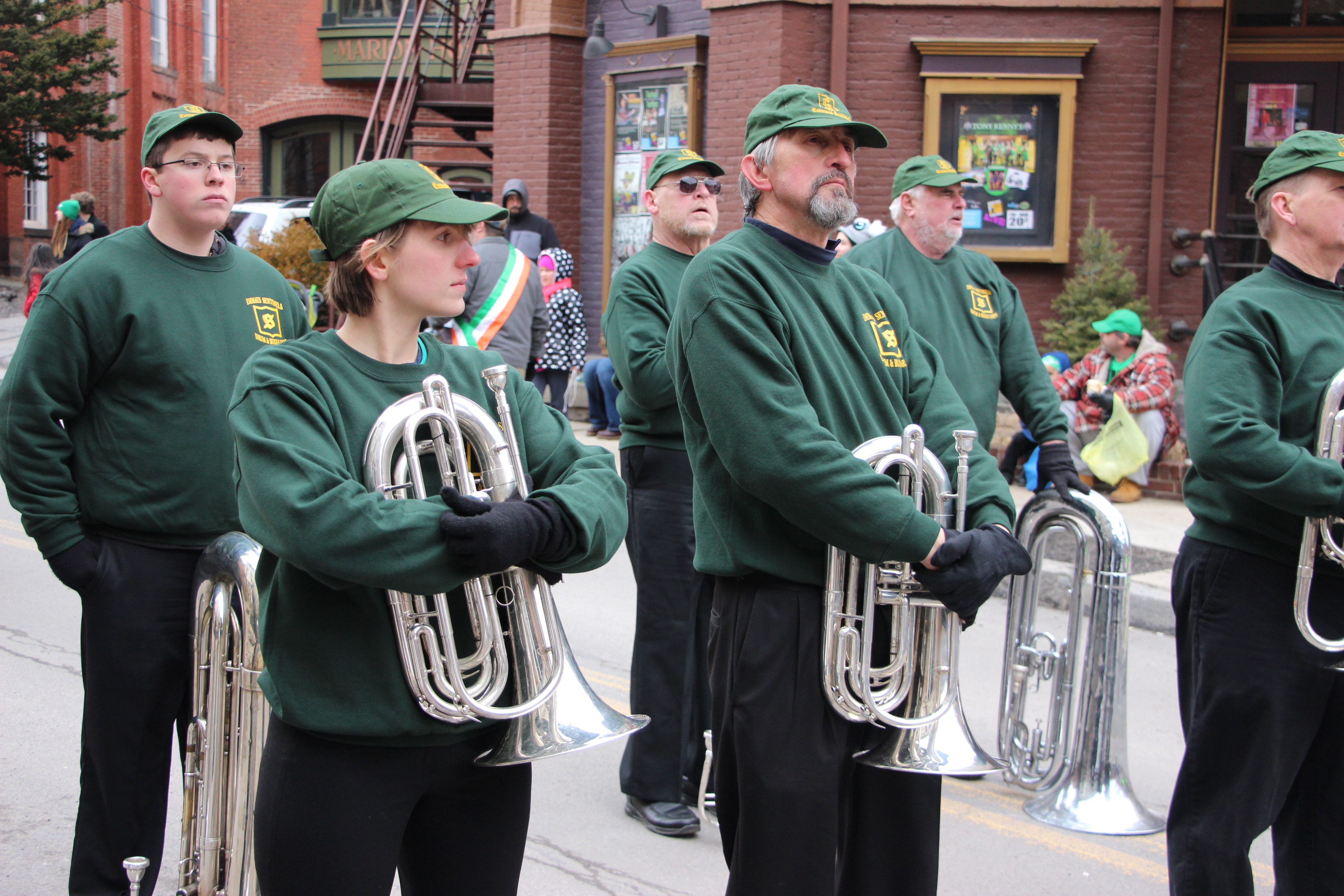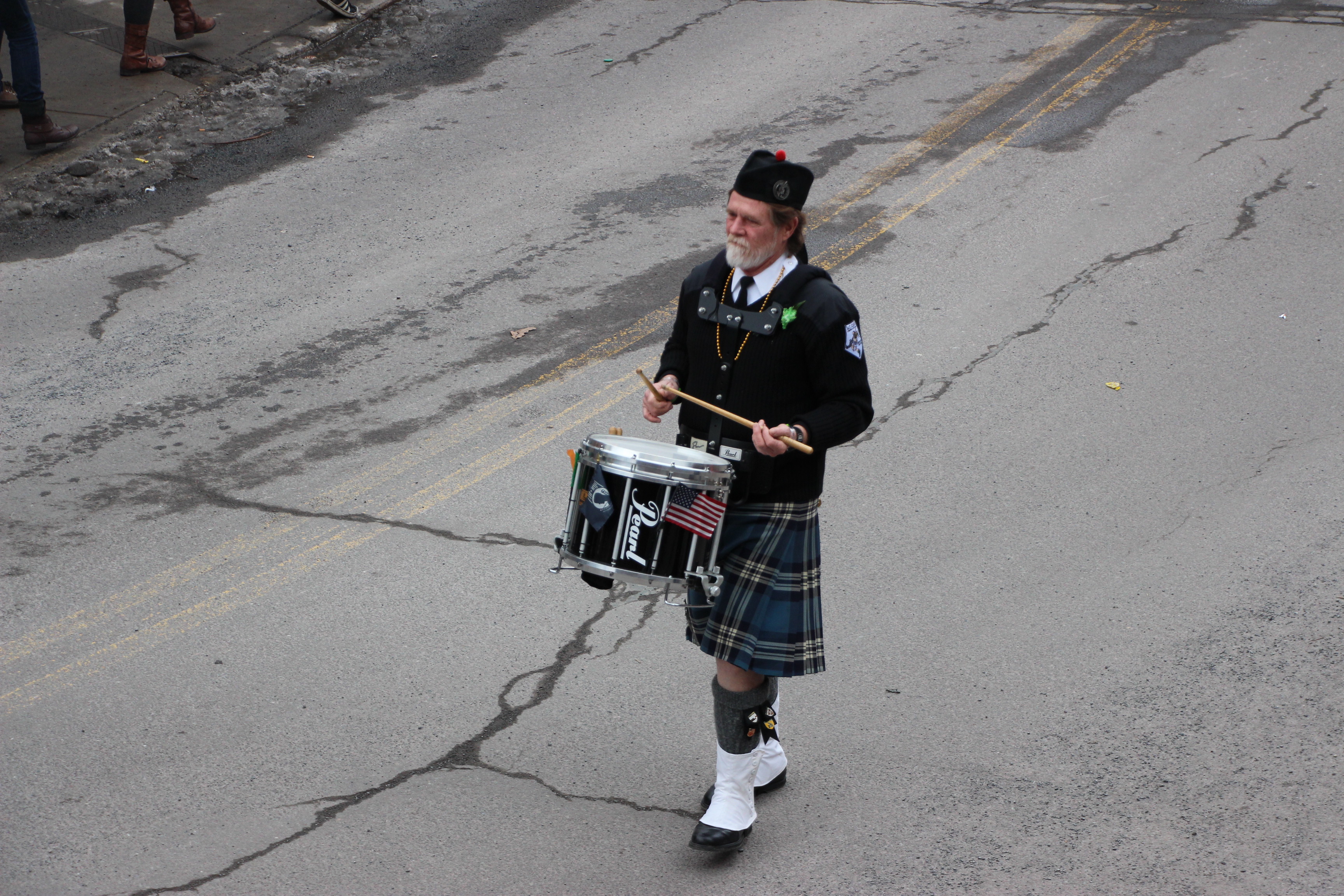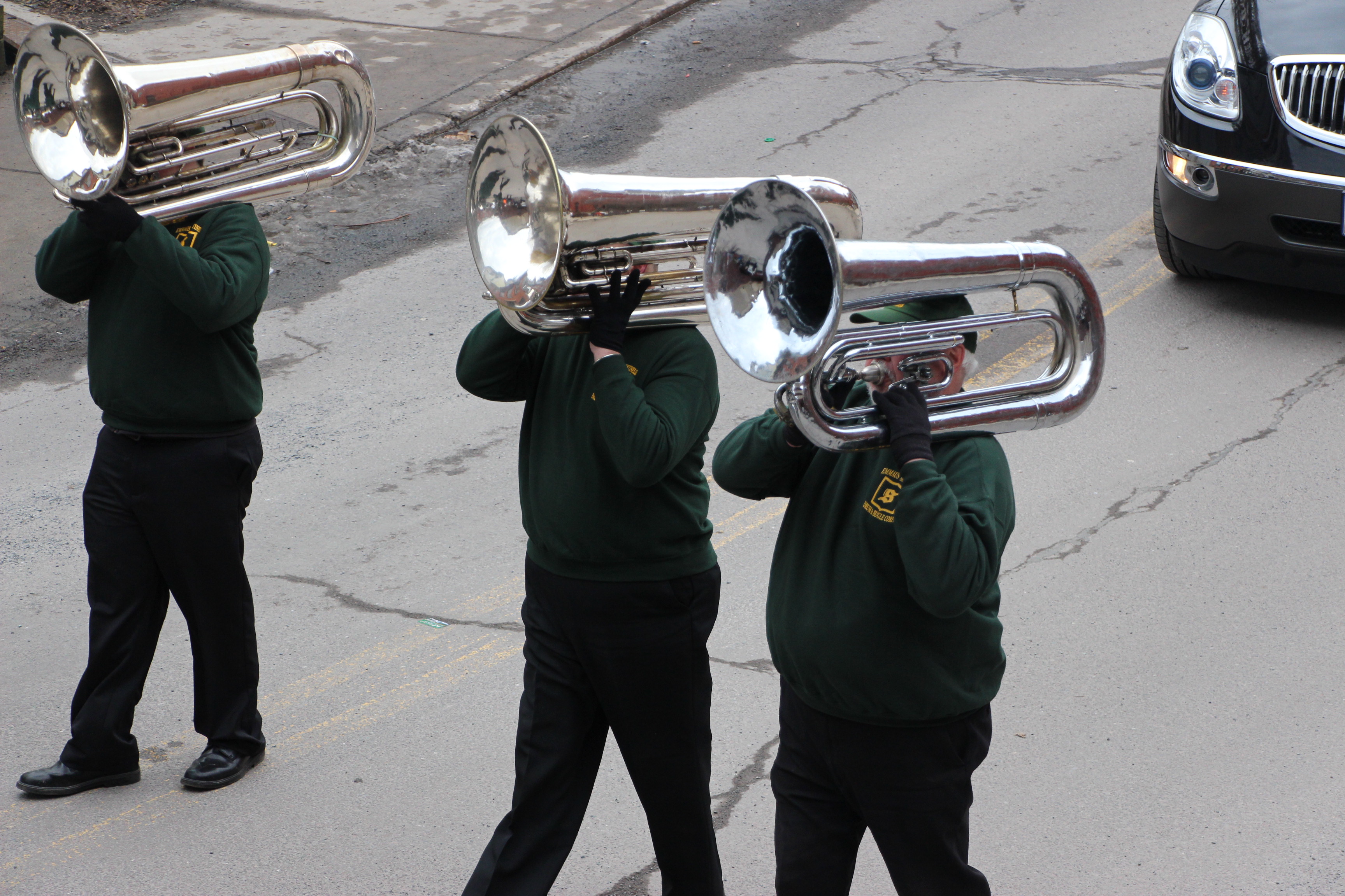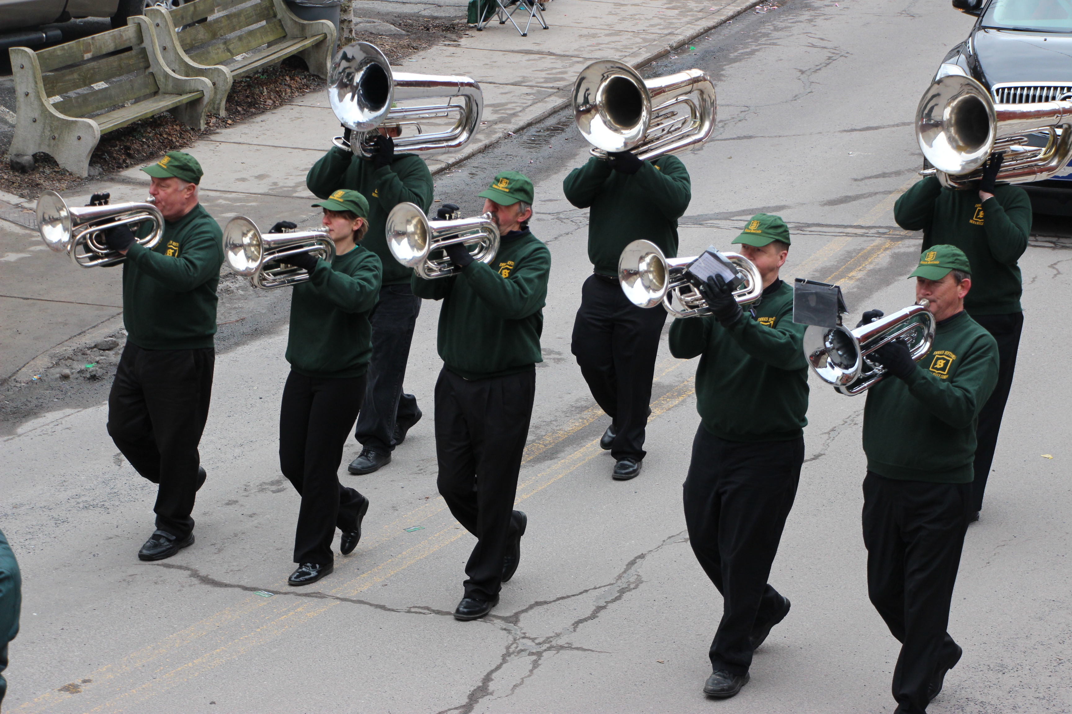 Jim Thorpe Police Department Cruiser and Mayor Michael Sofranko, Banner of St. Patrick, Grand Marshal Gary Dobias, Aides to the Grand Marshal, Lochiel Emerald Society Pipe and Drums, Ancient Order of Hibernians, Carbon County Chapter; Ladies Ancient Order of Hibernians, Carbon County Chapter; Chuck Thamarus Truck; California Raisins Volkswagon Beetle; Jim Thorpe Area High School Band; Congressman Matthew Cartwright; State Senator John Yudichak; State Representative Doyle Heffley; Carbon County Commissioners Thomas J. Gerhard, Wayne Nothstein and William O’Gurek; District Attorney Jean Engler; Carbon County Prothonotary Joann Behrens; Carbon County Director of Veterans’ Affairs Henry Desrosiers; Ceol Neamh; Lehigh County Ancient Order of Hibernians; Schuylkill-Carbon Marine Corps League Detachment 626; Quitapahilla Highlanders Pipe Band; U.S. Postal Service truck; Eclectic Circus; Bear Creek Golf Carts; and Sinister Rouge Pin Up and More.
