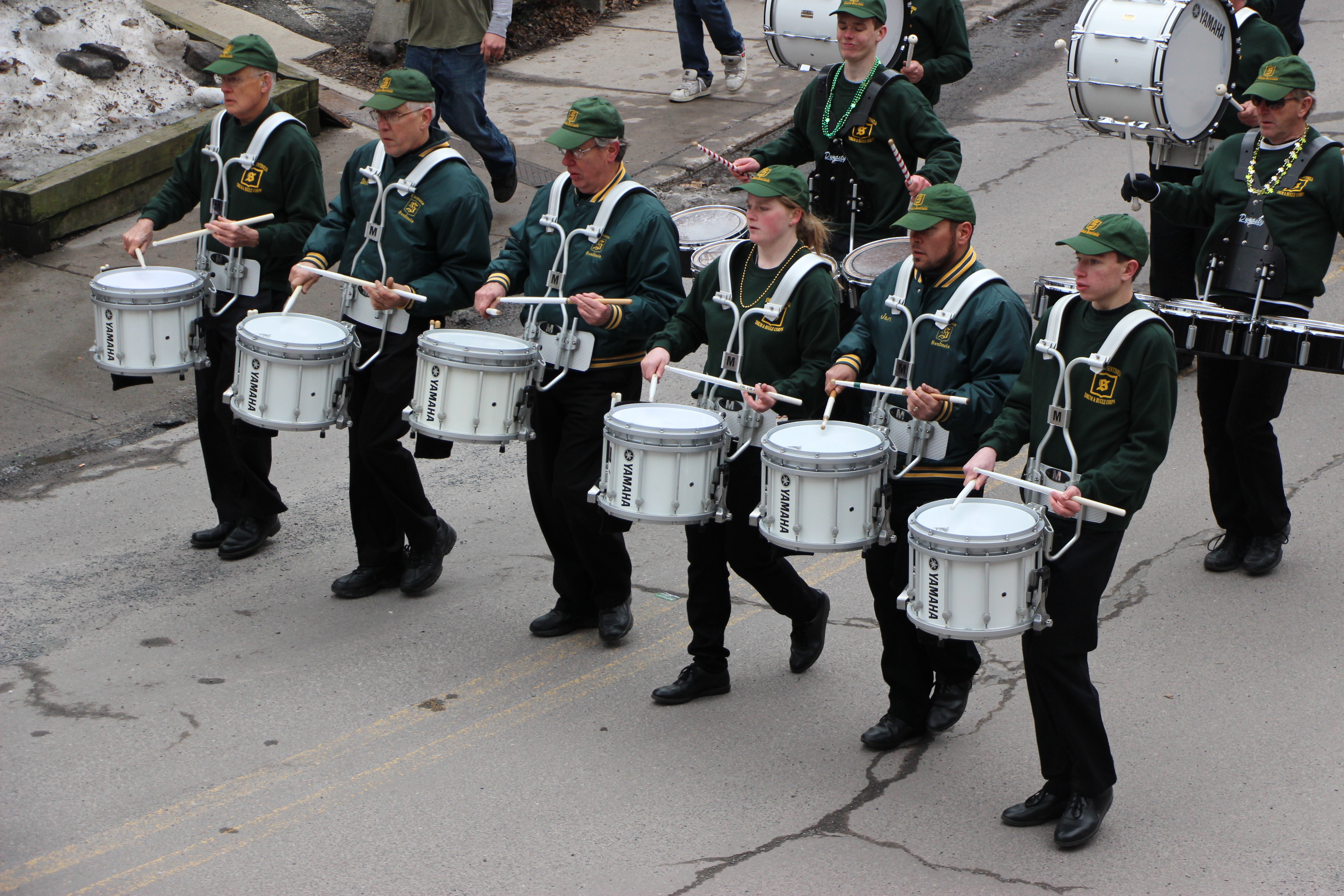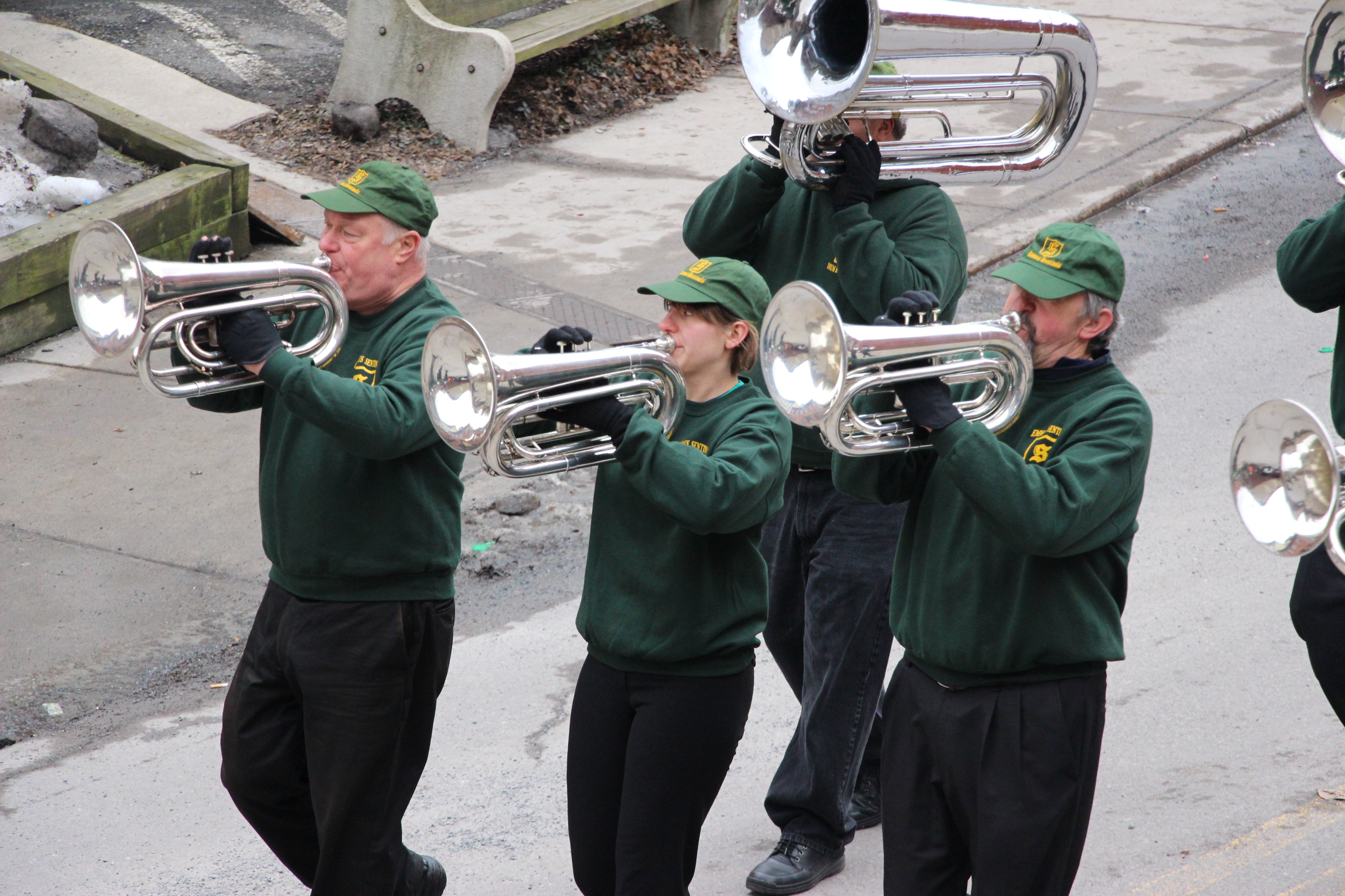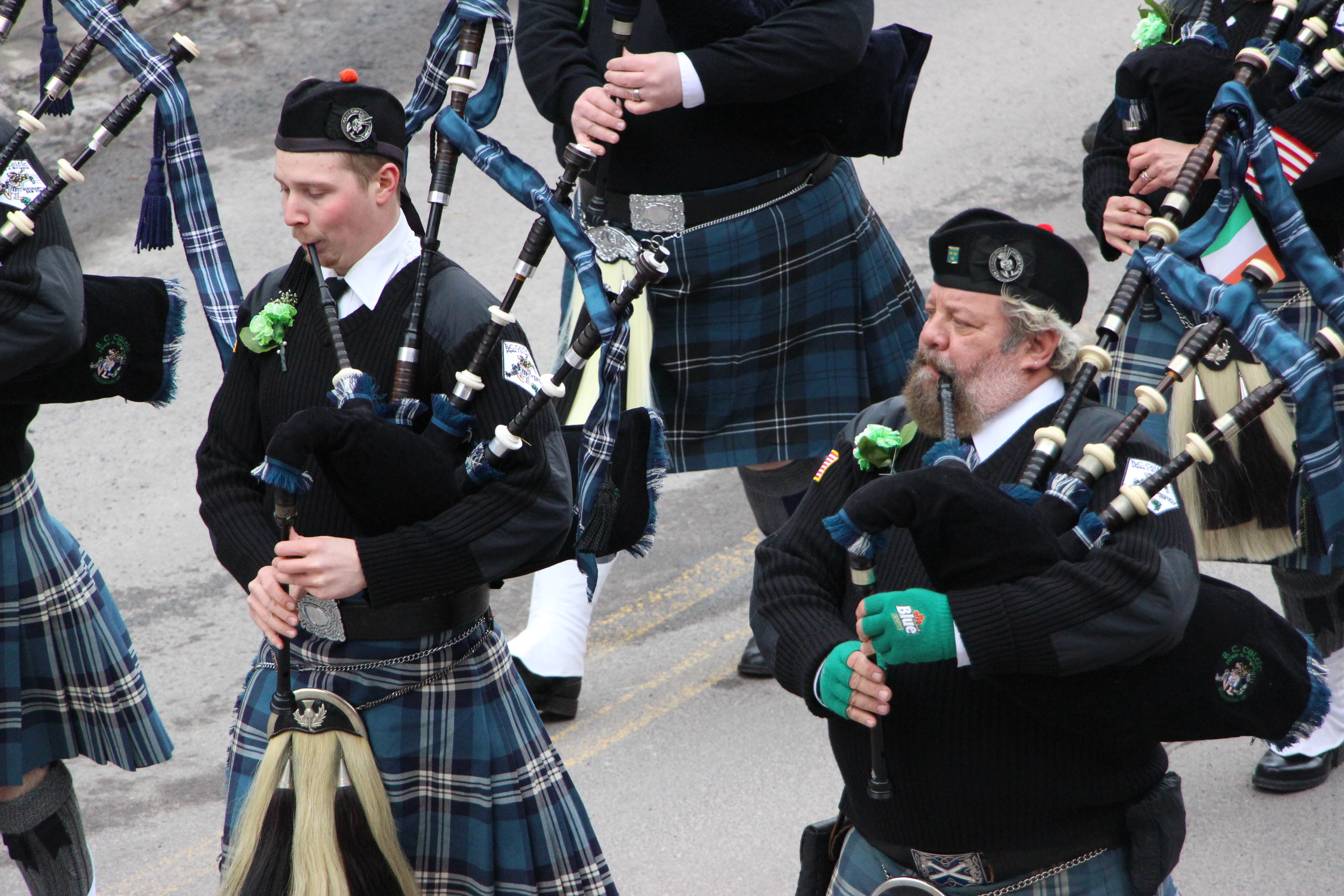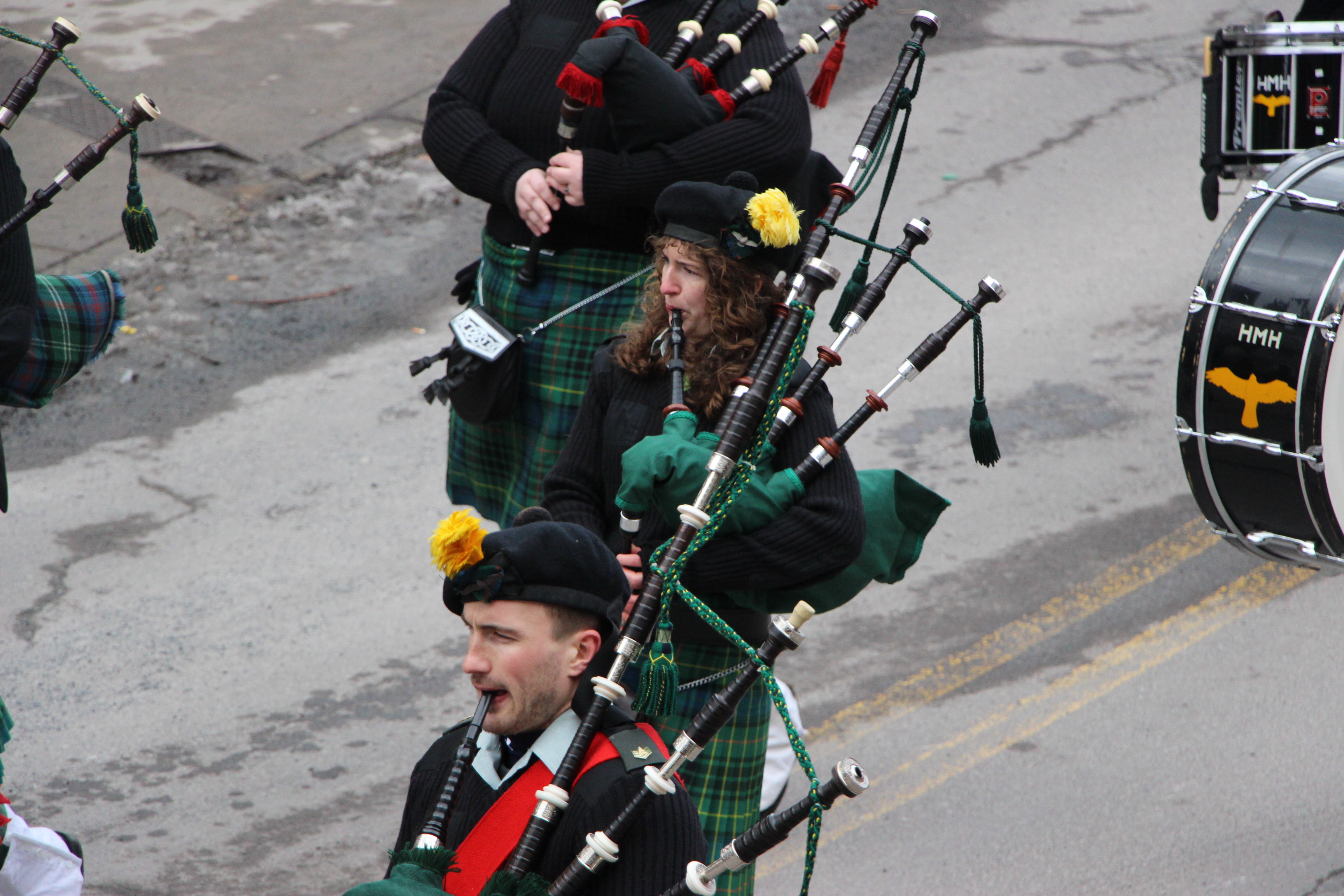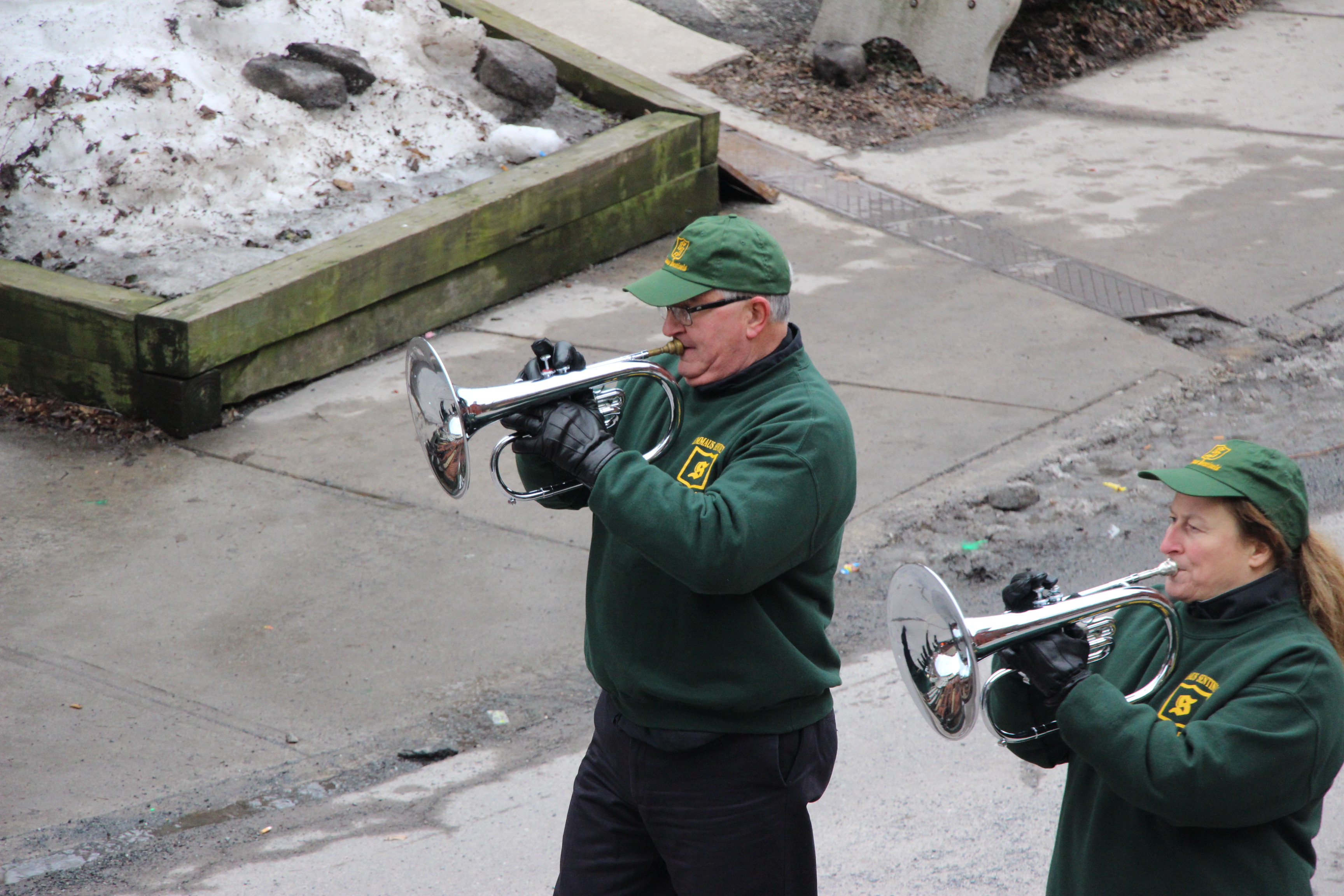 Jim Thorpe Police Department Cruiser and Mayor Michael Sofranko, Banner of St. Patrick, Grand Marshal Gary Dobias, Aides to the Grand Marshal, Lochiel Emerald Society Pipe and Drums, Ancient Order of Hibernians, Carbon County Chapter; Ladies Ancient Order of Hibernians, Carbon County Chapter; Chuck Thamarus Truck; California Raisins Volkswagon Beetle; Jim Thorpe Area High School Band; Congressman Matthew Cartwright; State Senator John Yudichak; State Representative Doyle Heffley; Carbon County Commissioners Thomas J. Gerhard, Wayne Nothstein and William O’Gurek; District Attorney Jean Engler; Carbon County Prothonotary Joann Behrens; Carbon County Director of Veterans’ Affairs Henry Desrosiers; Ceol Neamh; Lehigh County Ancient Order of Hibernians; Schuylkill-Carbon Marine Corps League Detachment 626; Quitapahilla Highlanders Pipe Band; U.S. Postal Service truck; Eclectic Circus; Bear Creek Golf Carts; and Sinister Rouge Pin Up and More.
