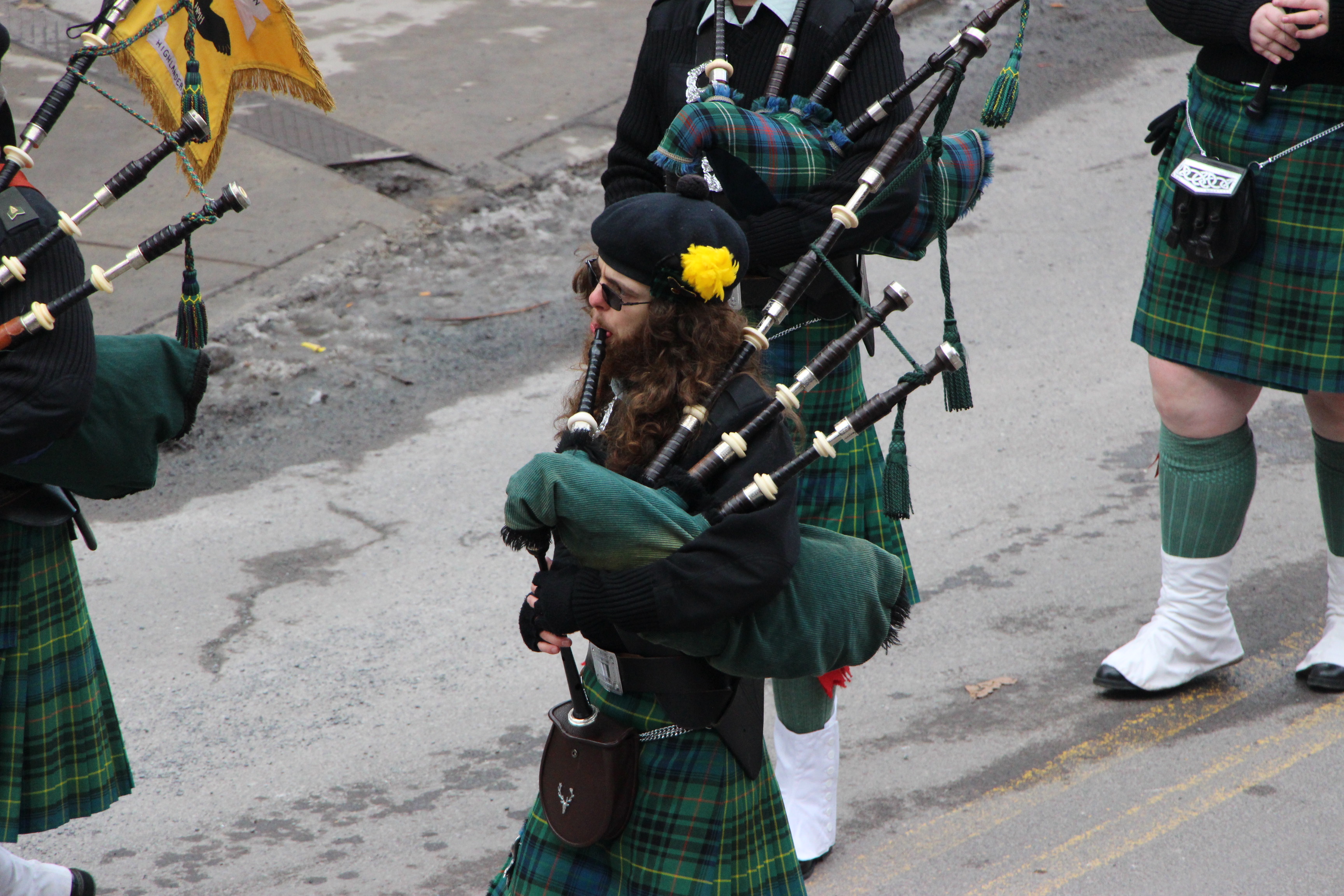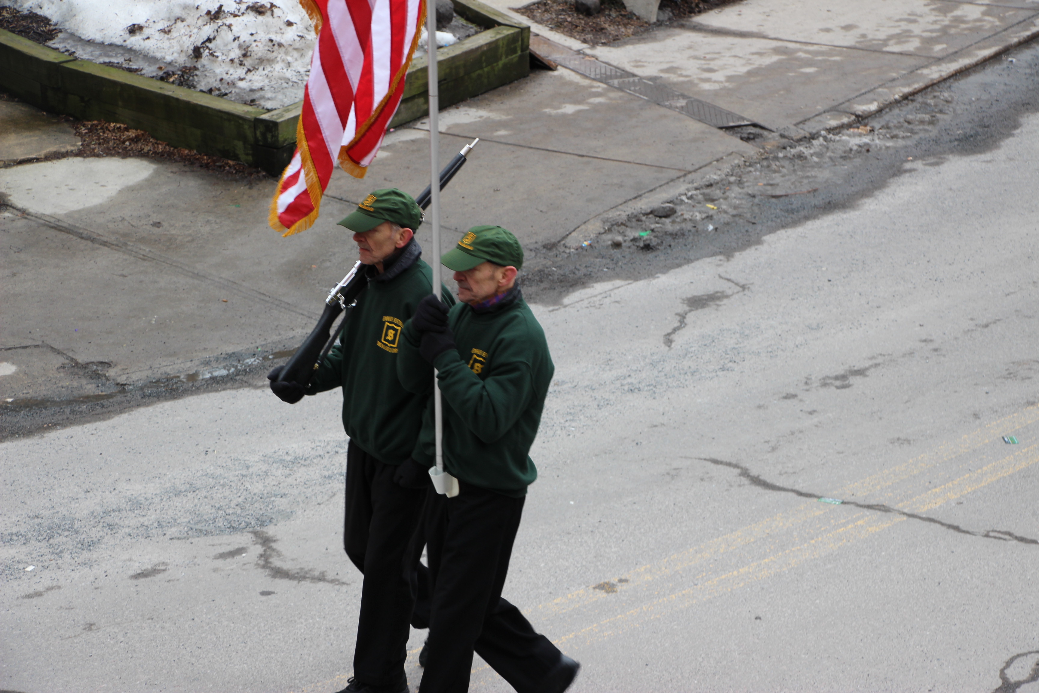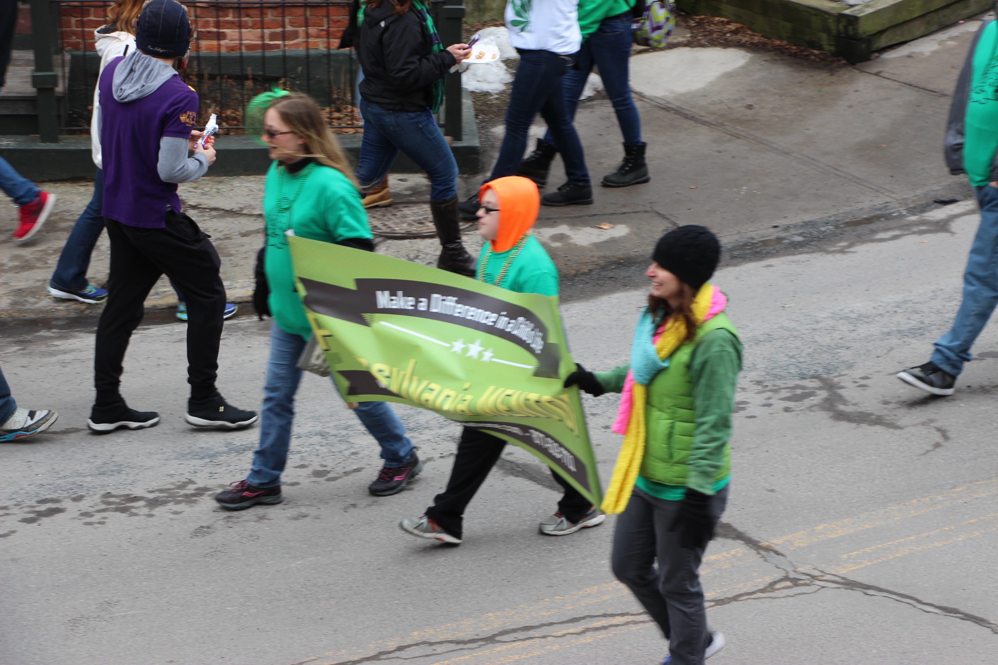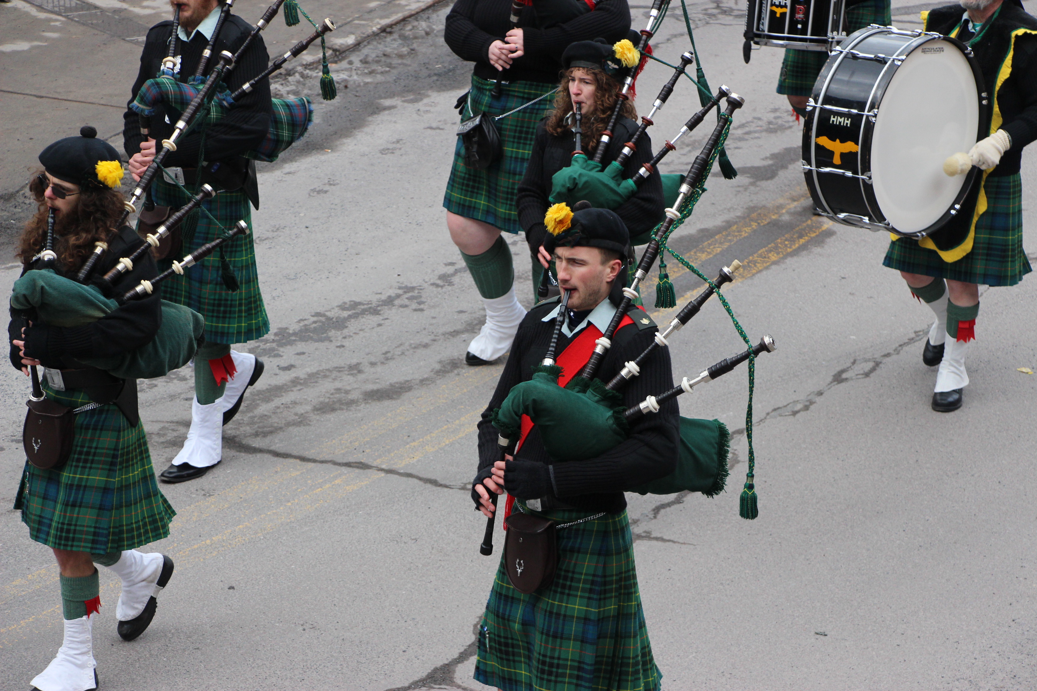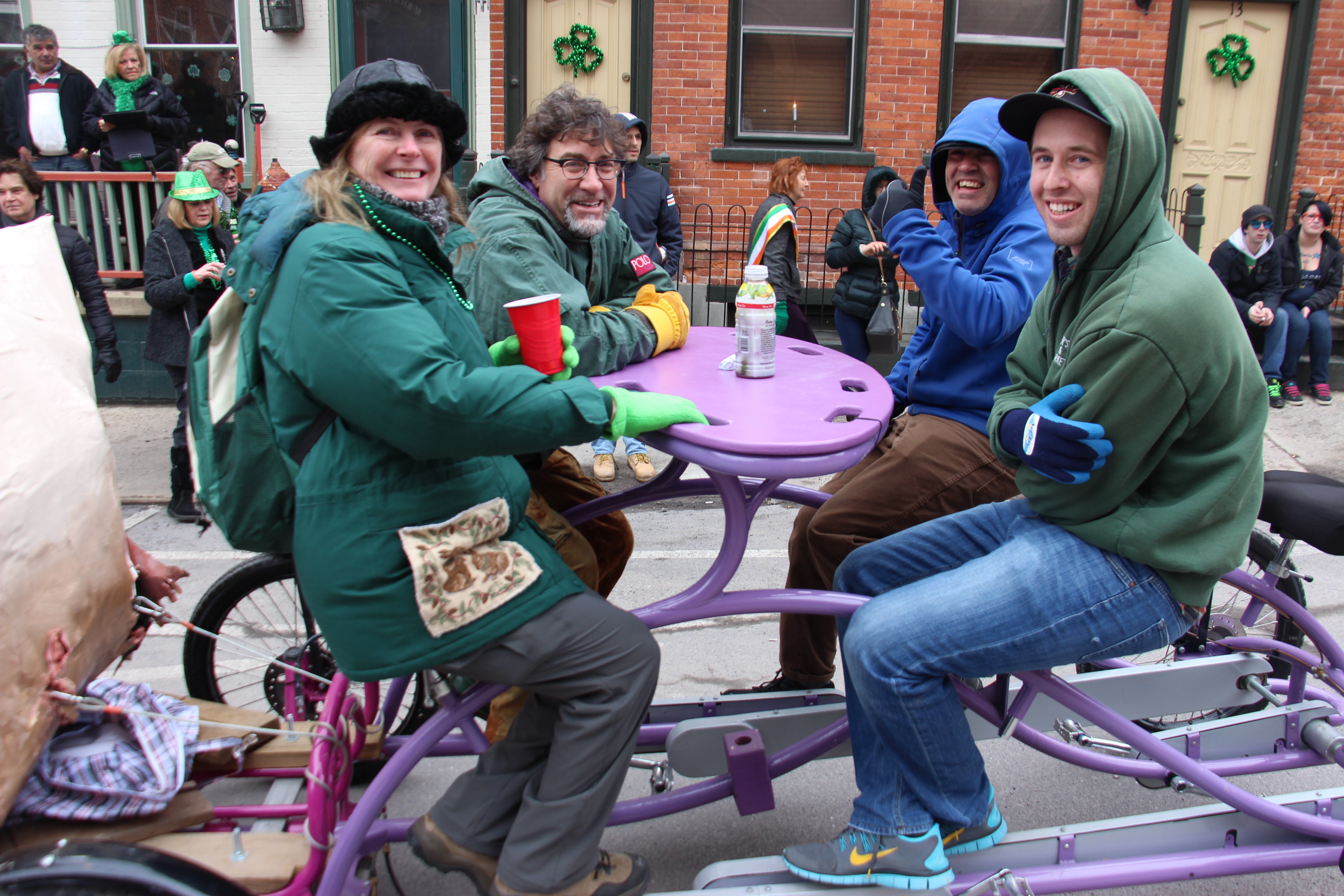 Jim Thorpe Police Department Cruiser and Mayor Michael Sofranko, Banner of St. Patrick, Grand Marshal Gary Dobias, Aides to the Grand Marshal, Lochiel Emerald Society Pipe and Drums, Ancient Order of Hibernians, Carbon County Chapter; Ladies Ancient Order of Hibernians, Carbon County Chapter; Chuck Thamarus Truck; California Raisins Volkswagon Beetle; Jim Thorpe Area High School Band; Congressman Matthew Cartwright; State Senator John Yudichak; State Representative Doyle Heffley; Carbon County Commissioners Thomas J. Gerhard, Wayne Nothstein and William O’Gurek; District Attorney Jean Engler; Carbon County Prothonotary Joann Behrens; Carbon County Director of Veterans’ Affairs Henry Desrosiers; Ceol Neamh; Lehigh County Ancient Order of Hibernians; Schuylkill-Carbon Marine Corps League Detachment 626; Quitapahilla Highlanders Pipe Band; U.S. Postal Service truck; Eclectic Circus; Bear Creek Golf Carts; and Sinister Rouge Pin Up and More.