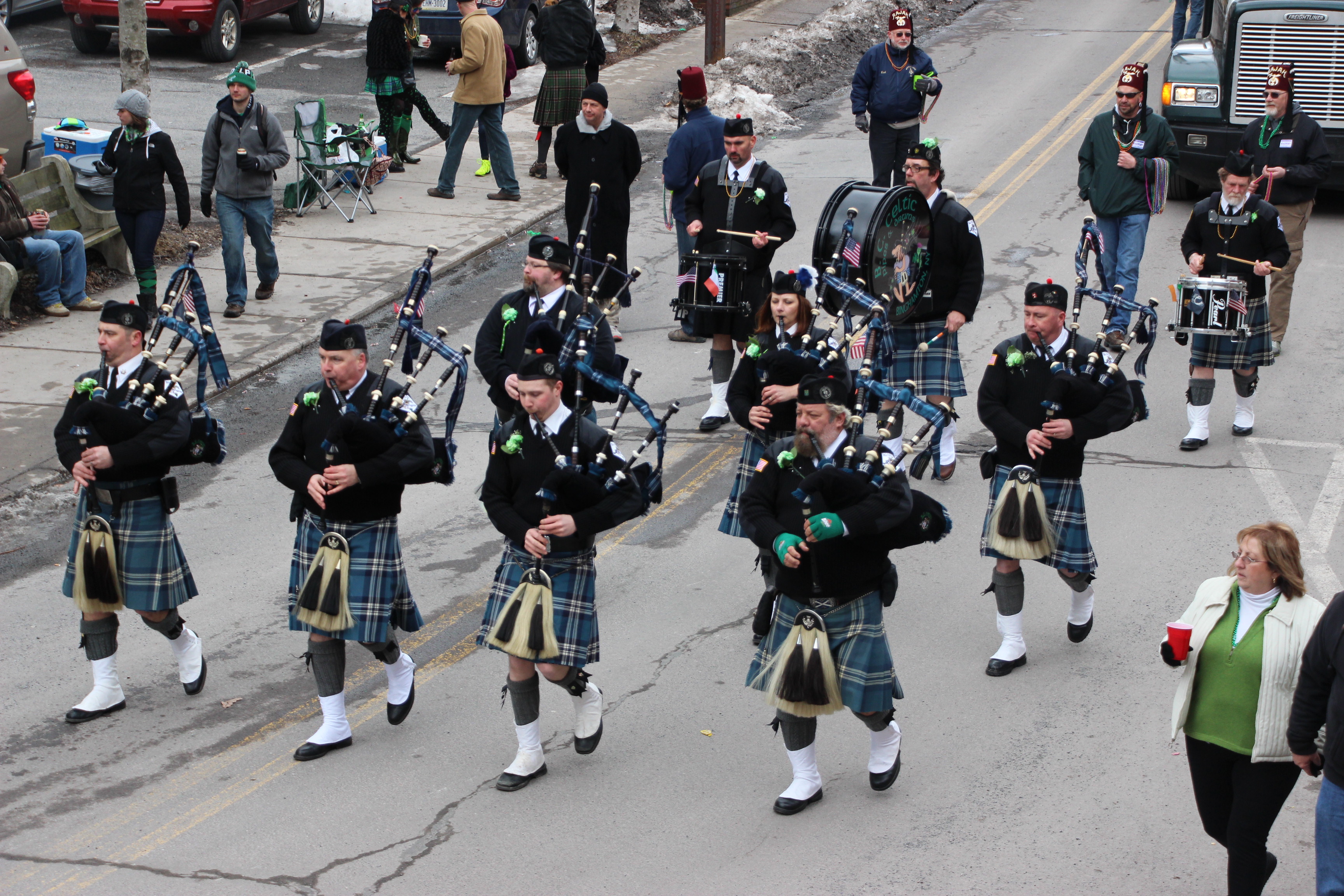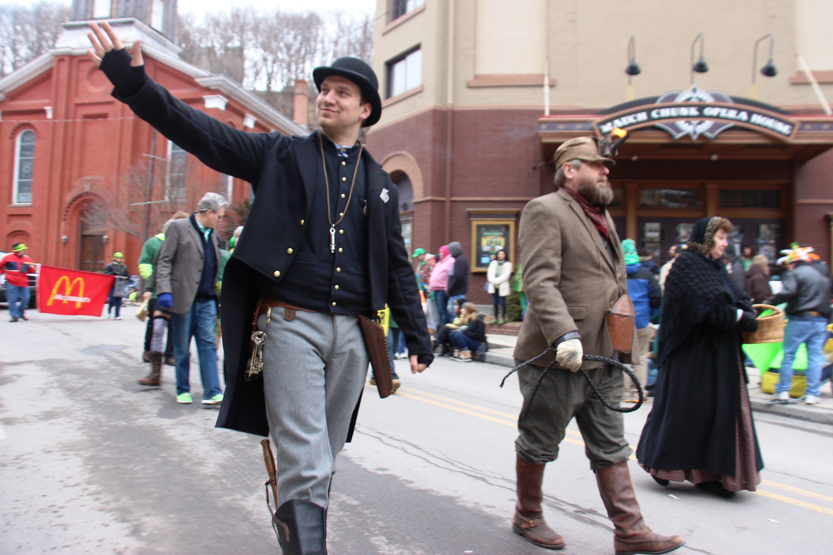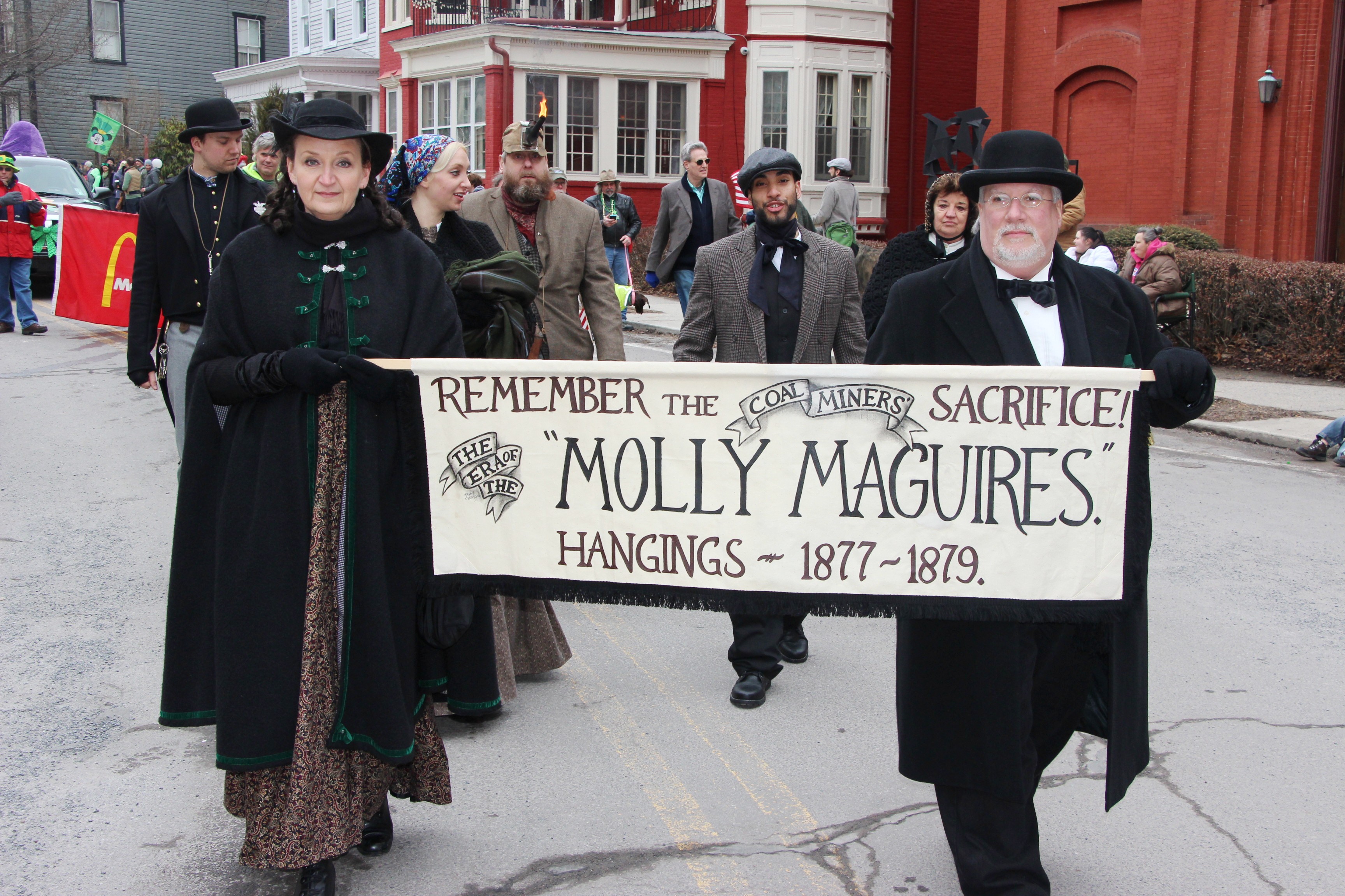 Brian Boru Pipes and Drums, Jim Thorpe Fire Department, Celtic United Pipe and Drums, Black Jack Kehoe (Division 4 of Delaware County), Forks of Delaware Tin Lizzies, Panther Valley Irish Americans, Mahoning Valley Fire Company No. 1, Kerry Dancers, Mahanoy City Historical Society, Tresckow Fire Company, Blue Eagle Alumni Drum and Bugle Corp., 81st Pennsylvania Company K Civil War Re-enactors, Lansford AMVETS, Bob Swaim (Bob, The Bike Guy), Star Hose Company 1, Patchtown Players, Carbon County Labor Chapter, New Columbus Fire Company, McDonald’s of Nesquehoning, Paddy the Irish Santa, Nesquehoning Hose Company No. 1, Nesquehoning Ambulance, Messengers Motorcycle Club, Lehighton Ford, Carbon County Friends of Animals and Masonic Lodge of Jim Thorpe.