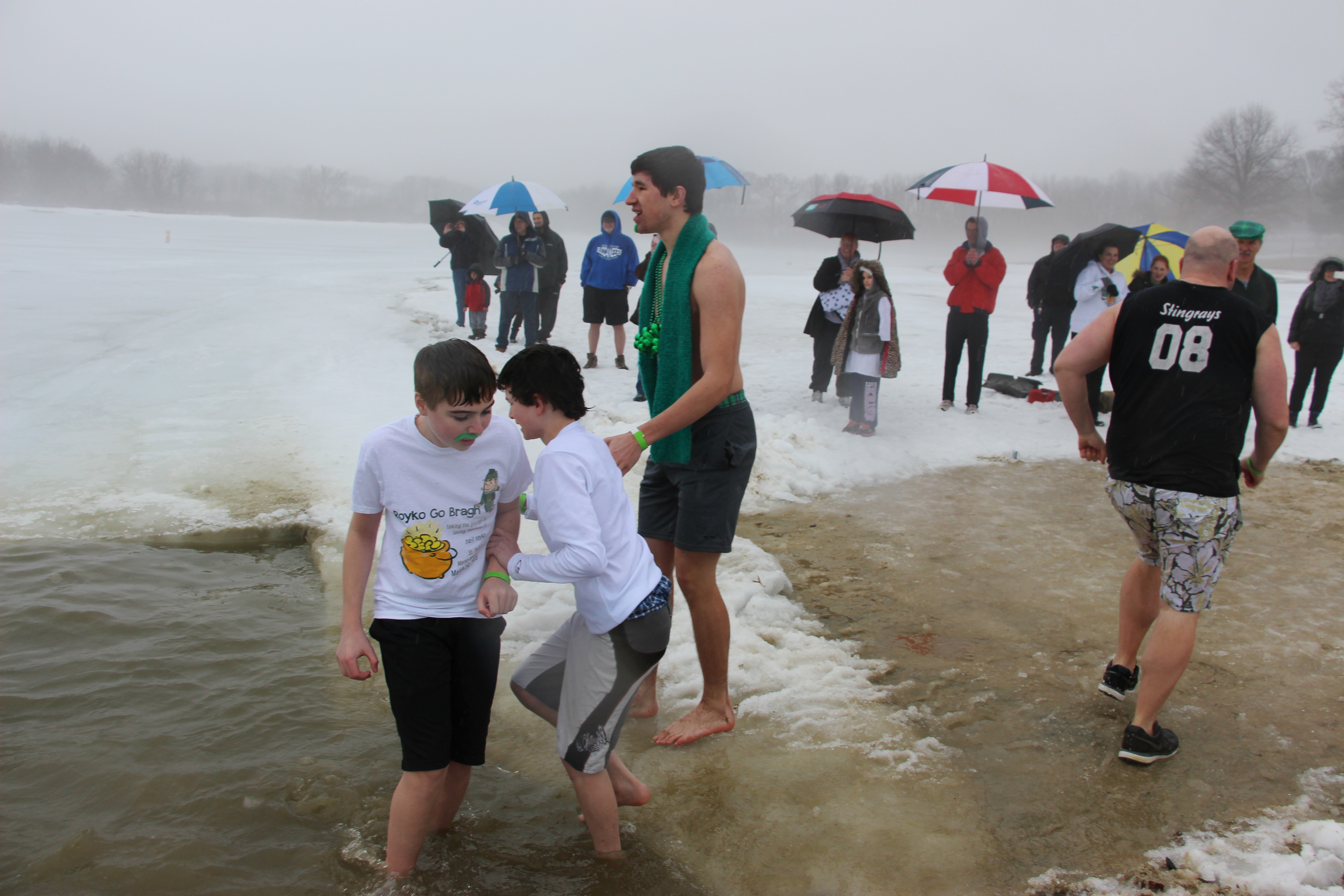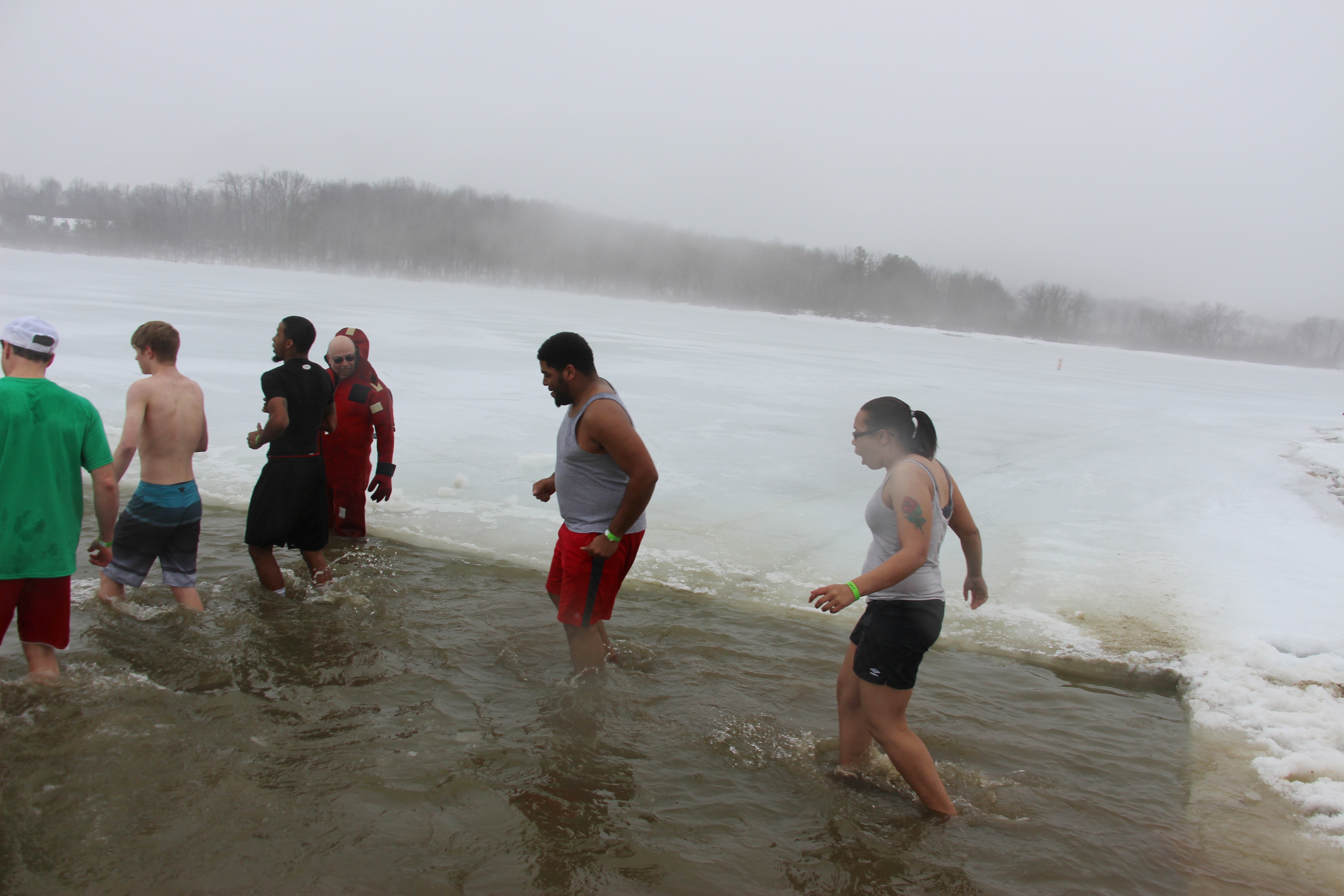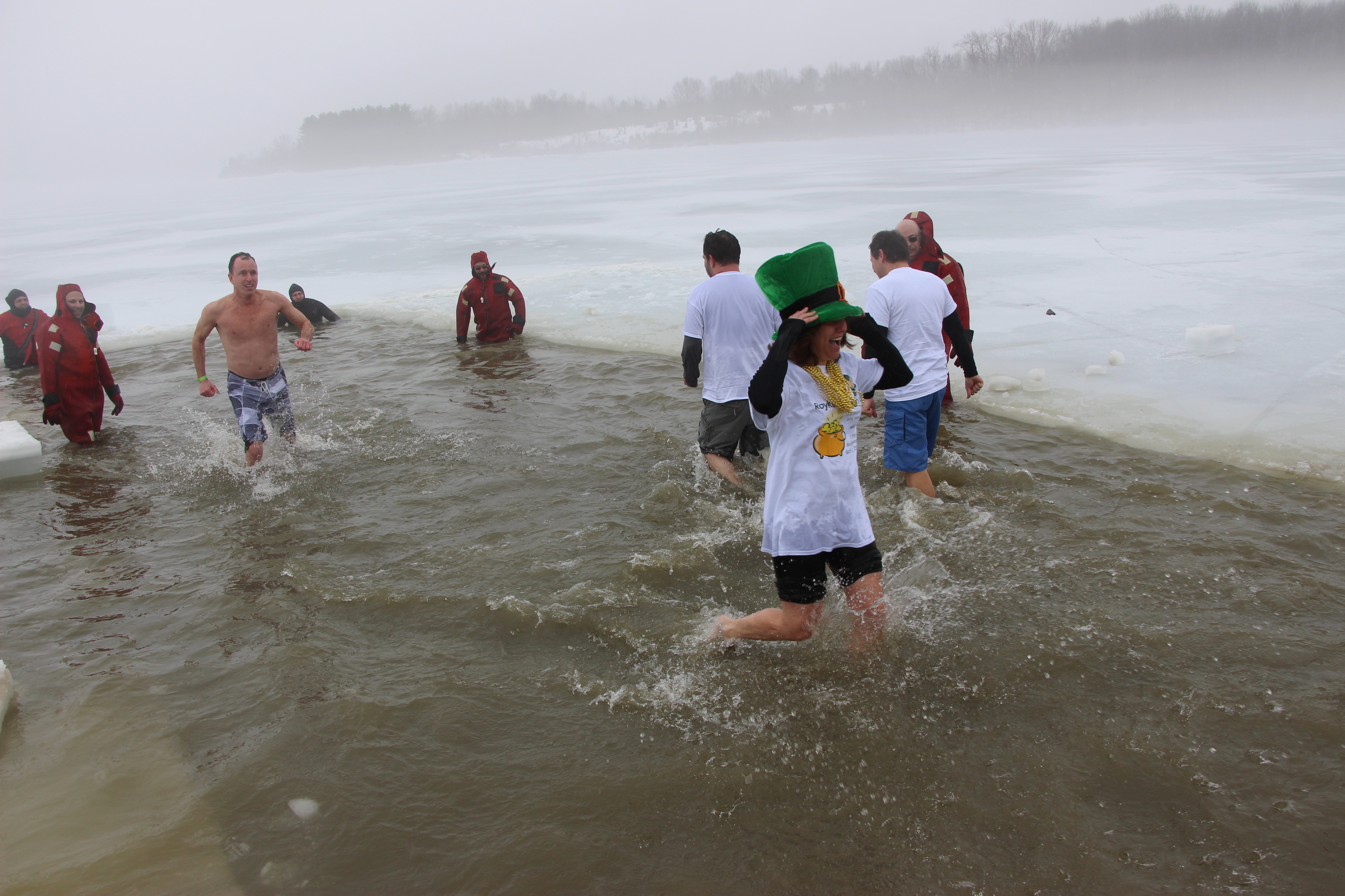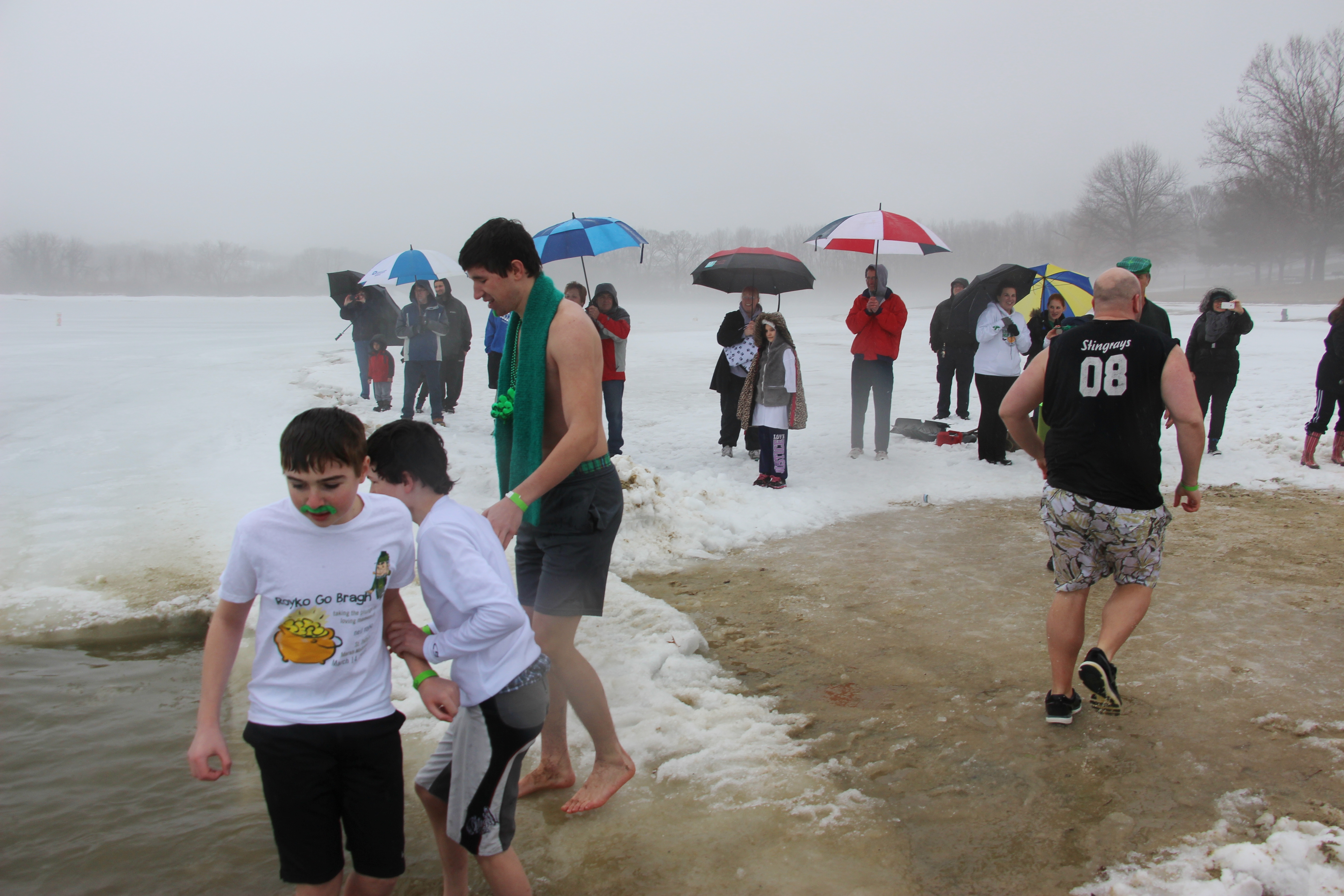 Over 200 participants, representing Tamaqua and area YMCA branches, followed bagpipers into chilly water as part of the YMCA’s St. Patty’s Day Marsh Madness Polar Bear Plunge For Kids event held Saturday (March 14, 2015) at the Blue Marsh Lake in Leesport. The event is held every year via the YMCA of Reading and Berks County.