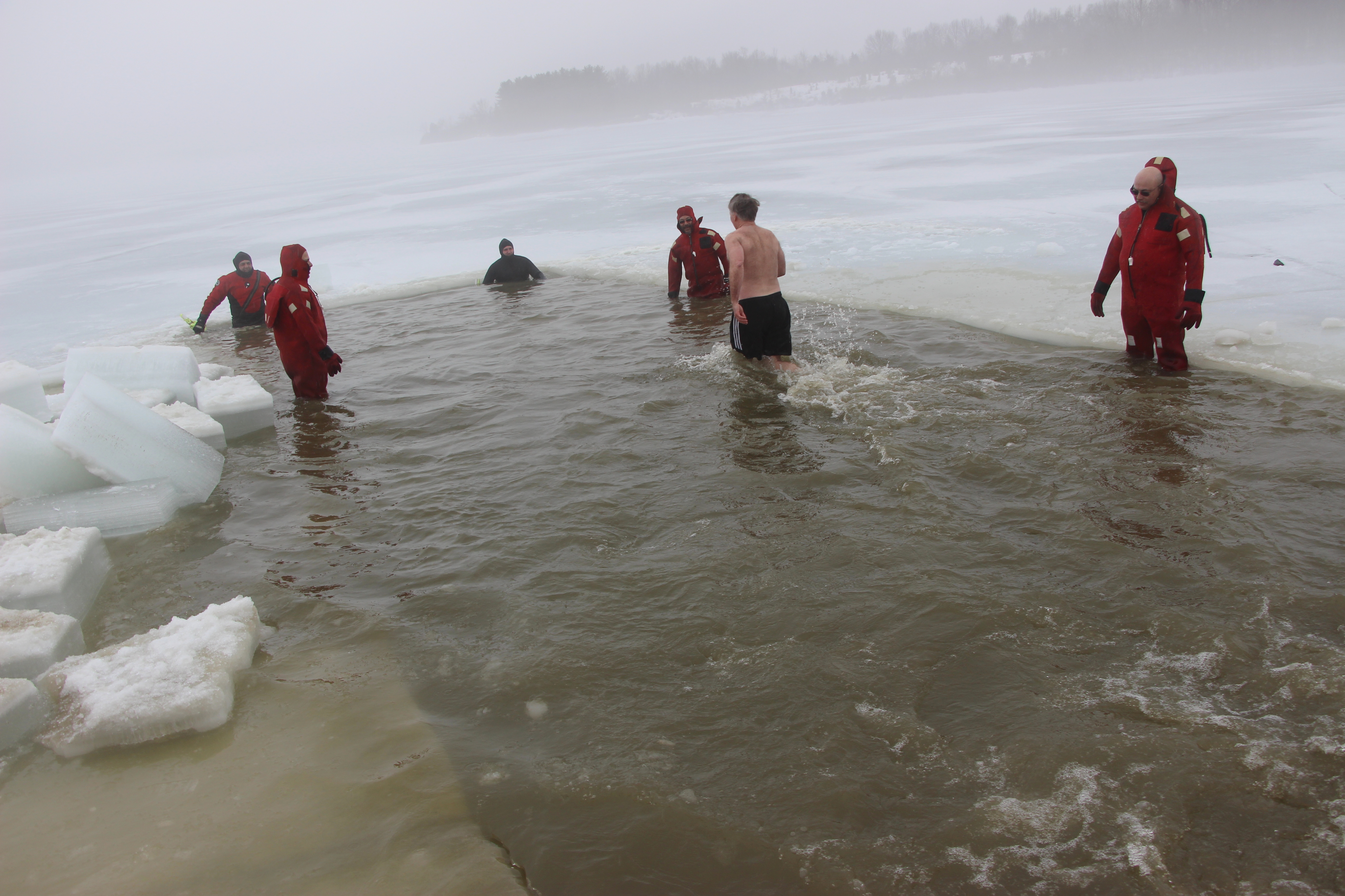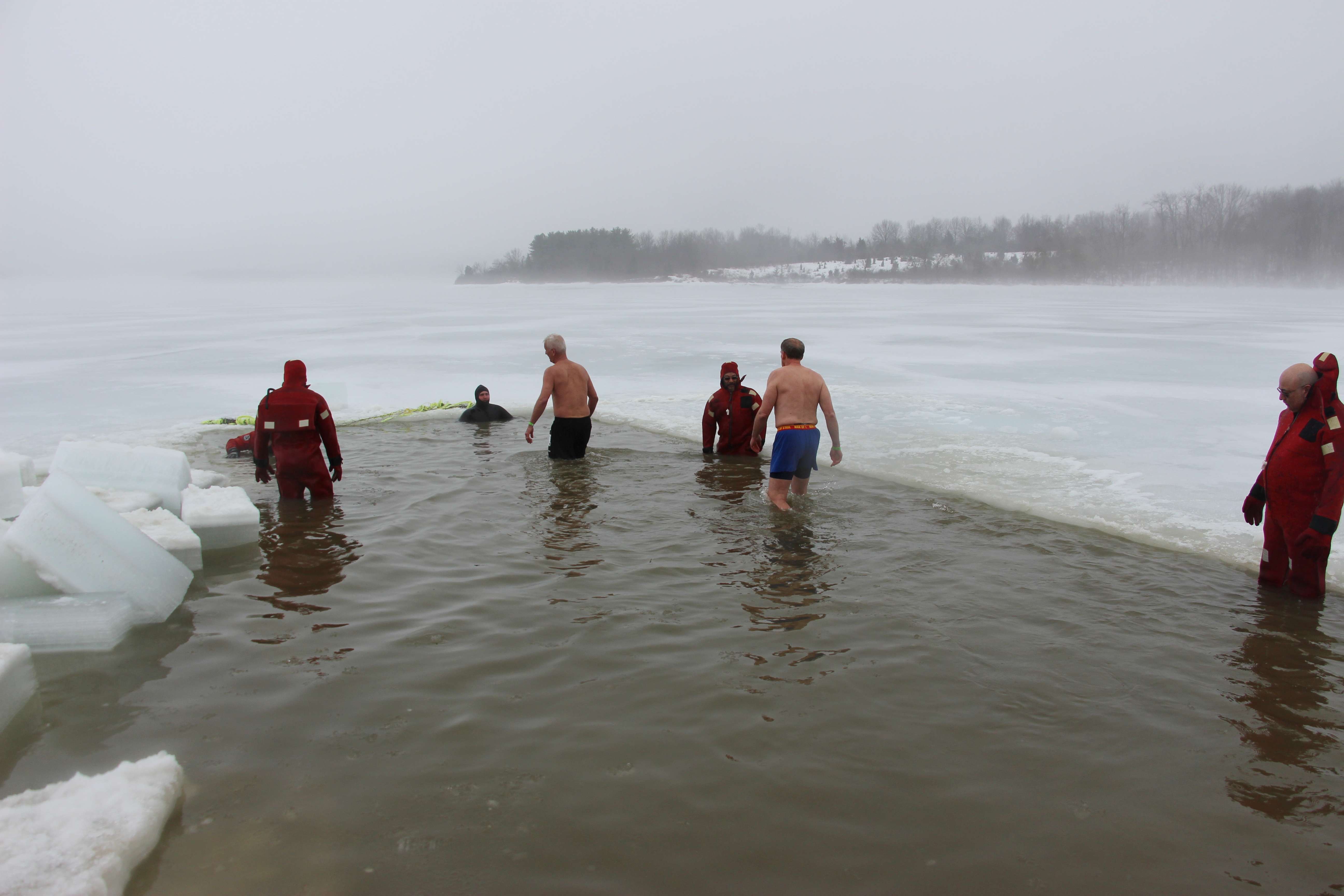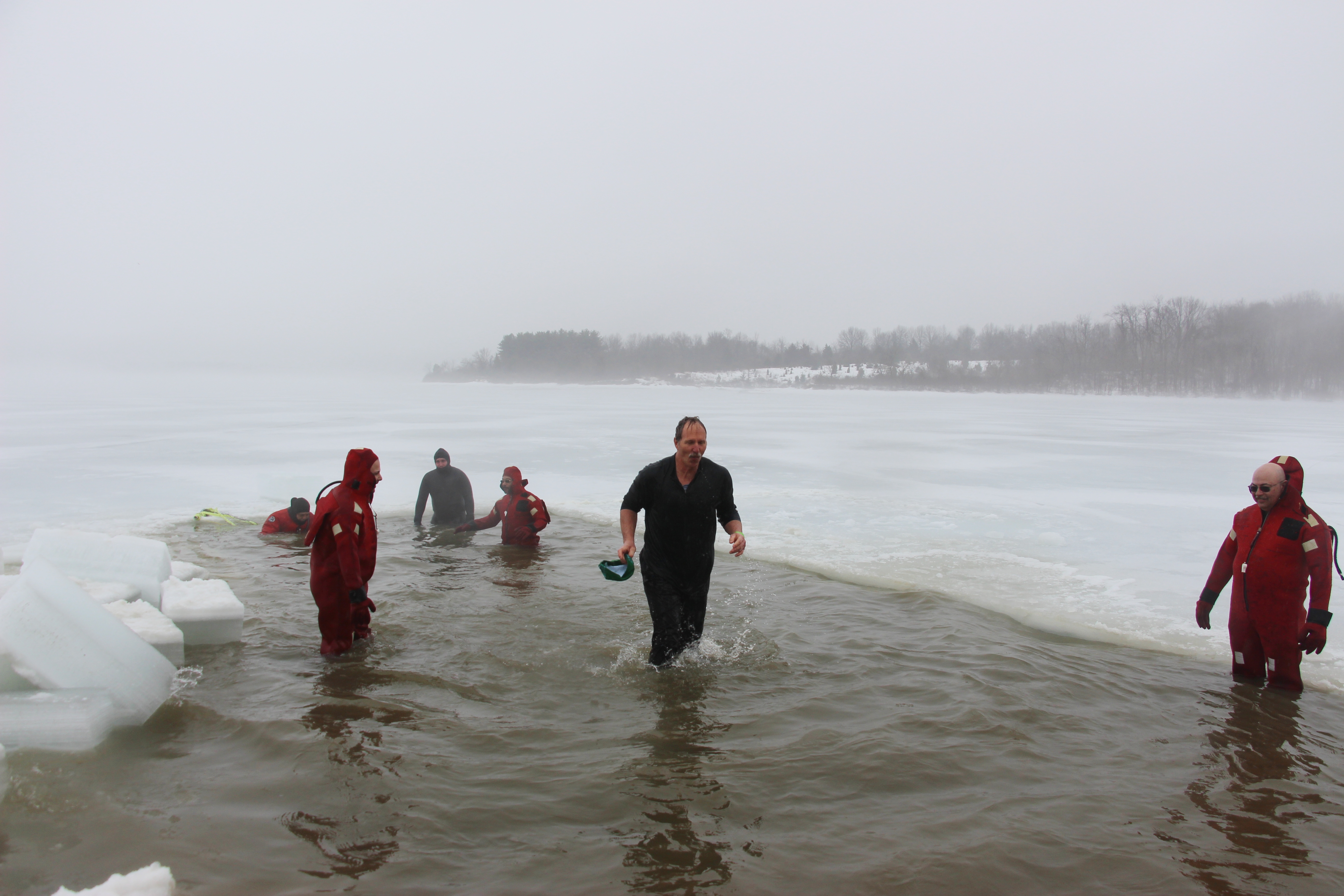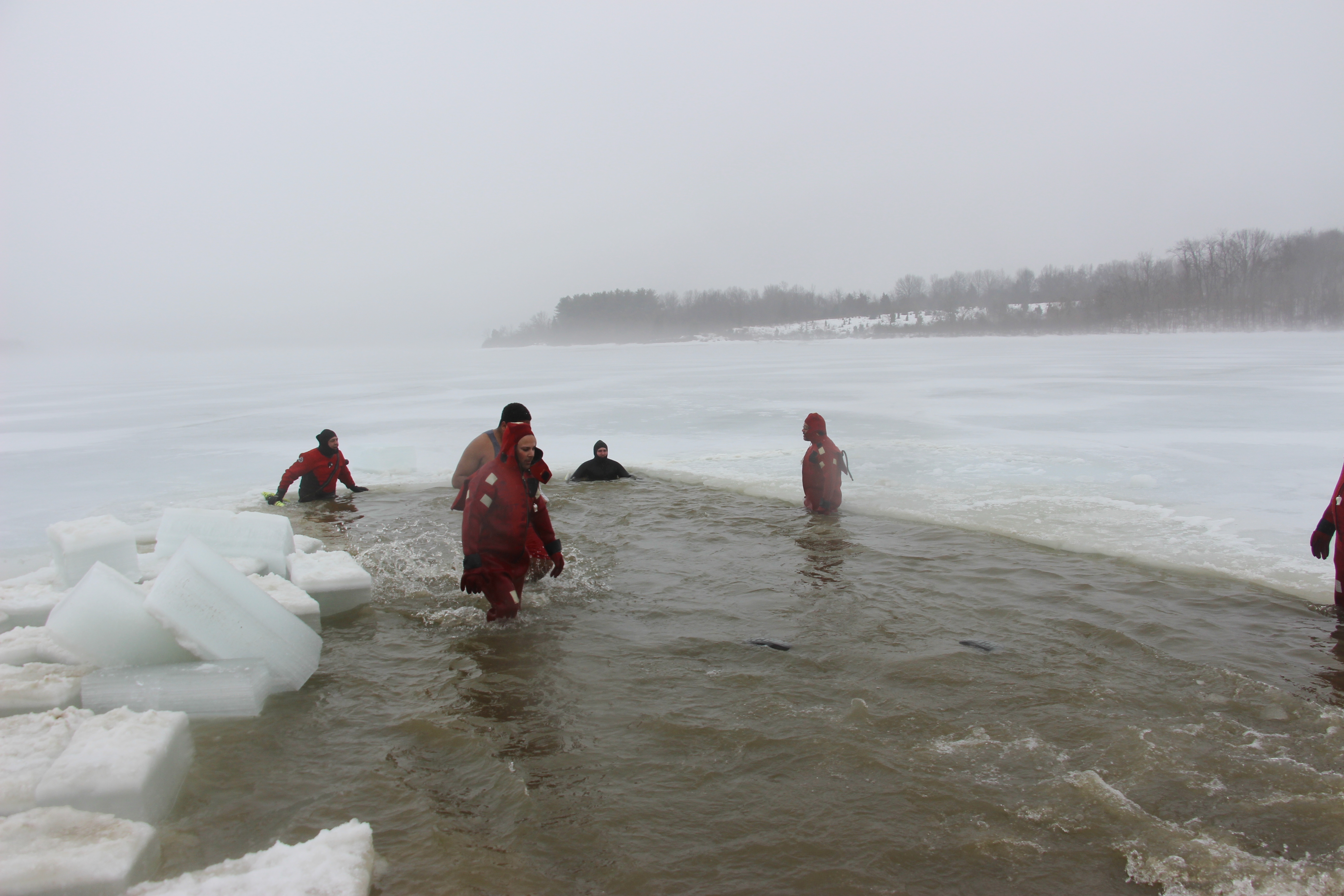 Plungers estimated the temperature of the lake to be in the mid 30’s.