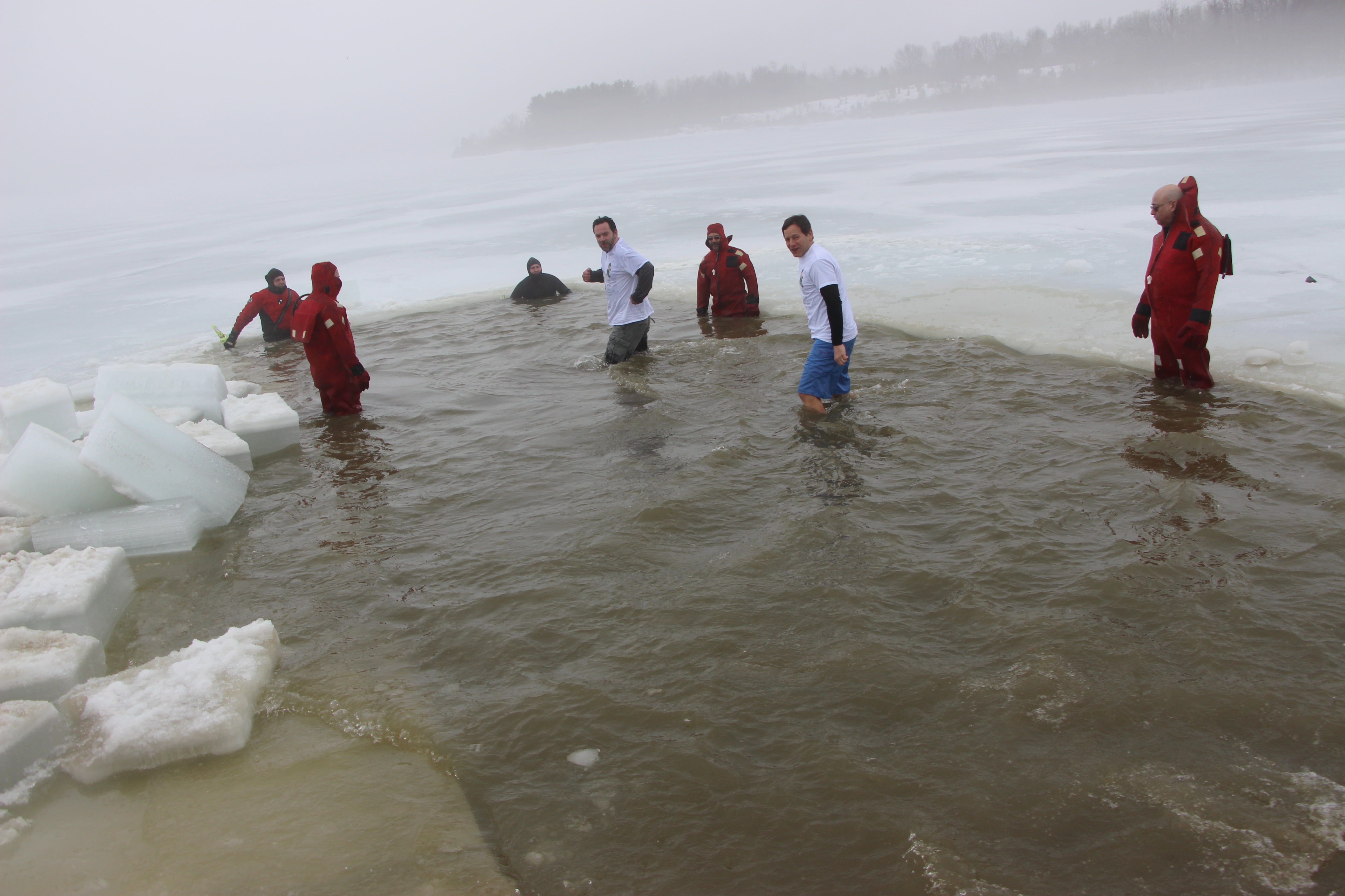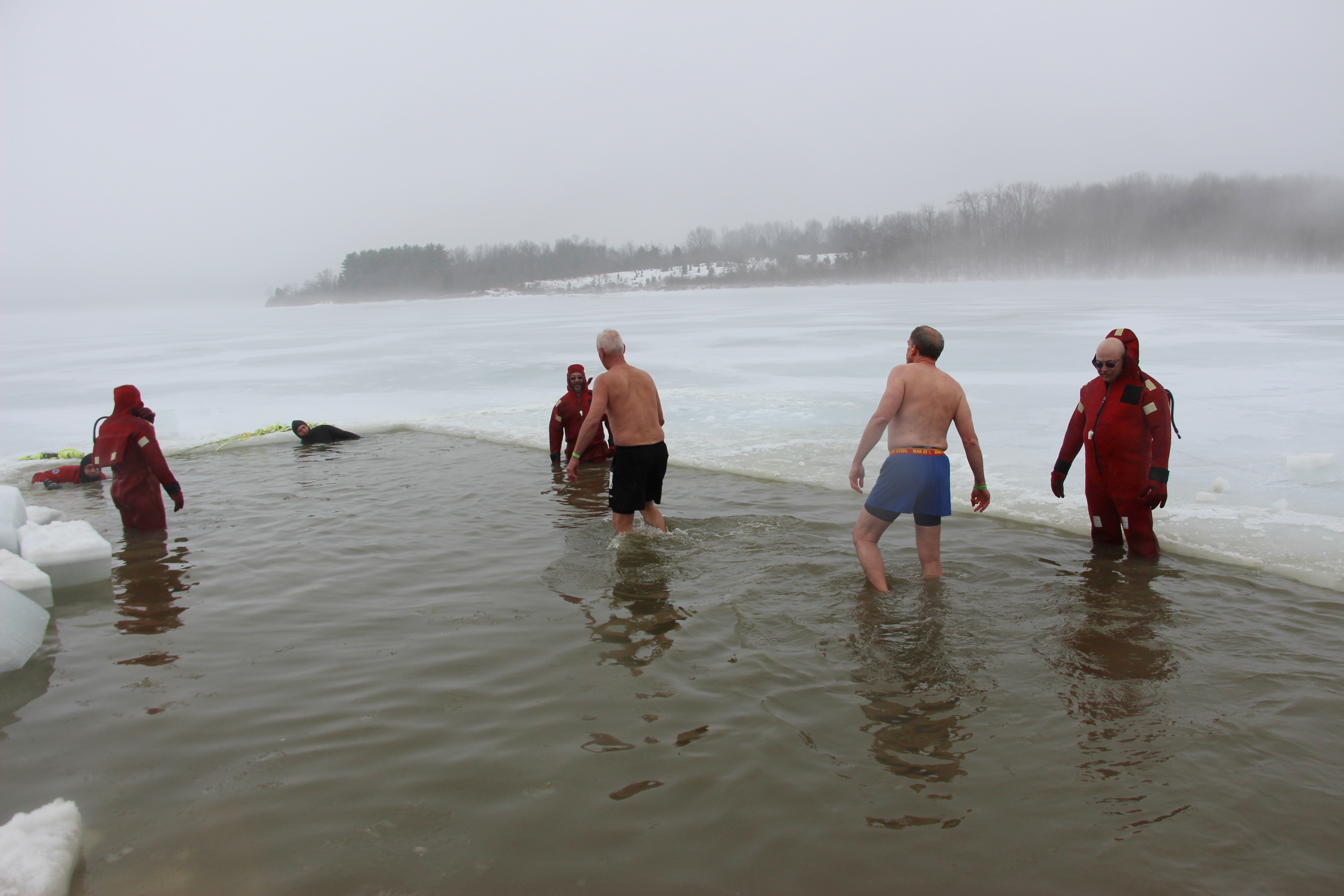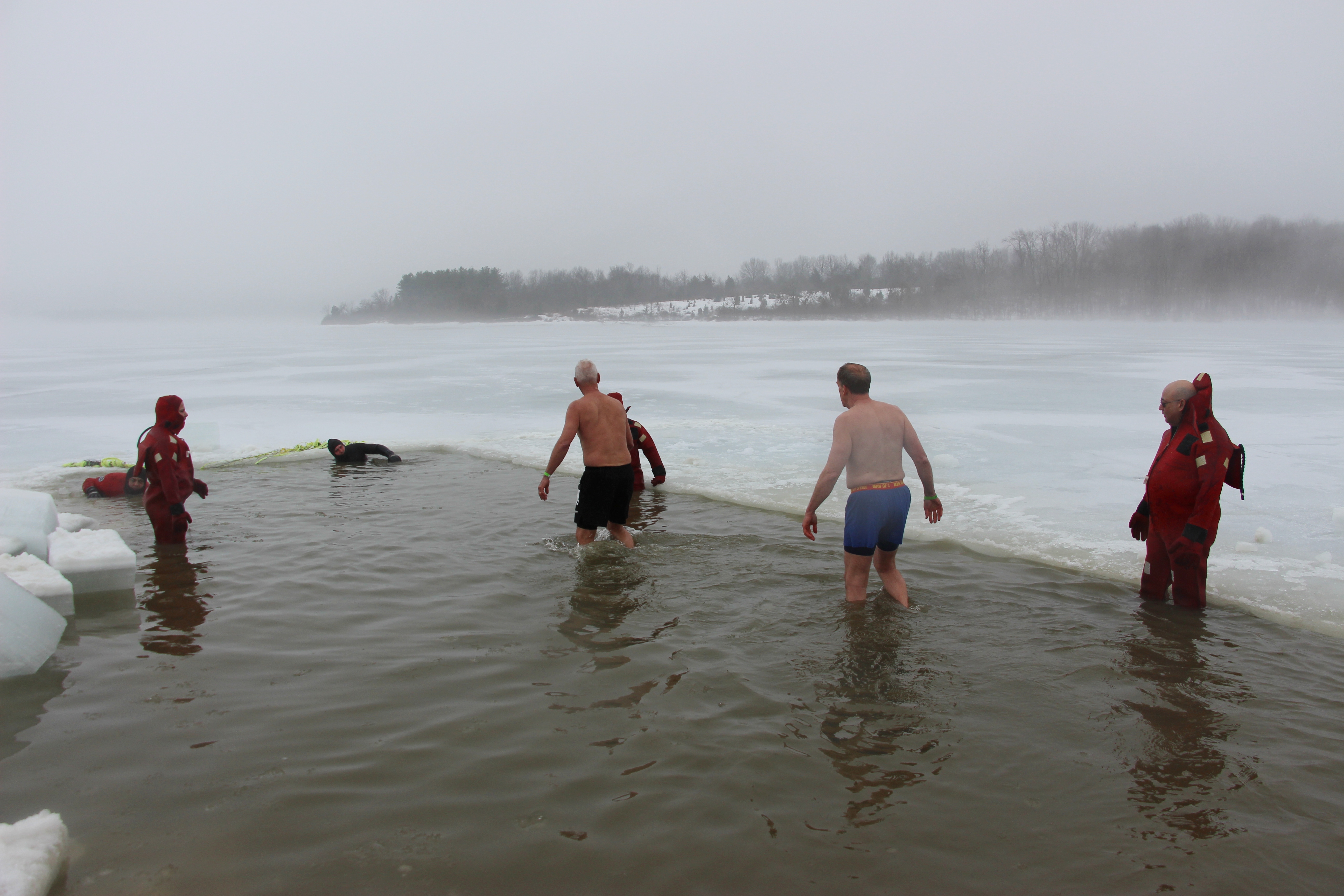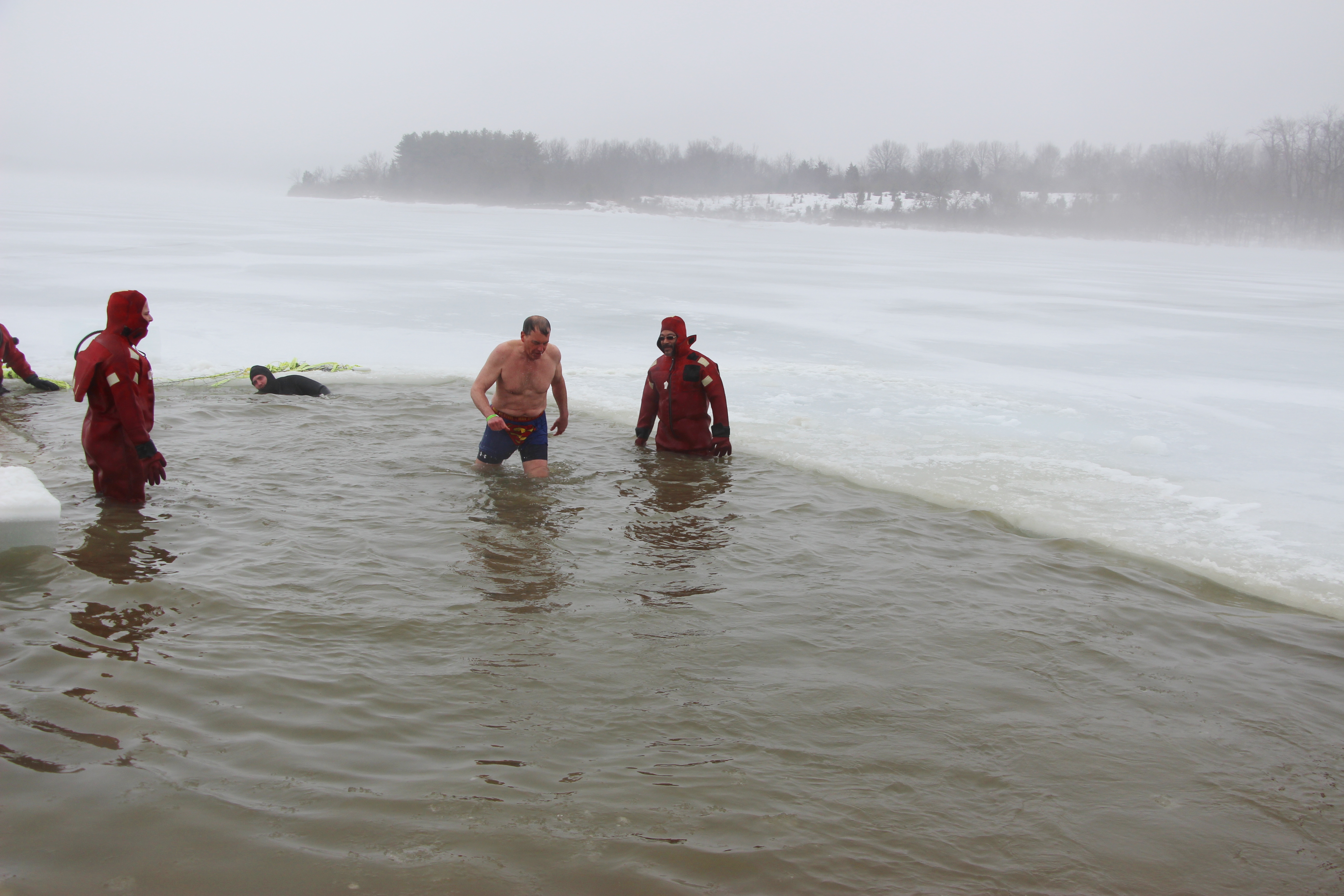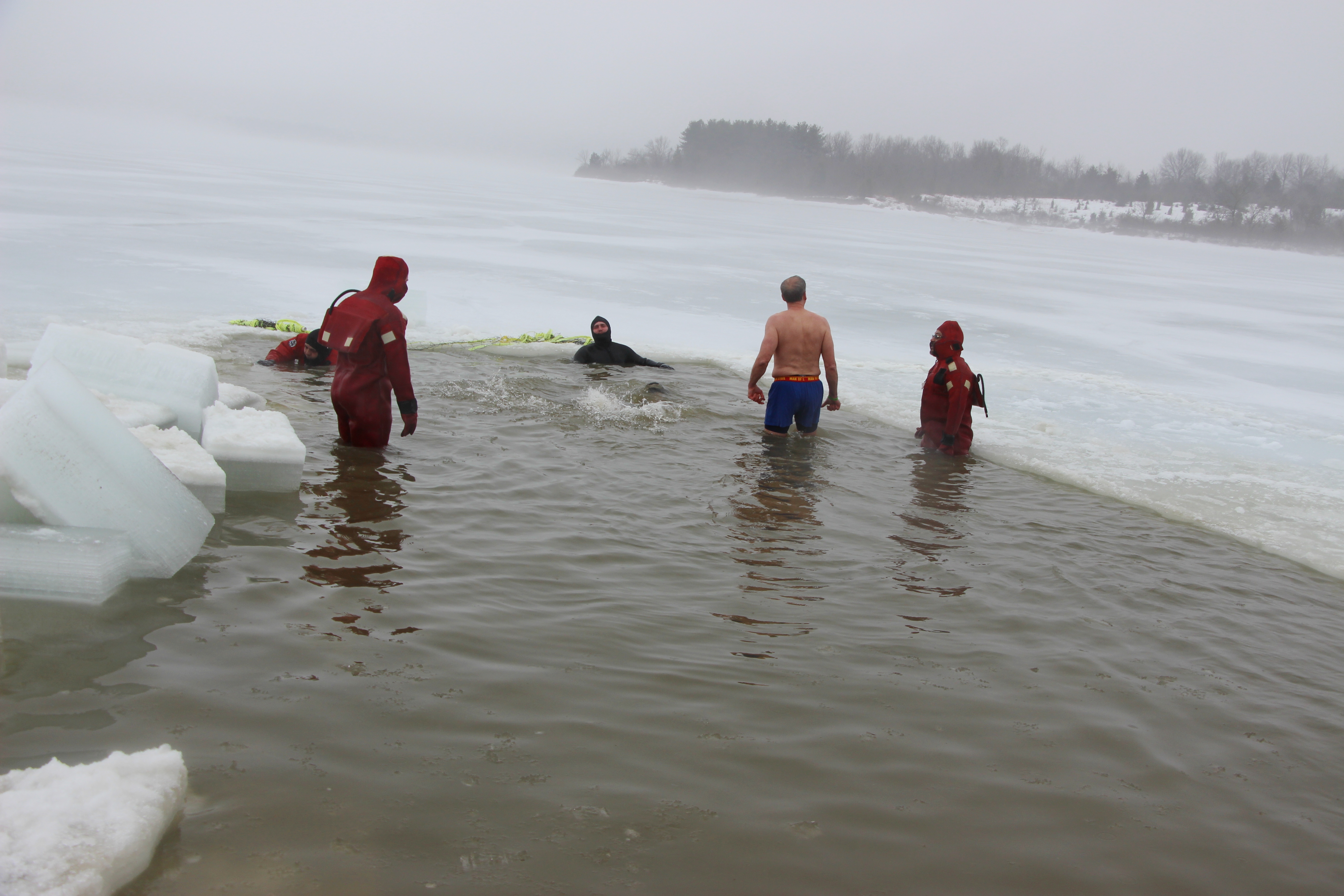 Plungers estimated the temperature of the lake to be in the mid 30’s.