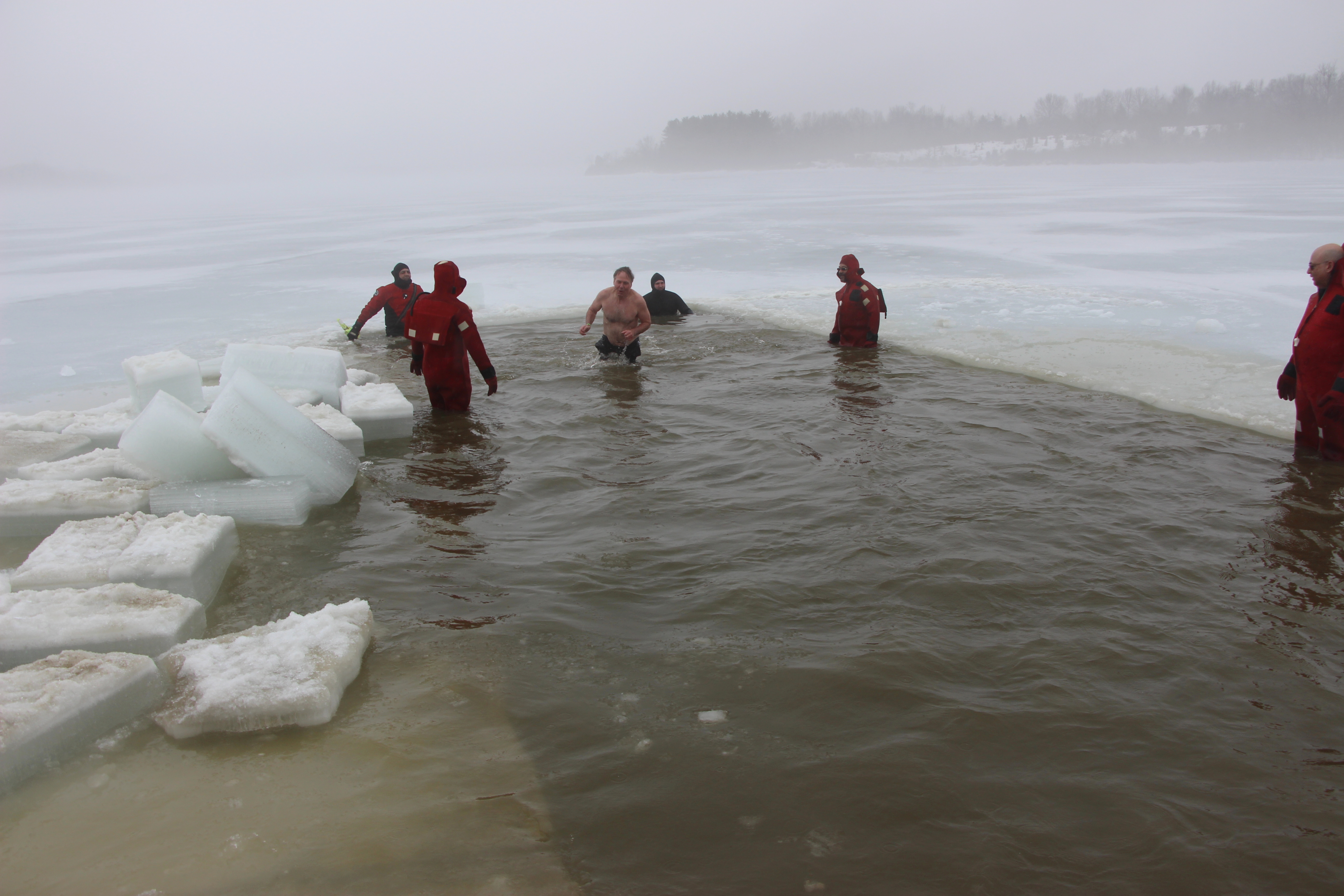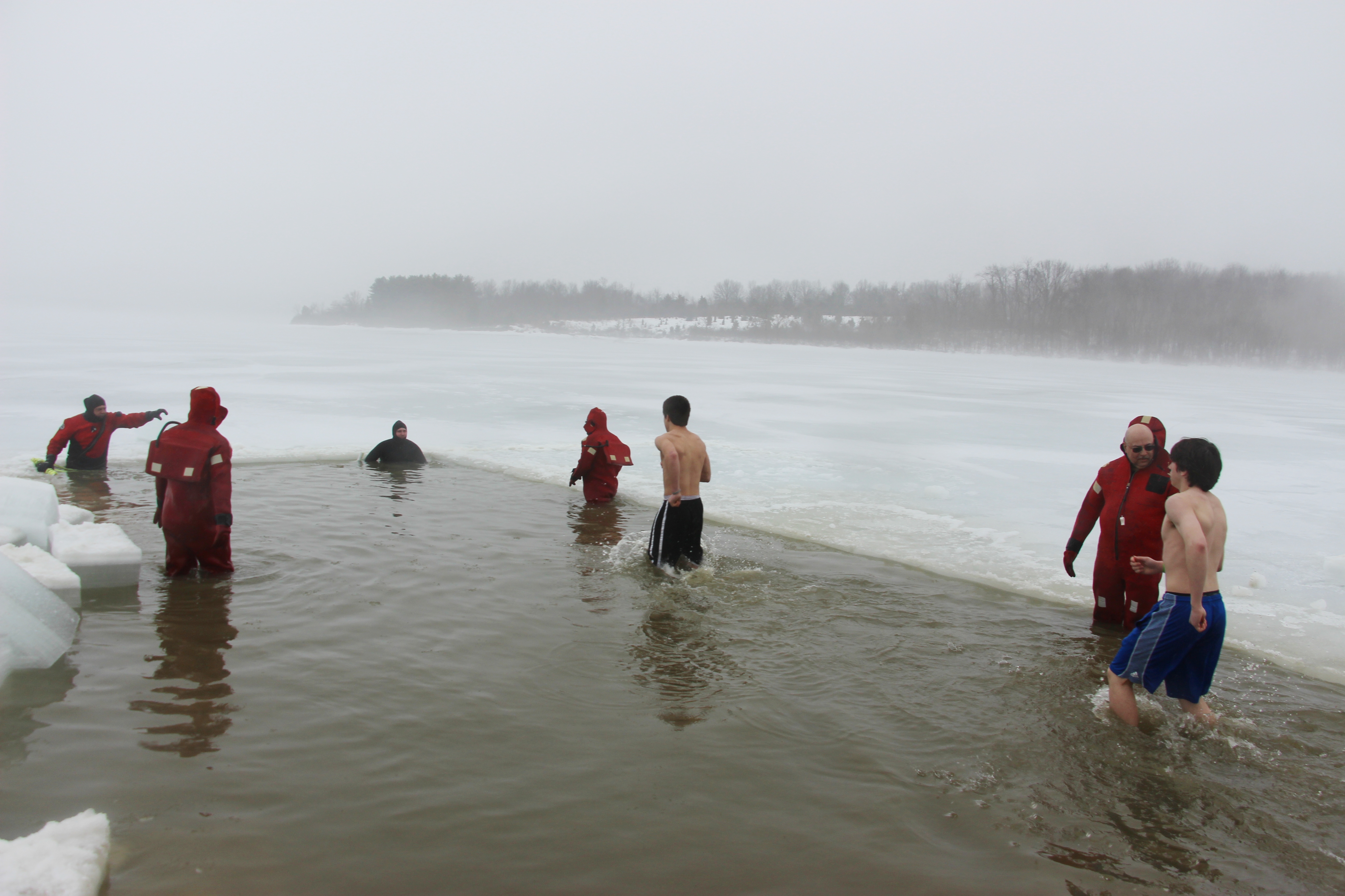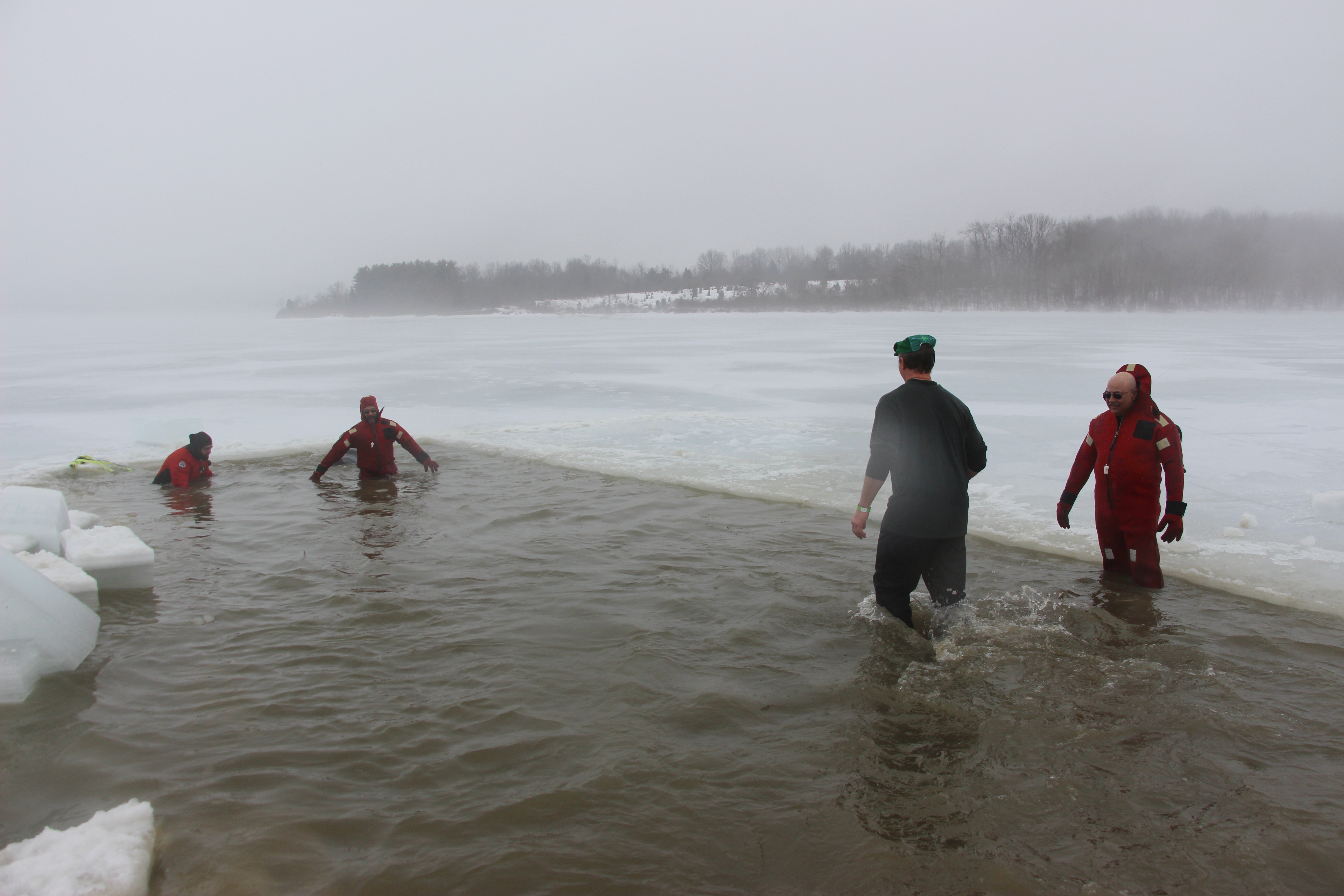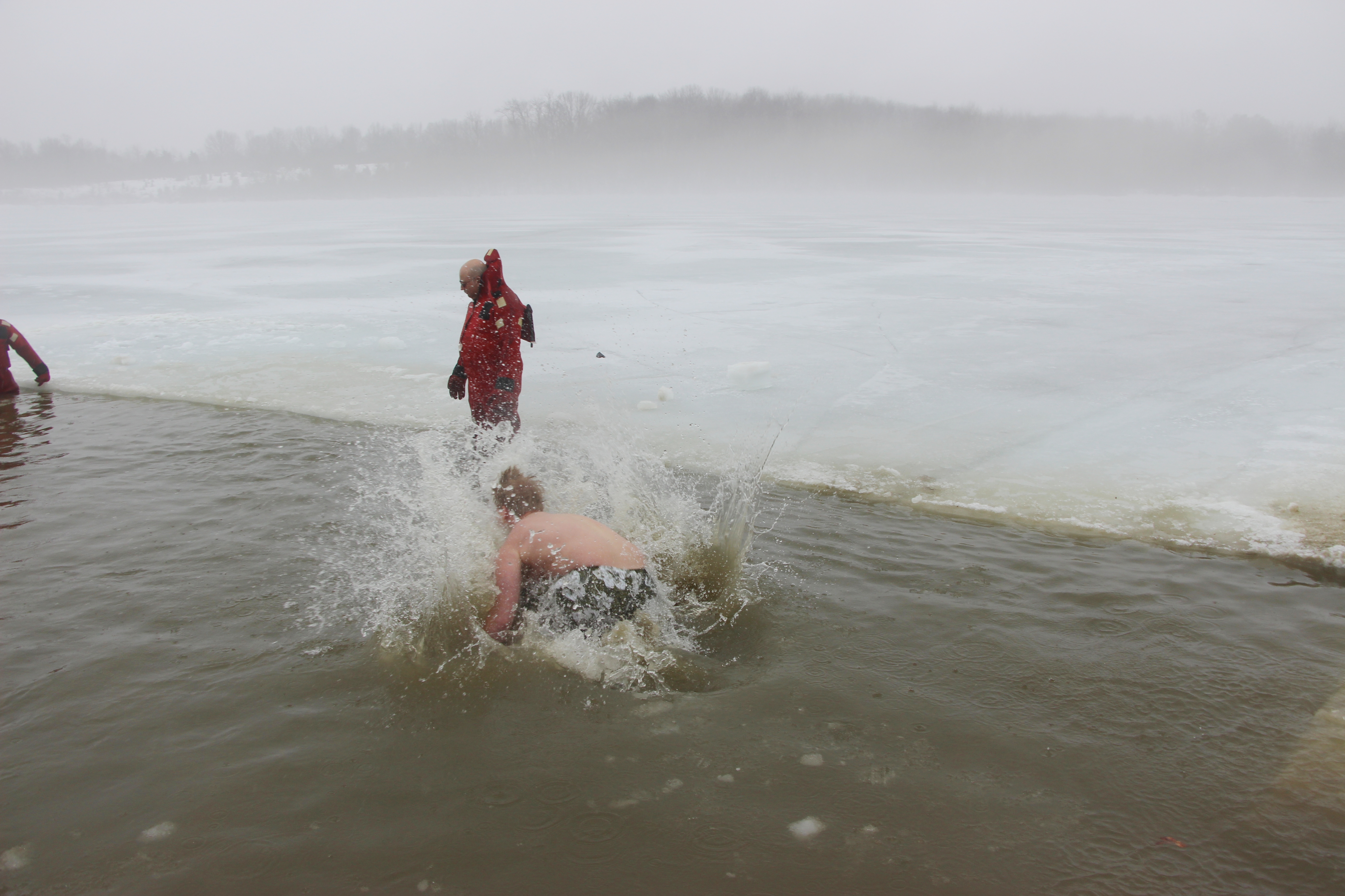 Plungers estimated the temperature of the lake to be in the mid 30’s.