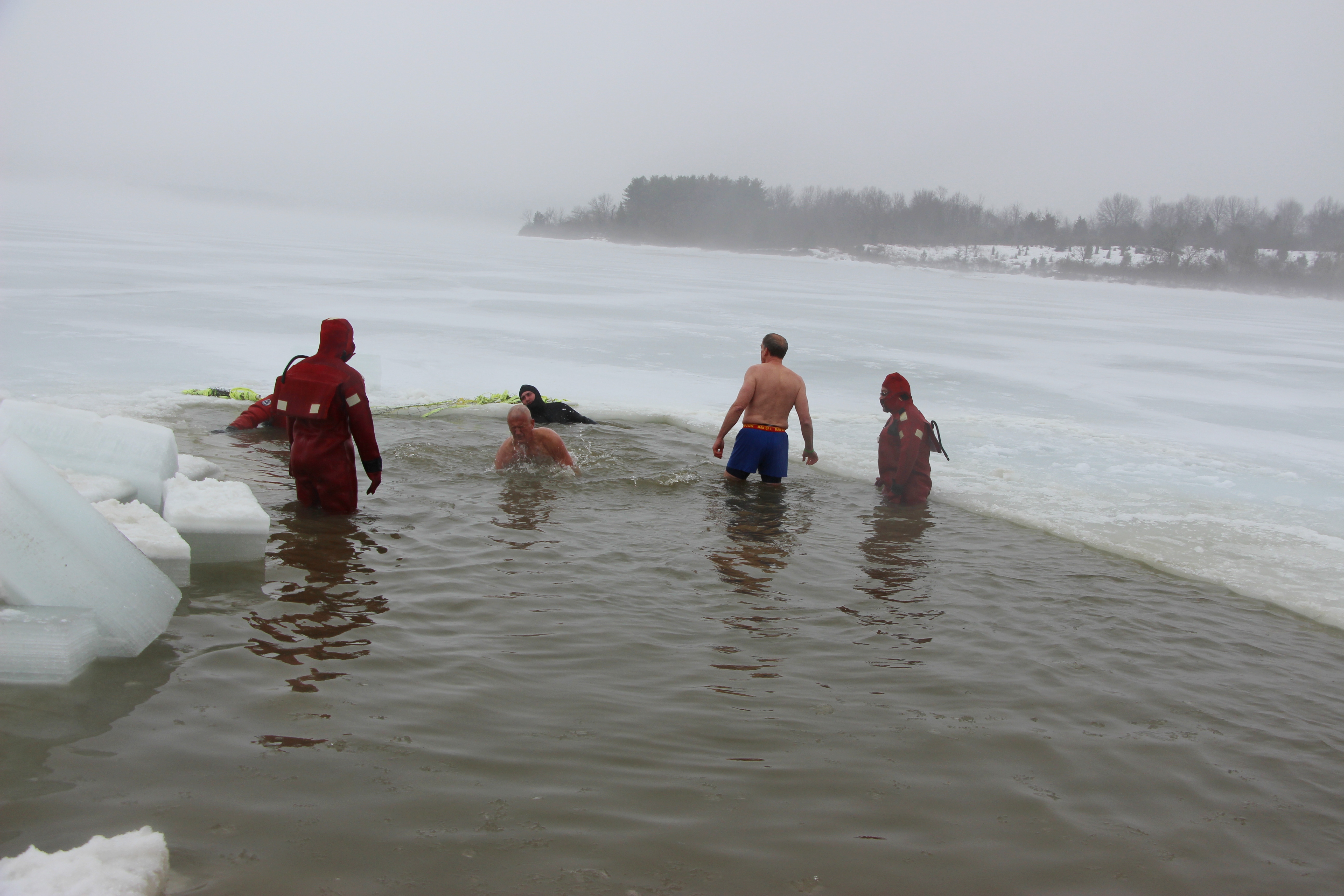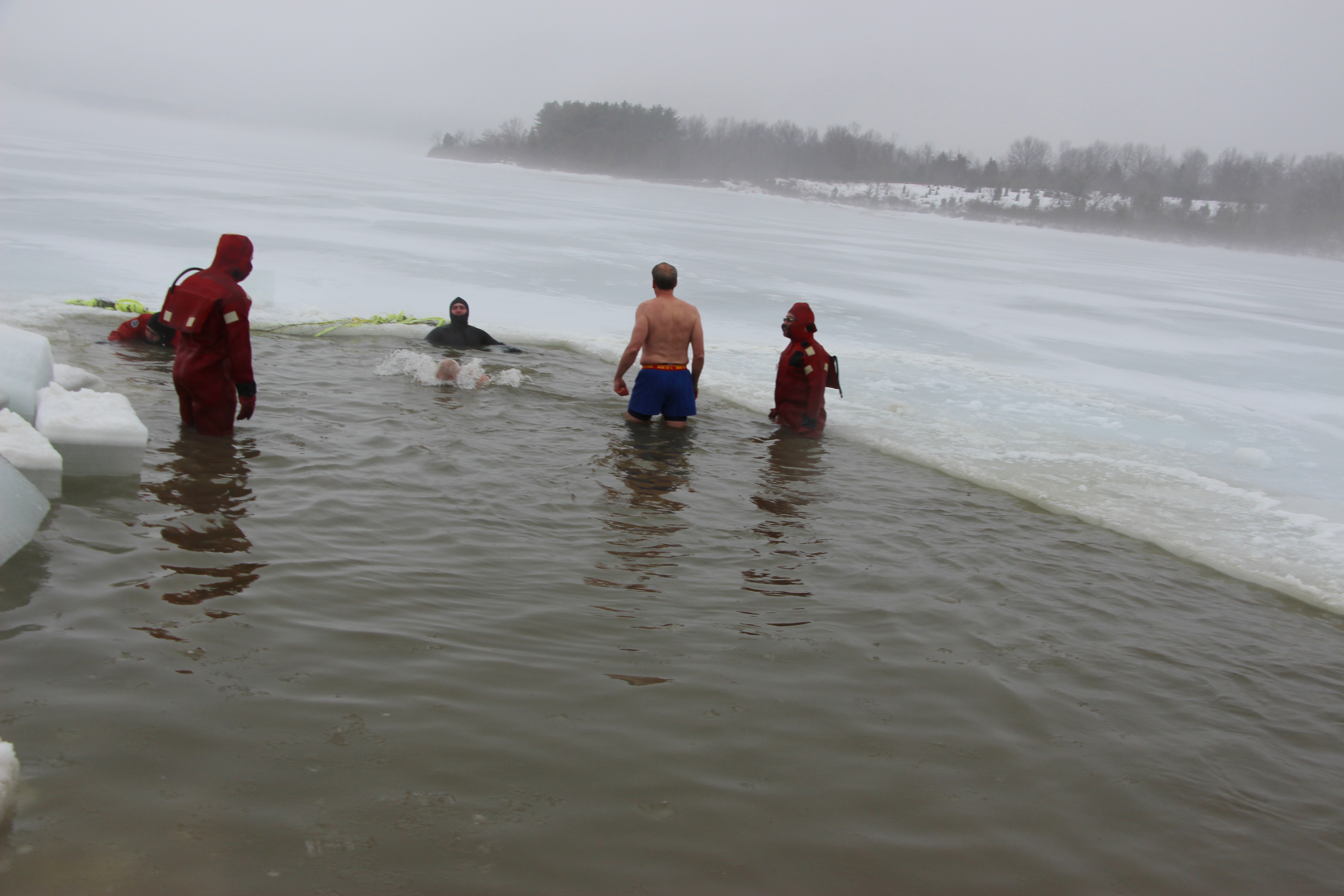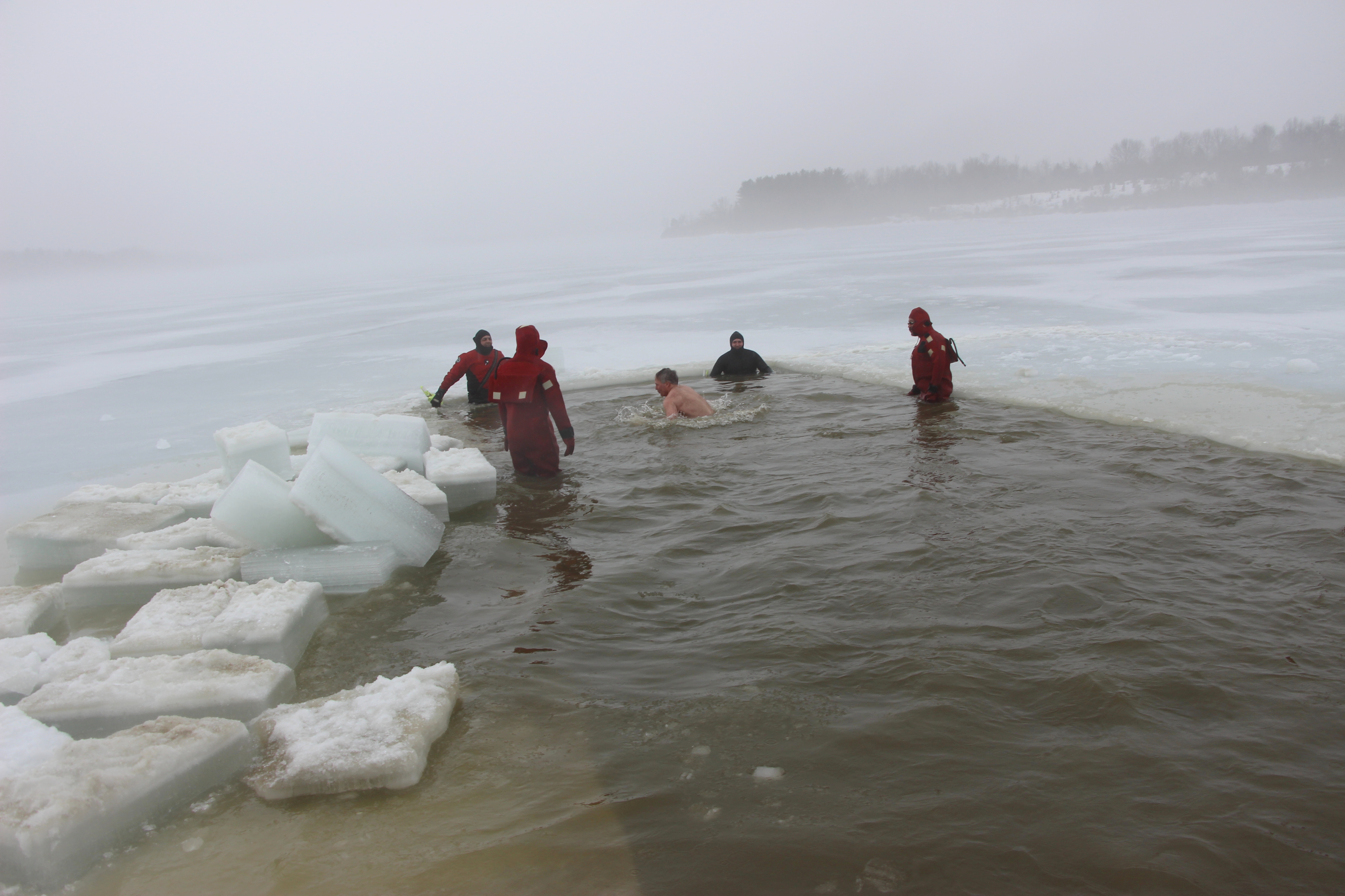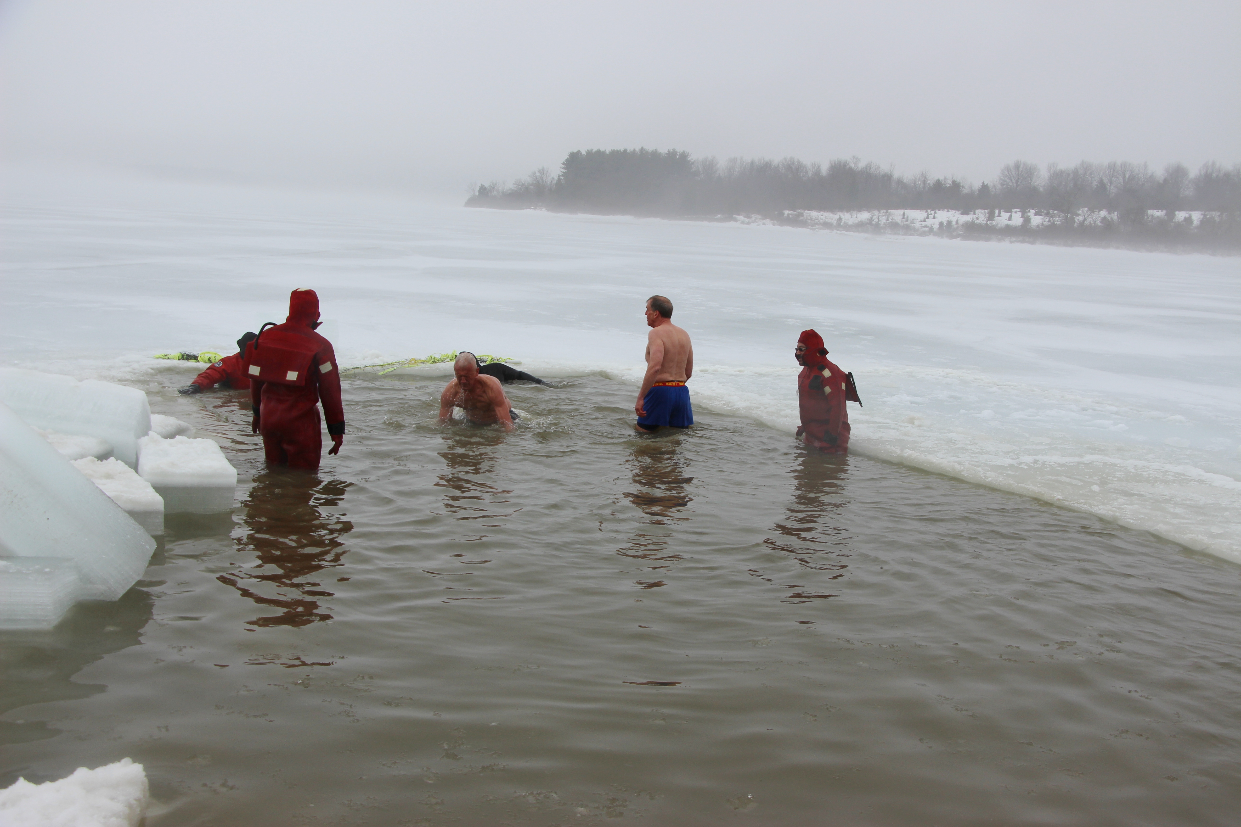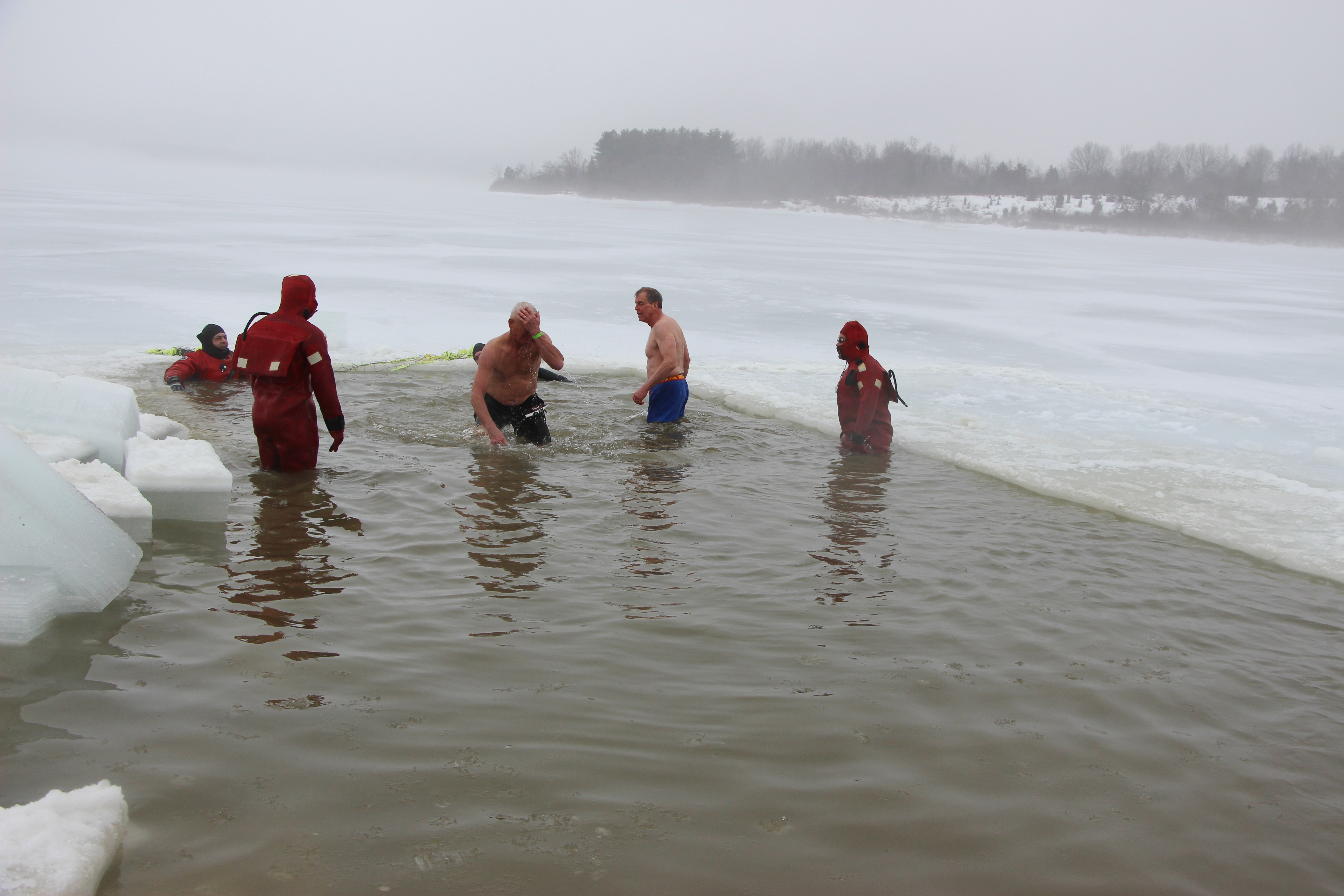 Plungers estimated the temperature of the lake to be in the mid 30’s.