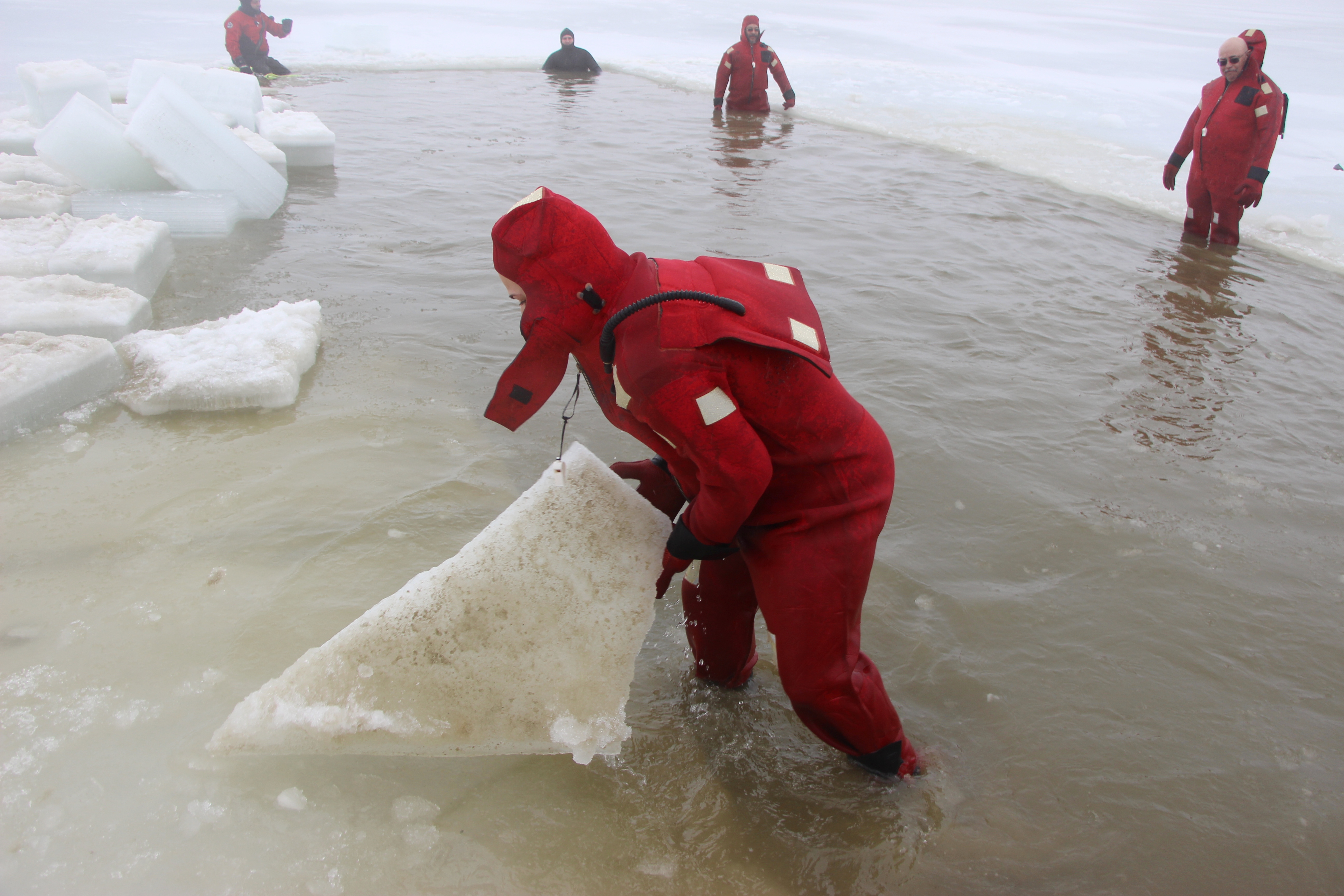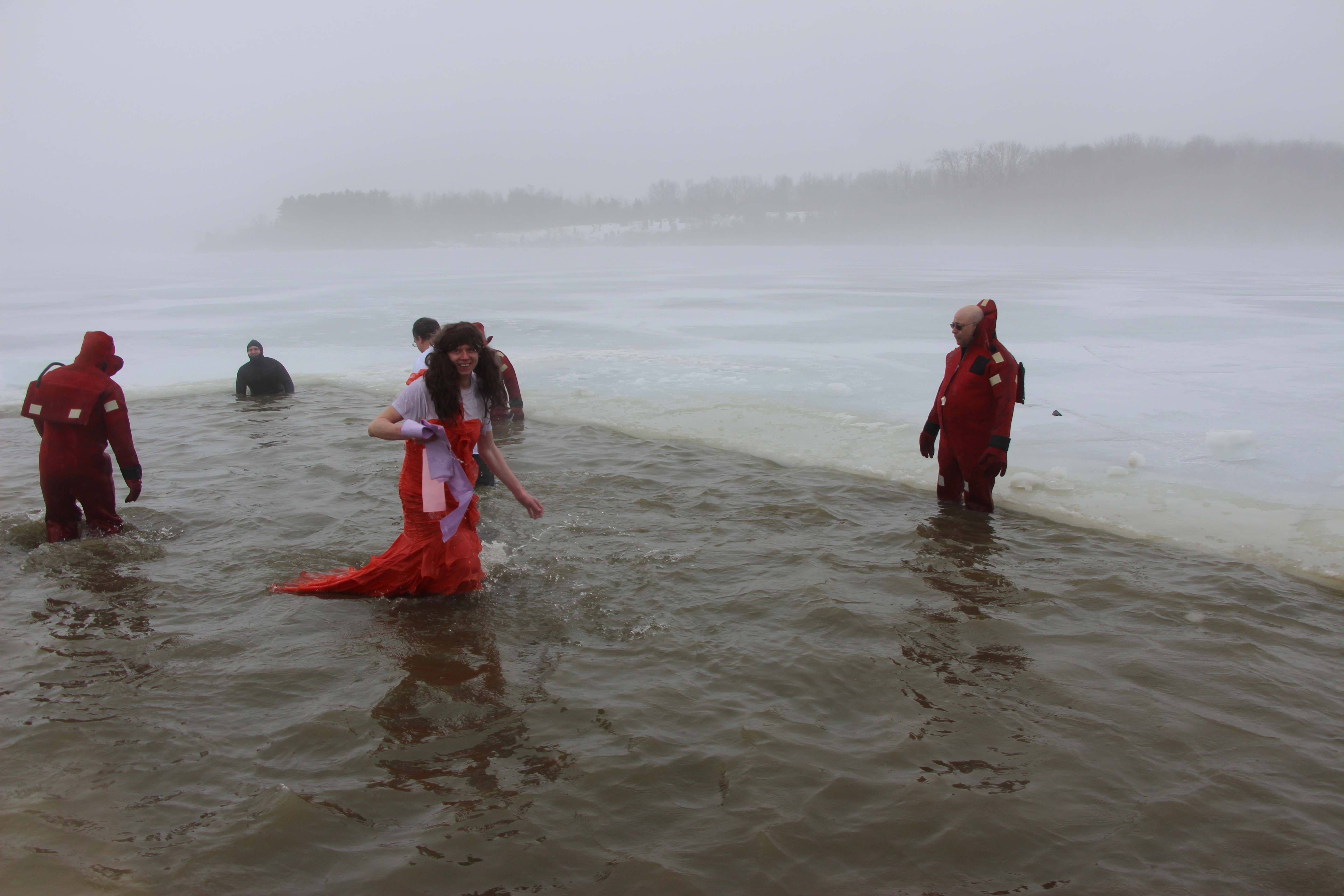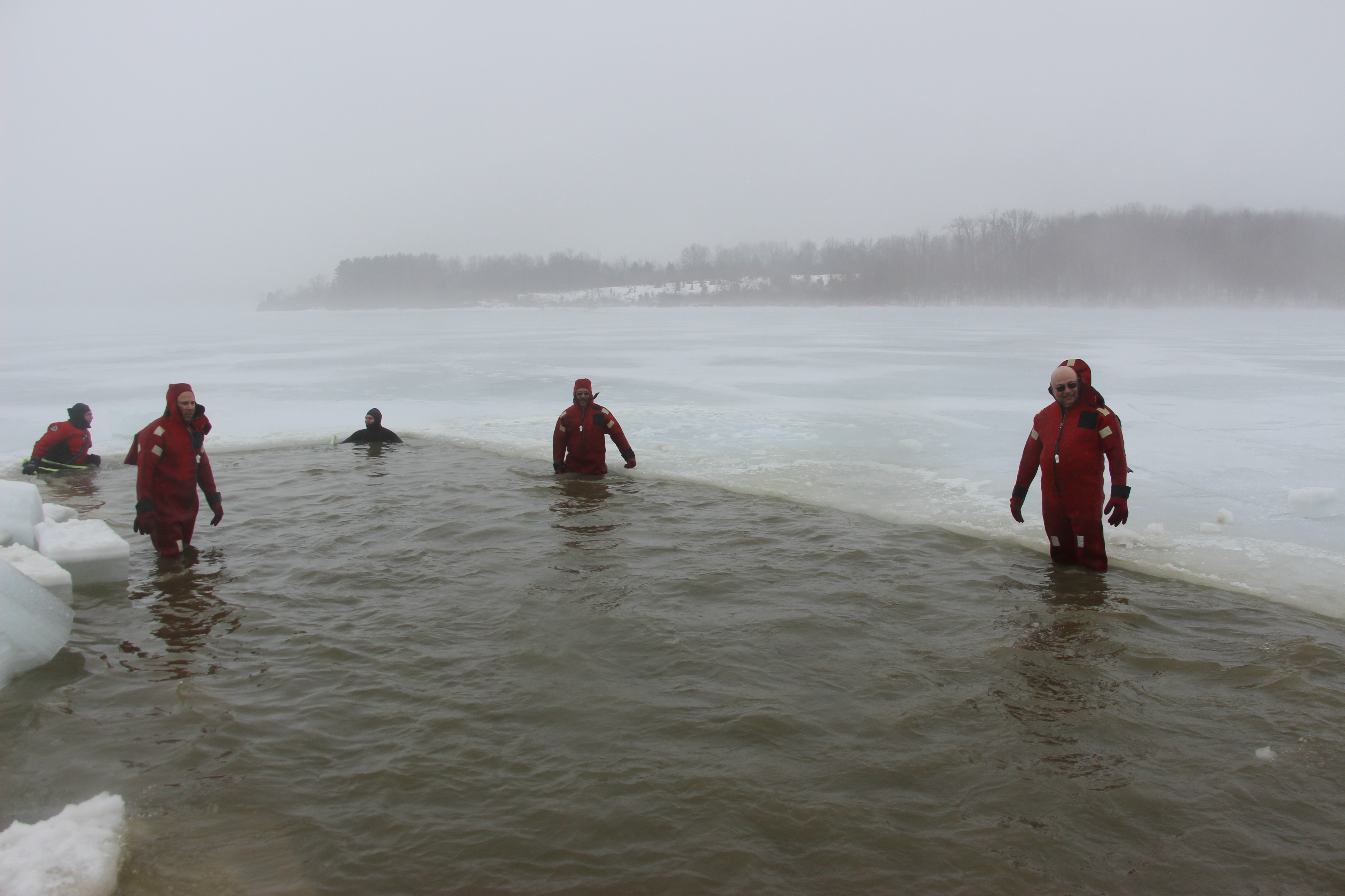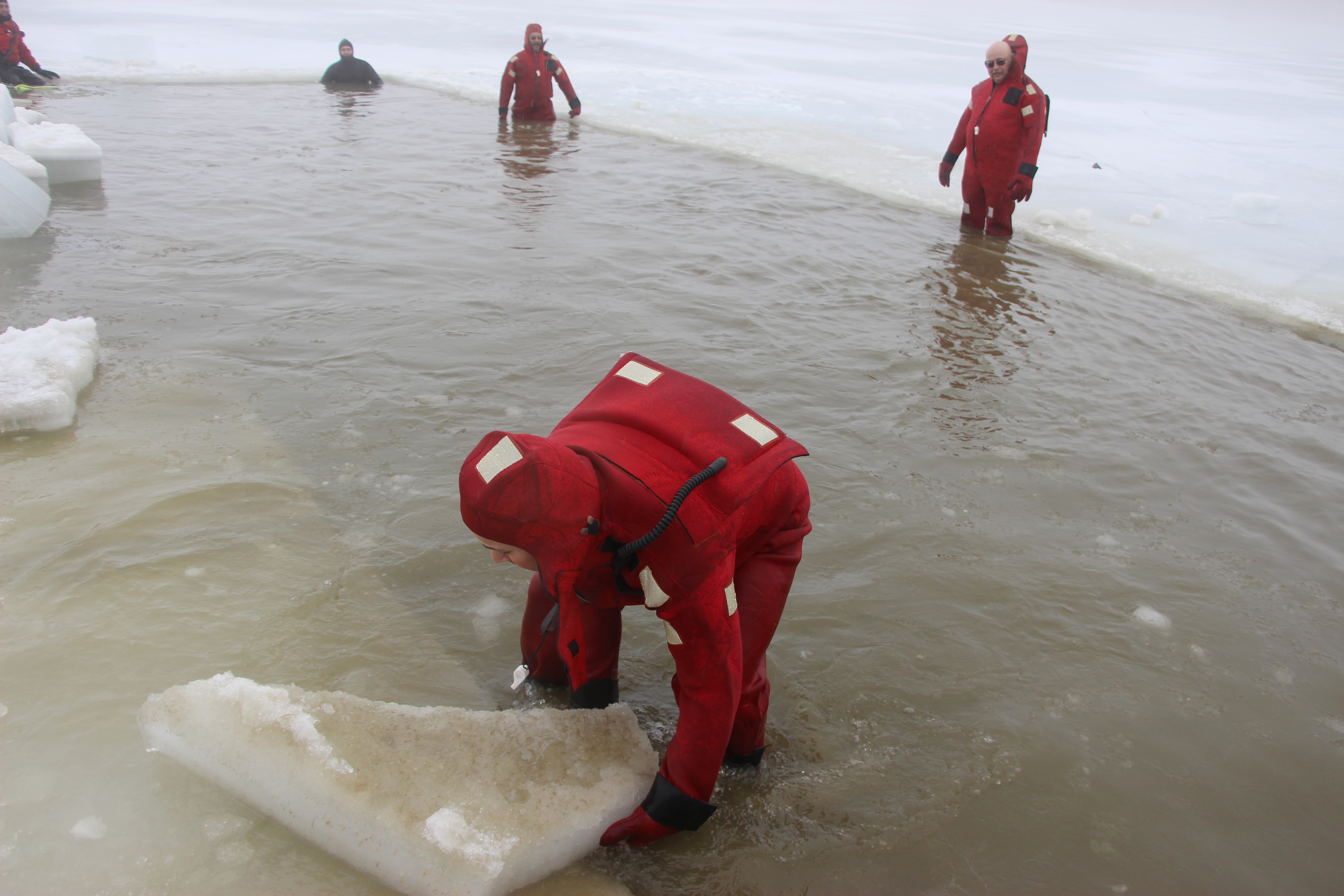 Plungers estimated the temperature of the lake to be in the mid 30’s.