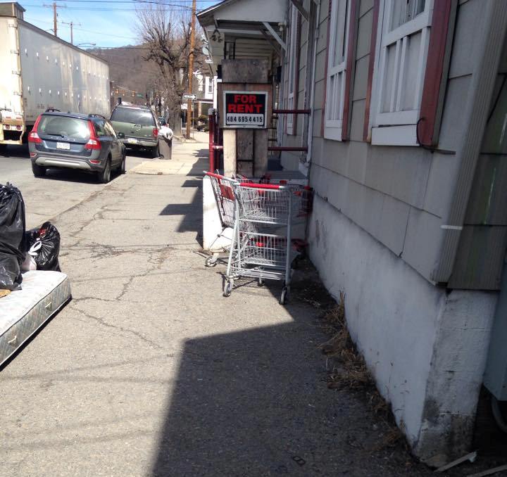 Pictured is a submitted photo of three shopping carts today (Thursday, March 19, 2015) littered in front of 225 Pine Street in Tamaqua.
