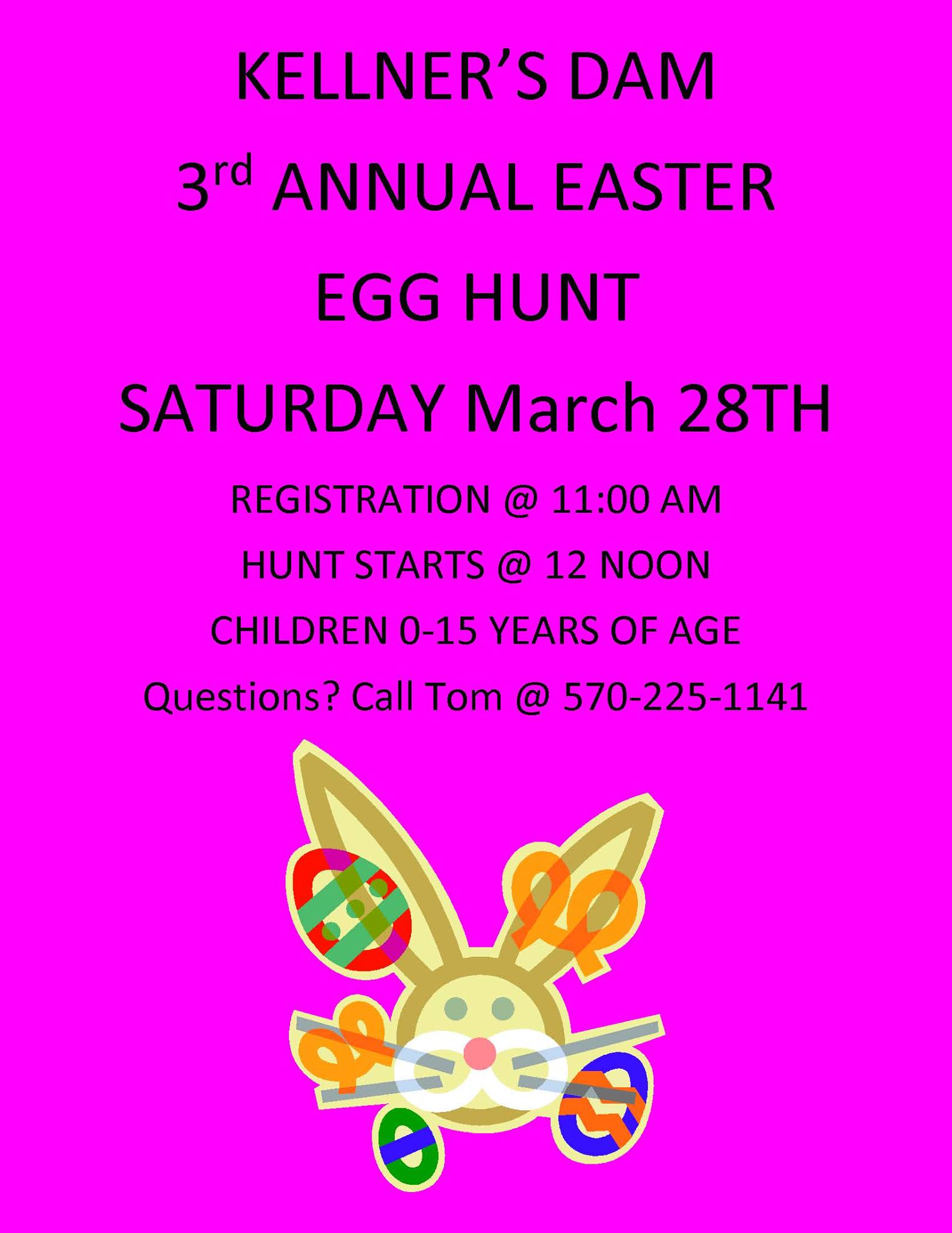 Members of the Kellner’s Dam Association are holding their 3rd Annual Easter Egg Hunt on Saturday, March 28, 2015. The free event is for kids ages 0 to 15.