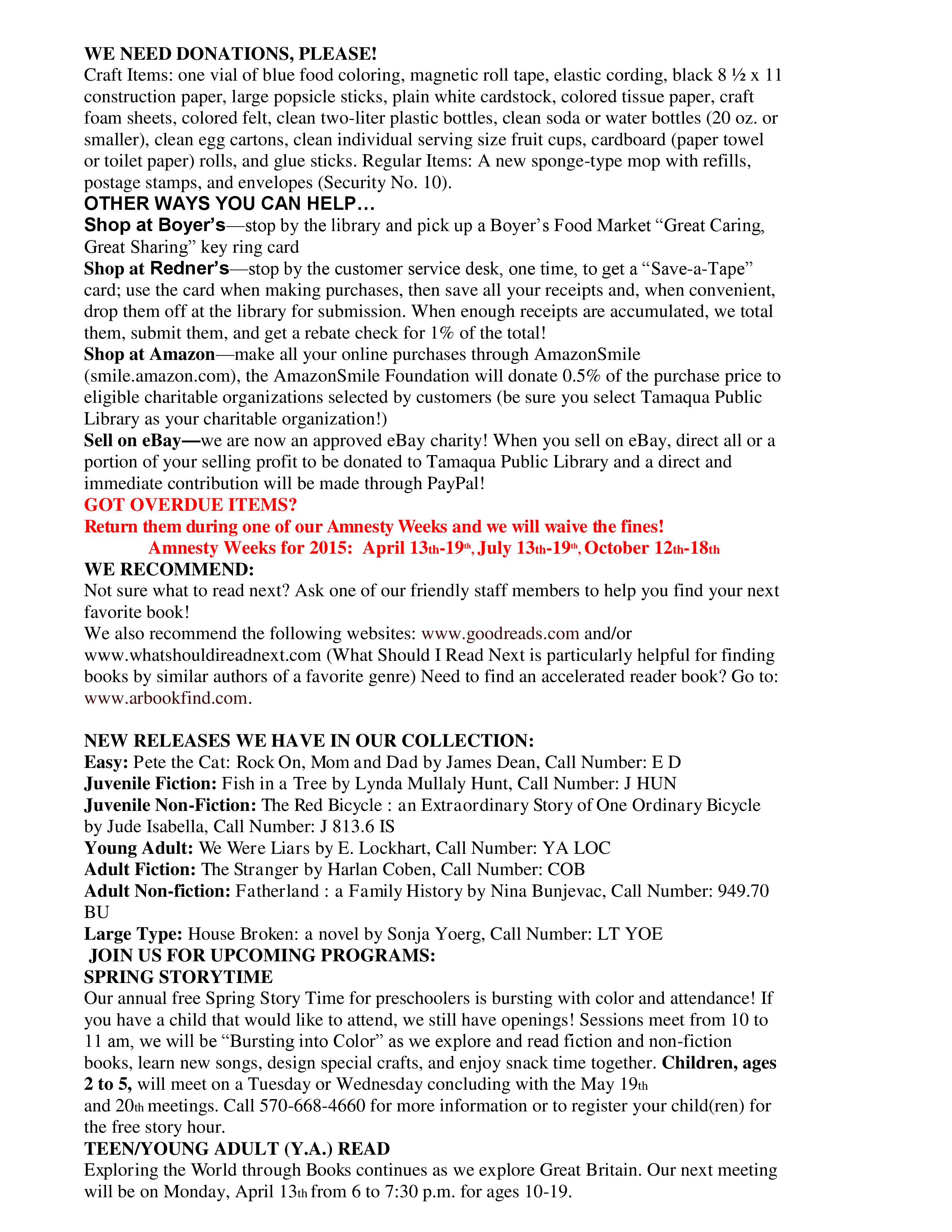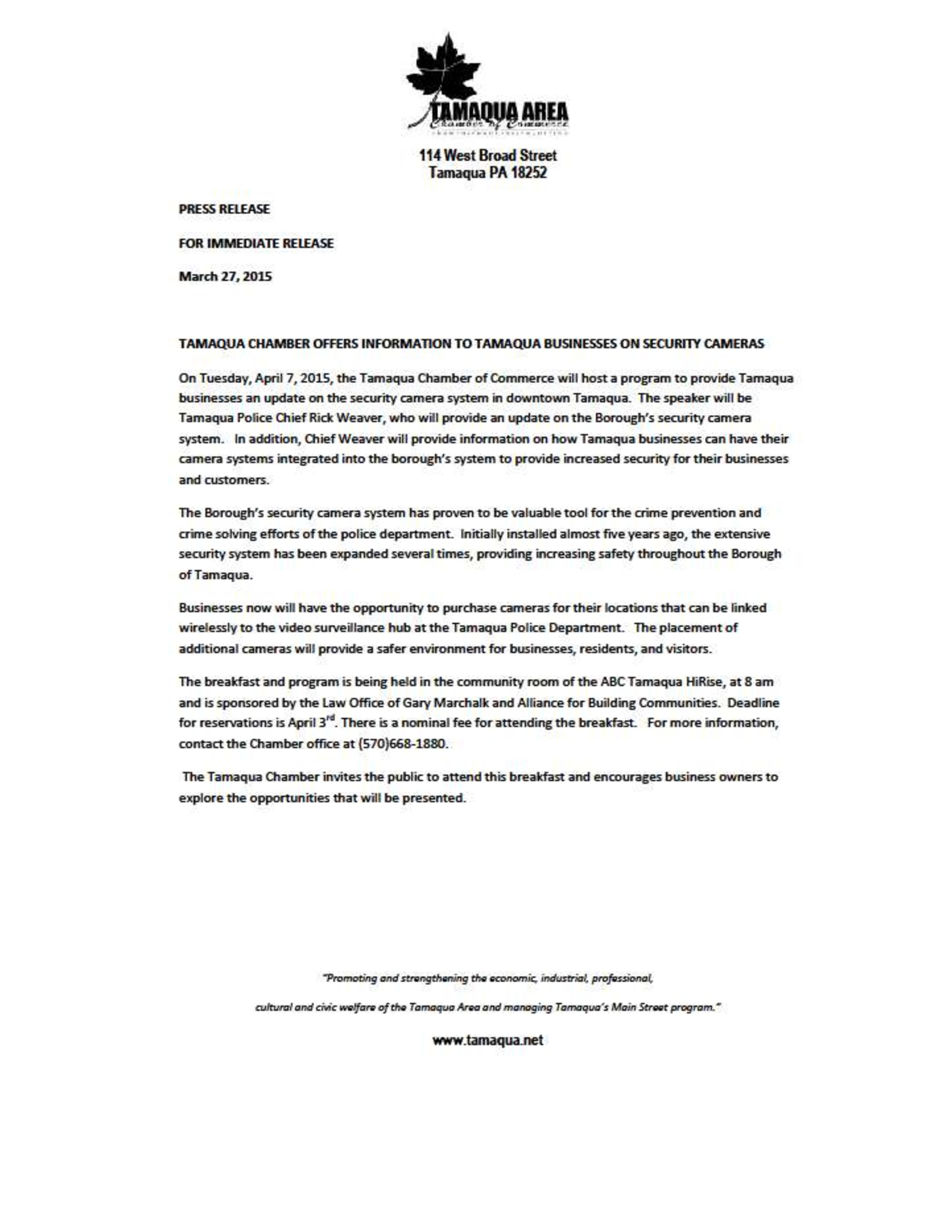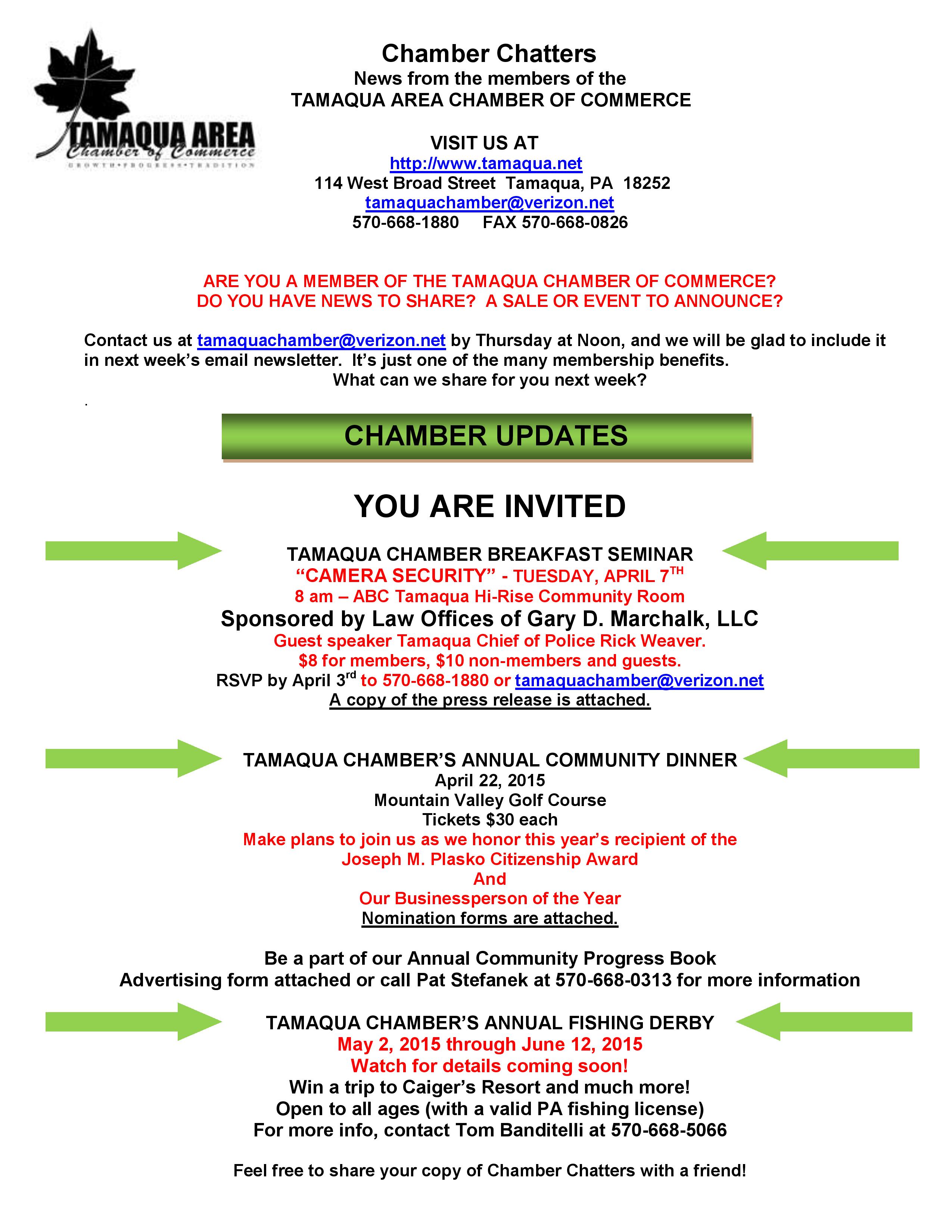 Here is the latest Tamaqua Area Chamber of Commerce’s Chamber Chatters newsletter dated Friday, March 27, 2015.