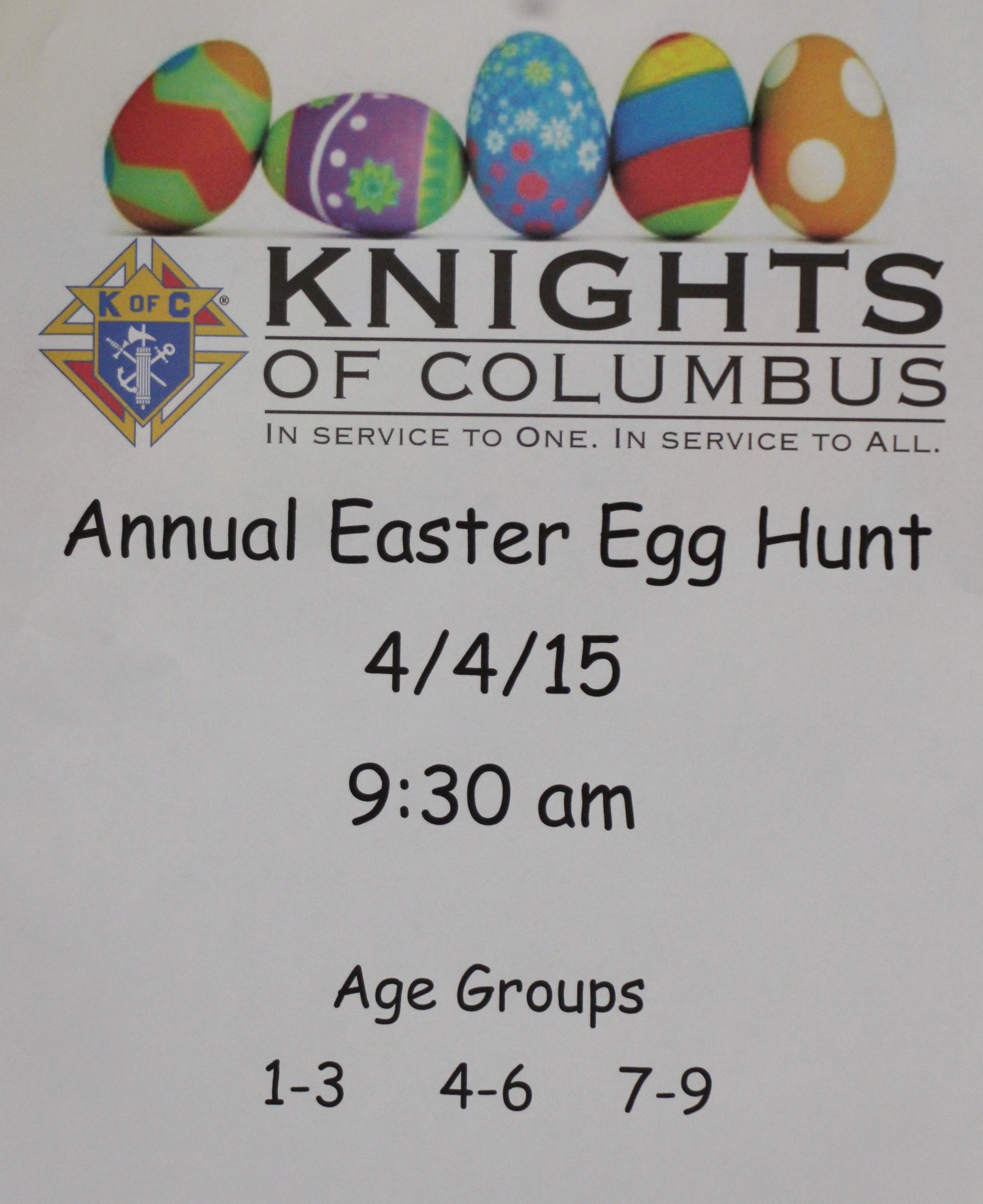 Members of the Tamaqua Knights of Columbus are holding a children’s Easter Egg Hunt outside their social hall in Seek on Saturday, April 4, 2015 starting at 9:30 AM.