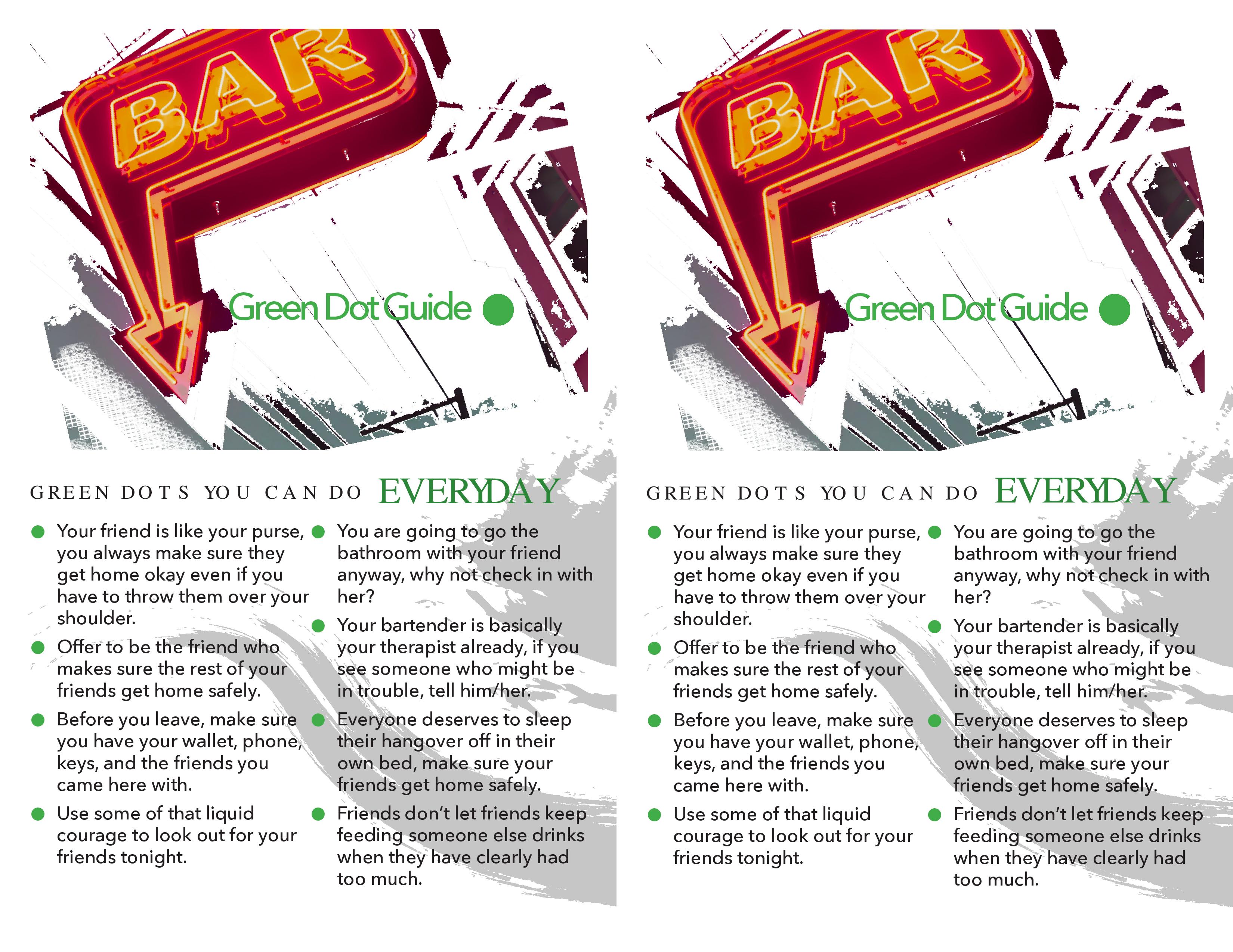 (Customer Handout), (Bartender Toolkit), (Wallet Card for Bar Patrons), (Wallet Card for Bartender), (Green Dot: Where Are We Now?), and (Green Dot Bartenders and Pub Owners Training).