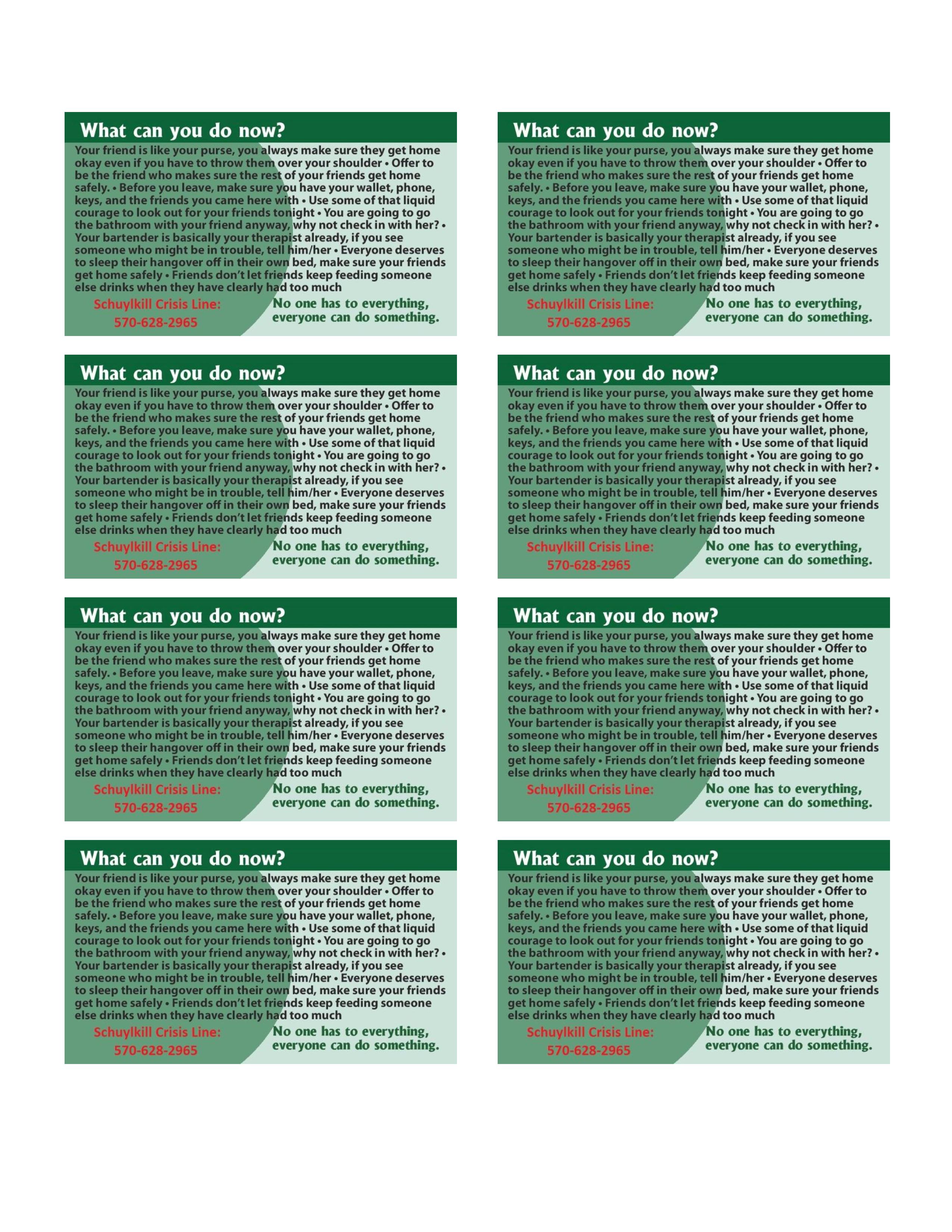 The Sexual Assault Resource & Counseling Center hotline is (570) 628-2965. The “Schuylkill County We Help” Crisis Hotline is (877) 993-4357.