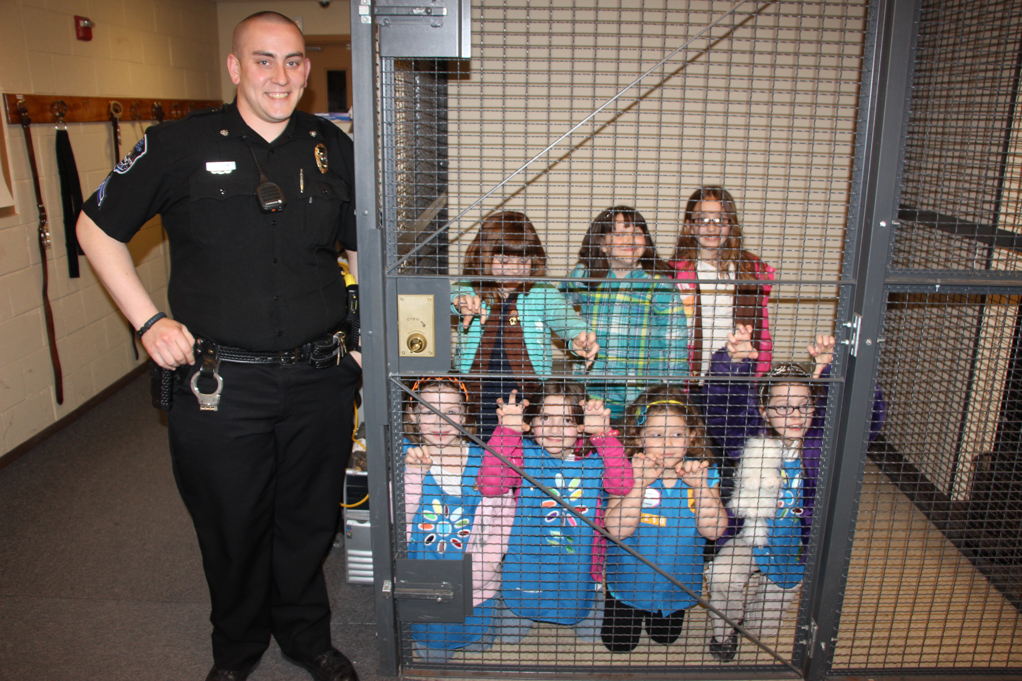 Corporal Adam Sinton, a 5-year officer, showed the scouts the police station, cell and police vehicles.