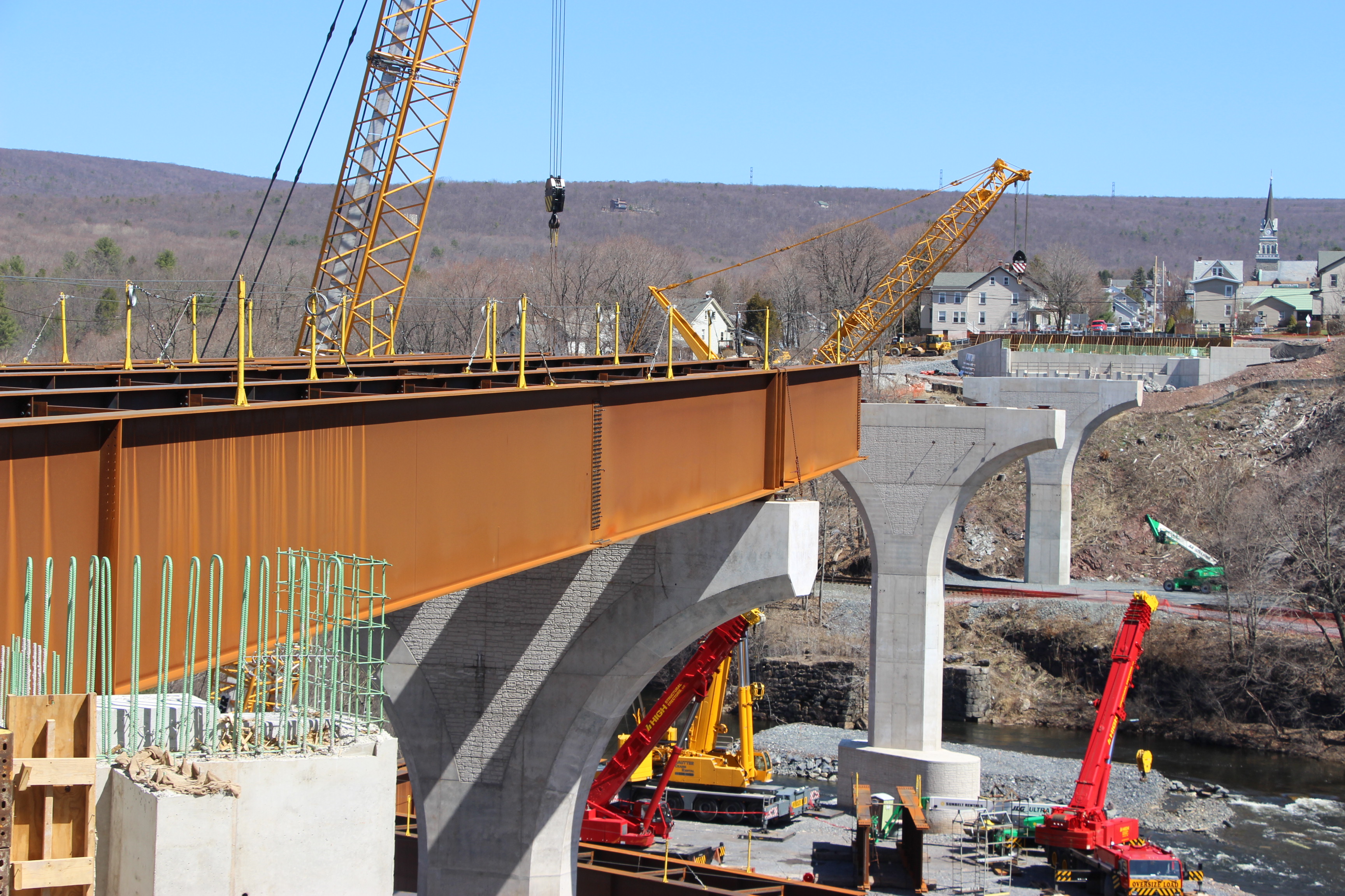 Pictured are photos showing the current construction status of the new Route 903 Jim Thorpe Bridge, as of yesterday, Sunday, April 12, 2015.