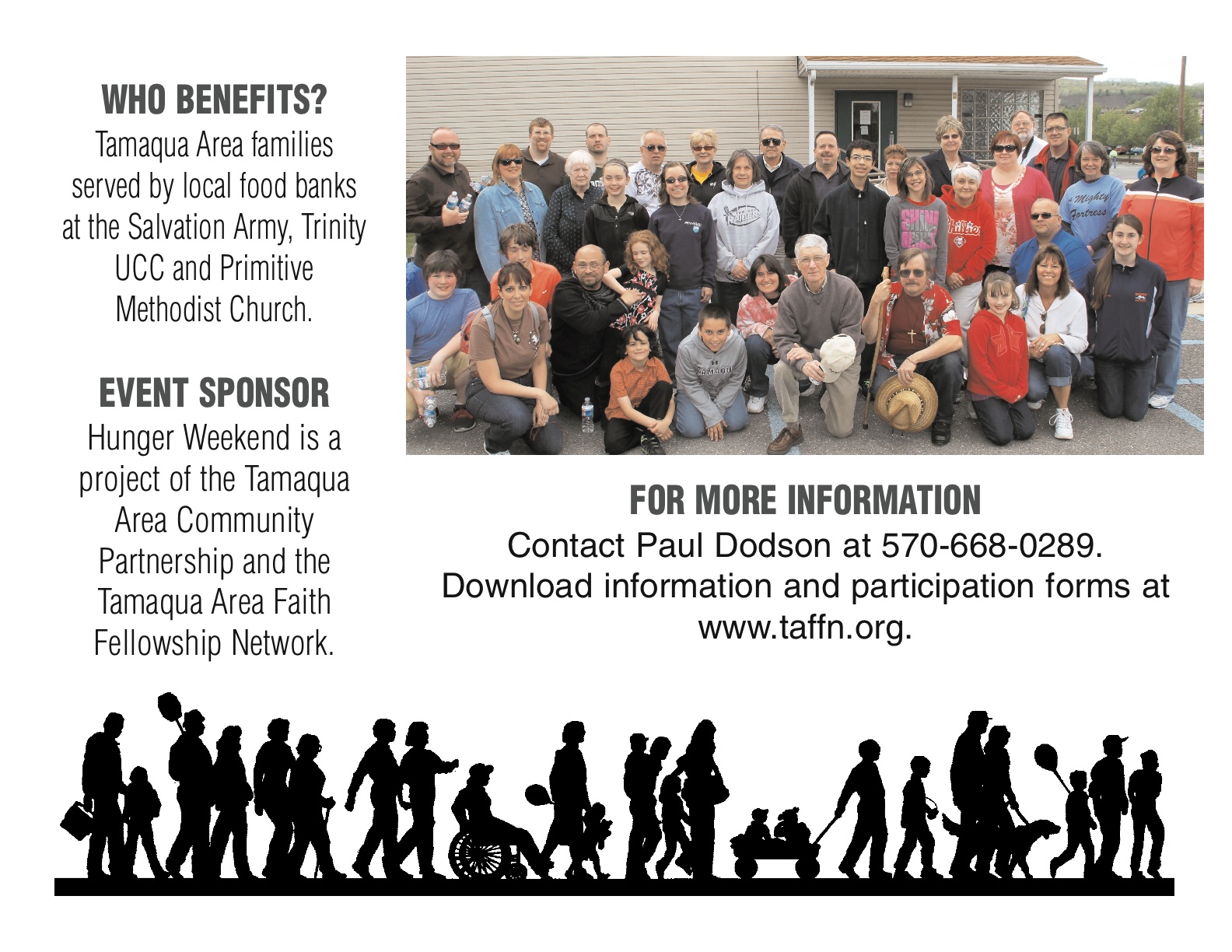 The Tamaqua Area Faith Fellowship Network, an affiliate of the Tamaqua Area Community Partnership, is sponsoring its second “Hunger Weekend” to help provide food for families living in the boundaries of the Tamaqua Area School District in need of a helping hand.