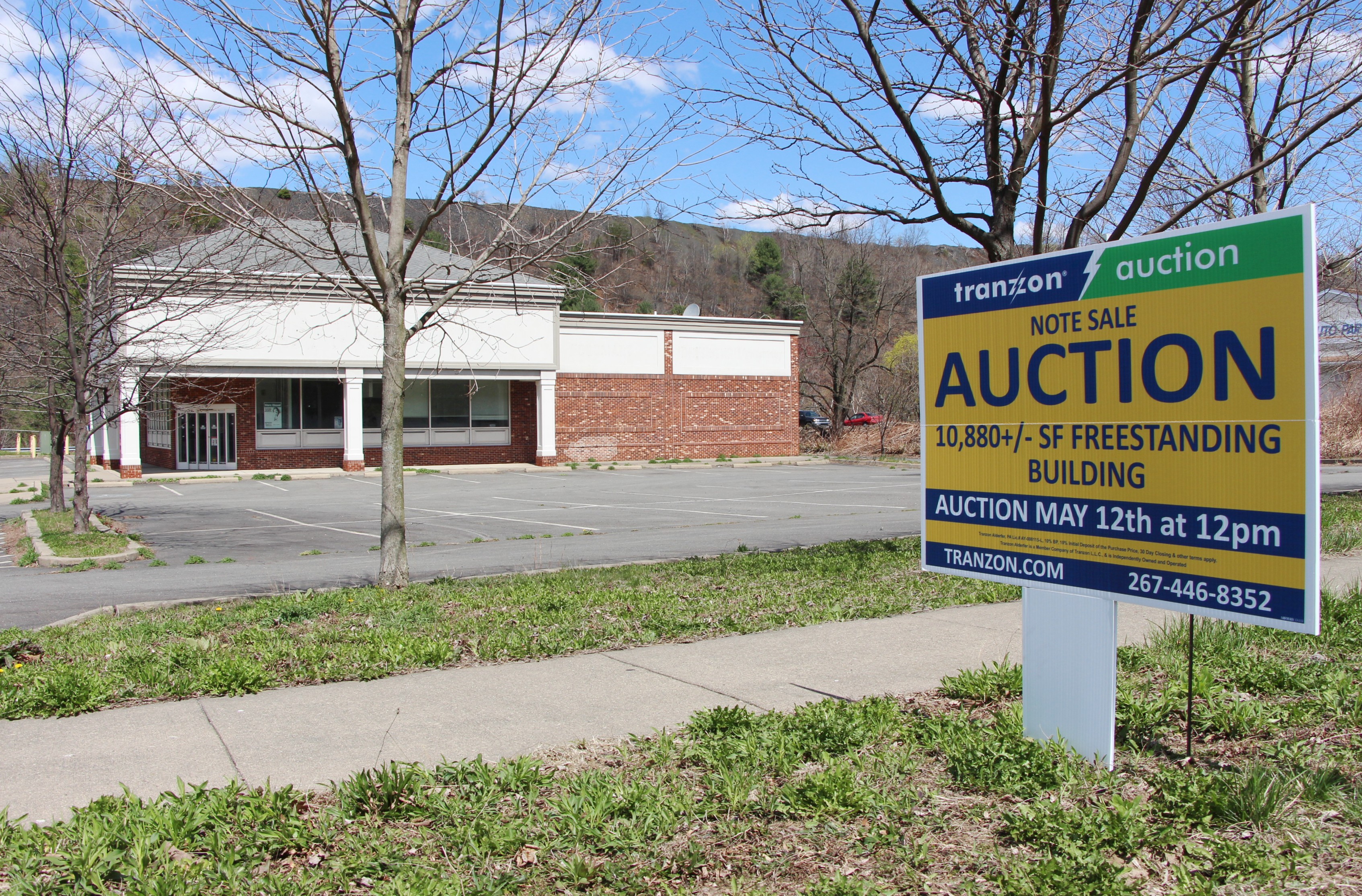 CVS For Sale, East Broad Street, Tamaqua, 4-29-2015 (5)Closed since March 2006, the “old” 10,880-square-foot CVS building at 1099 East Broad Street is up for sale on Tuesday, May 12, 2015. A staked sign from Tranzon Auction states a Note Sale Auction is set for 12 PM that day.