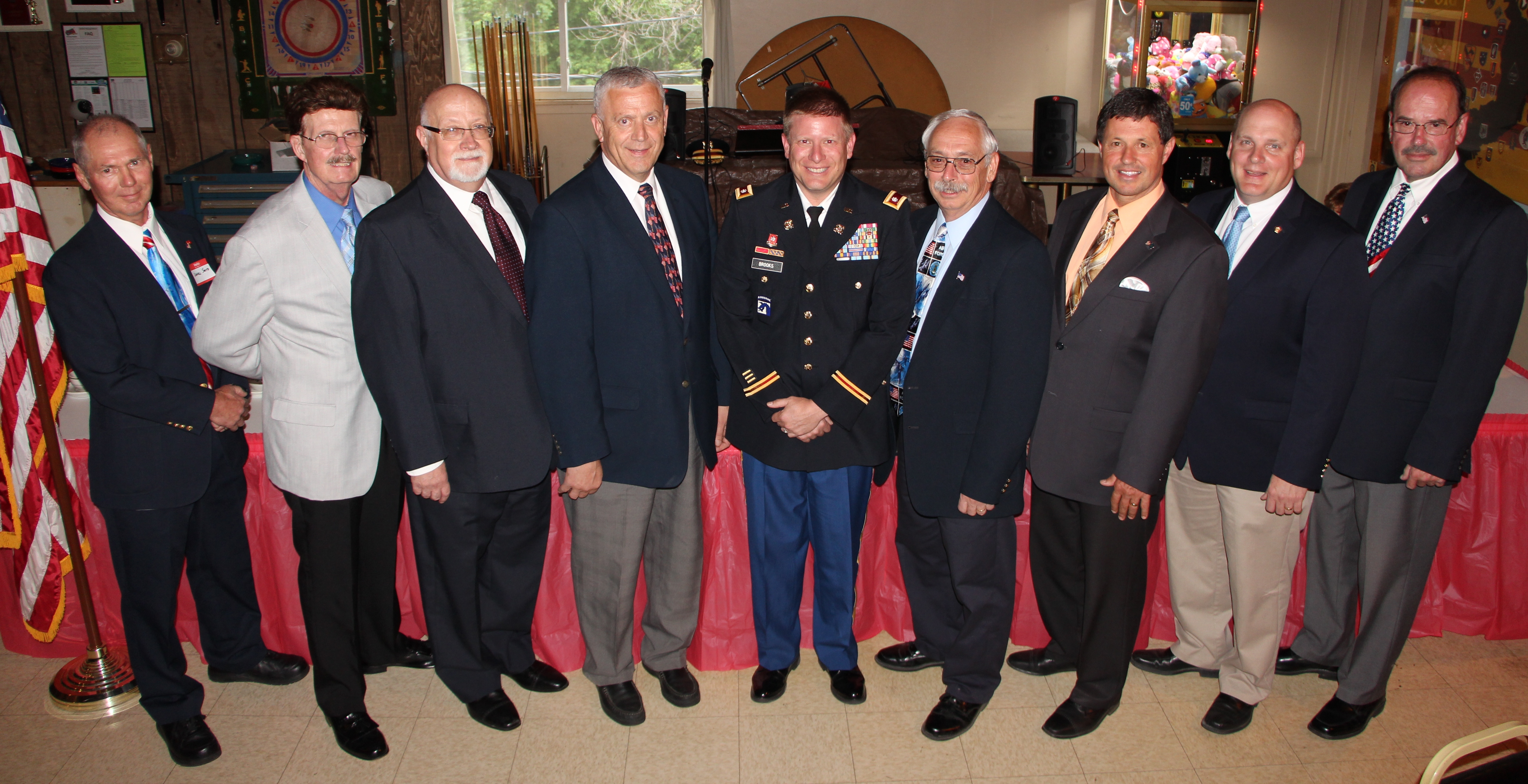 Pictured from left are Pastor Daniel Smith; American Legion 30th District Vice Commander Harry Wynn III; Lansford Borough Council President Martin Ditsky; Carbon County Commissioner Bill O’Gurek; Lt. Col. Timothy Brooks, 213th ASG, PA-ANG; Carbon County Commissioner Wayne Nothstein; Carbon County Commissioner Tom Gerhard; State Representative Doyle Heffley; Henry Desrosiers, DVA, Carbon County.