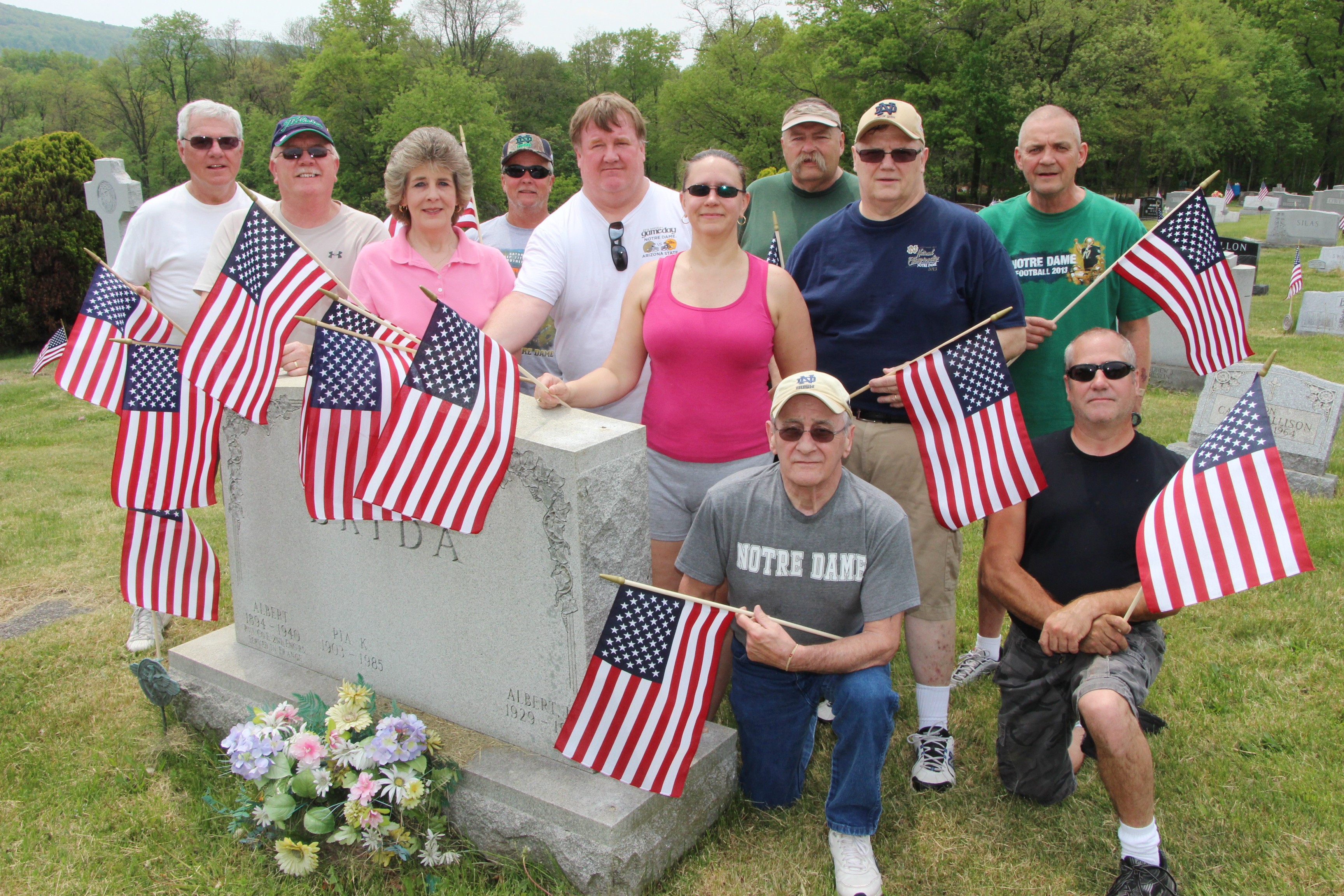 Continuing tradition, members of the Notre Dame Club of Schuylkill County spent time recently placing flags at two St. Jerome’s cemeteries and the Lithuanian Cemetery along Owl Creek Road in Tamaqua.