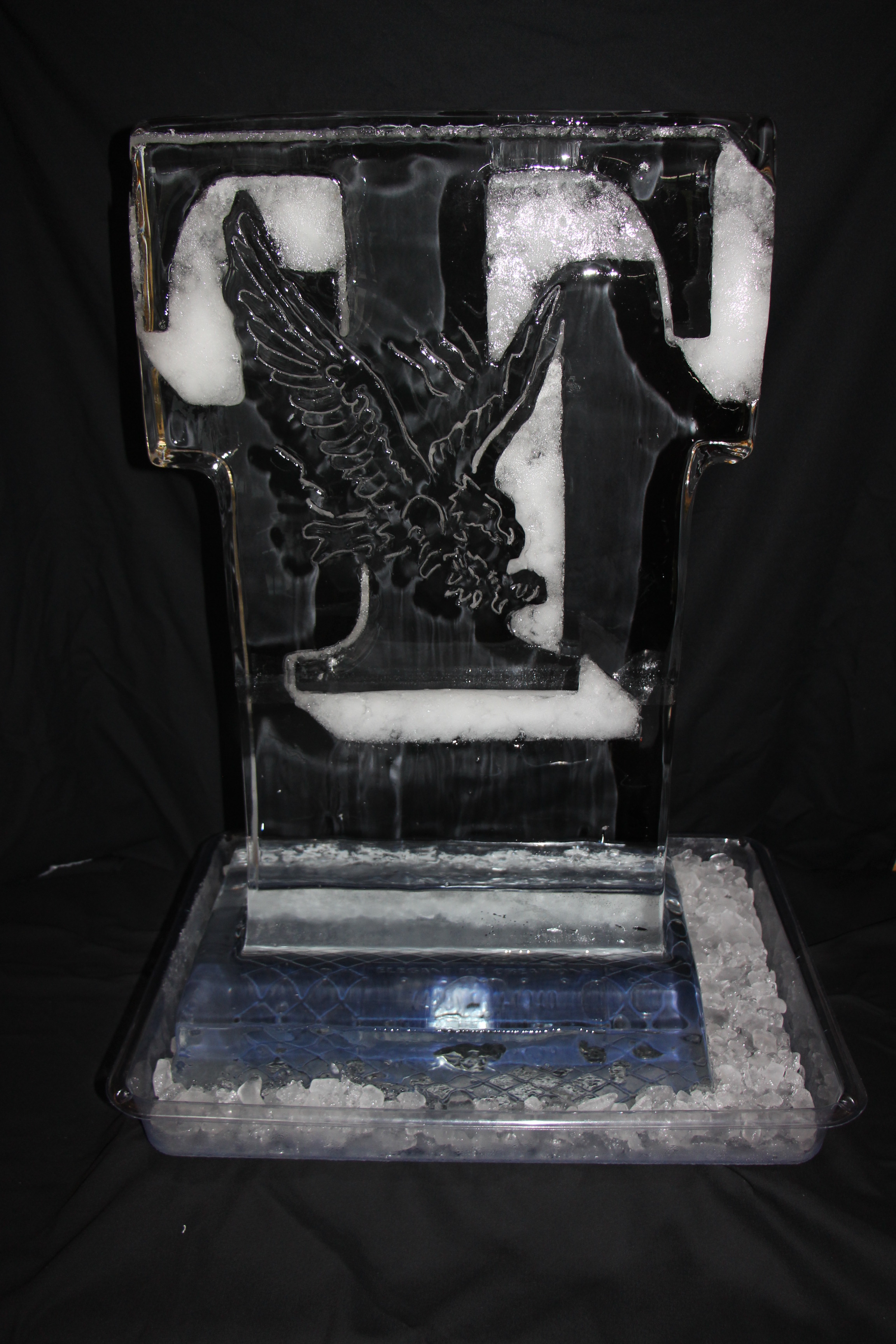 Ice sculpture was made by Jeff Crawford of Frozen Fantasies Hand-Crafted Ice Sculptures.