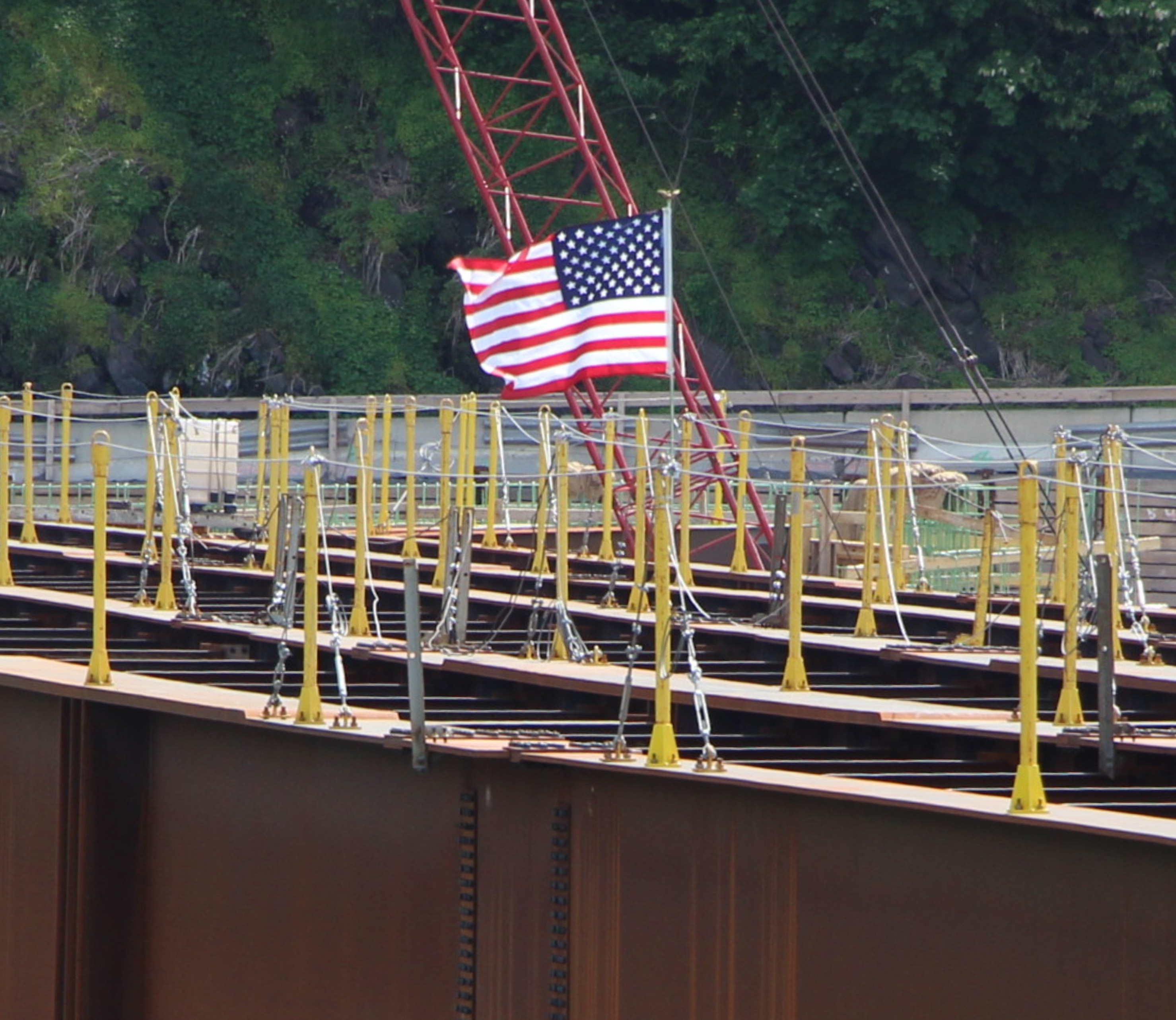 Not forgetting the purpose of Memorial Day, contractors took the time to display Old Glory at the center of the new Jim Thorpe Memorial Bridge.