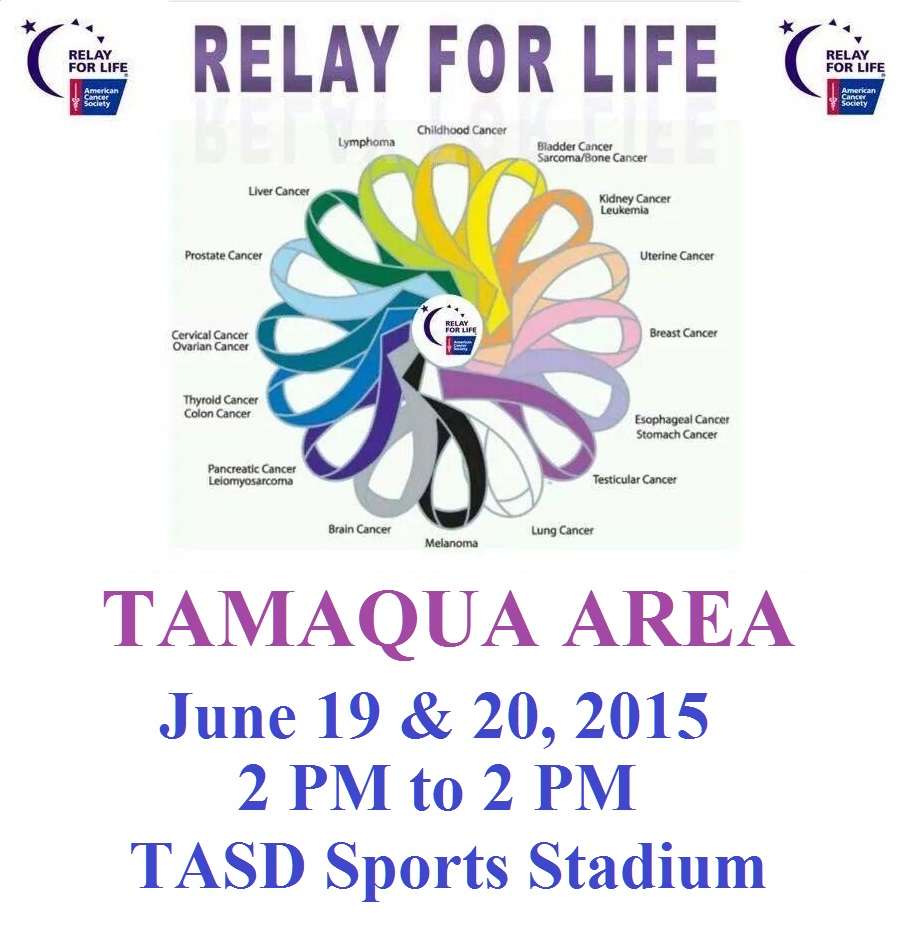 The Relay For Life of Tamaqua and the Surrounding Areas is being held on Friday, June 19 to Saturday, June 20, 2015 from 2 PM till 2 PM at the Tamaqua Area Sports Stadium.