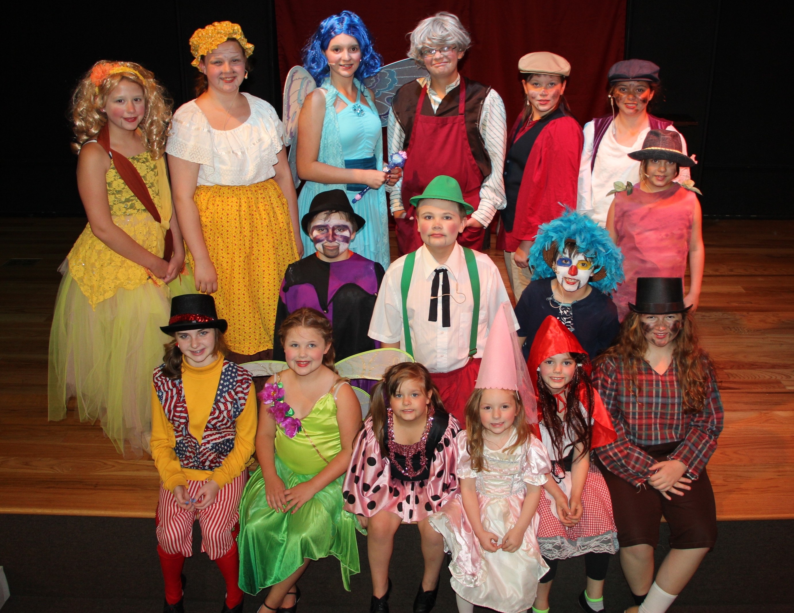 Pictured from front left are Nadiya Sieger, 13, as Sterling; Brooklyn Surotchak, 8, as junior puppet; Jill Spering-Gindville, 5, as junior puppet; Lianna Coombe-Holly, 4, as junior puppet; Shylah Kathleen Fenstermaker, 8, as junior puppet; and Amelia Cassell as Candlewyck). From middle left are Laughlin Sieger, 11, as junior puppet; Nicholas Surotchak, 10, as Pinocchio; Anthony Odorizzi, 9, as Kelso; and Karen Spering-Gindville, 8, as Zed. From back left are Mya Heffner, 11, as Marigold; Reilly Bauer, 11, as Mama Leoni; Sarah Martinez, 14, as Blue Fairy; Andrew Surotchak, 13, as Gepetto; Kelsey A. Kraemer, 10, as Zack; and Jaidyn Jadosh, as Zeke.