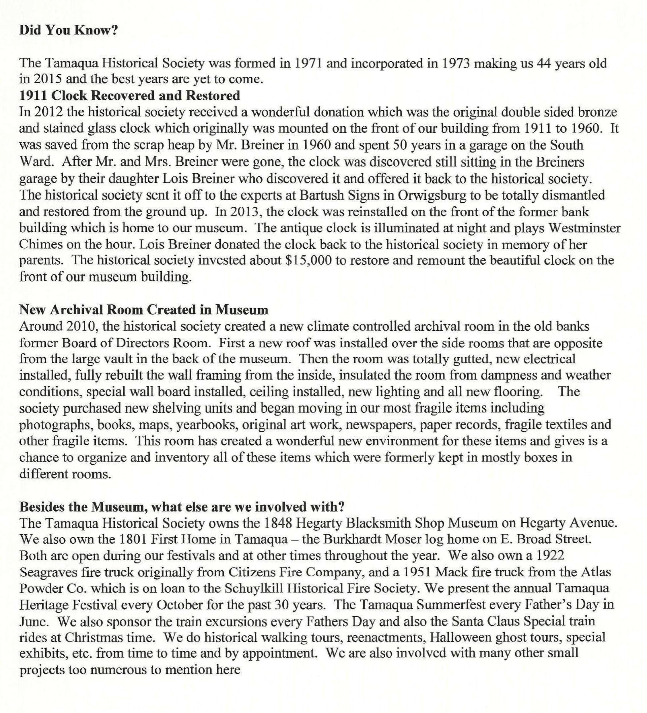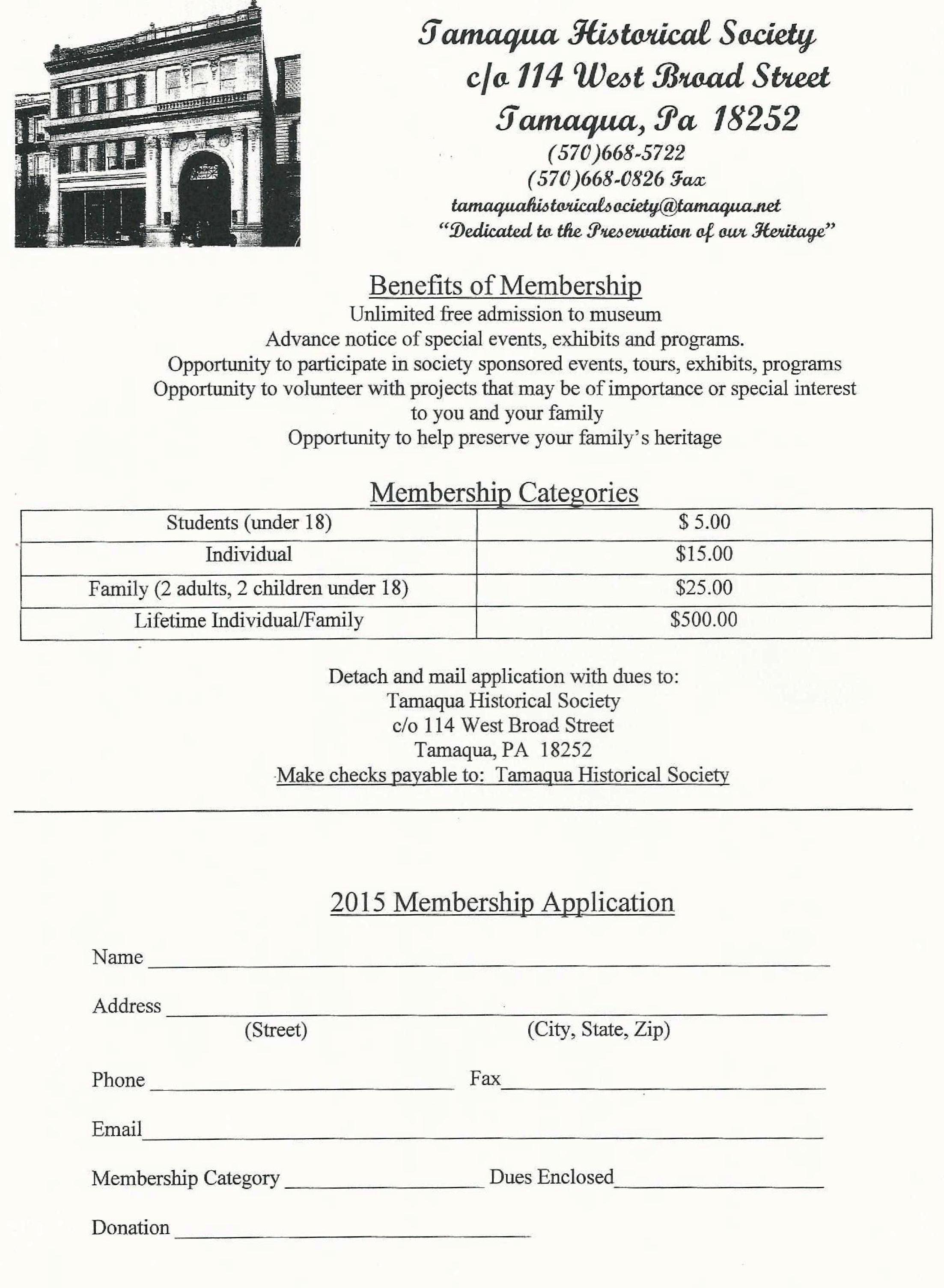 Click HERE to print out a Tamaqua Historical Society membership form.