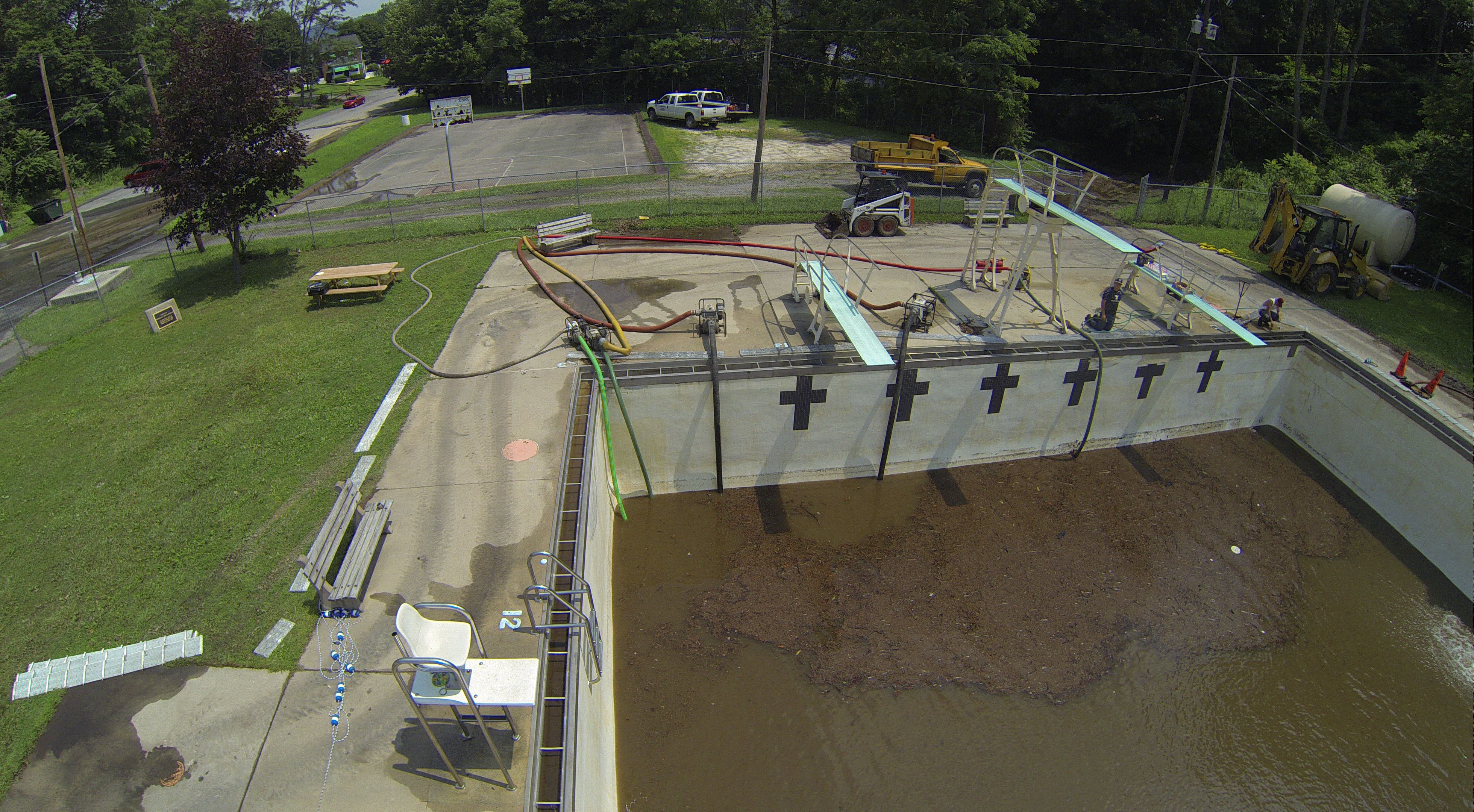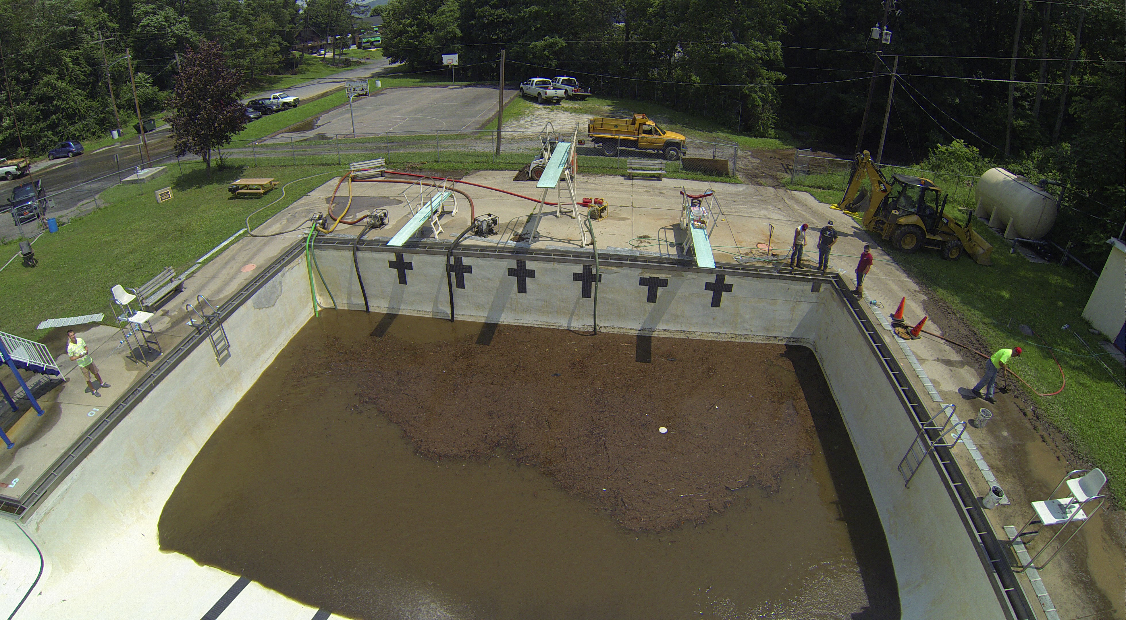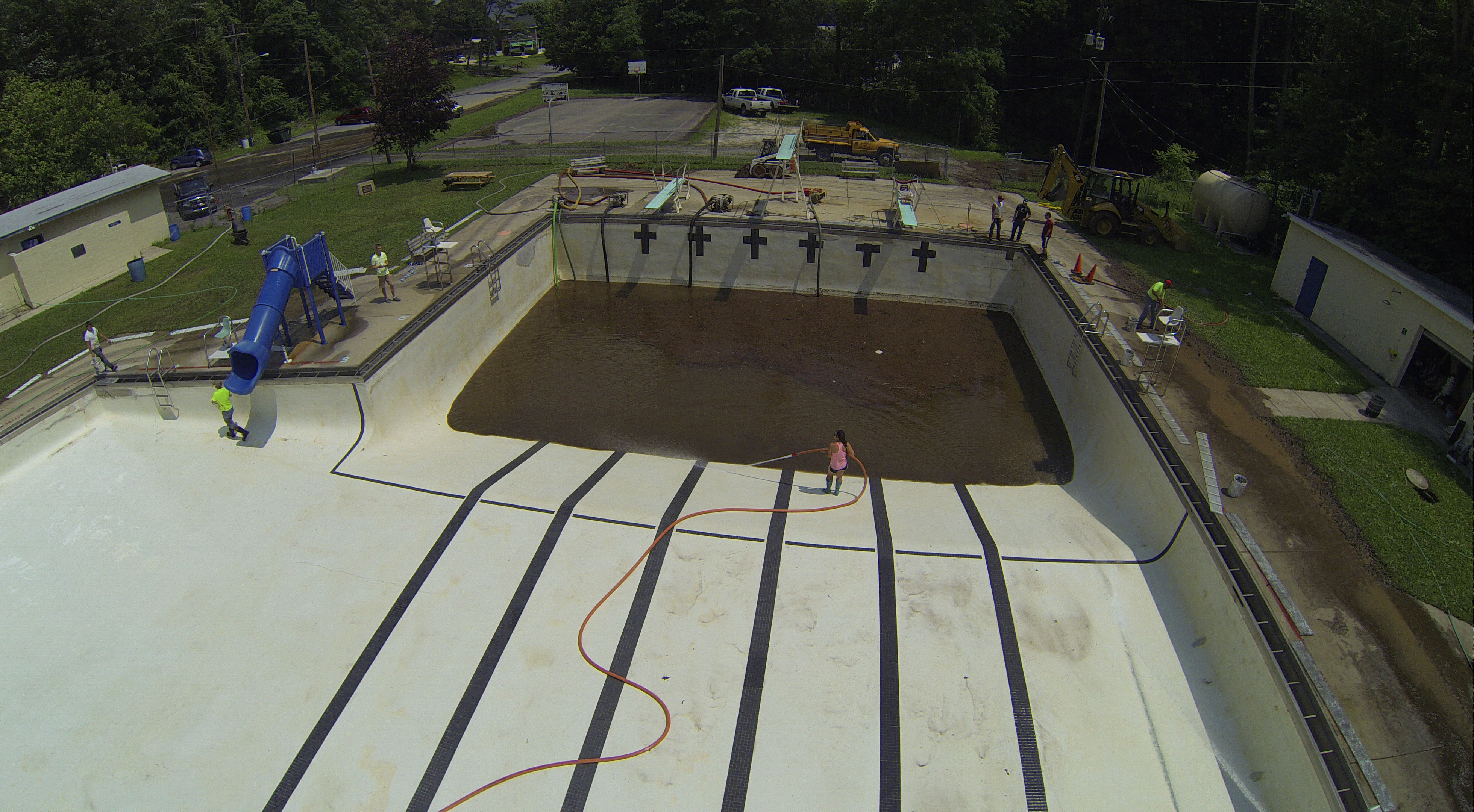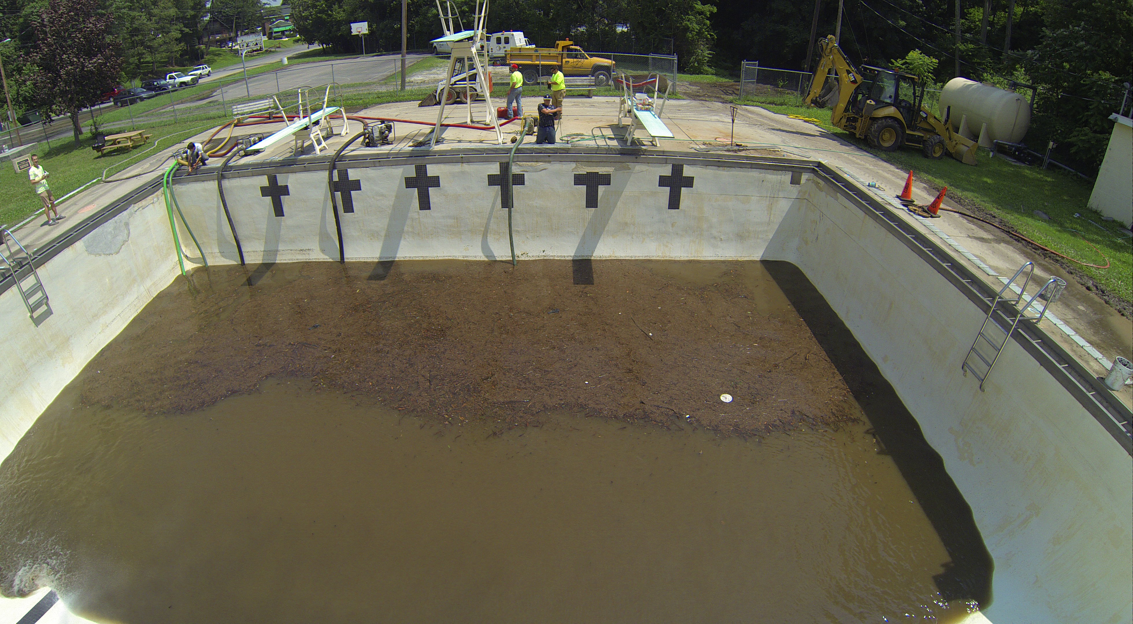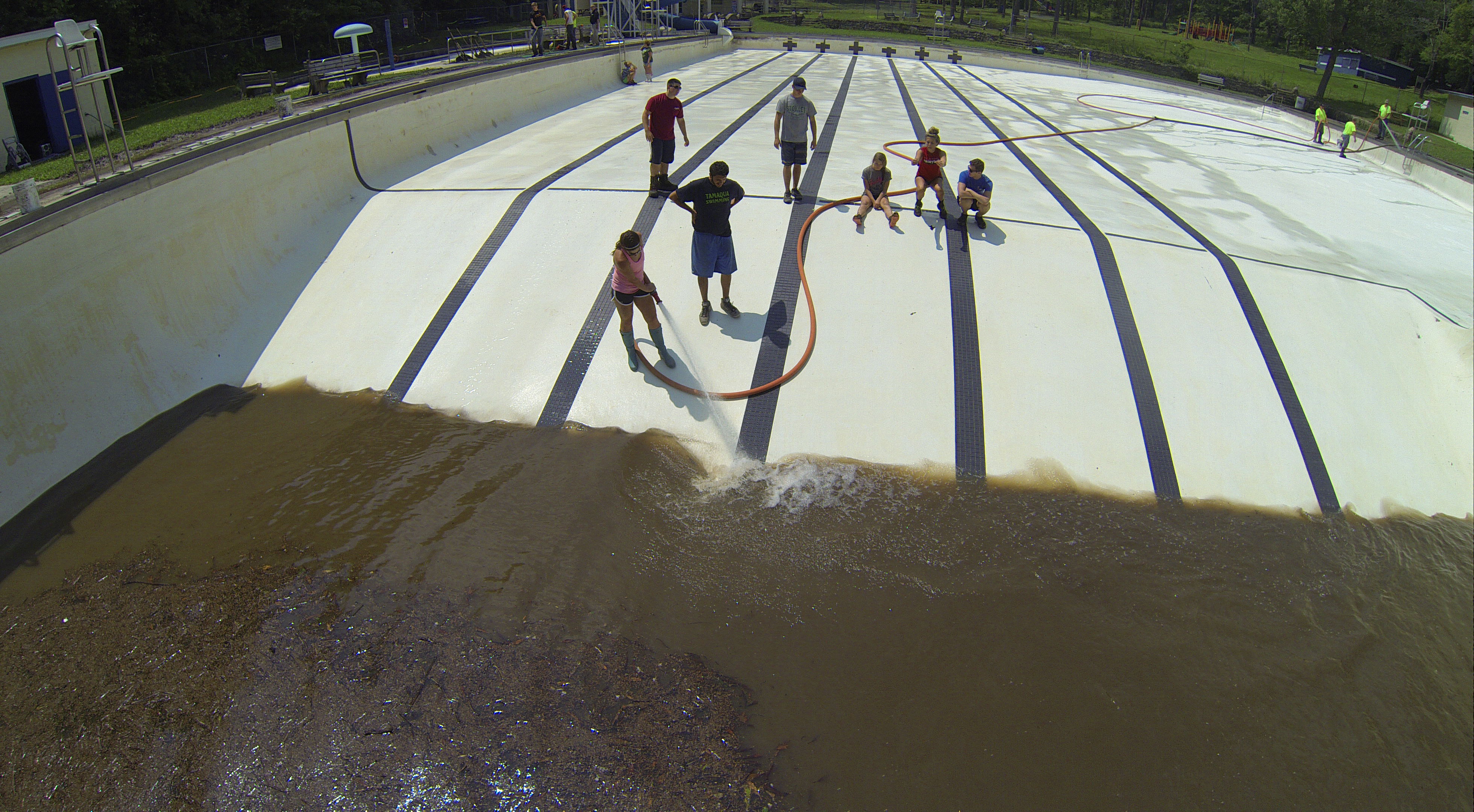 Less than 24 hours after Tamaqua’s H.D. Buehler Bungalow Pool was filled with dirty water runoff, borough crews and pool staff were removing the final layer of mud and dirty water.