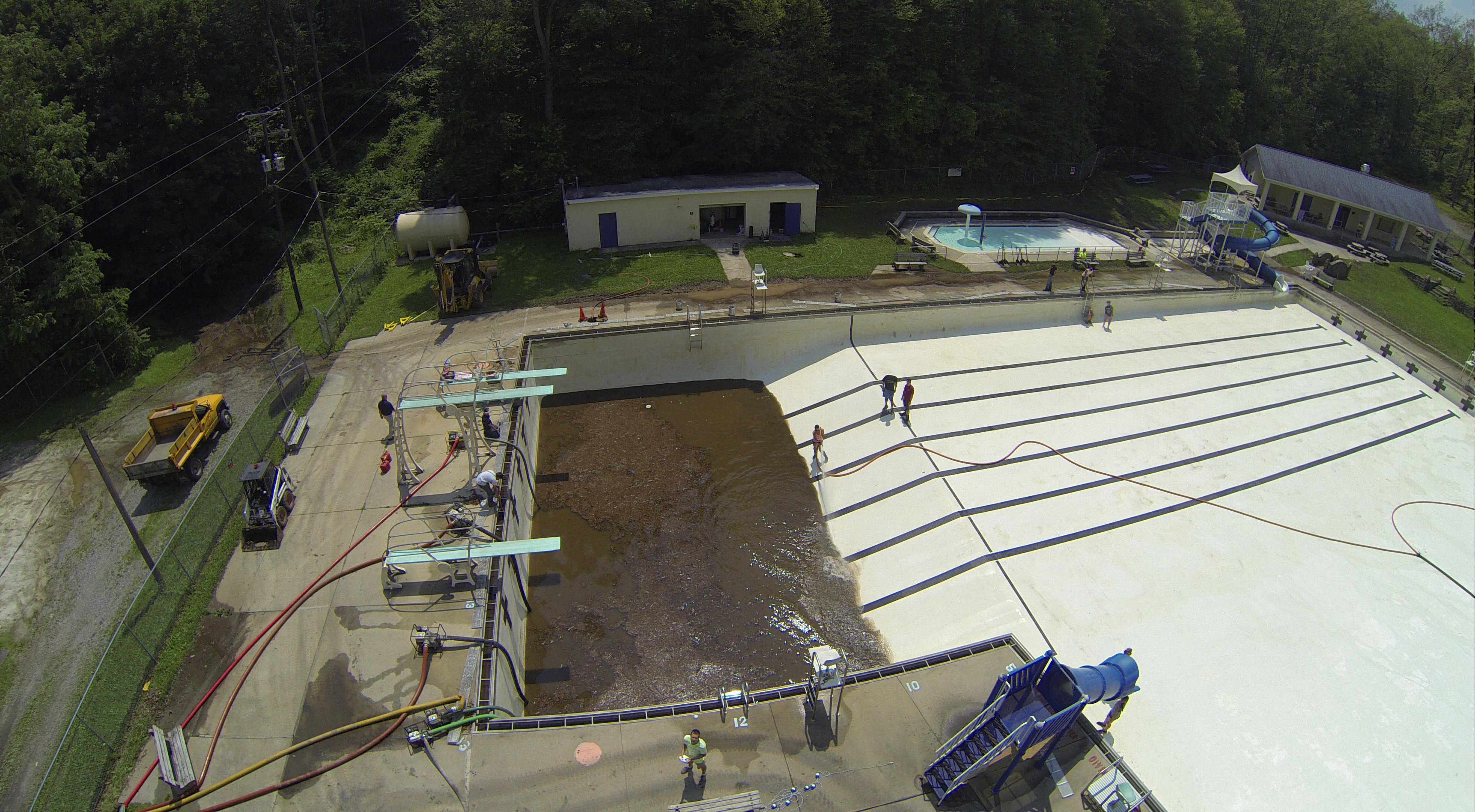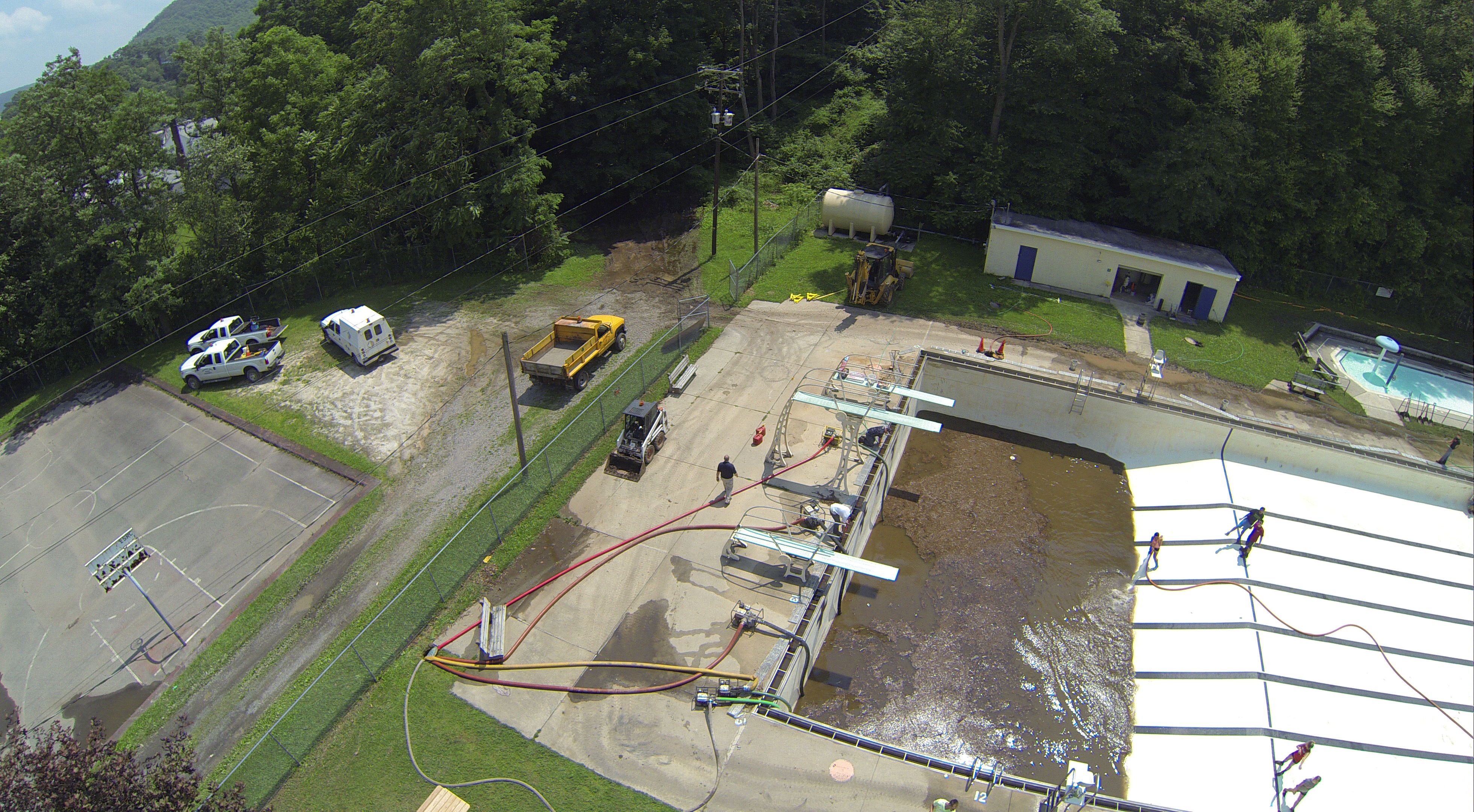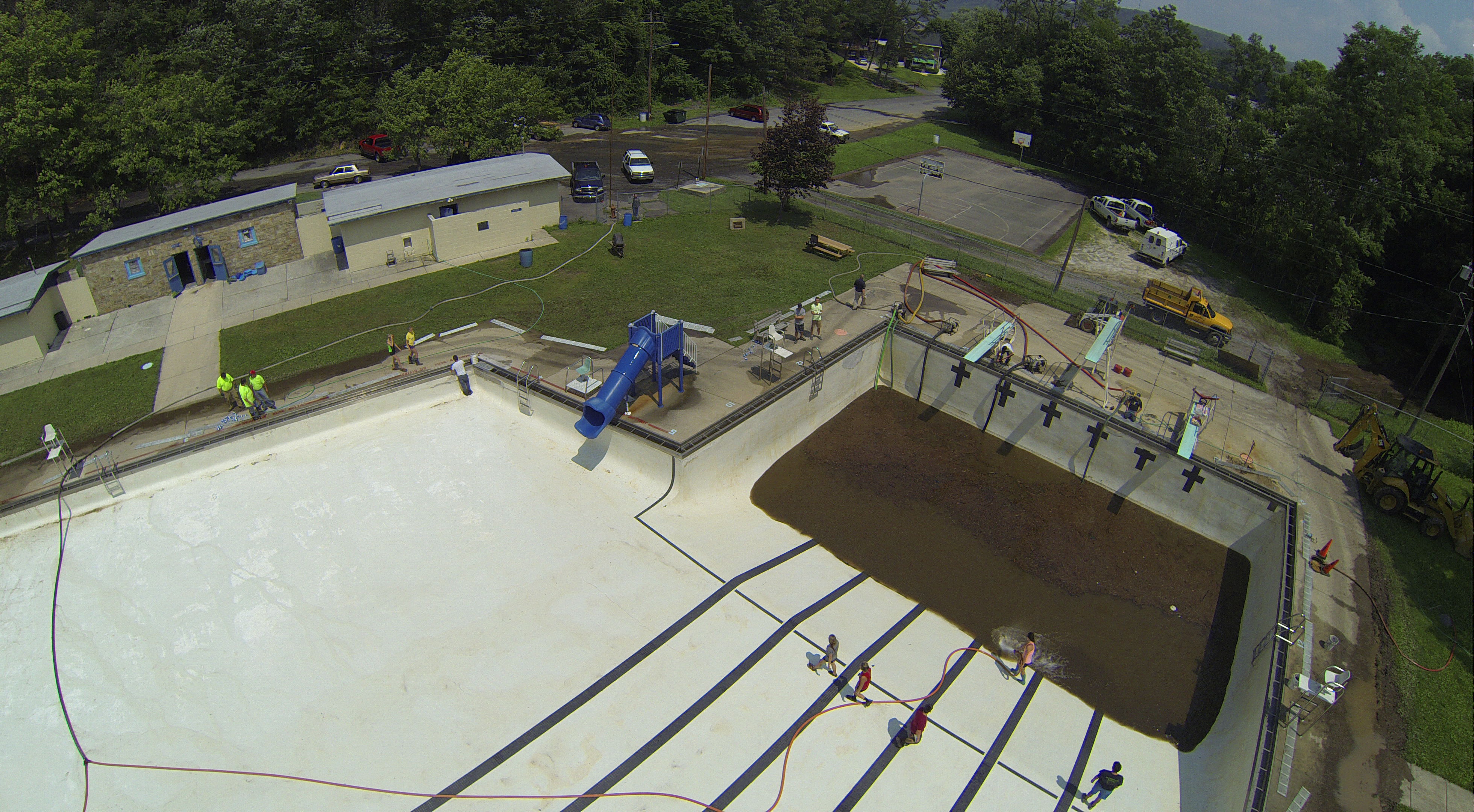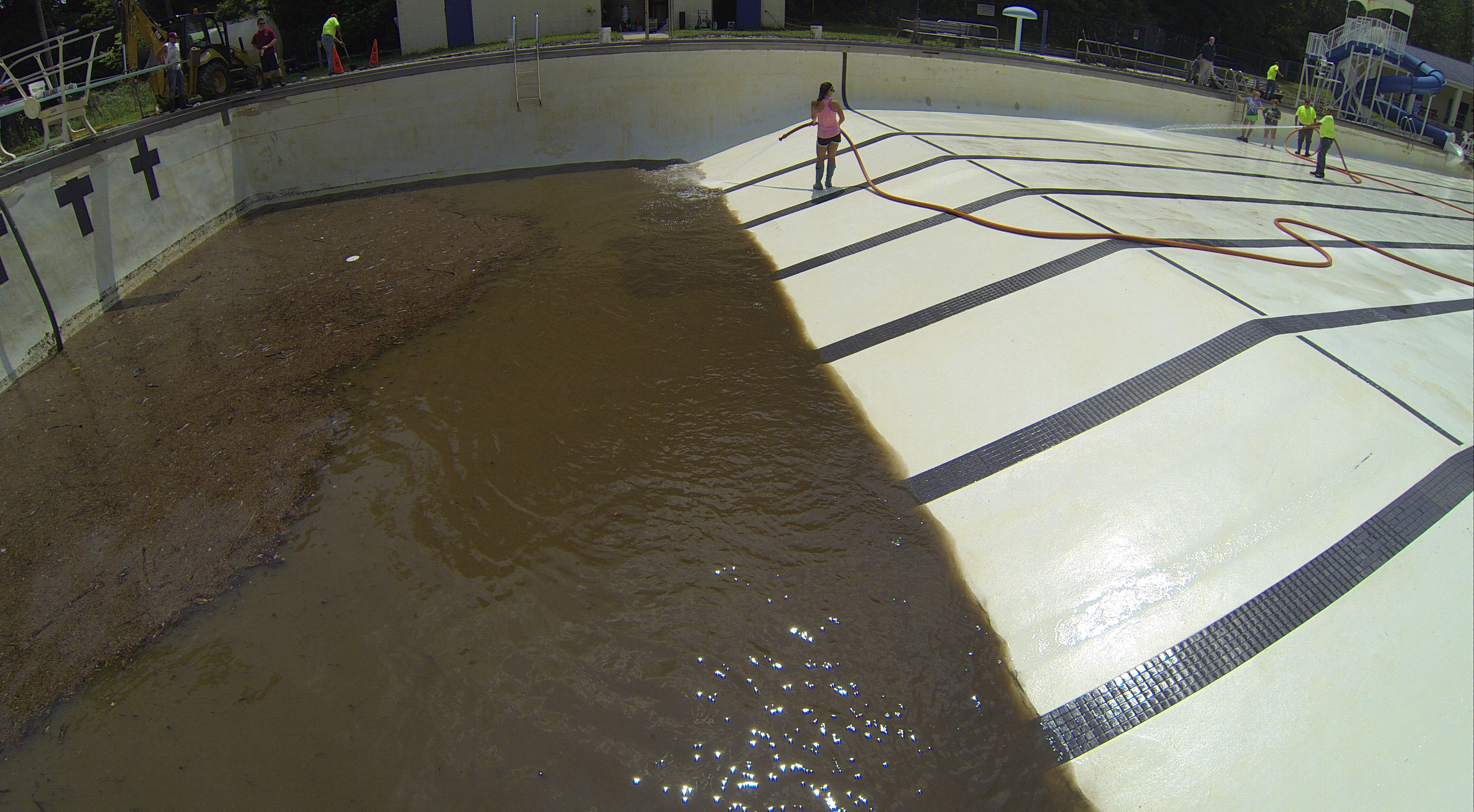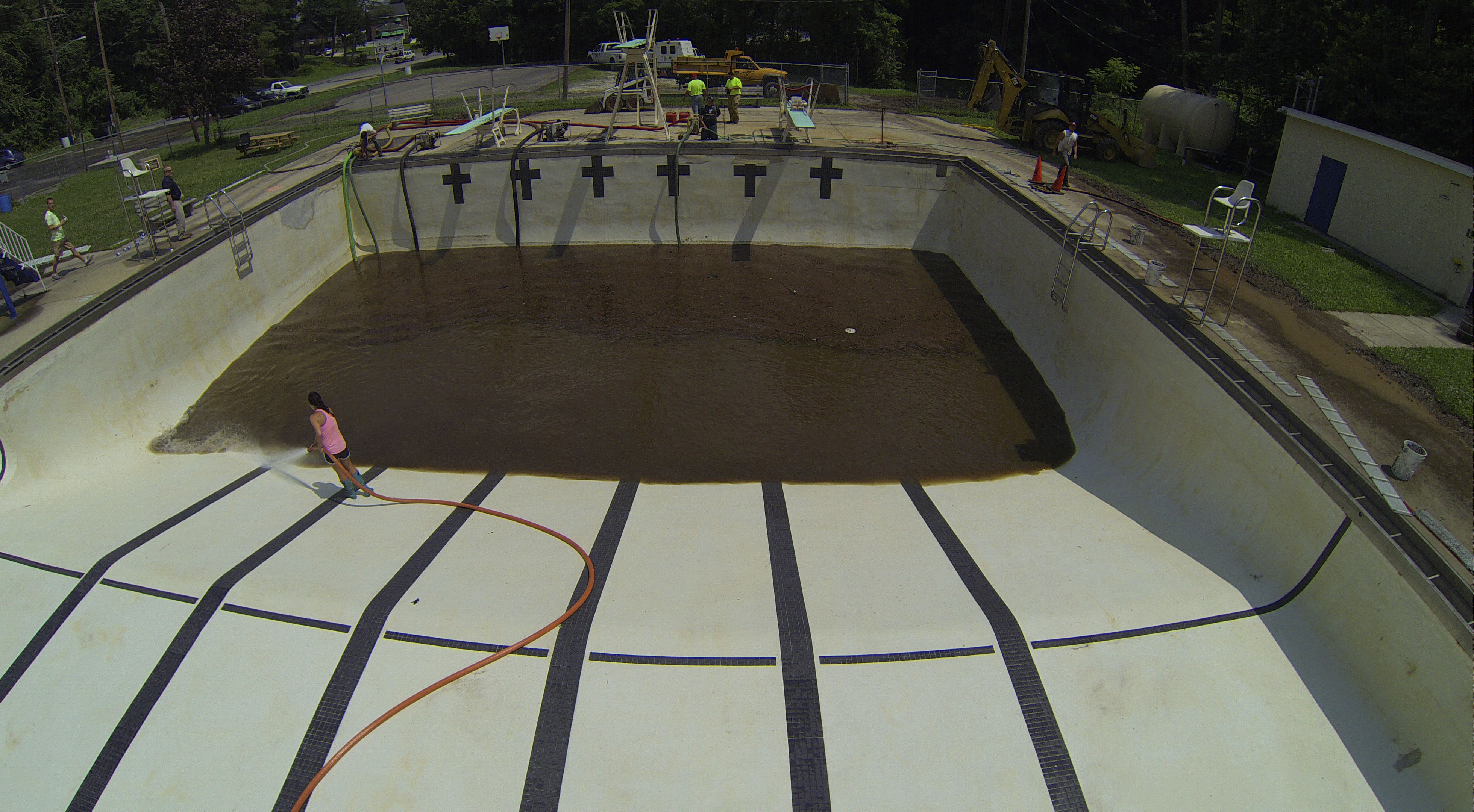 Less than 24 hours after Tamaqua’s H.D. Buehler Bungalow Pool was filled with dirty water runoff, borough crews and pool staff were removing the final layer of mud and dirty water.