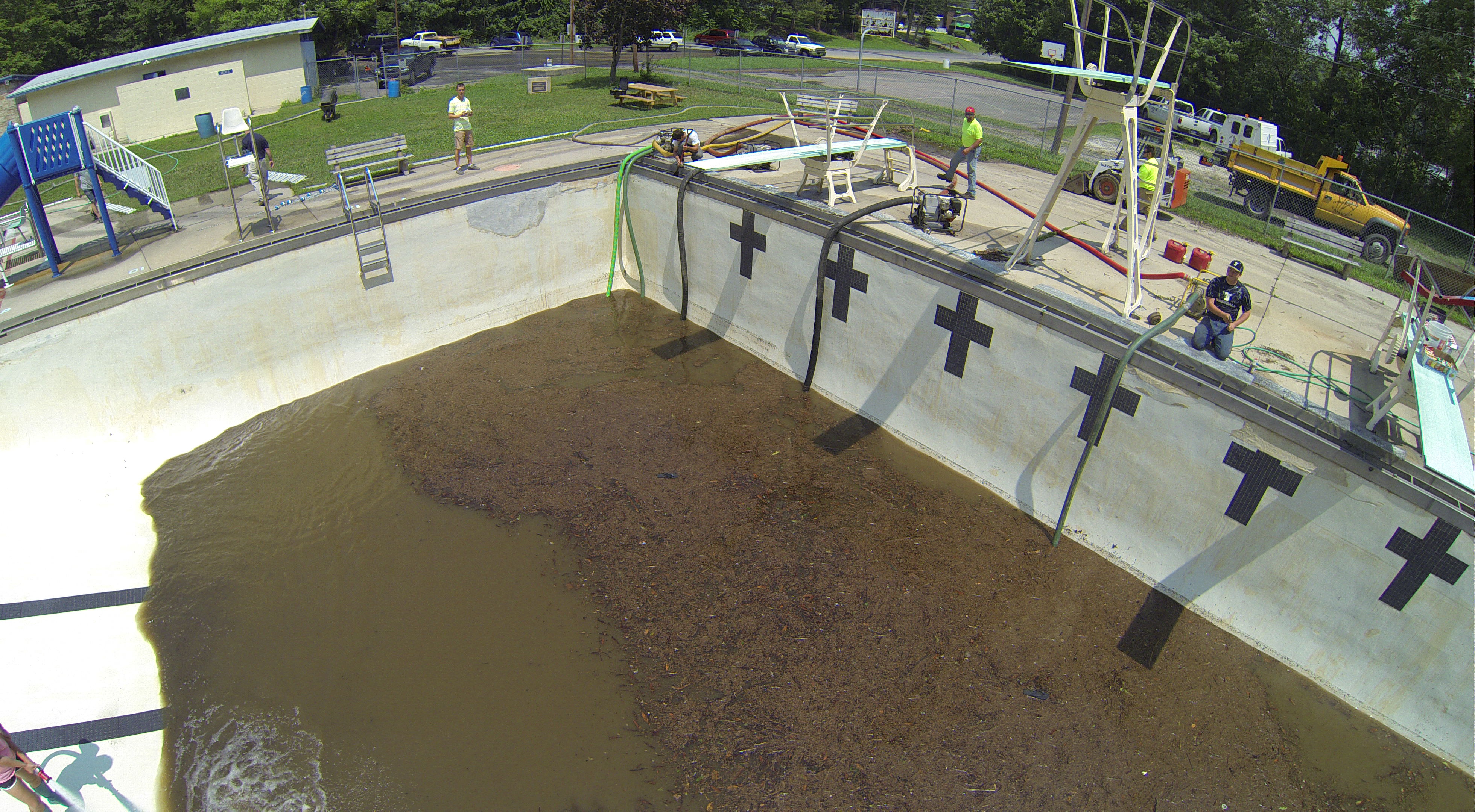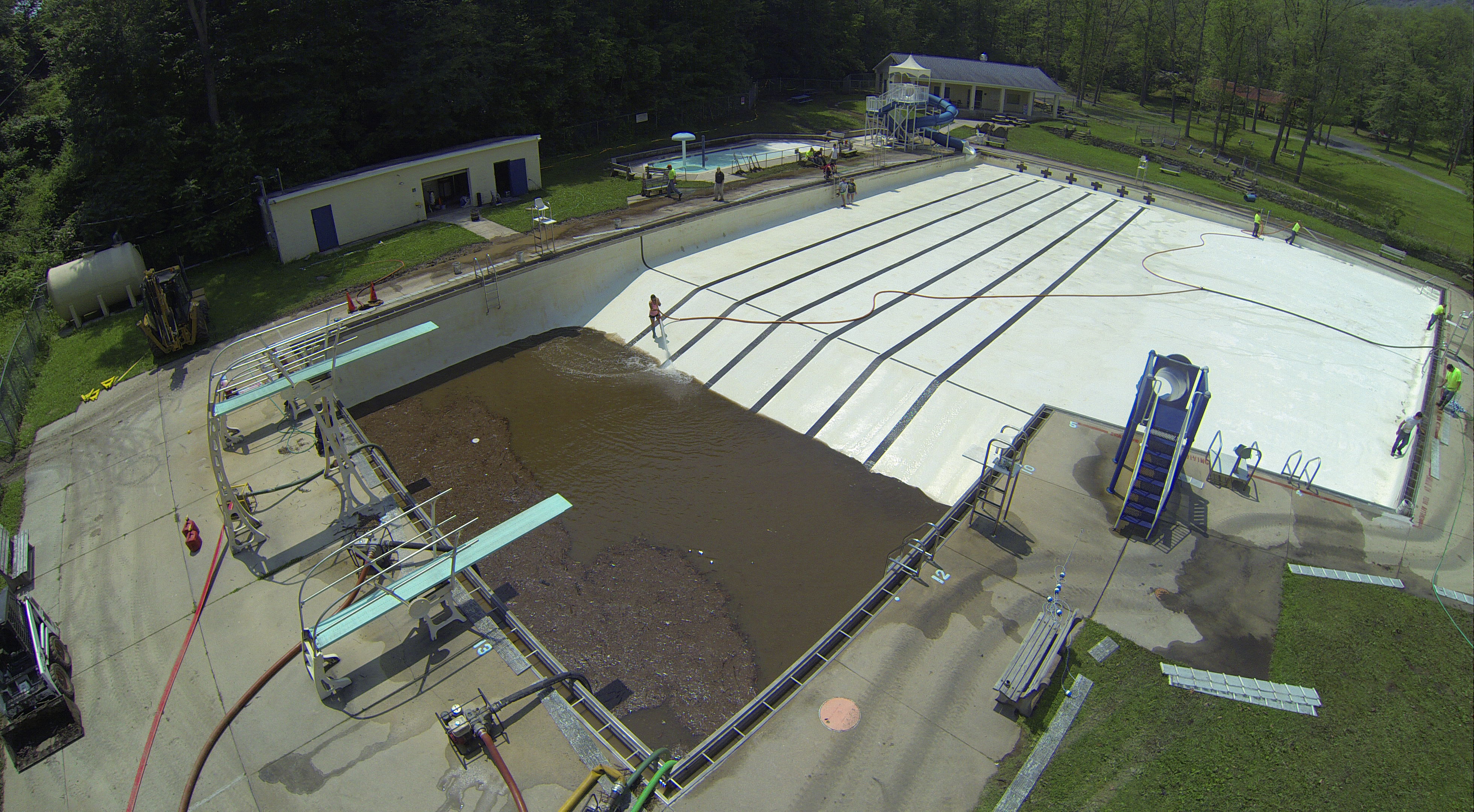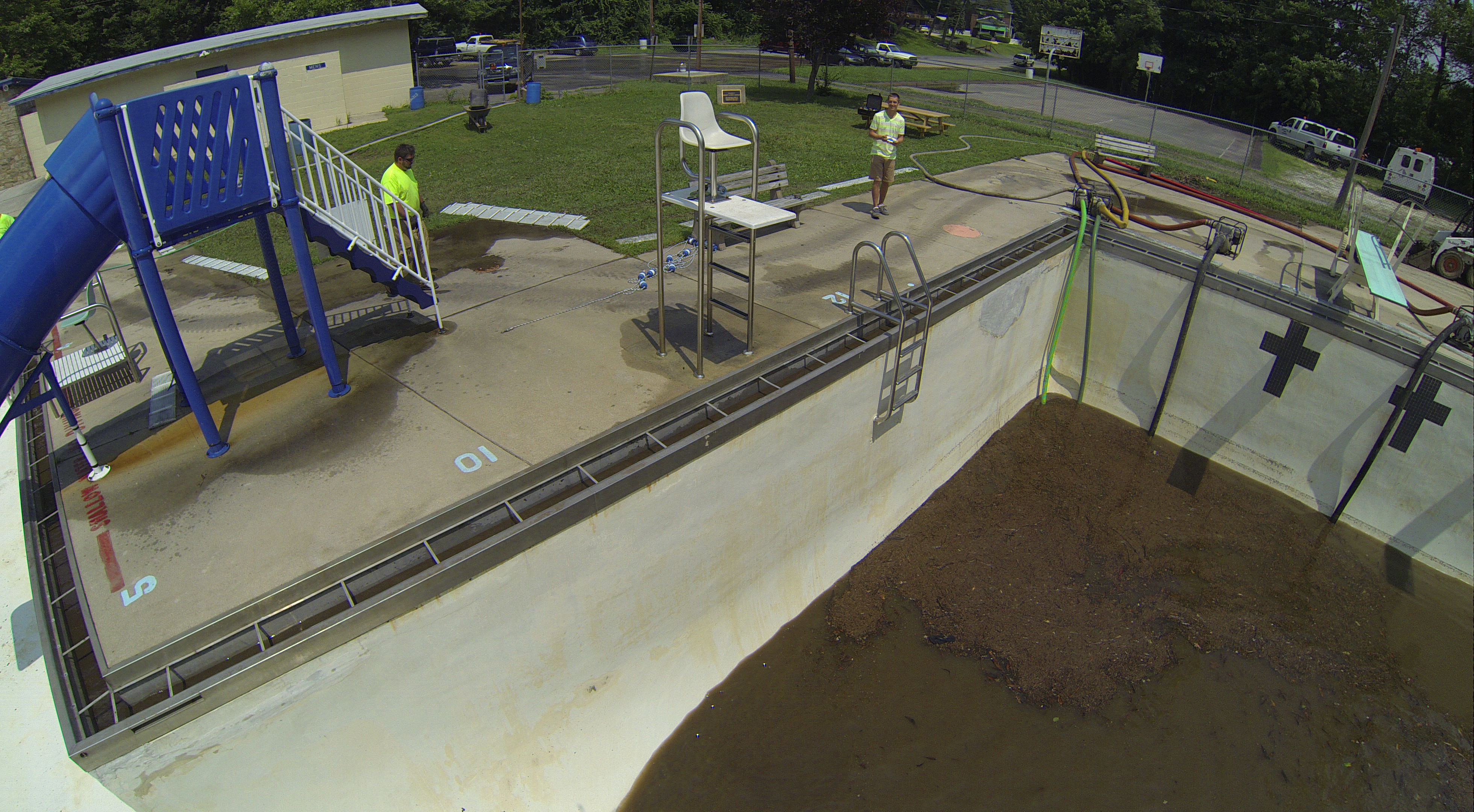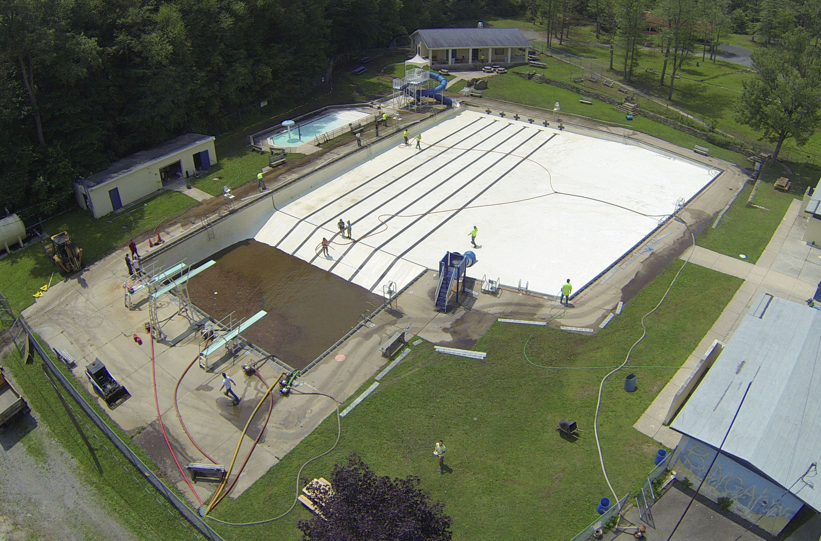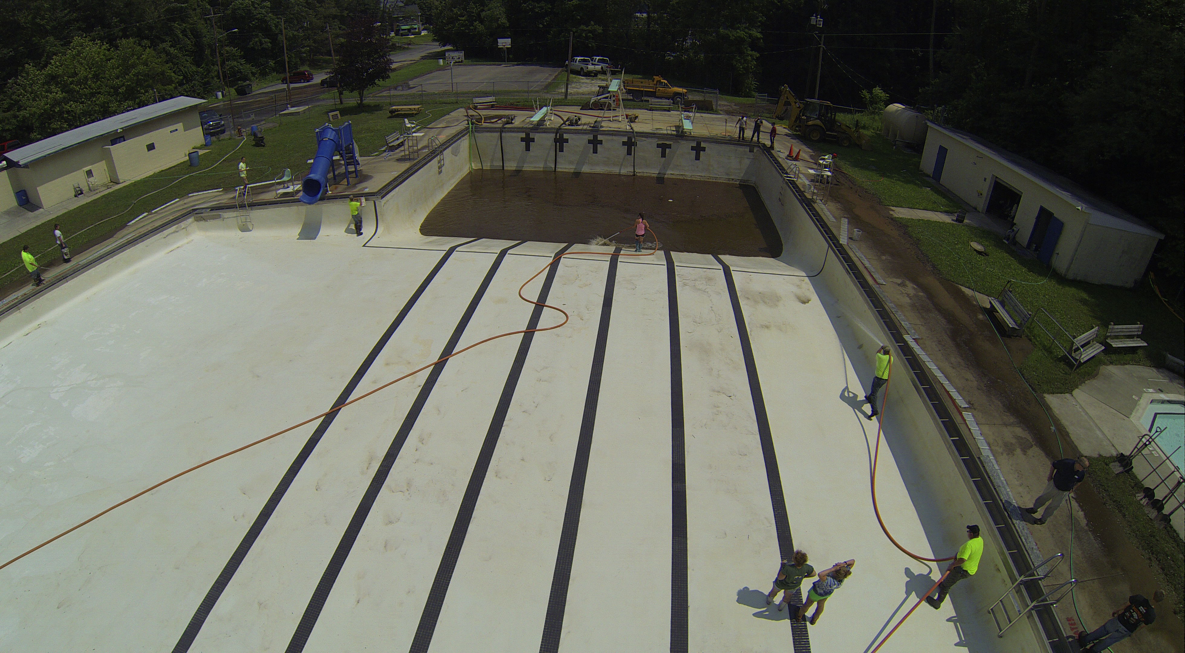 Less than 24 hours after Tamaqua’s H.D. Buehler Bungalow Pool was filled with dirty water runoff, borough crews and pool staff were removing the final layer of mud and dirty water.