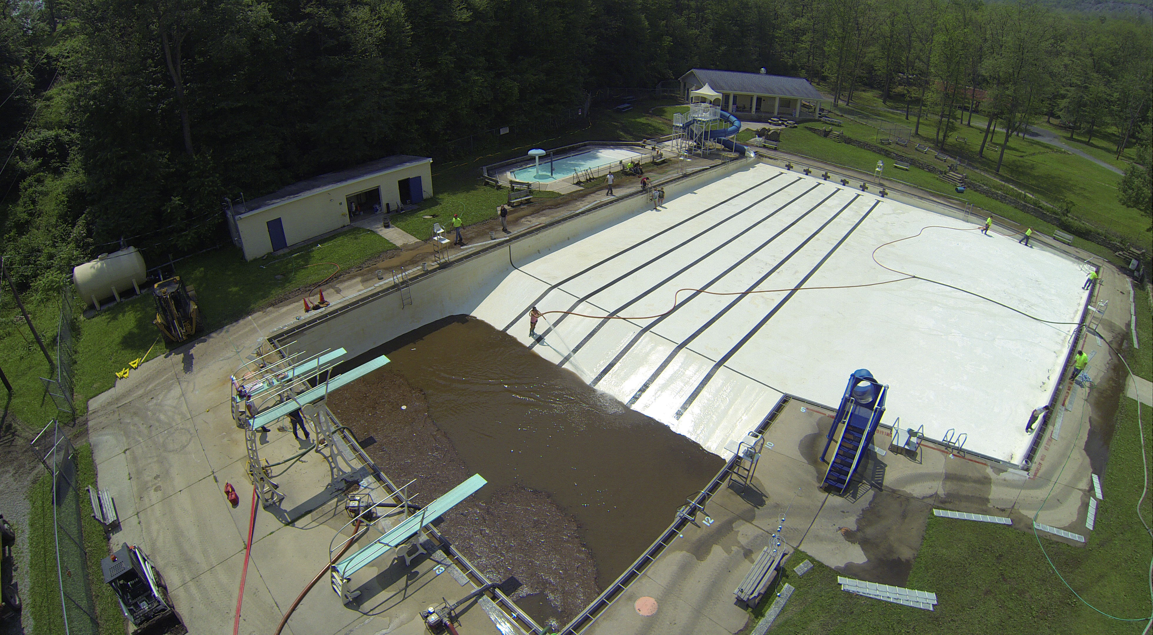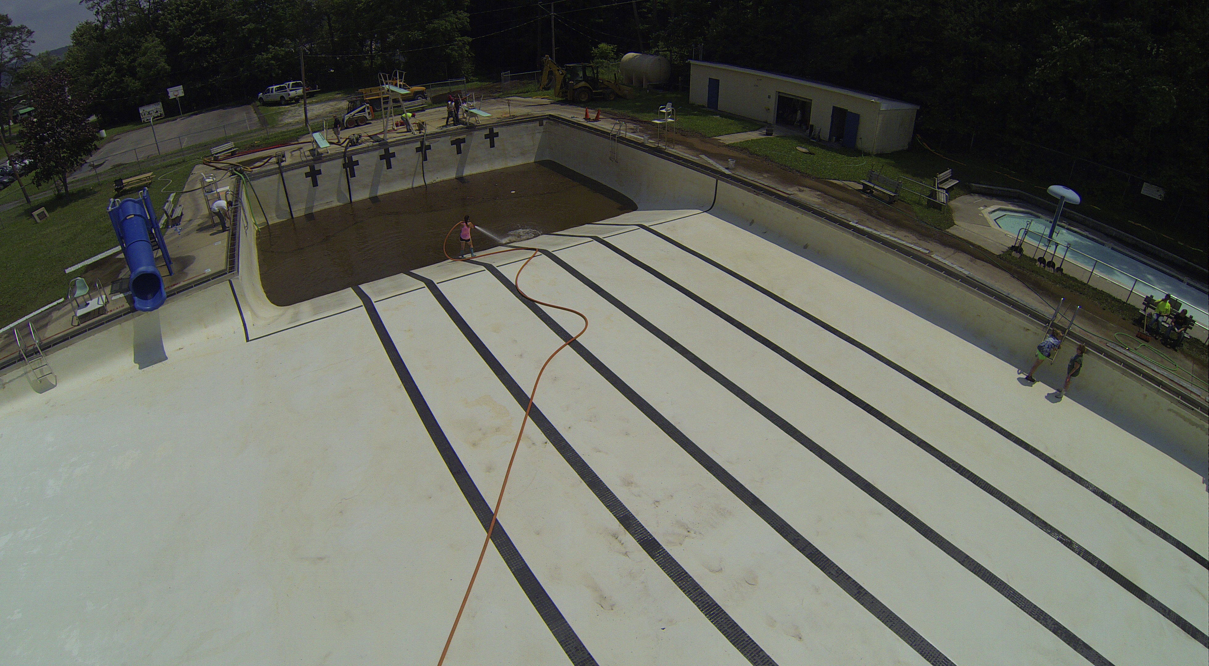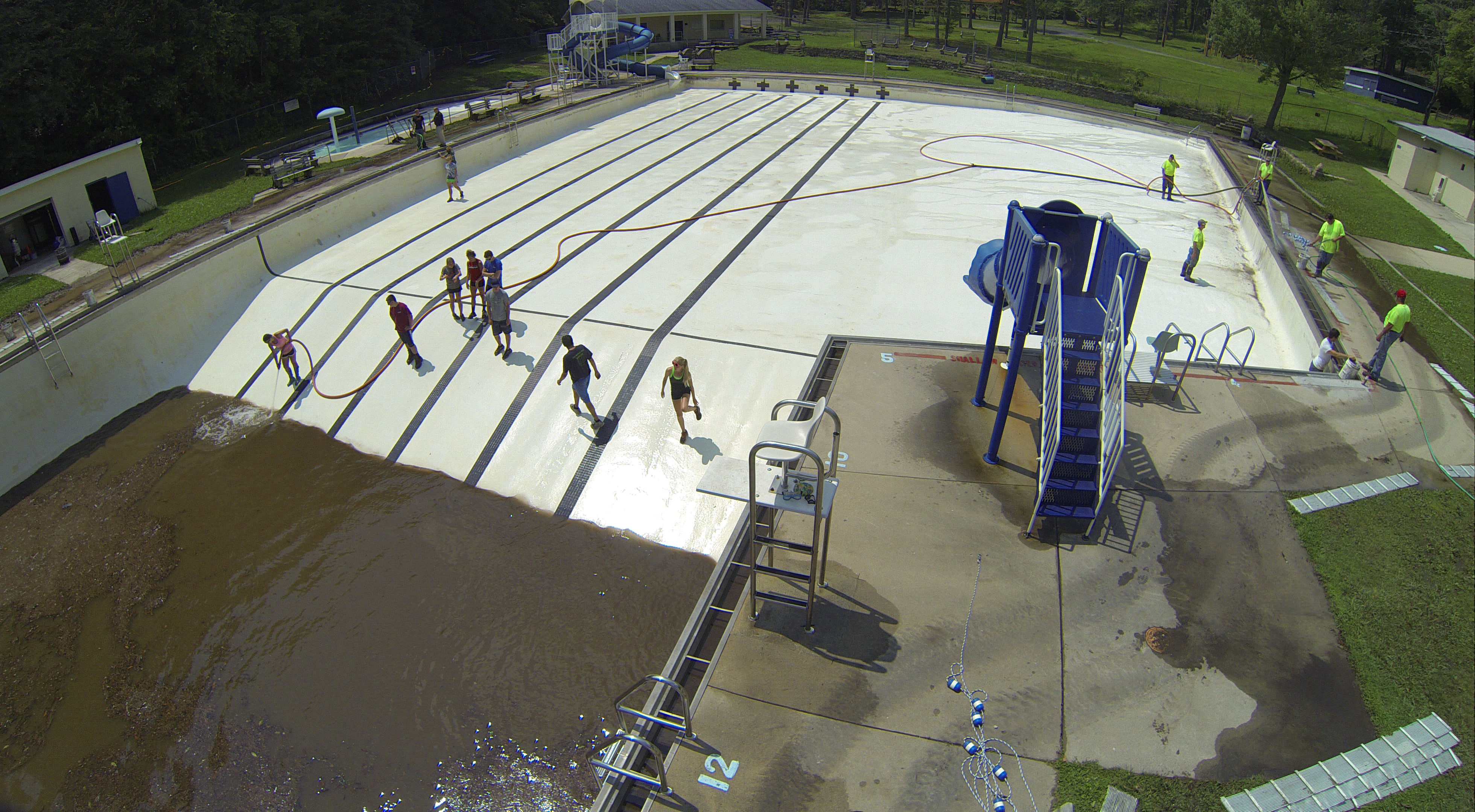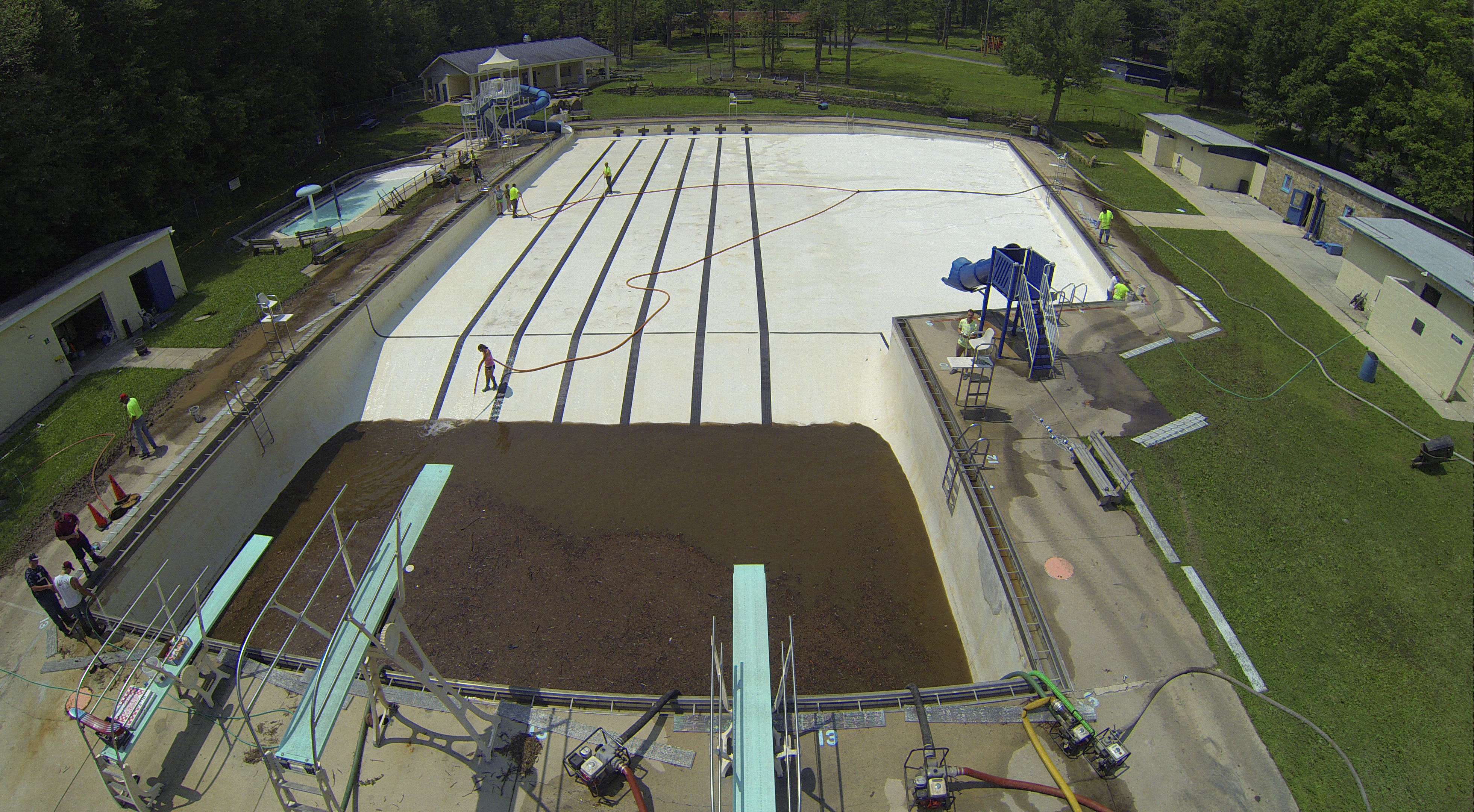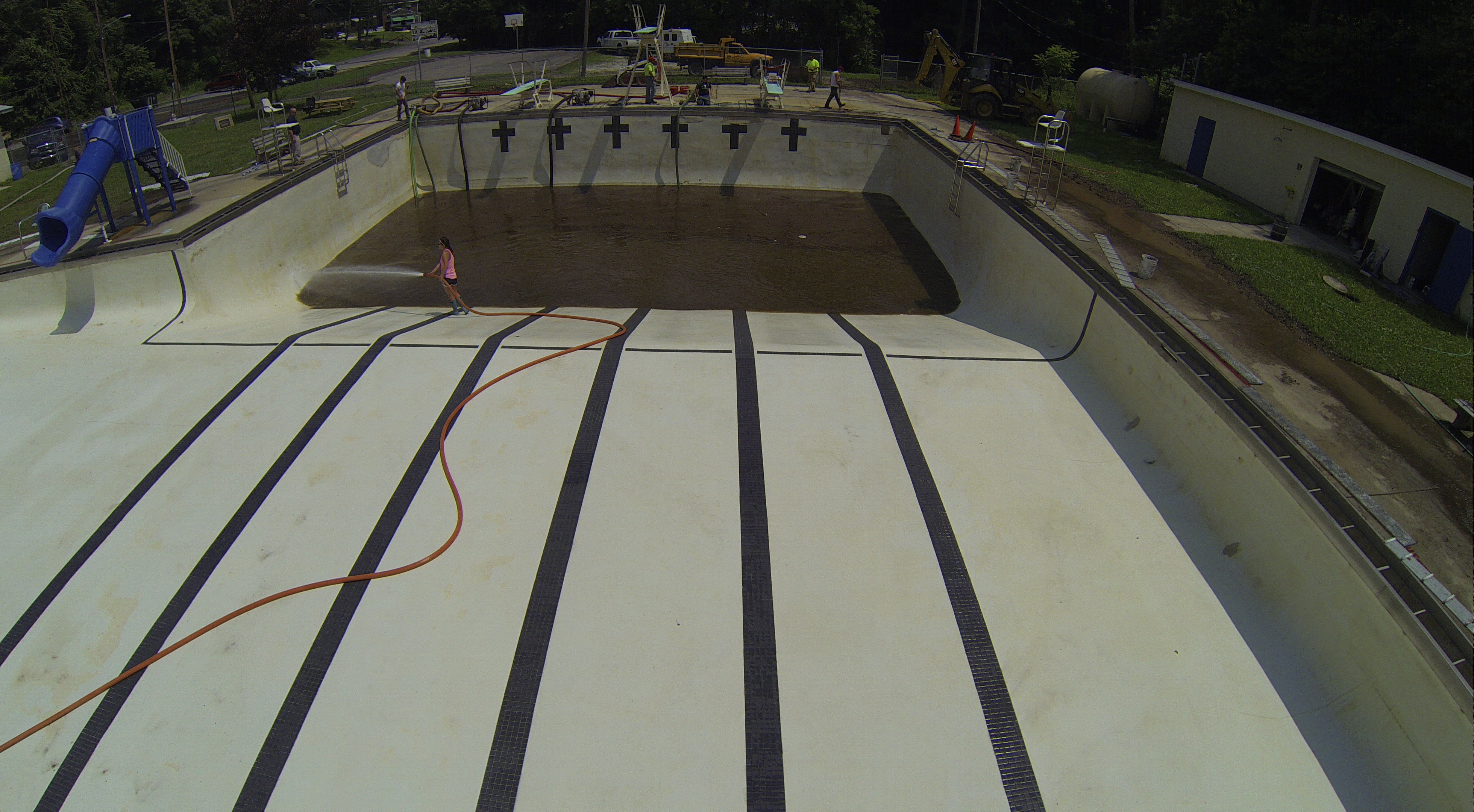 Less than 24 hours after Tamaqua’s H.D. Buehler Bungalow Pool was filled with dirty water runoff, borough crews and pool staff were removing the final layer of mud and dirty water.