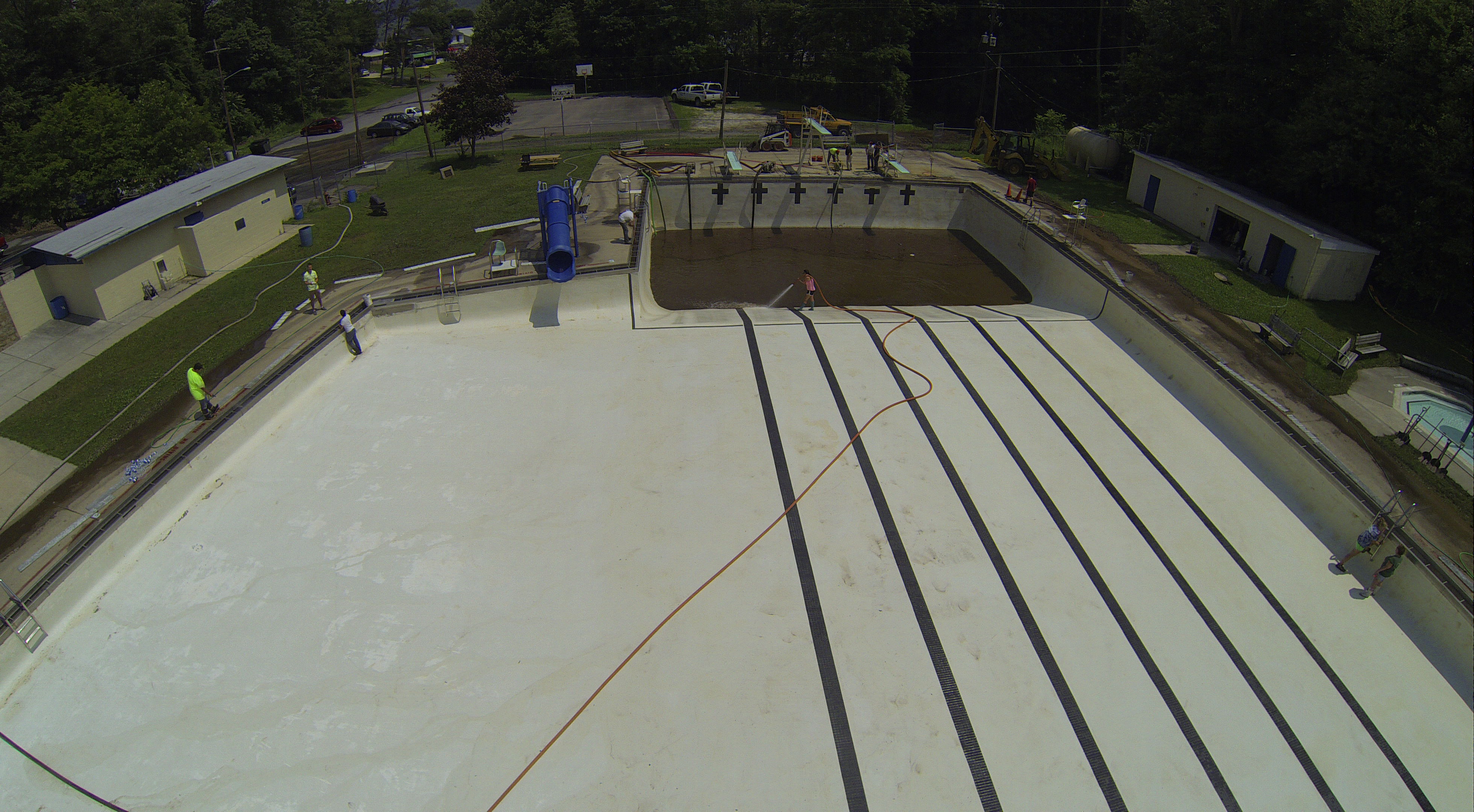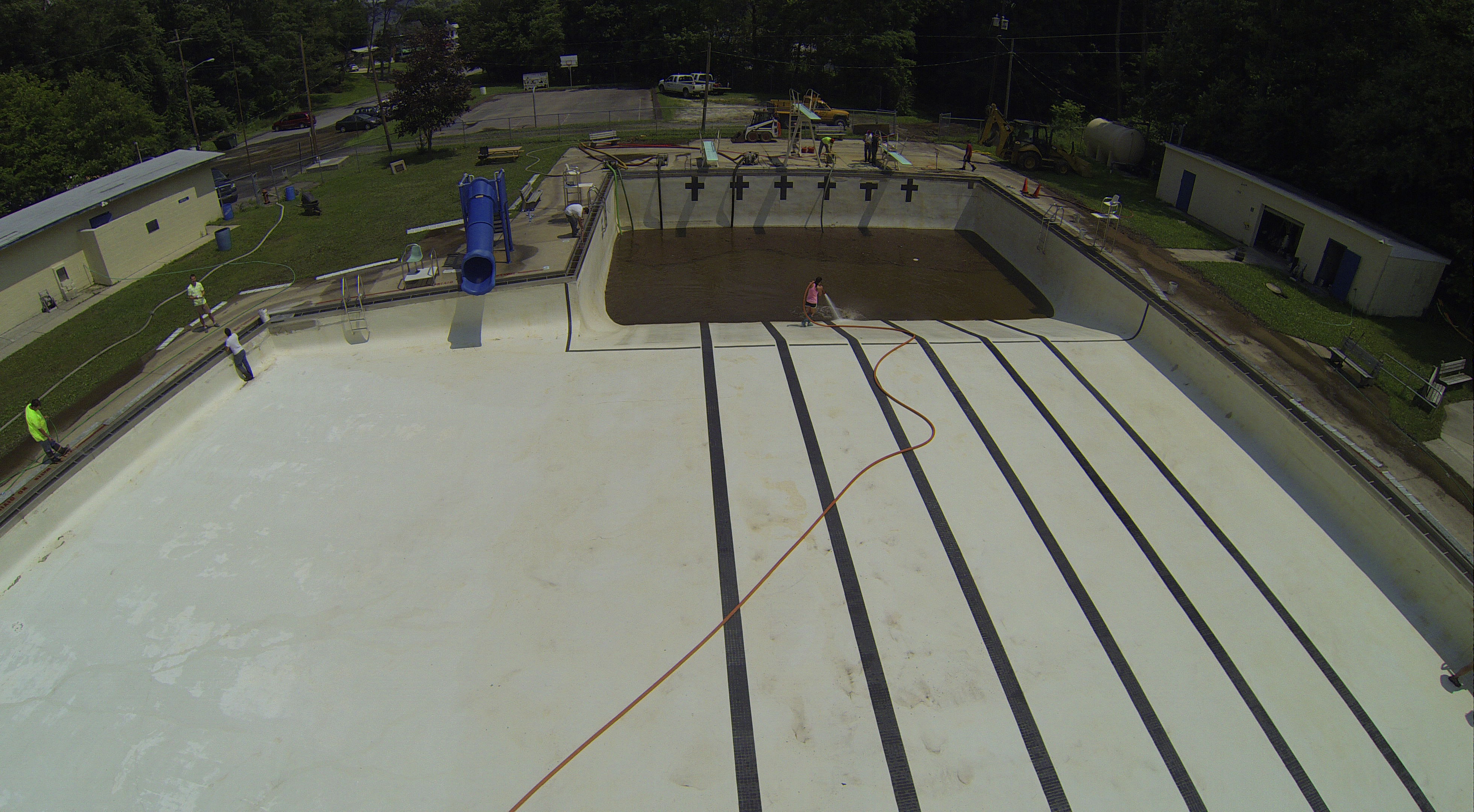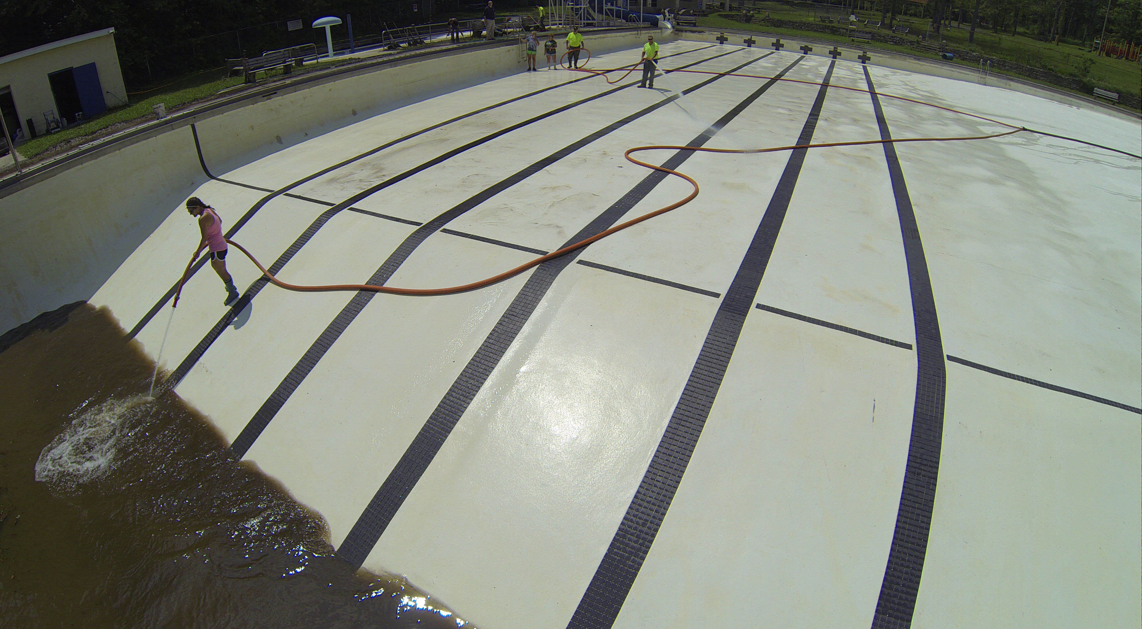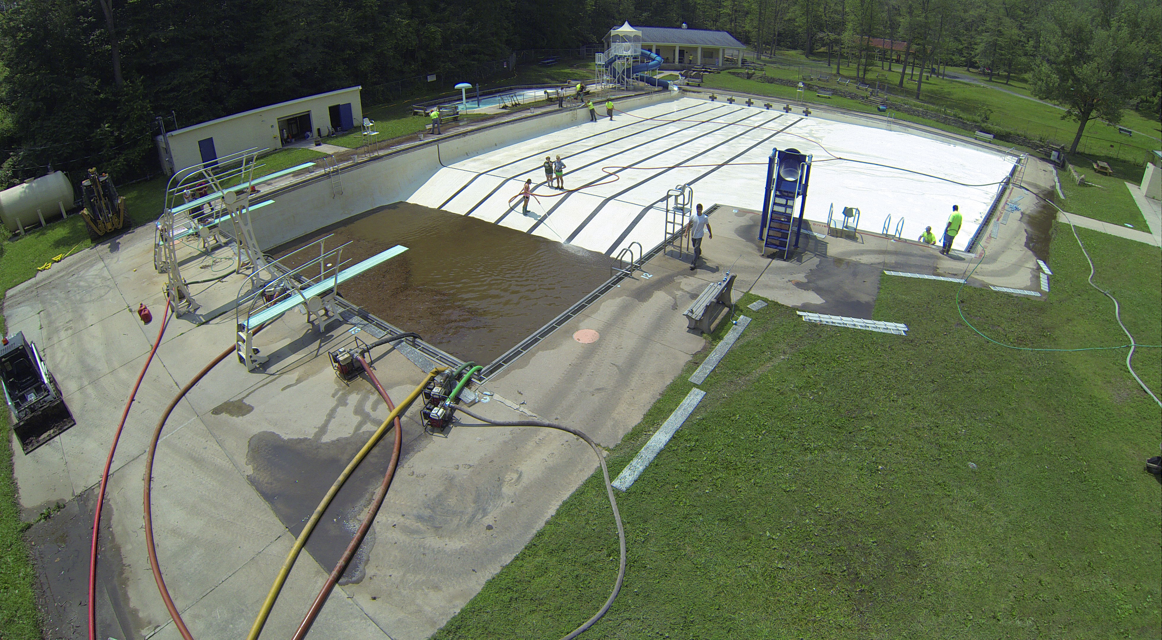 Less than 24 hours after Tamaqua’s H.D. Buehler Bungalow Pool was filled with dirty water runoff, borough crews and pool staff were removing the final layer of mud and dirty water.