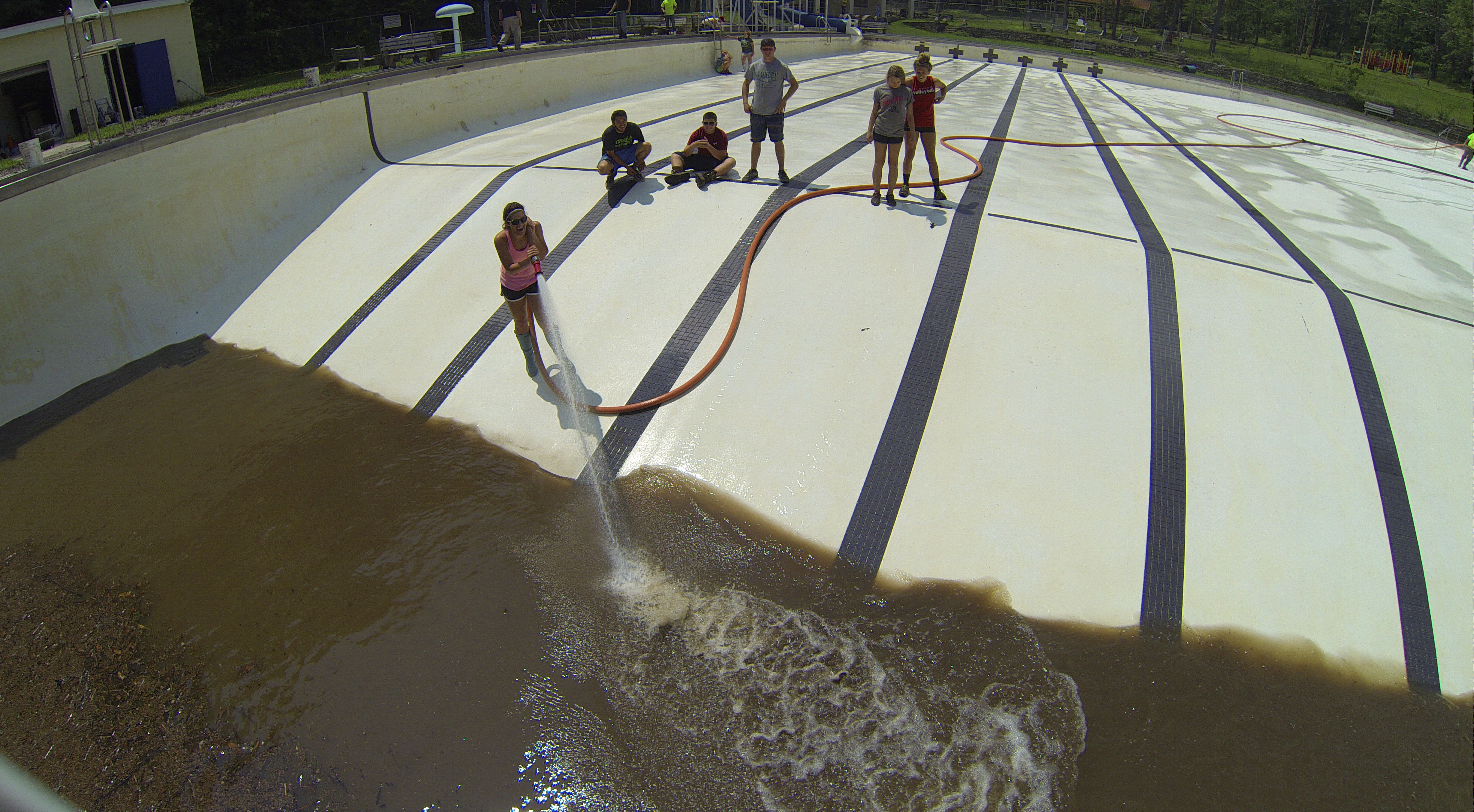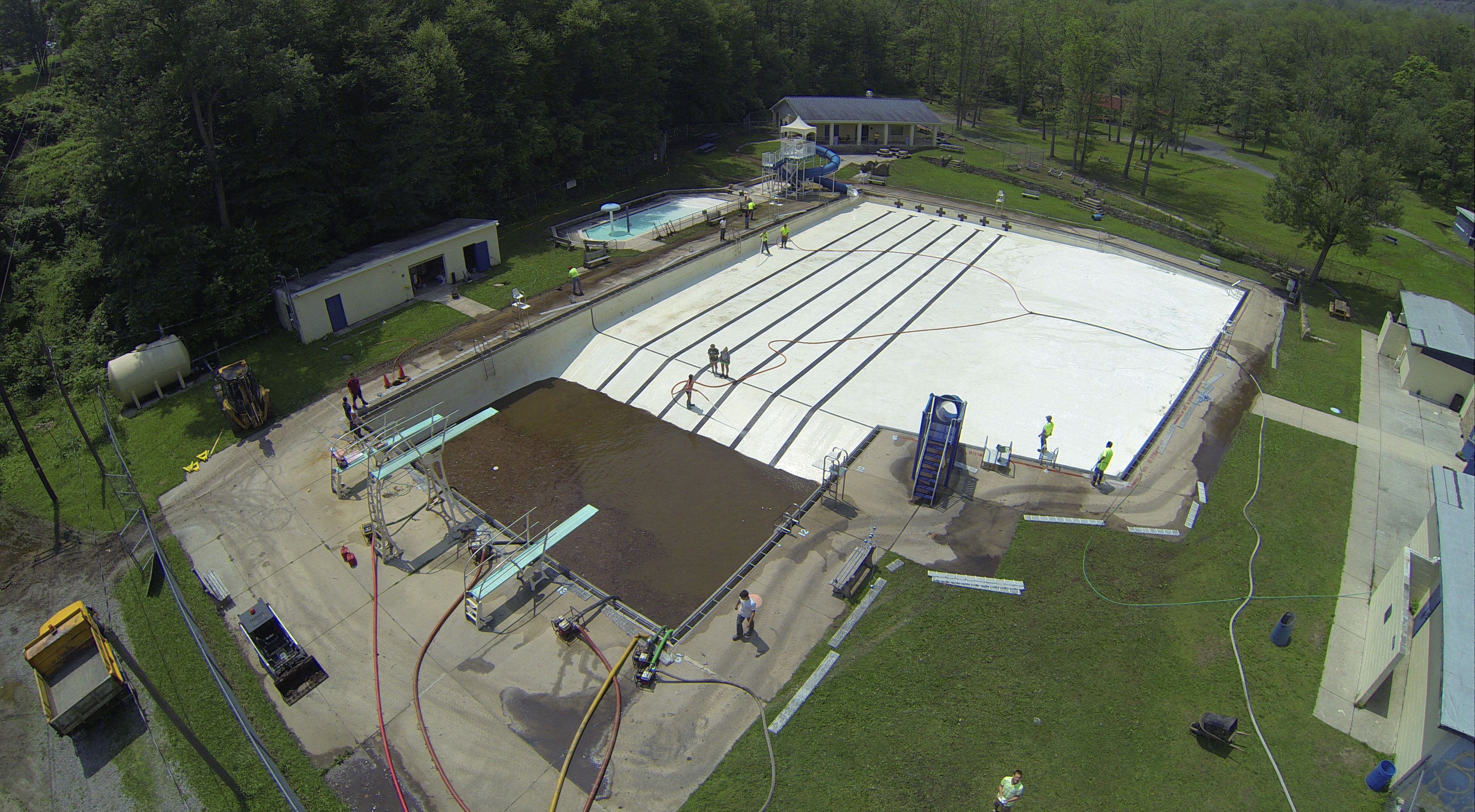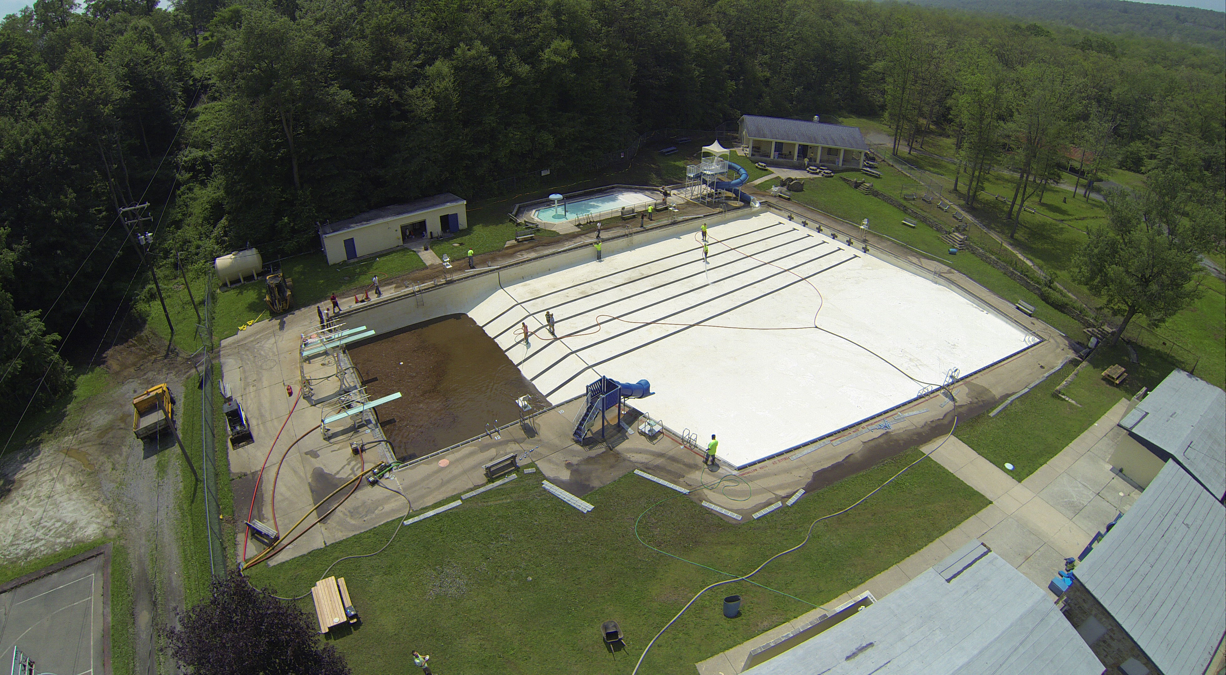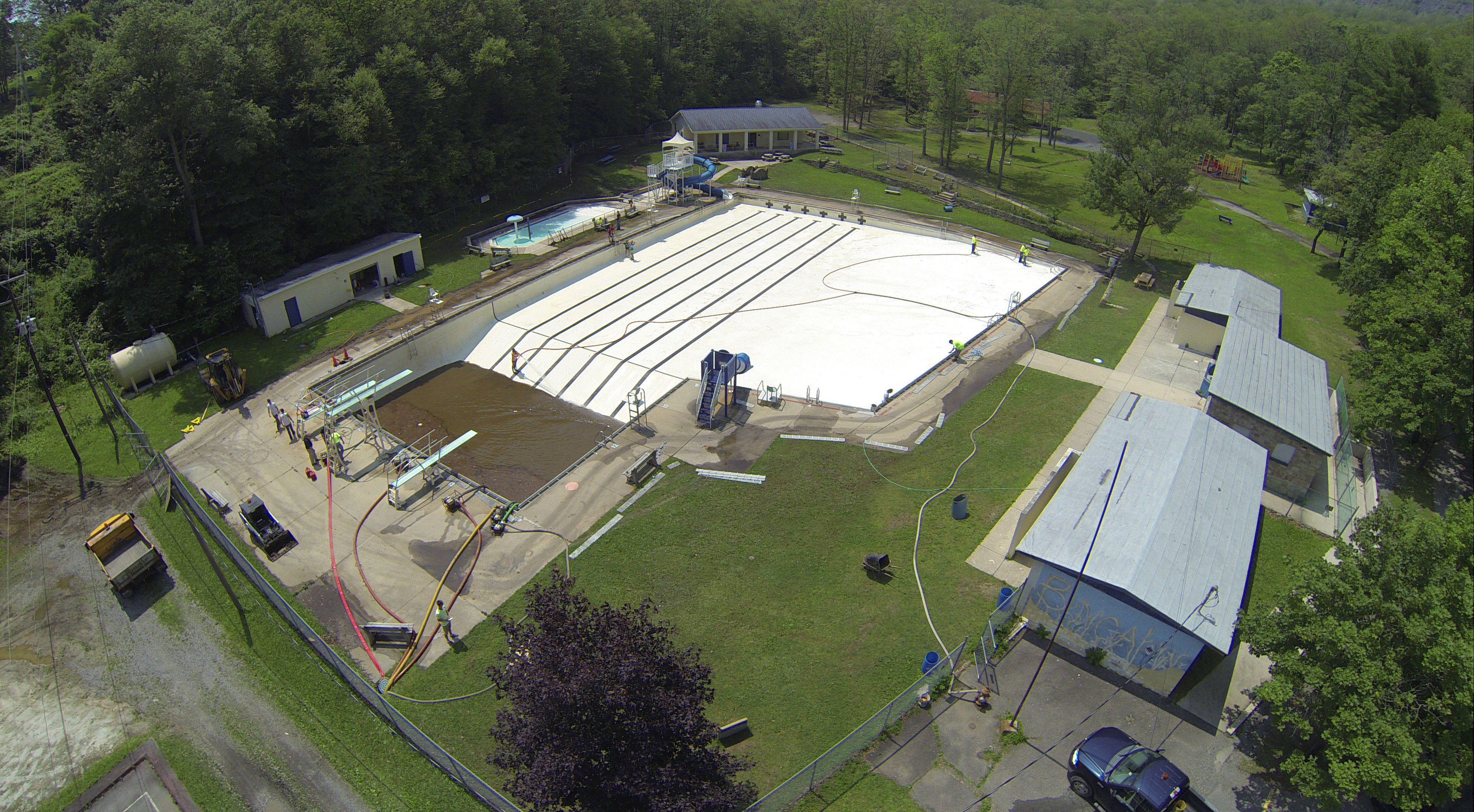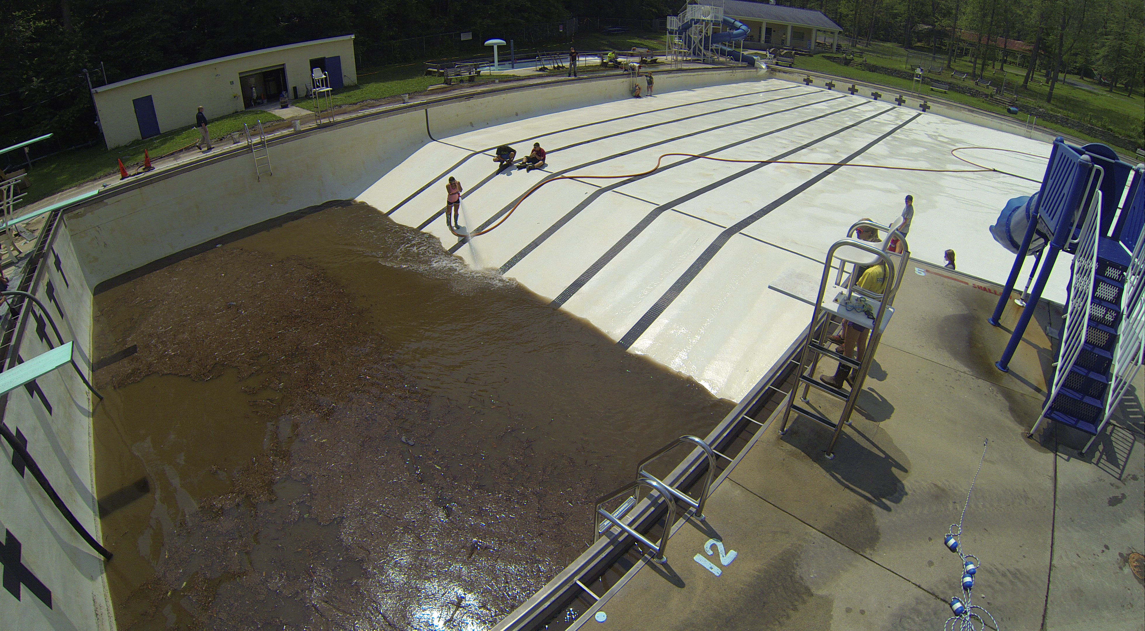 Less than 24 hours after Tamaqua’s H.D. Buehler Bungalow Pool was filled with dirty water runoff, borough crews and pool staff were removing the final layer of mud and dirty water.