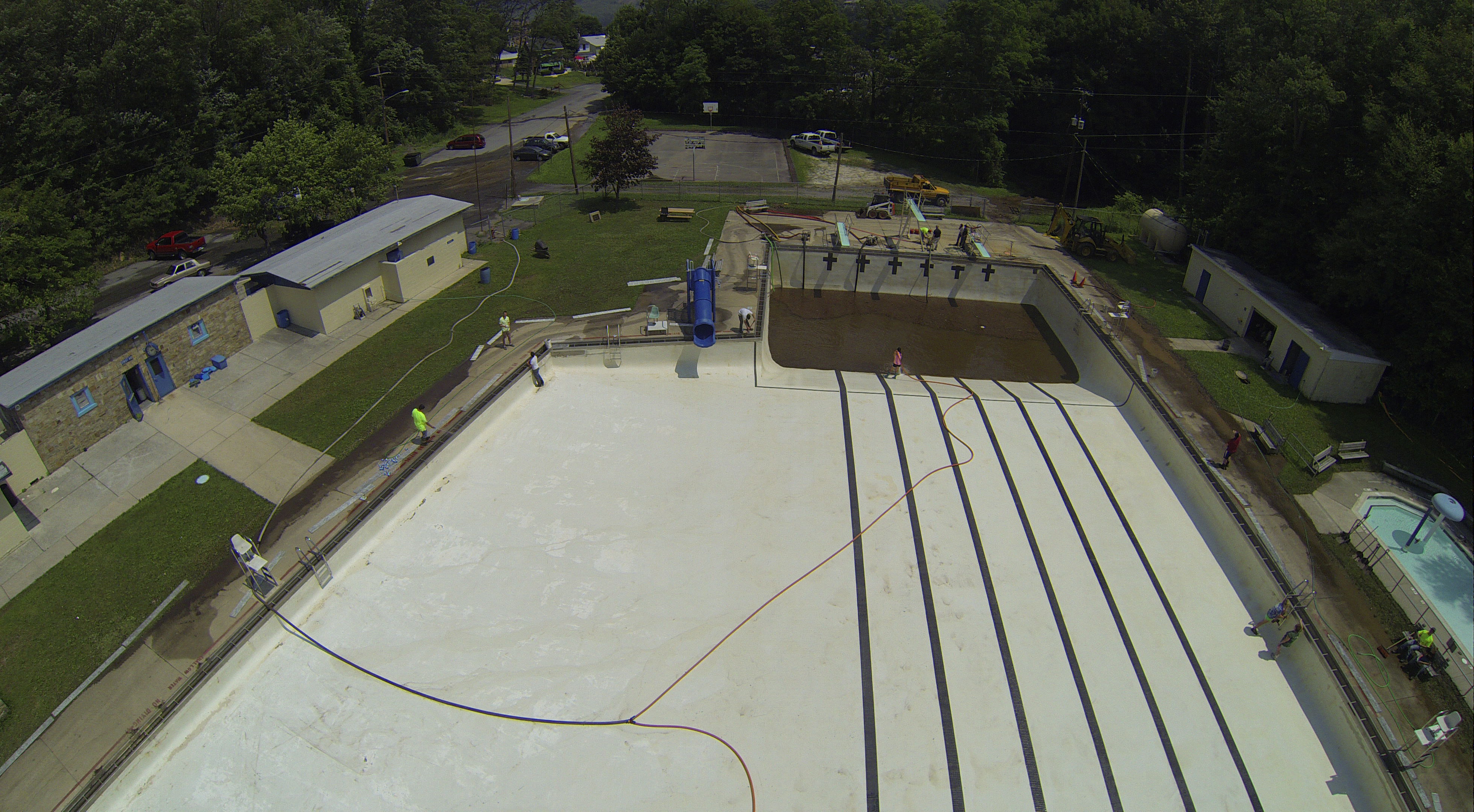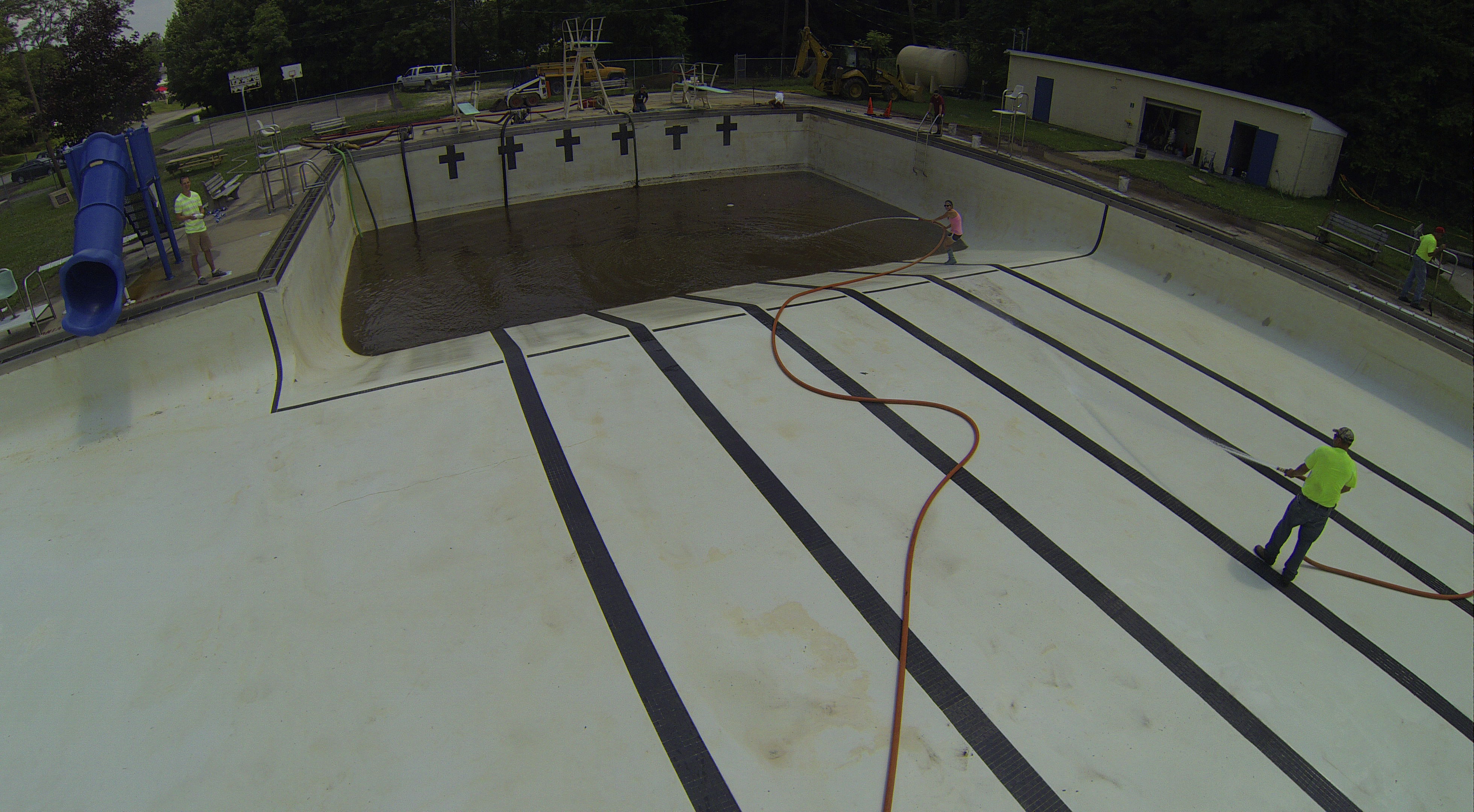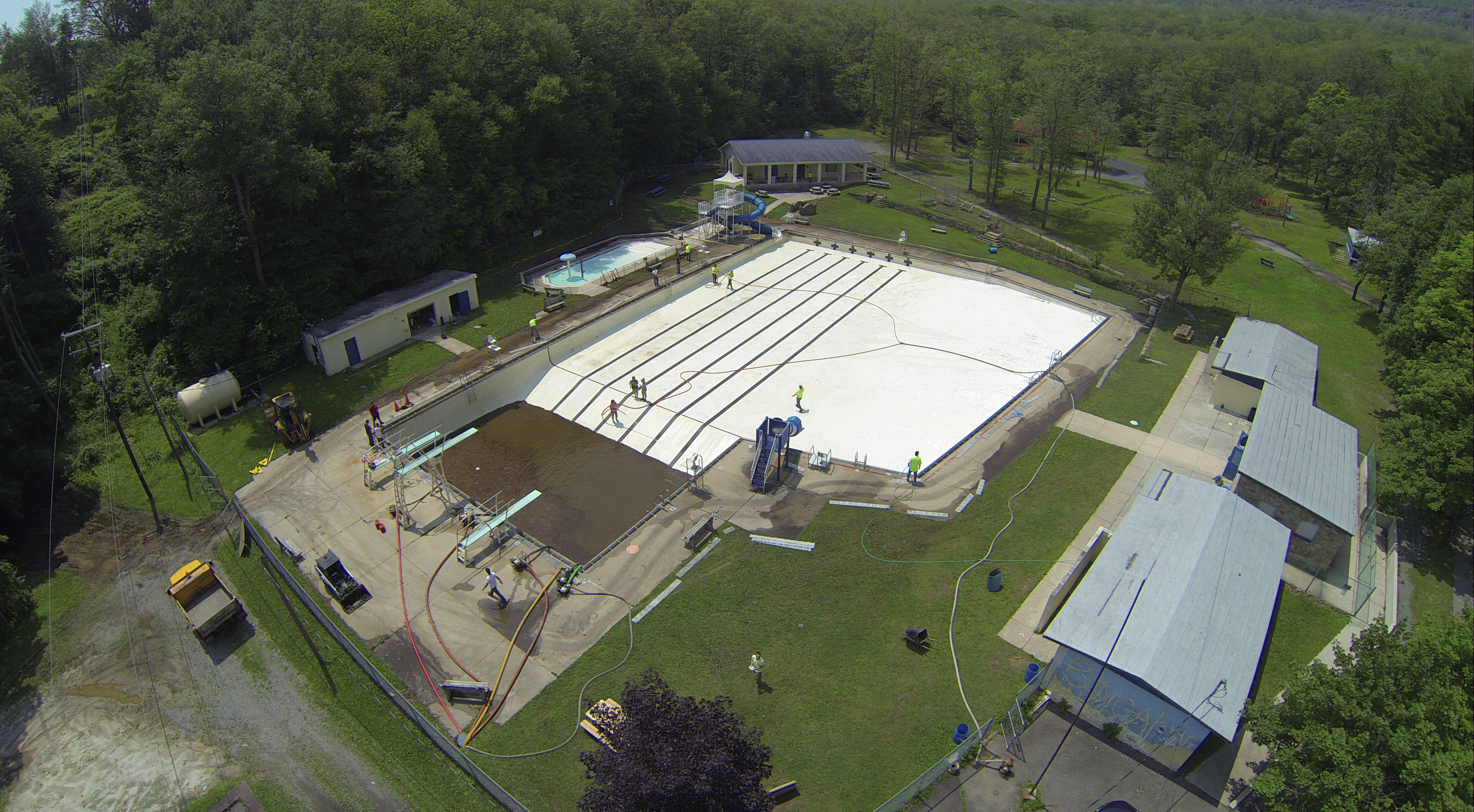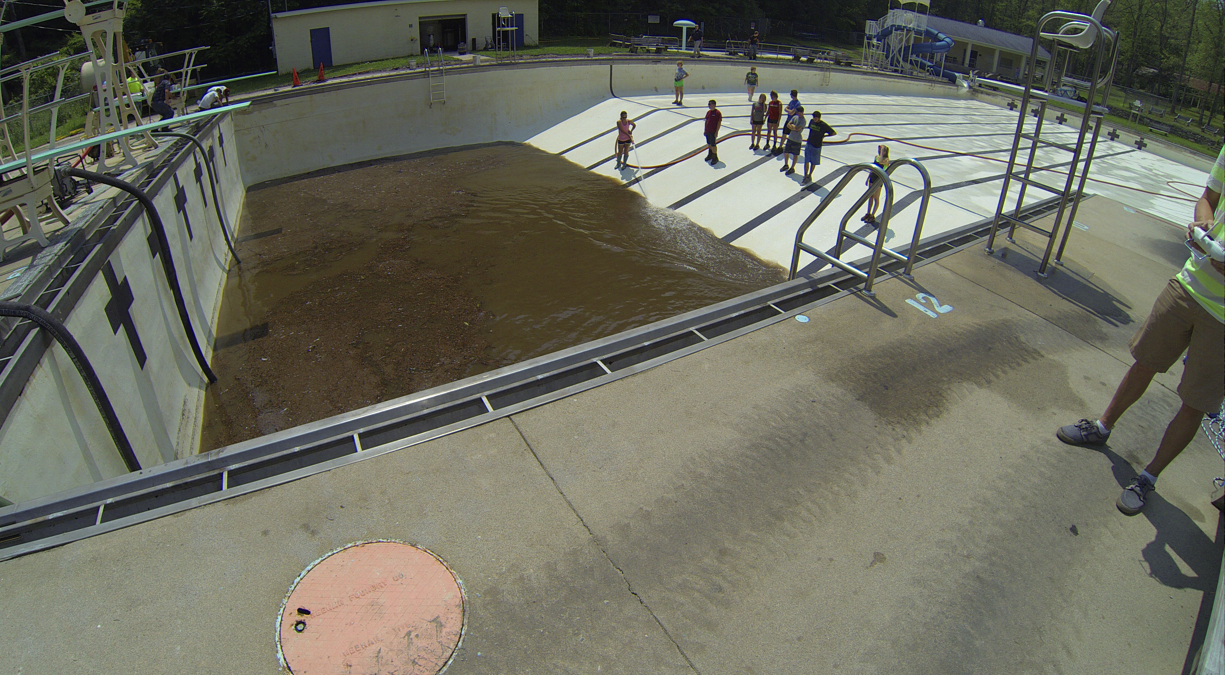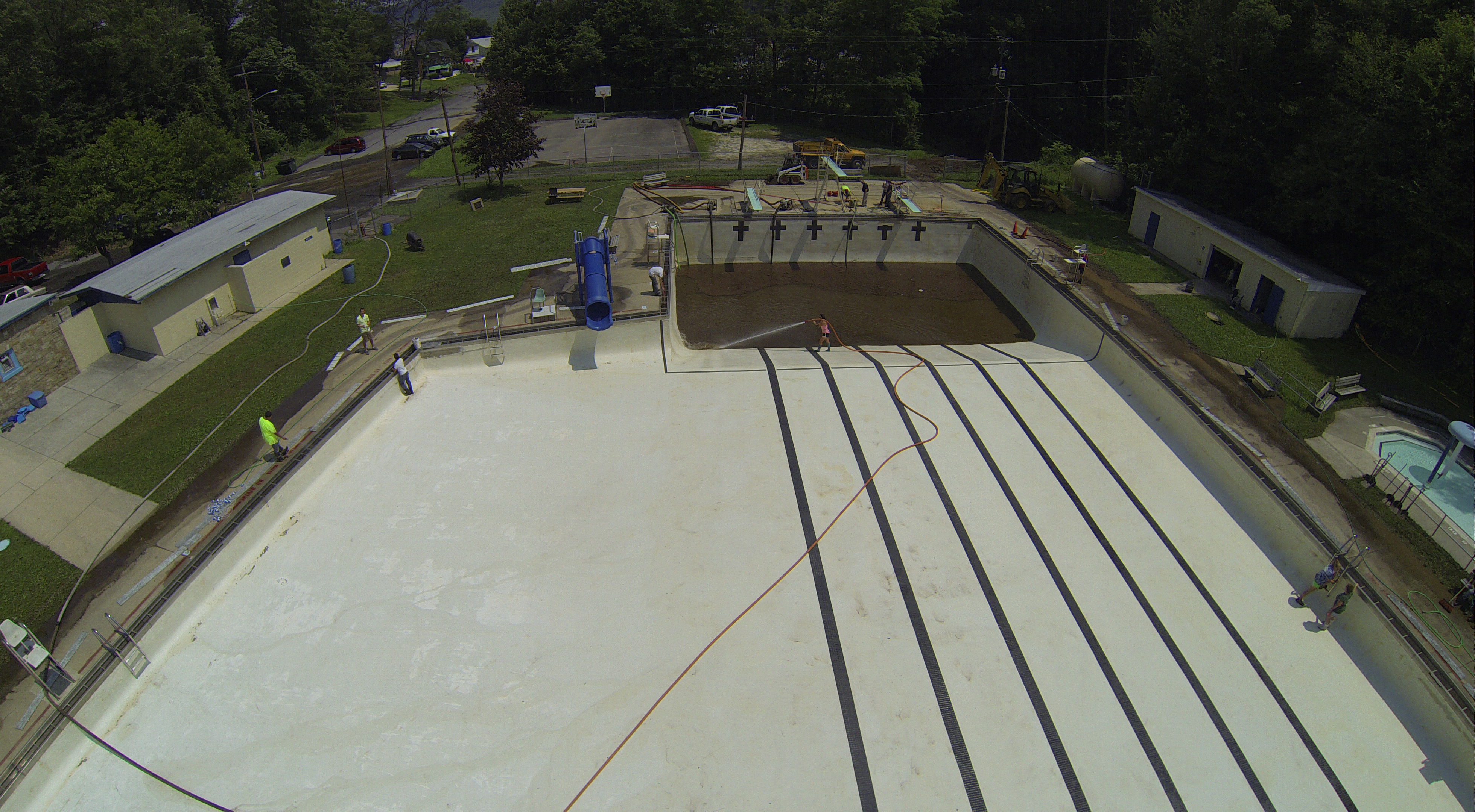 Less than 24 hours after Tamaqua’s H.D. Buehler Bungalow Pool was filled with dirty water runoff, borough crews and pool staff were removing the final layer of mud and dirty water.