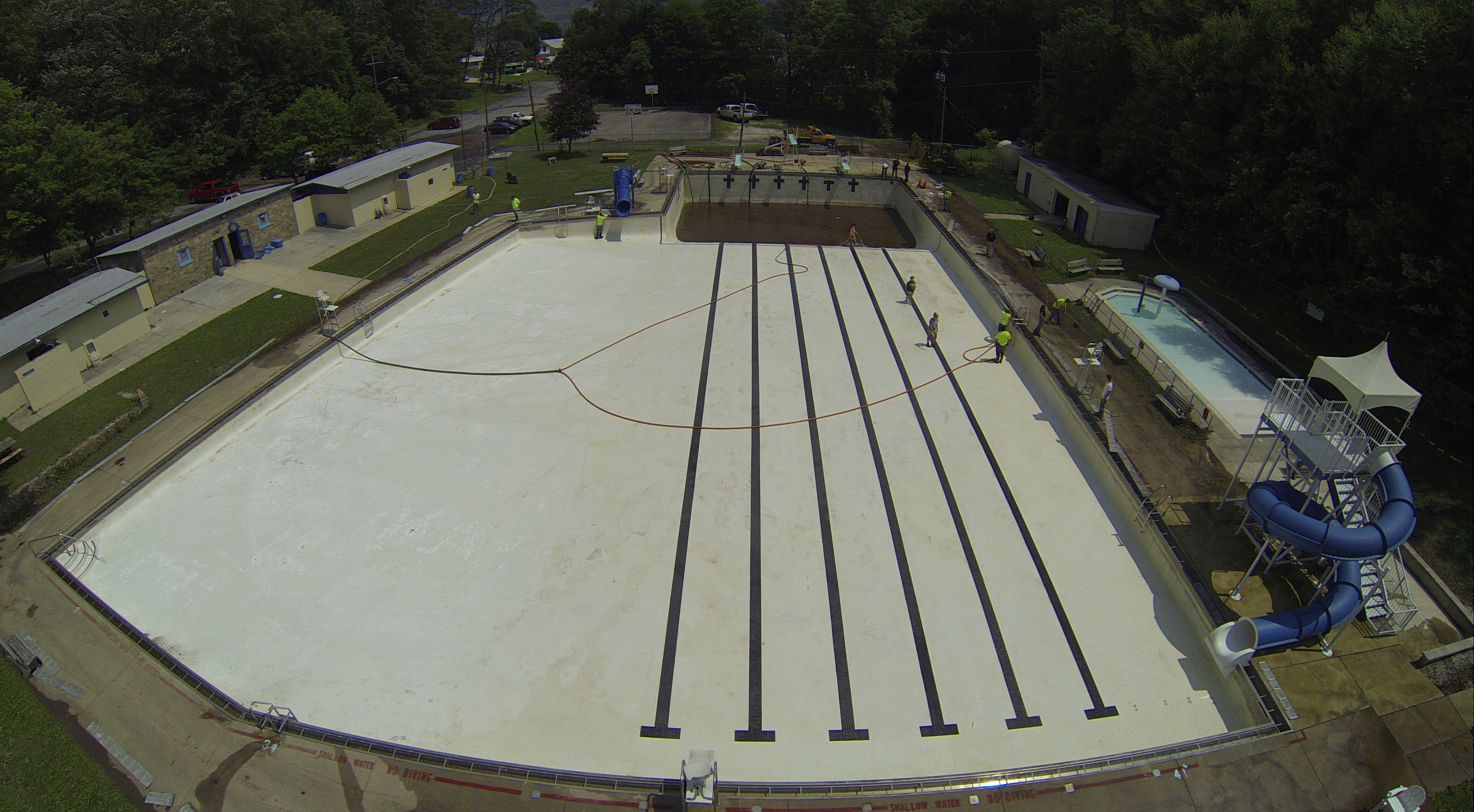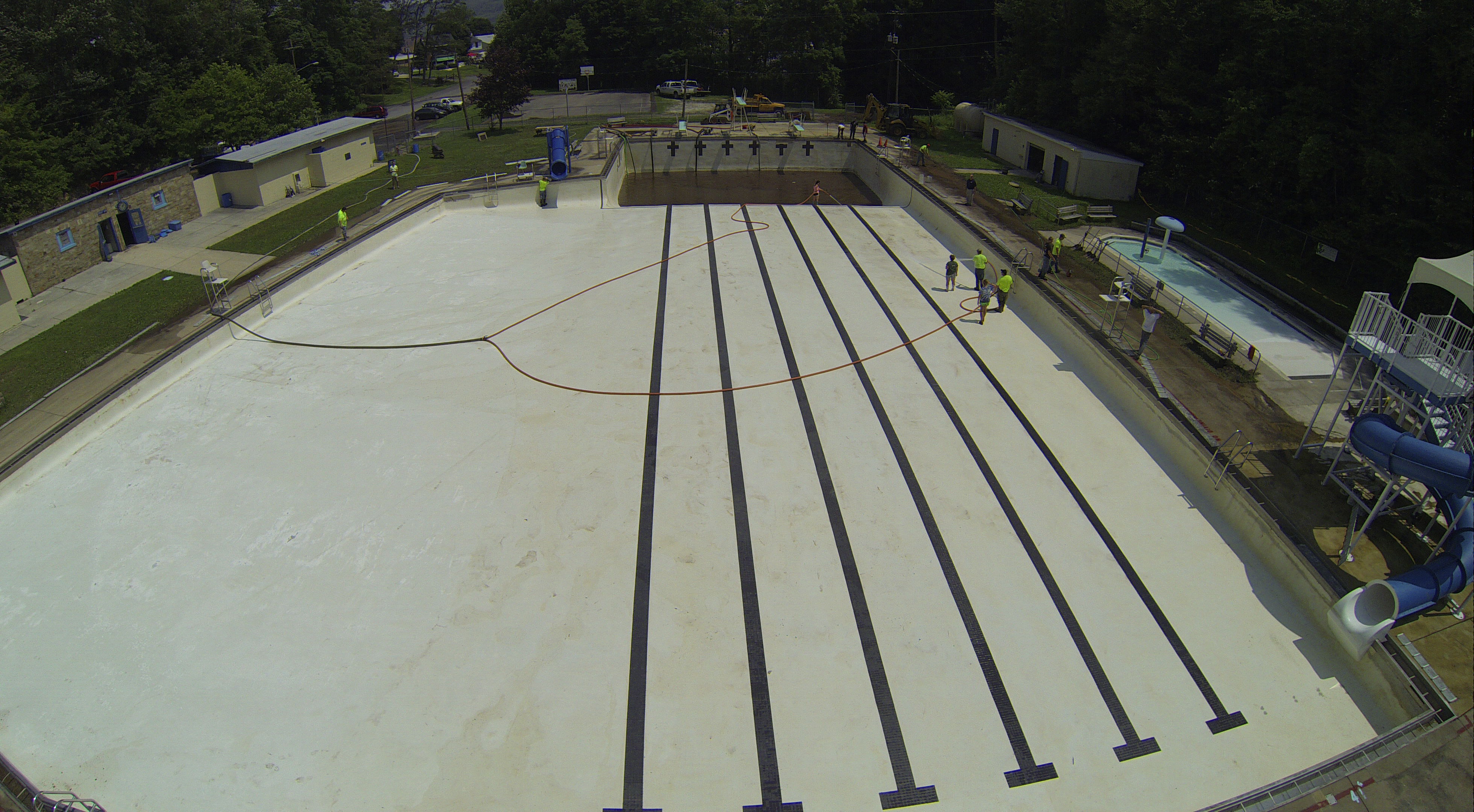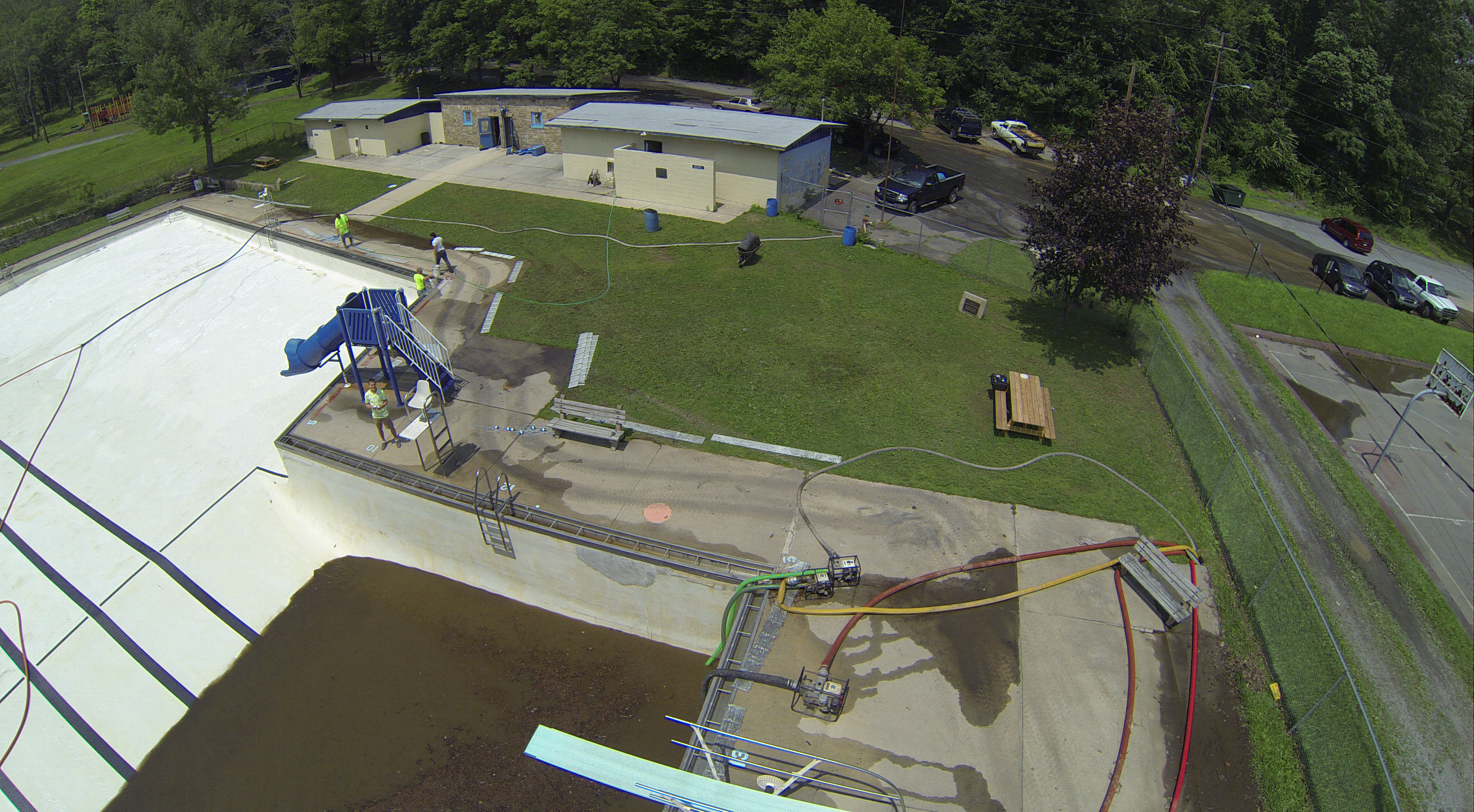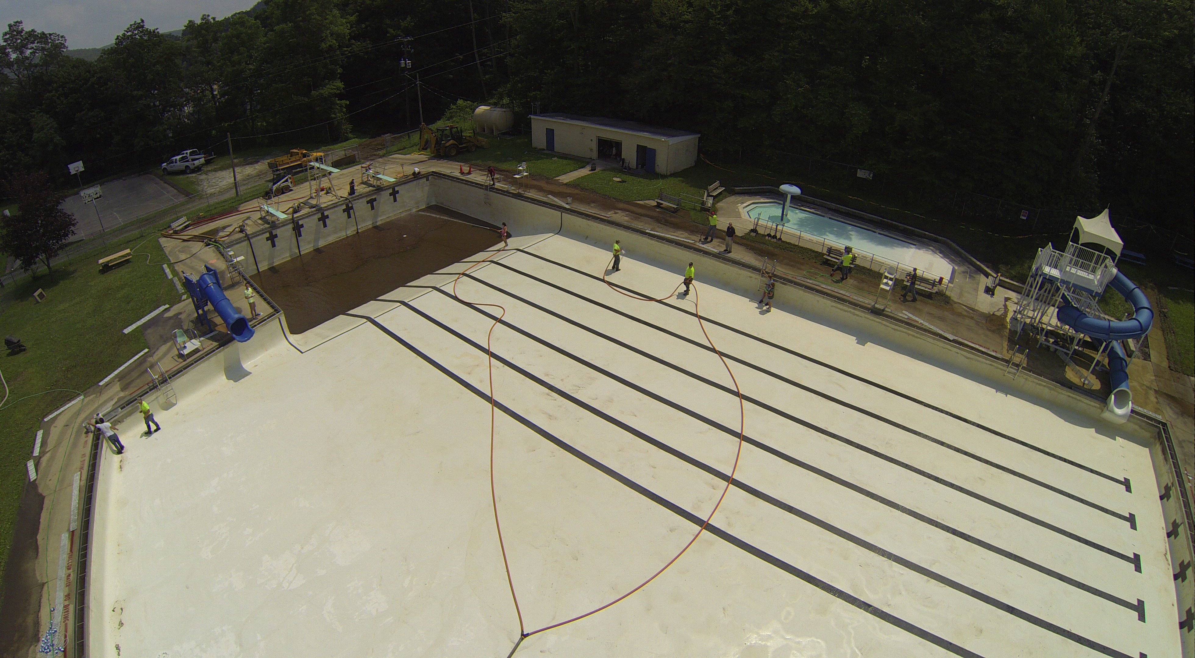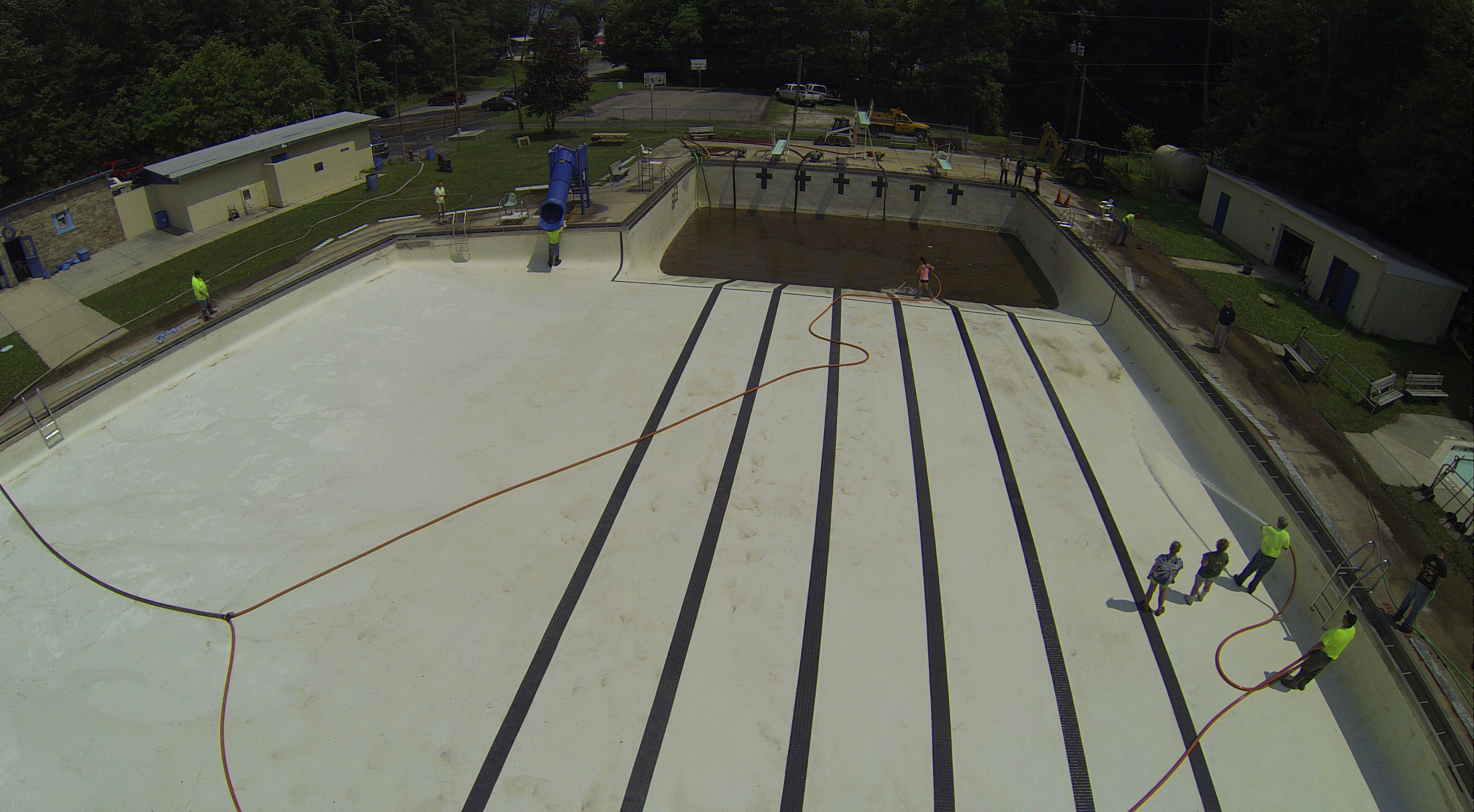Less than 24 hours after Tamaqua’s H.D. Buehler Bungalow Pool was filled with dirty water runoff, borough crews and pool staff were removing the final layer of mud and dirty water.
