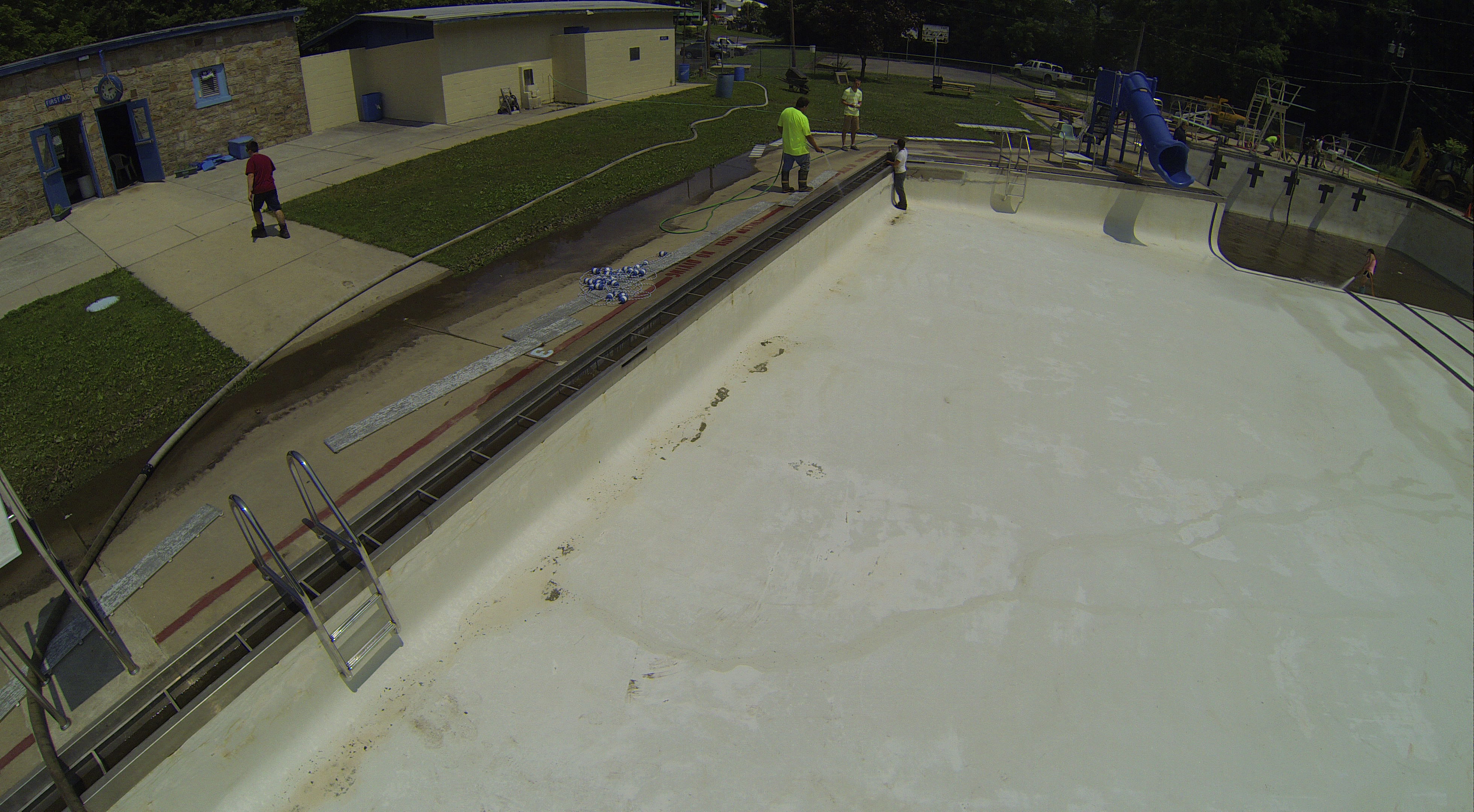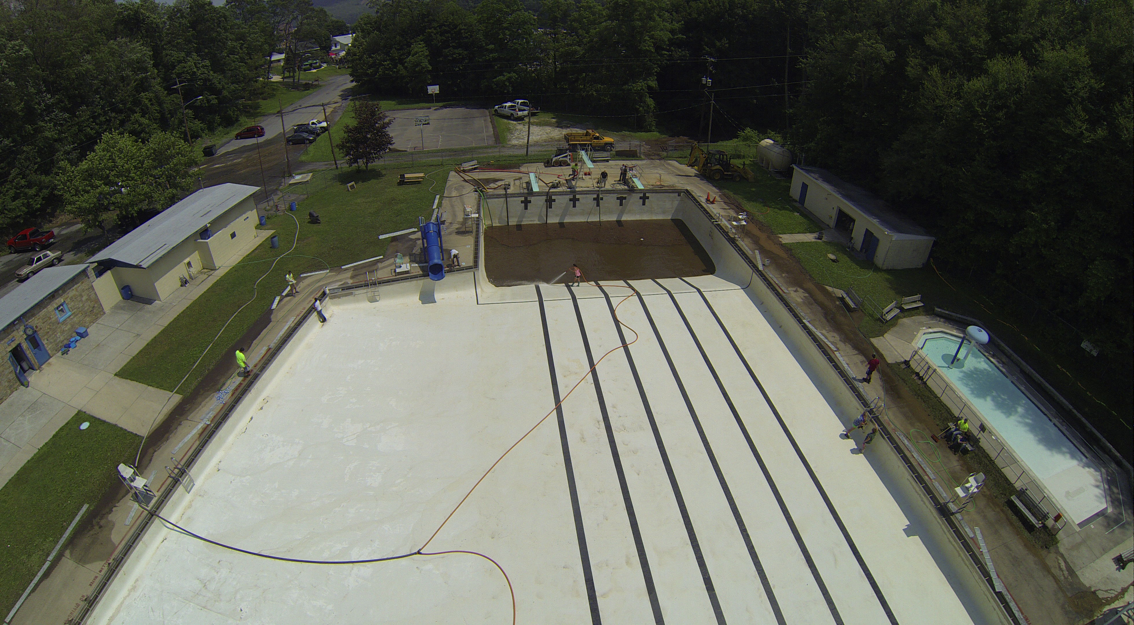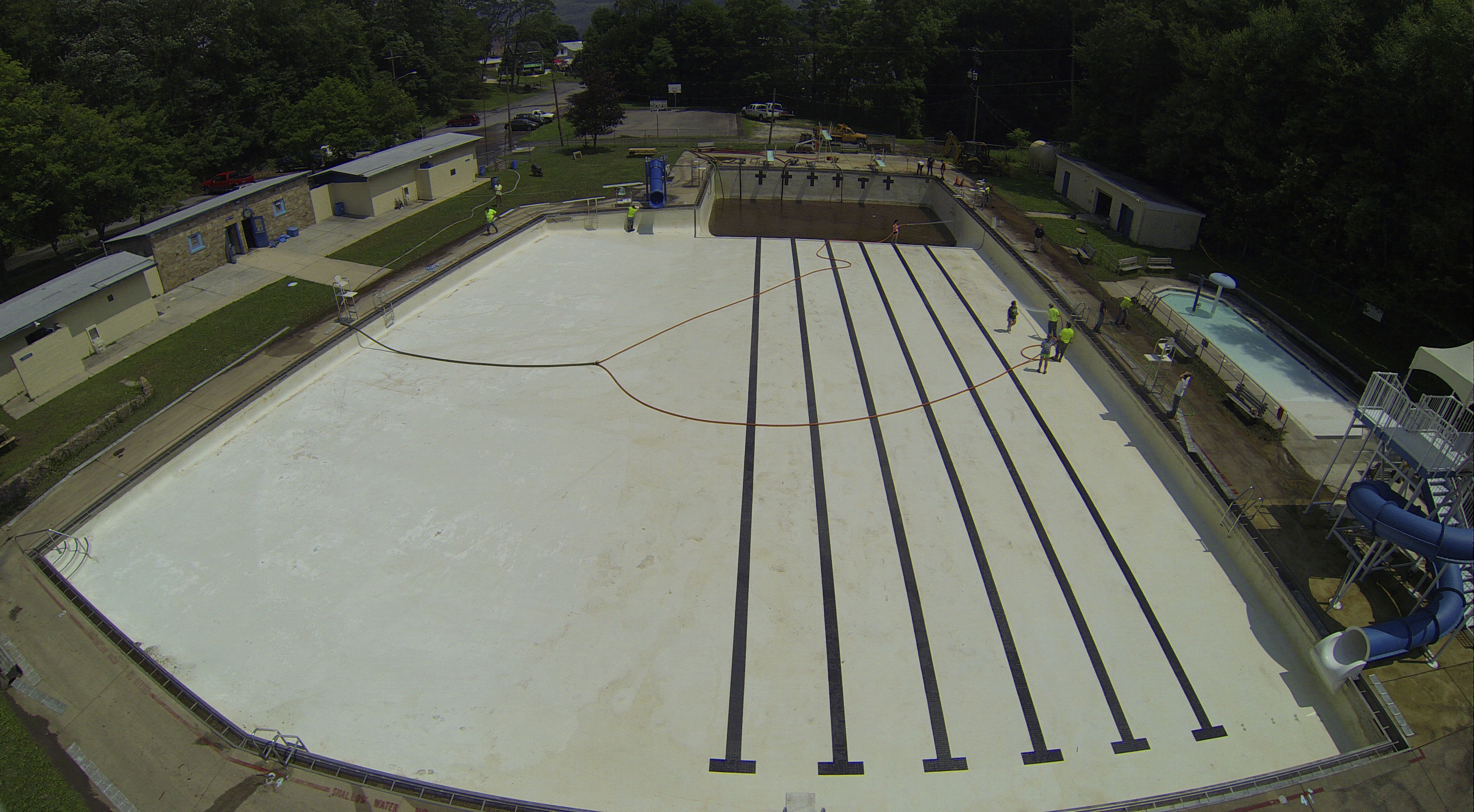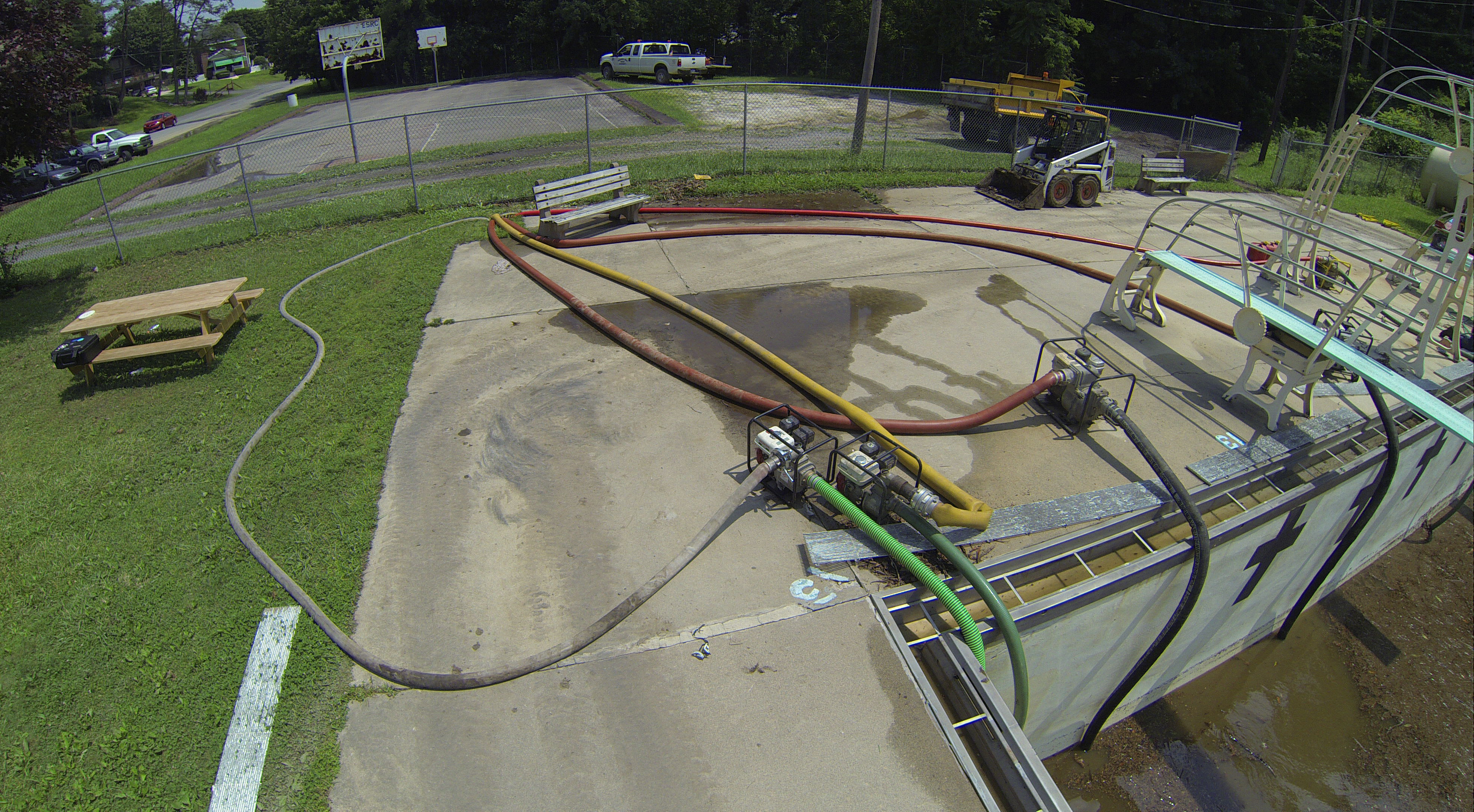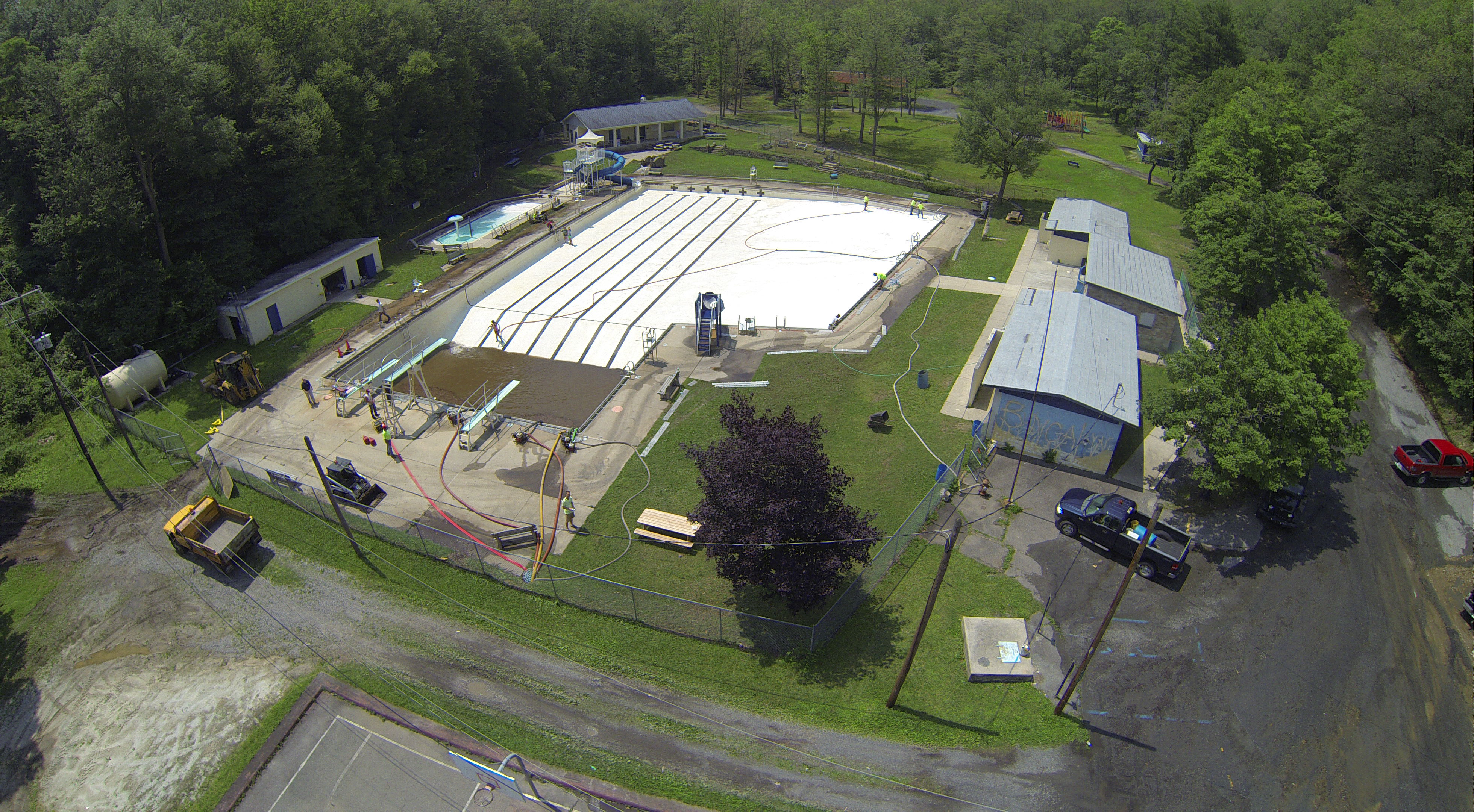 Less than 24 hours after Tamaqua’s H.D. Buehler Bungalow Pool was filled with dirty water runoff, borough crews and pool staff were removing the final layer of mud and dirty water.