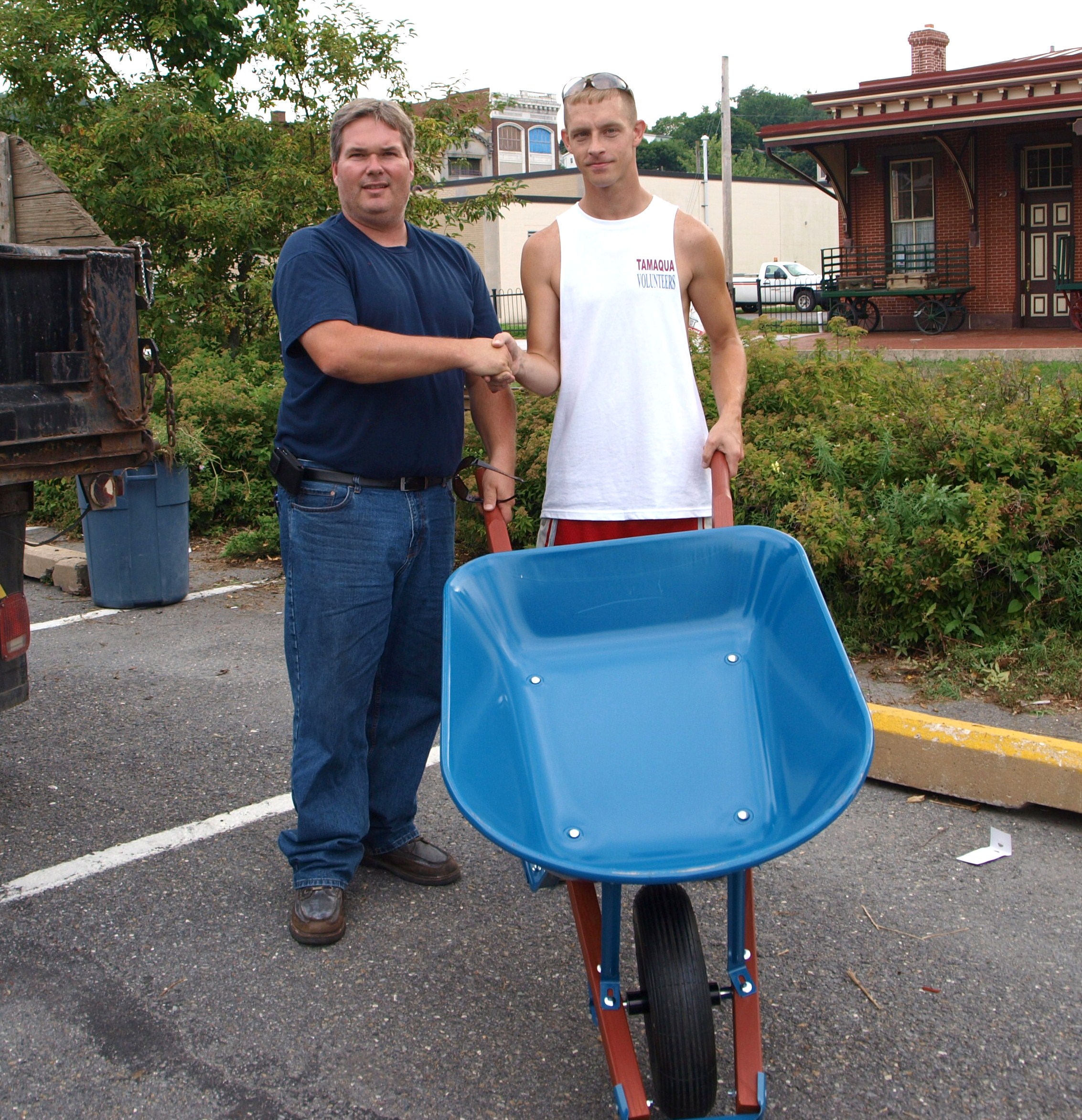 FIVE YEARS AGO TODAY (July 20, 2010), Stone Garden, of East Broad Street, donated a new wheel barrow to the Tamaqua Volunteers group.