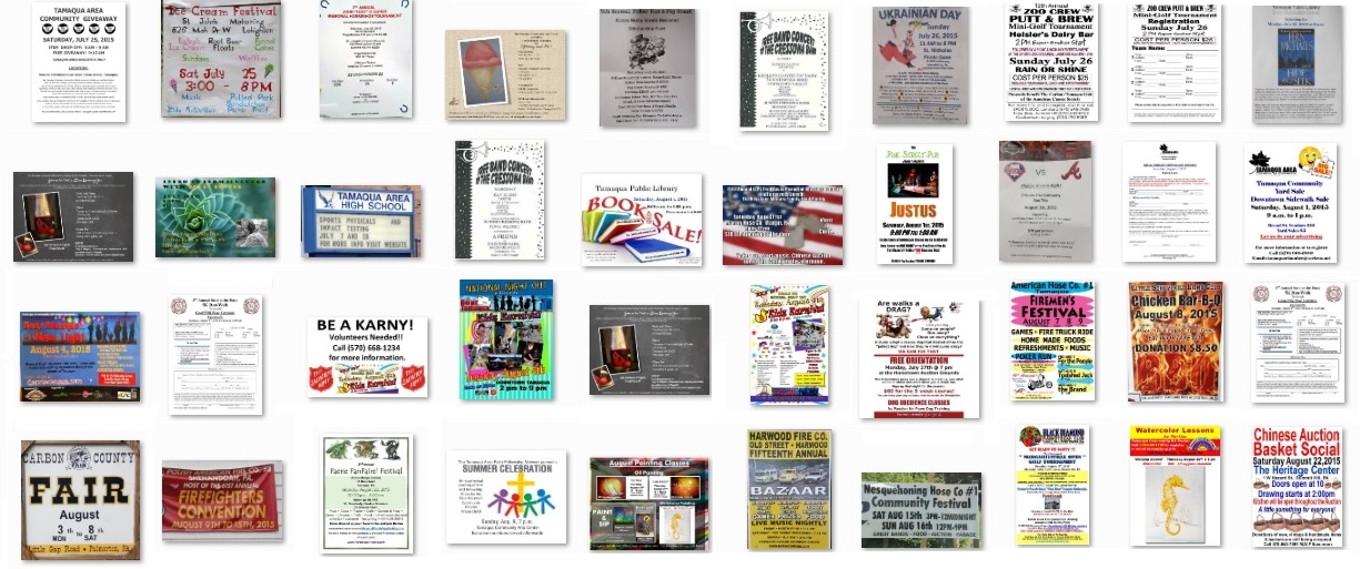 Below is a list of 70 submitted or acquired event posters for Tamaqua and surrounding communities.