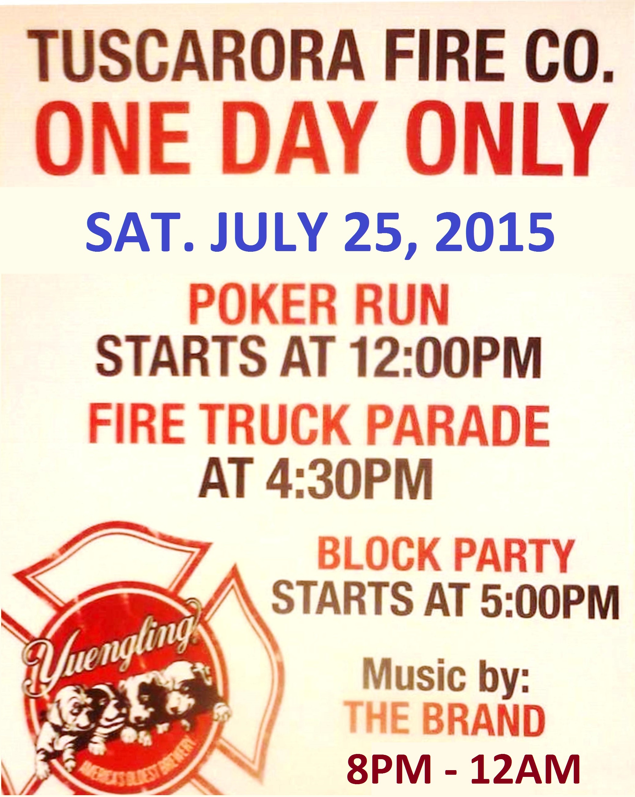 Members of the Tuscarora Fire Company held their annual apparatus parade this early evening (Saturday, July 25, 2015) to kick off their block party, which lasts until midnight.