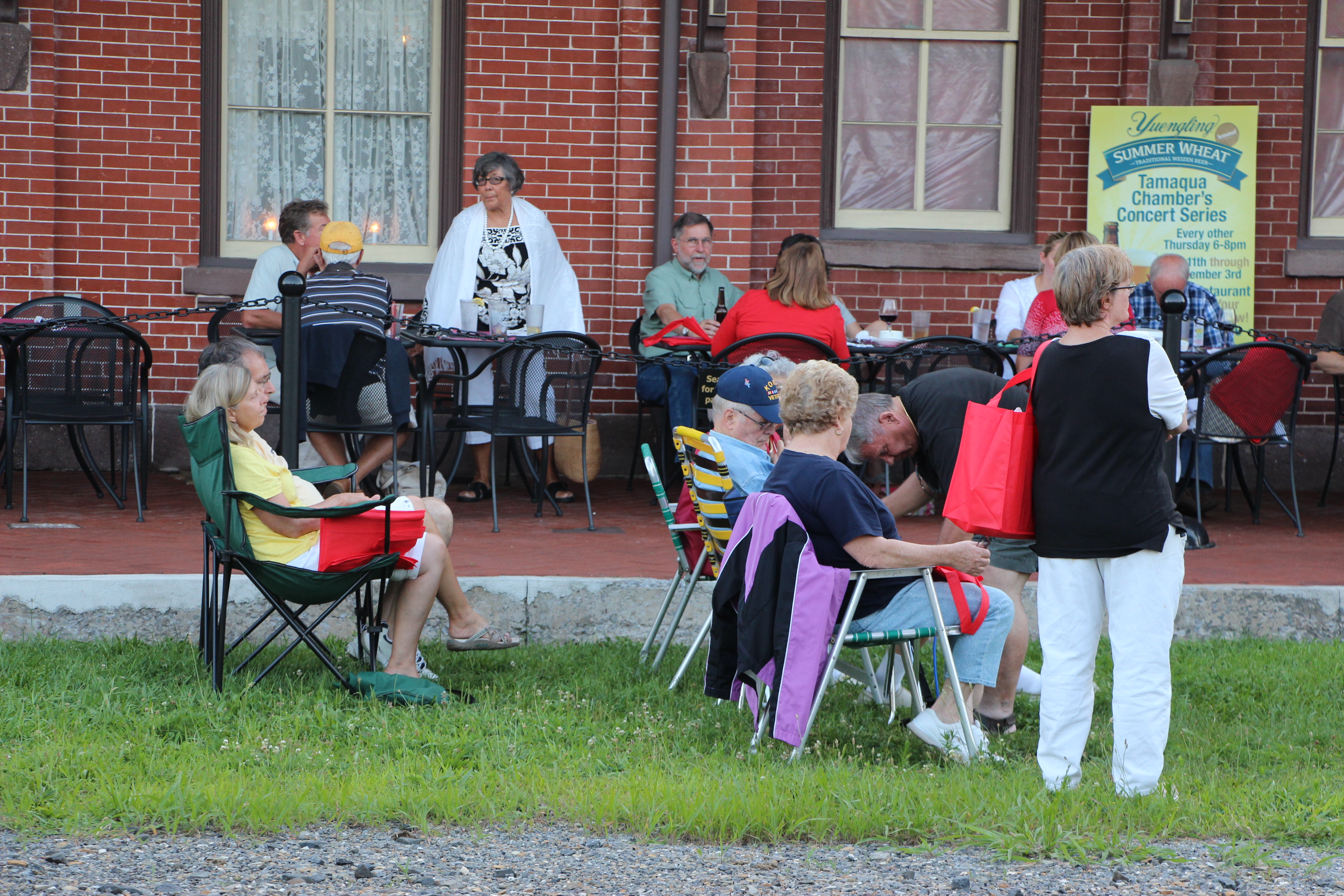 All concerts are free and held on select Thursdays from 6 PM to 8 PM outside the Tamaqua Train Station. Visitors are encouraged to bring a chair or towel to sit on.